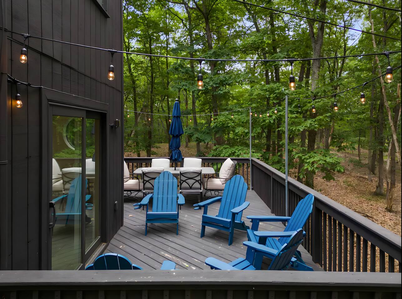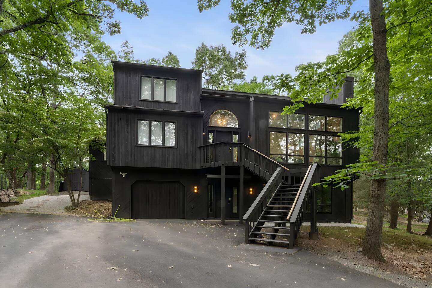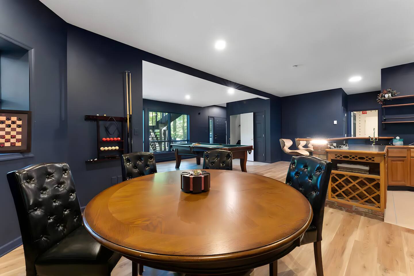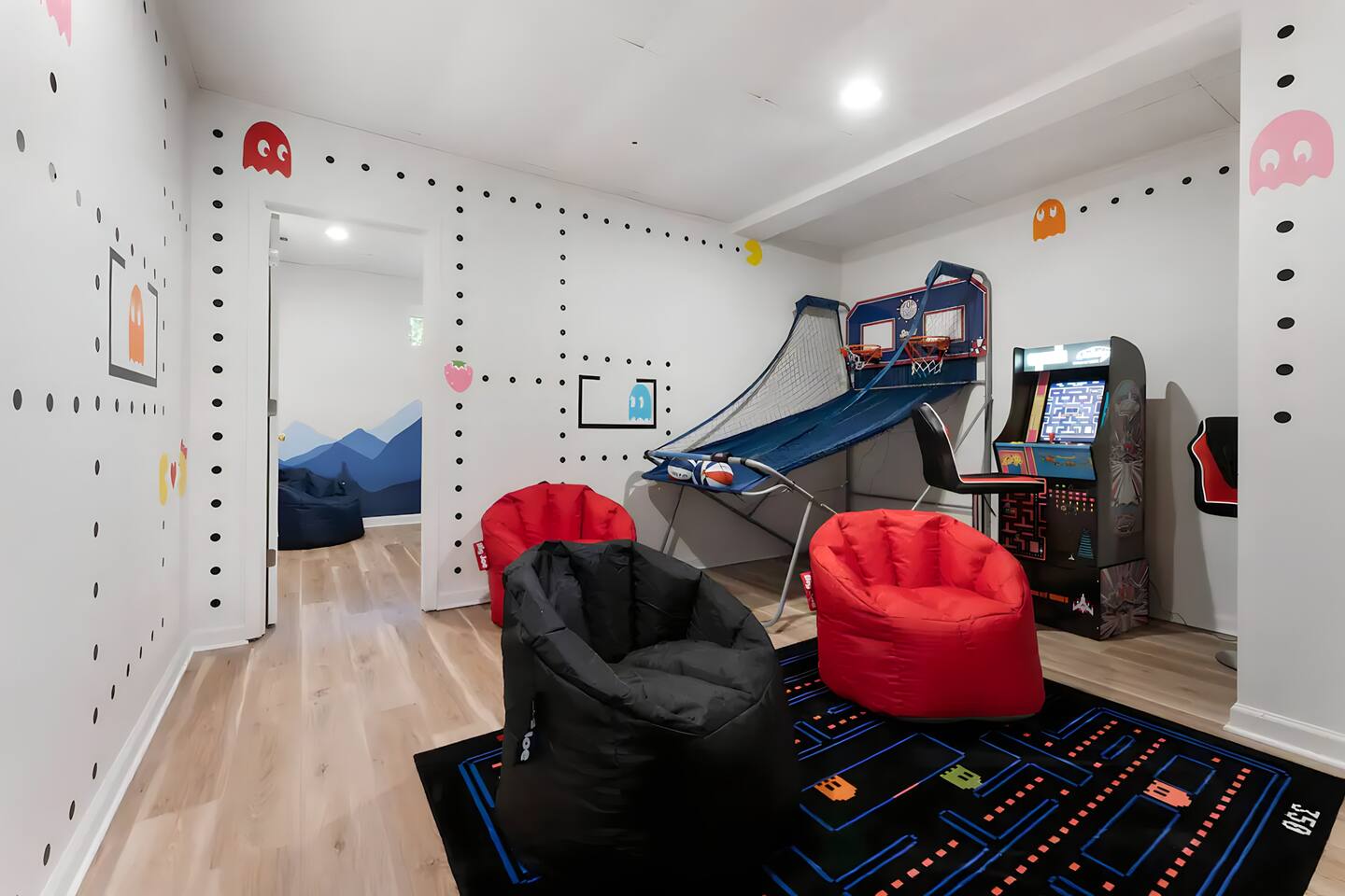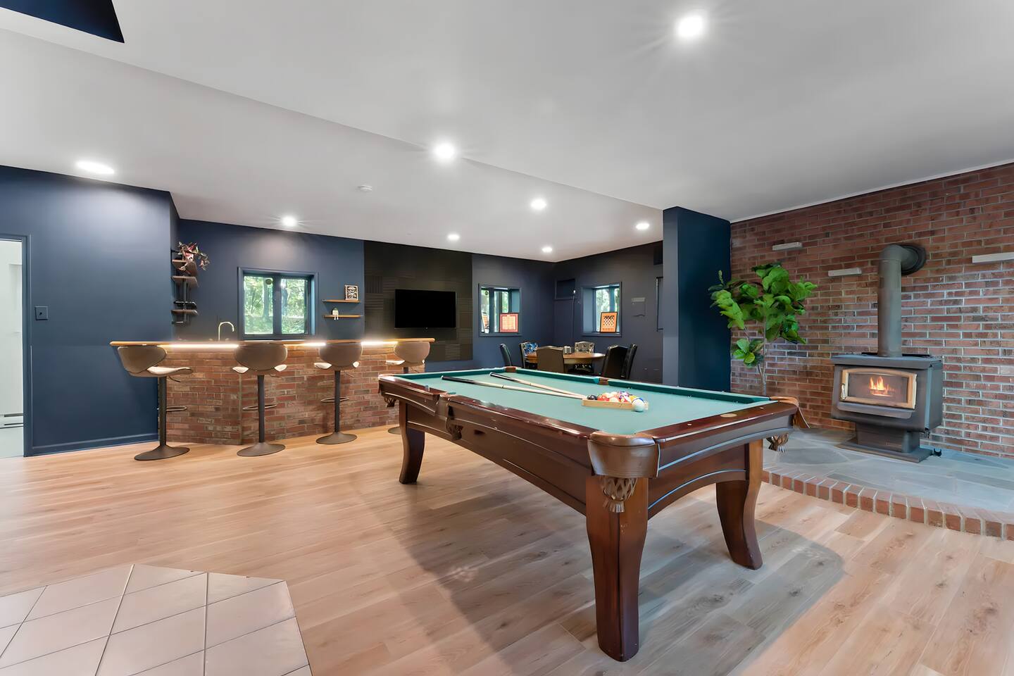 **During the summer months (Memorial Day weekend - Labor Day weekend), you will receive amenity badges that allow you to access the following amenities. If you’re staying with us outside of these dates, these amenities will be closed.** ☀ Lakes (with beach access - swimming allowed!) ☀ Pools ☀ Tennis courts ☀ Basketball courts ☀ Volleyball courts ☀ Dog park ☀ Playground areas KEY FEATURES: ☀ 5 beautiful bedrooms with comfortable beds; 1 king, 4 queens ☀ 4 full bathrooms; one on every floor! ☀ Completely remodeled kitchen with new, modern appliances ☀ Absolutely stunning living area; high vaulted ceilings & tons of comfy seating ☀ Enough dining space for a whole village; seating up to 12! ☀ Massive back deck with tons of seating & outdoor grill ☀ Screened-in porch with ping pong ☀ Speakeasy-themed lower level with wet bar, dining, & pool table ☀ Bonus game room with arcade games right off of the speakeasy! ☀ Additional fun loft with foosball & air hockey! Here Are A Few Kind Words From Our Past Guests: “This was a great place to stay! The morning light through the windows was so beautiful. Overall, just a relaxing experience. The hosts were super responsive whenever I had a question. I would stay again!” - Emily “Sabrina was very accommodating and communicative. the house is beautiful and very comfortable, close to nature hikes.” - Jennifer “This place was lovely! Exactly as pictured! Very clean and excellent host experience!!! I plan to come back again!” - Regina ☆☆ BEDROOMS ☆☆ This home has five bedrooms spread across all floors. On the main level, the master bedroom is equipped with a king bed & master ensuite, with large windows & breathtaking views of the surrounding Poconos nature. Right down the hall is the second bedroom, with one queen bunkbed & access to a hallway bathroom. Just upstairs, you will find one bedroom with two queen beds & another with one queen bed. These two bedrooms share one full bathroom right across the hallway. ☆☆ BATHROOMS ☆☆ You will have bathroom access on each floor of this massive house! Right off of the speakeasy on the bottom floor, you will find one of the full bathrooms. On the second level, the master bedroom has its own private ensuite bathroom, with a separate tub & standing shower. Right down the hallway from the master is another modern, full bathroom. On the top level, the two bedrooms share yet another beautiful, completely remodeled full bathroom. ☆☆ KITCHEN & DINING ☆☆ The majority of the main level is dedicated to the central living area of the home, which includes the kitchen & dining in the complete open concept. The unique, turquoise kitchen has been completely renovated to include modern appliances and a fun, colorful design! Adjacent to the kitchen, you will find the dining area, equipped with a humungous table with enough seating to accommodate 12! On top of all this space, you are surrounded by panoramic views of the serene, peaceful woodlands. ☆☆ LIVING ROOM ☆☆ The "WOW" factor of the house! This living room is one of a kind - super high vaulted ceilings, walls of windows, massive TV, comfy seating, and gorgeous design. This room is the epitome of getting to experience the Poconos; you will stay cozy and comfy inside, while getting to enjoy all of the stunning views that surround this house right from the living room! ☆☆ LOUNGE AREAS ☆☆ Beyond the main living room, you will have your choice of three additional living spaces to entertain! Downstairs, the entire bottom floor has been converted into a speakeasy-style space. A pool table, wet bar, poker set, and space for dining & drinking is all at your fingertips here! You will not find another home in the Poconos that will give you an experience like this space here. Right beyond the speakeasy, you will enter a game room, filled with entertainment like arcade games, pop-a-shot basketball hoops, and a large smart TV with comfy bean bag seating. On the complete opposite wing of the house, when you enter the third level, you are greeted with a unique loft space. This loft boasts an amazing Poconos-themed mural, air hockey, foosball, and a dedicated workspace - all while overlooking the amazing living area below. Truly a must-see to experience this home's beauty! ☆☆ OUTDOOR SPACE ☆☆ What would the Poconos be without a killer outdoor area? To stay protected from the bugs that come along with the beautiful Poconos nature, consider staying inside the screened-in porch while enjoying a game of ping pong. Wanting to get the full nature experience? Venture out onto the large deck to grill a full-course meal for your family and friends, or enjoy a cup of coffee in the vast amounts of seating offered out here! Just down the steps of the deck, you are greeted by even more amenities. The hot tub is tucked away in the corner of the lot, so that you will have true privacy as you relax with panoramic views surrounding you. Beyond the hot tub, you can follow the path down to our wood-burning fire pit, hidden back in the woods where you will have complete privacy. Even though this home is in the residential neighborhood of Penn Estates, this lot is right on the corner of a cul-de-sac, so you will feel completely separated from the surrounding neighbors! ★☆ Book Now & Let Us Take Care Of You In The Poconos! ☆★