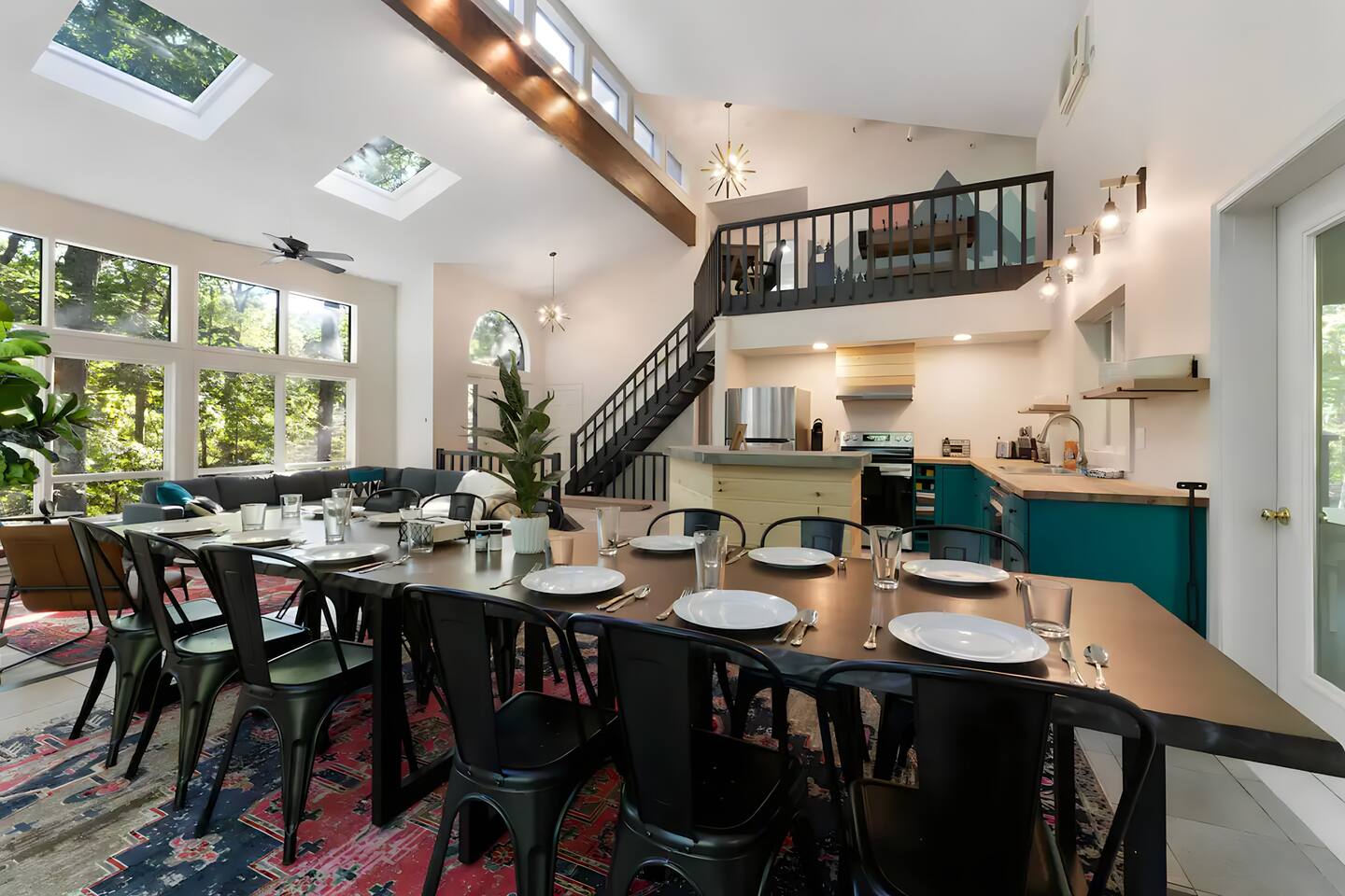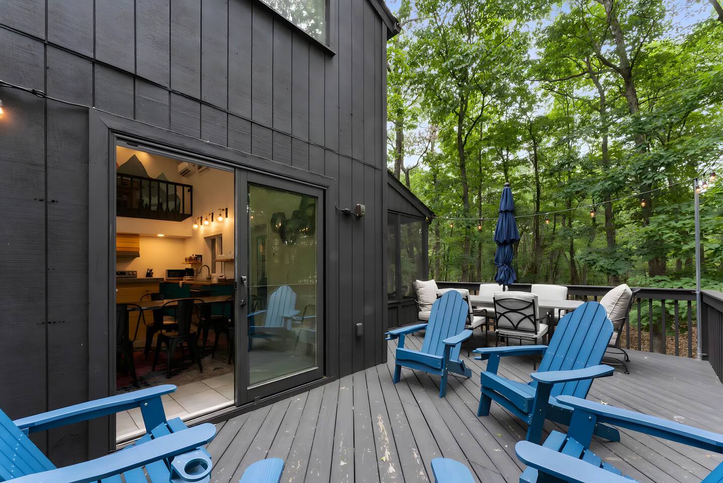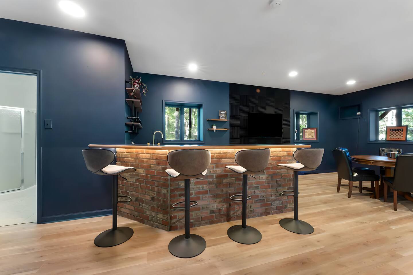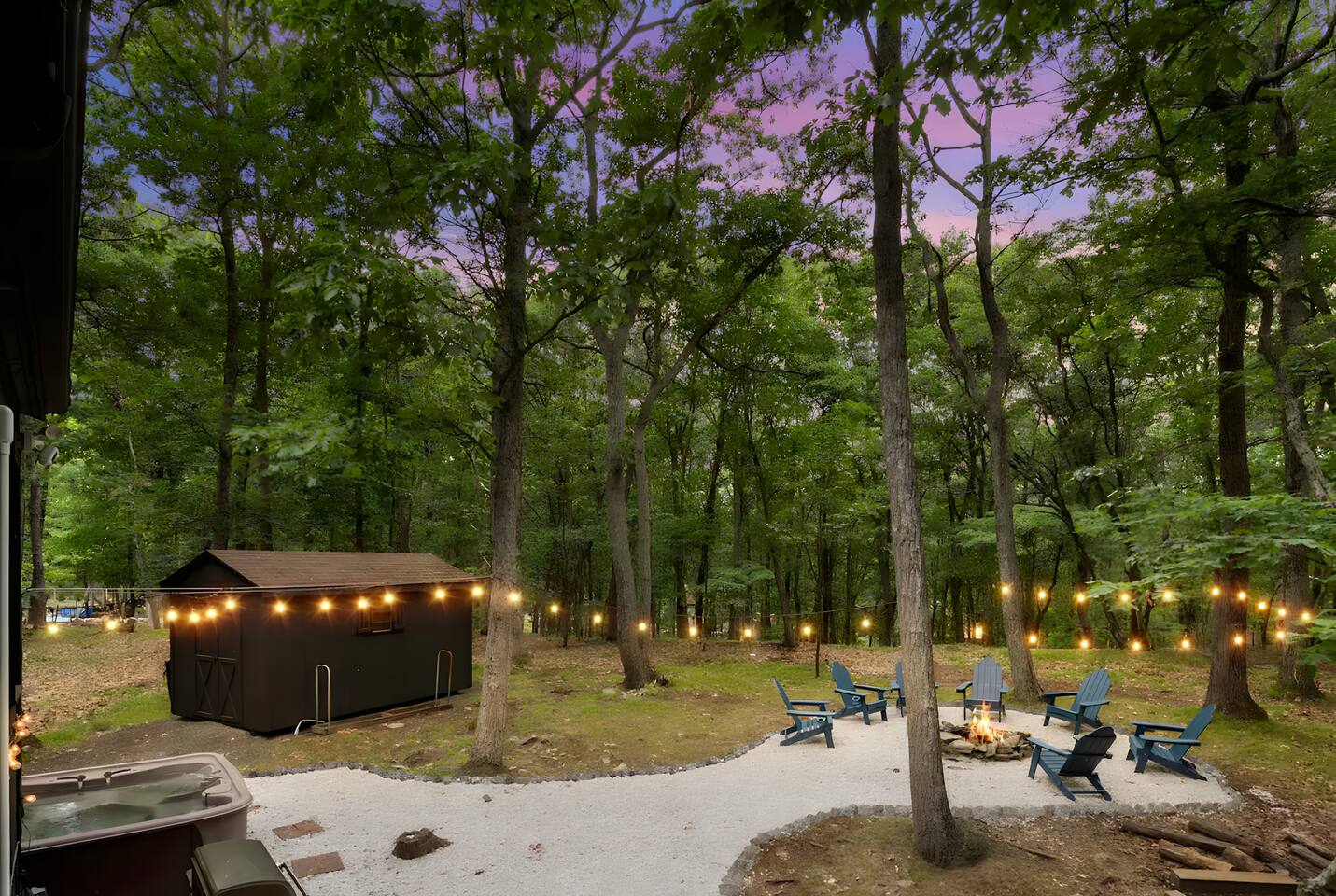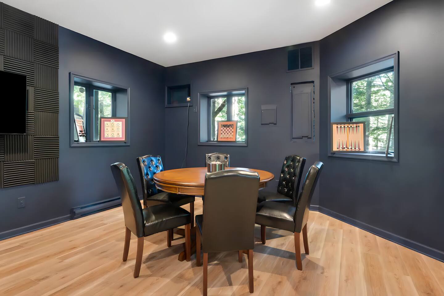 **During the summer months (Memorial Day weekend - Labor Day weekend), you will receive amenity badges that allow you to access the following amenities. If you’re staying with us outside of these dates, these amenities will be closed.** ☀ Lakes (with beach access - swimming allowed!) ☀ Pools ☀ Tennis courts ☀ Basketball courts ☀ Volleyball courts ☀ Dog park ☀ Playground areas KEY FEATURES: ☀ 5 beautiful bedrooms with comfortable beds; 1 king, 4 queens ☀ 4 full bathrooms; one on every floor! ☀ Completely remodeled kitchen with new, modern appliances ☀ Absolutely stunning living area; high vaulted ceilings & tons of comfy seating ☀ Enough dining space for a whole village; seating up to 12! ☀ Massive back deck with tons of seating & outdoor grill ☀ Screened-in porch with ping pong ☀ Speakeasy-themed lower level with wet bar, dining, & pool table ☀ Bonus game room with arcade games right off of the speakeasy! ☀ Additional fun loft with foosball & air hockey! Here Are A Few Kind Words From Our Past Guests: “This was a great place to stay! The morning light through the windows was so beautiful. Overall, just a relaxing experience. The hosts were super responsive whenever I had a question. I would stay again!” - Emily “Sabrina was very accommodating and communicative. the house is beautiful and very comfortable, close to nature hikes.” - Jennifer “This place was lovely! Exactly as pictured! Very clean and excellent host experience!!! I plan to come back again!” - Regina ☆☆ BEDROOMS ☆☆ This home has five bedrooms spread across all floors. On the main level, the master bedroom is equipped with a king bed & master ensuite, with large windows & breathtaking views of the surrounding Poconos nature. Right down the hall is the second bedroom, with one queen bunkbed & access to a hallway bathroom. Just upstairs, you will find one bedroom with two queen beds & another with one queen bed. These two bedrooms share one full bathroom right across the hallway. ☆☆ BATHROOMS ☆☆ You will have bathroom access on each floor of this massive house! Right off of the speakeasy on the bottom floor, you will find one of the full bathrooms. On the second level, the master bedroom has its own private ensuite bathroom, with a separate tub & standing shower. Right down the hallway from the master is another modern, full bathroom. On the top level, the two bedrooms share yet another beautiful, completely remodeled full bathroom. ☆☆ KITCHEN & DINING ☆☆ The majority of the main level is dedicated to the central living area of the home, which includes the kitchen & dining in the complete open concept. The unique, turquoise kitchen has been completely renovated to include modern appliances and a fun, colorful design! Adjacent to the kitchen, you will find the dining area, equipped with a humungous table with enough seating to accommodate 12! On top of all this space, you are surrounded by panoramic views of the serene, peaceful woodlands. ☆☆ LIVING ROOM ☆☆ The "WOW" factor of the house! This living room is one of a kind - super high vaulted ceilings, walls of windows, massive TV, comfy seating, and gorgeous design. This room is the epitome of getting to experience the Poconos; you will stay cozy and comfy inside, while getting to enjoy all of the stunning views that surround this house right from the living room! ☆☆ LOUNGE AREAS ☆☆ Beyond the main living room, you will have your choice of three additional living spaces to entertain! Downstairs, the entire bottom floor has been converted into a speakeasy-style space. A pool table, wet bar, poker set, and space for dining & drinking is all at your fingertips here! You will not find another home in the Poconos that will give you an experience like this space here. Right beyond the speakeasy, you will enter a game room, filled with entertainment like arcade games, pop-a-shot basketball hoops, and a large smart TV with comfy bean bag seating. On the complete opposite wing of the house, when you enter the third level, you are greeted with a unique loft space. This loft boasts an amazing Poconos-themed mural, air hockey, foosball, and a dedicated workspace - all while overlooking the amazing living area below. Truly a must-see to experience this home's beauty! ☆☆ OUTDOOR SPACE ☆☆ What would the Poconos be without a killer outdoor area? To stay protected from the bugs that come along with the beautiful Poconos nature, consider staying inside the screened-in porch while enjoying a game of ping pong. Wanting to get the full nature experience? Venture out onto the large deck to grill a full-course meal for your family and friends, or enjoy a cup of coffee in the vast amounts of seating offered out here! Just down the steps of the deck, you are greeted by even more amenities. The hot tub is tucked away in the corner of the lot, so that you will have true privacy as you relax with panoramic views surrounding you. Beyond the hot tub, you can follow the path down to our wood-burning fire pit, hidden back in the woods where you will have complete privacy. Even though this home is in the residential neighborhood of Penn Estates, this lot is right on the corner of a cul-de-sac, so you will feel completely separated from the surrounding neighbors! ★☆ Book Now & Let Us Take Care Of You In The Poconos! ☆★