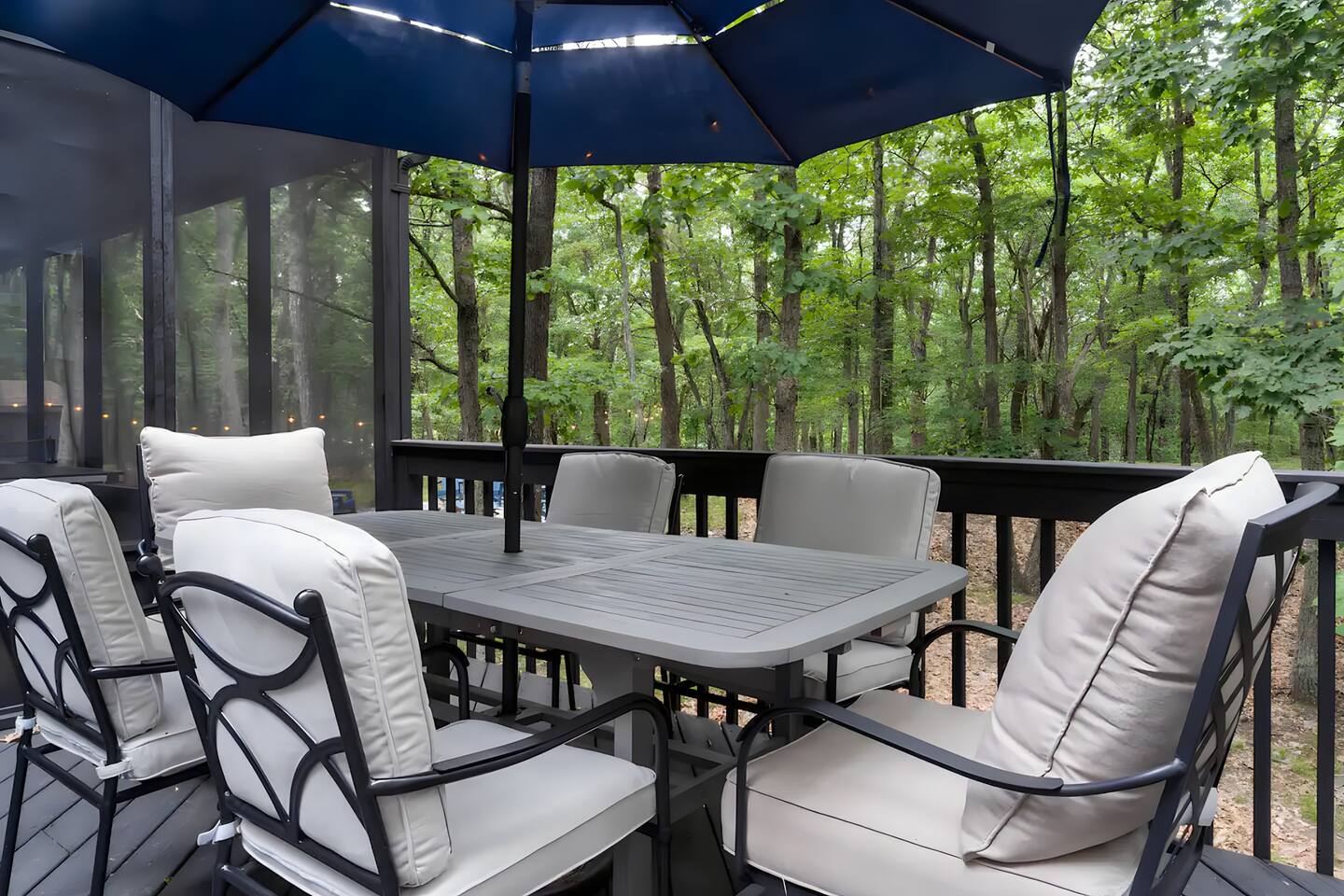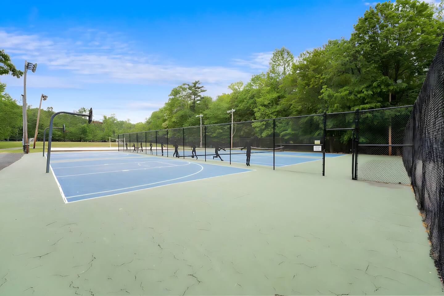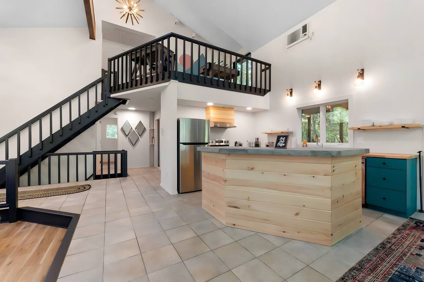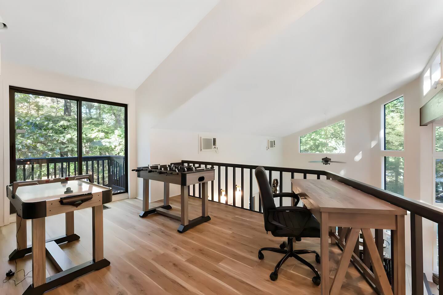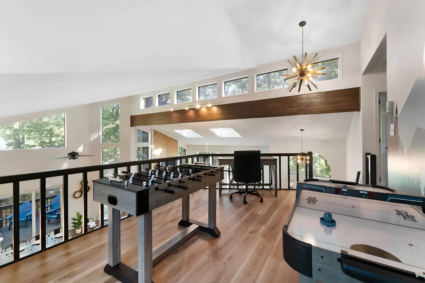 **During the summer months (Memorial Day weekend - Labor Day weekend), you will receive amenity badges that allow you to access the following amenities. If you’re staying with us outside of these dates, these amenities will be closed.** ☀ Lakes (with beach access - swimming allowed!) ☀ Pools ☀ Tennis courts ☀ Basketball courts ☀ Volleyball courts ☀ Dog park ☀ Playground areas KEY FEATURES: ☀ 5 beautiful bedrooms with comfortable beds; 1 king, 4 queens ☀ 4 full bathrooms; one on every floor! ☀ Completely remodeled kitchen with new, modern appliances ☀ Absolutely stunning living area; high vaulted ceilings & tons of comfy seating ☀ Enough dining space for a whole village; seating up to 12! ☀ Massive back deck with tons of seating & outdoor grill ☀ Screened-in porch with ping pong ☀ Speakeasy-themed lower level with wet bar, dining, & pool table ☀ Bonus game room with arcade games right off of the speakeasy! ☀ Additional fun loft with foosball & air hockey! Here Are A Few Kind Words From Our Past Guests: “This was a great place to stay! The morning light through the windows was so beautiful. Overall, just a relaxing experience. The hosts were super responsive whenever I had a question. I would stay again!” - Emily “Sabrina was very accommodating and communicative. the house is beautiful and very comfortable, close to nature hikes.” - Jennifer “This place was lovely! Exactly as pictured! Very clean and excellent host experience!!! I plan to come back again!” - Regina ☆☆ BEDROOMS ☆☆ This home has five bedrooms spread across all floors. On the main level, the master bedroom is equipped with a king bed & master ensuite, with large windows & breathtaking views of the surrounding Poconos nature. Right down the hall is the second bedroom, with one queen bunkbed & access to a hallway bathroom. Just upstairs, you will find one bedroom with two queen beds & another with one queen bed. These two bedrooms share one full bathroom right across the hallway. ☆☆ BATHROOMS ☆☆ You will have bathroom access on each floor of this massive house! Right off of the speakeasy on the bottom floor, you will find one of the full bathrooms. On the second level, the master bedroom has its own private ensuite bathroom, with a separate tub & standing shower. Right down the hallway from the master is another modern, full bathroom. On the top level, the two bedrooms share yet another beautiful, completely remodeled full bathroom. ☆☆ KITCHEN & DINING ☆☆ The majority of the main level is dedicated to the central living area of the home, which includes the kitchen & dining in the complete open concept. The unique, turquoise kitchen has been completely renovated to include modern appliances and a fun, colorful design! Adjacent to the kitchen, you will find the dining area, equipped with a humungous table with enough seating to accommodate 12! On top of all this space, you are surrounded by panoramic views of the serene, peaceful woodlands. ☆☆ LIVING ROOM ☆☆ The "WOW" factor of the house! This living room is one of a kind - super high vaulted ceilings, walls of windows, massive TV, comfy seating, and gorgeous design. This room is the epitome of getting to experience the Poconos; you will stay cozy and comfy inside, while getting to enjoy all of the stunning views that surround this house right from the living room! ☆☆ LOUNGE AREAS ☆☆ Beyond the main living room, you will have your choice of three additional living spaces to entertain! Downstairs, the entire bottom floor has been converted into a speakeasy-style space. A pool table, wet bar, poker set, and space for dining & drinking is all at your fingertips here! You will not find another home in the Poconos that will give you an experience like this space here. Right beyond the speakeasy, you will enter a game room, filled with entertainment like arcade games, pop-a-shot basketball hoops, and a large smart TV with comfy bean bag seating. On the complete opposite wing of the house, when you enter the third level, you are greeted with a unique loft space. This loft boasts an amazing Poconos-themed mural, air hockey, foosball, and a dedicated workspace - all while overlooking the amazing living area below. Truly a must-see to experience this home's beauty! ☆☆ OUTDOOR SPACE ☆☆ What would the Poconos be without a killer outdoor area? To stay protected from the bugs that come along with the beautiful Poconos nature, consider staying inside the screened-in porch while enjoying a game of ping pong. Wanting to get the full nature experience? Venture out onto the large deck to grill a full-course meal for your family and friends, or enjoy a cup of coffee in the vast amounts of seating offered out here! Just down the steps of the deck, you are greeted by even more amenities. The hot tub is tucked away in the corner of the lot, so that you will have true privacy as you relax with panoramic views surrounding you. Beyond the hot tub, you can follow the path down to our wood-burning fire pit, hidden back in the woods where you will have complete privacy. Even though this home is in the residential neighborhood of Penn Estates, this lot is right on the corner of a cul-de-sac, so you will feel completely separated from the surrounding neighbors! ★☆ Book Now & Let Us Take Care Of You In The Poconos! ☆★