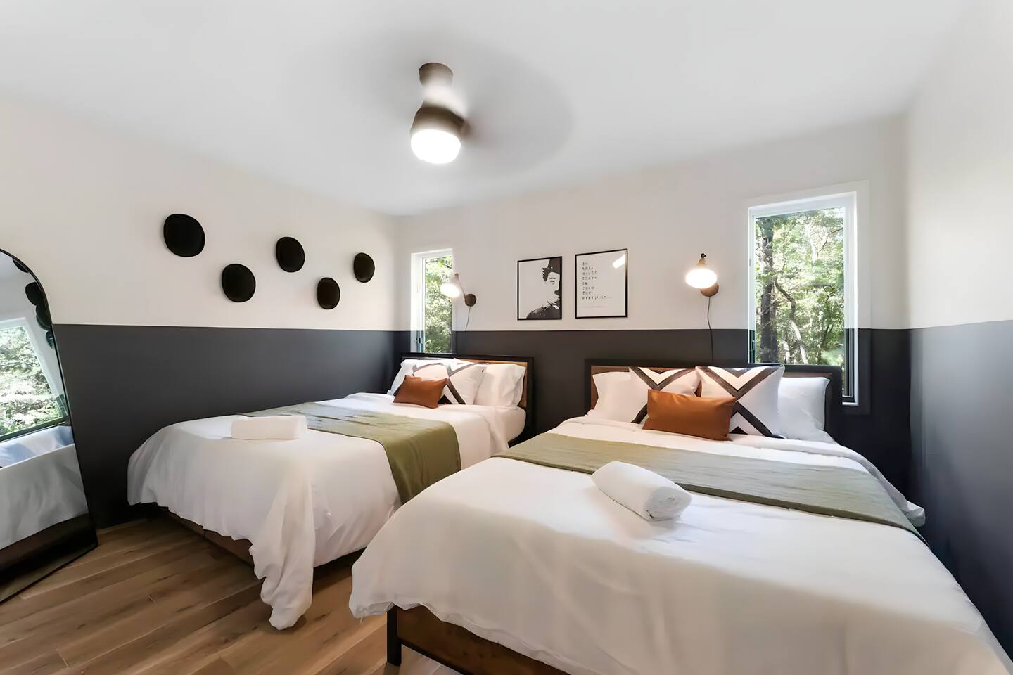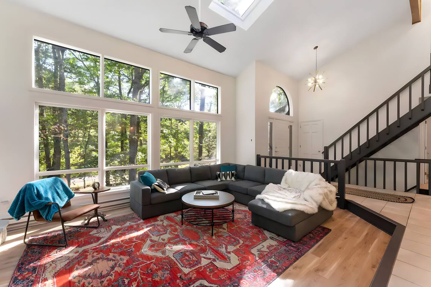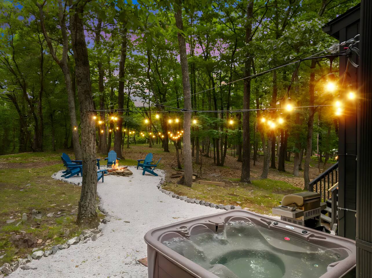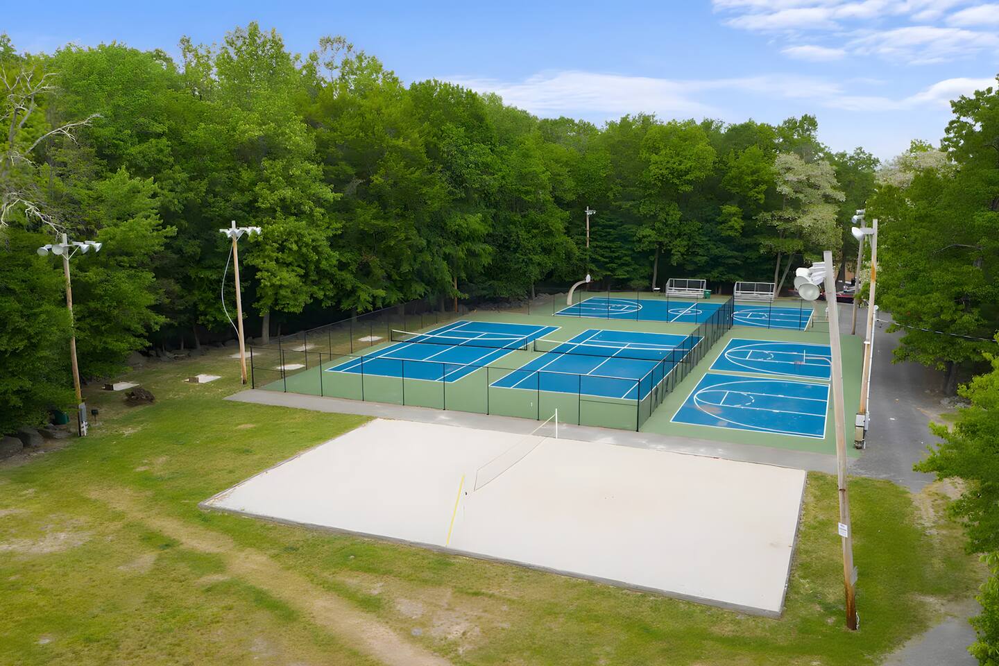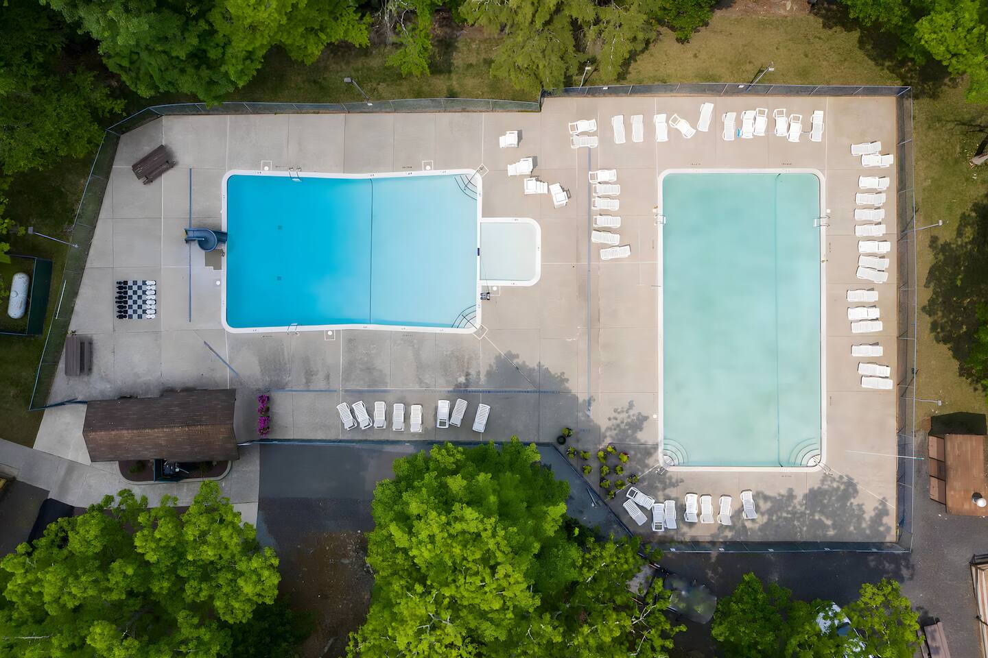 **During the summer months (Memorial Day weekend - Labor Day weekend), you will receive amenity badges that allow you to access the following amenities. If you’re staying with us outside of these dates, these amenities will be closed.** ☀ Lakes (with beach access - swimming allowed!) ☀ Pools ☀ Tennis courts ☀ Basketball courts ☀ Volleyball courts ☀ Dog park ☀ Playground areas KEY FEATURES: ☀ 5 beautiful bedrooms with comfortable beds; 1 king, 4 queens ☀ 4 full bathrooms; one on every floor! ☀ Completely remodeled kitchen with new, modern appliances ☀ Absolutely stunning living area; high vaulted ceilings & tons of comfy seating ☀ Enough dining space for a whole village; seating up to 12! ☀ Massive back deck with tons of seating & outdoor grill ☀ Screened-in porch with ping pong ☀ Speakeasy-themed lower level with wet bar, dining, & pool table ☀ Bonus game room with arcade games right off of the speakeasy! ☀ Additional fun loft with foosball & air hockey! Here Are A Few Kind Words From Our Past Guests: “This was a great place to stay! The morning light through the windows was so beautiful. Overall, just a relaxing experience. The hosts were super responsive whenever I had a question. I would stay again!” - Emily “Sabrina was very accommodating and communicative. the house is beautiful and very comfortable, close to nature hikes.” - Jennifer “This place was lovely! Exactly as pictured! Very clean and excellent host experience!!! I plan to come back again!” - Regina ☆☆ BEDROOMS ☆☆ This home has five bedrooms spread across all floors. On the main level, the master bedroom is equipped with a king bed & master ensuite, with large windows & breathtaking views of the surrounding Poconos nature. Right down the hall is the second bedroom, with one queen bunkbed & access to a hallway bathroom. Just upstairs, you will find one bedroom with two queen beds & another with one queen bed. These two bedrooms share one full bathroom right across the hallway. ☆☆ BATHROOMS ☆☆ You will have bathroom access on each floor of this massive house! Right off of the speakeasy on the bottom floor, you will find one of the full bathrooms. On the second level, the master bedroom has its own private ensuite bathroom, with a separate tub & standing shower. Right down the hallway from the master is another modern, full bathroom. On the top level, the two bedrooms share yet another beautiful, completely remodeled full bathroom. ☆☆ KITCHEN & DINING ☆☆ The majority of the main level is dedicated to the central living area of the home, which includes the kitchen & dining in the complete open concept. The unique, turquoise kitchen has been completely renovated to include modern appliances and a fun, colorful design! Adjacent to the kitchen, you will find the dining area, equipped with a humungous table with enough seating to accommodate 12! On top of all this space, you are surrounded by panoramic views of the serene, peaceful woodlands. ☆☆ LIVING ROOM ☆☆ The "WOW" factor of the house! This living room is one of a kind - super high vaulted ceilings, walls of windows, massive TV, comfy seating, and gorgeous design. This room is the epitome of getting to experience the Poconos; you will stay cozy and comfy inside, while getting to enjoy all of the stunning views that surround this house right from the living room! ☆☆ LOUNGE AREAS ☆☆ Beyond the main living room, you will have your choice of three additional living spaces to entertain! Downstairs, the entire bottom floor has been converted into a speakeasy-style space. A pool table, wet bar, poker set, and space for dining & drinking is all at your fingertips here! You will not find another home in the Poconos that will give you an experience like this space here. Right beyond the speakeasy, you will enter a game room, filled with entertainment like arcade games, pop-a-shot basketball hoops, and a large smart TV with comfy bean bag seating. On the complete opposite wing of the house, when you enter the third level, you are greeted with a unique loft space. This loft boasts an amazing Poconos-themed mural, air hockey, foosball, and a dedicated workspace - all while overlooking the amazing living area below. Truly a must-see to experience this home's beauty! ☆☆ OUTDOOR SPACE ☆☆ What would the Poconos be without a killer outdoor area? To stay protected from the bugs that come along with the beautiful Poconos nature, consider staying inside the screened-in porch while enjoying a game of ping pong. Wanting to get the full nature experience? Venture out onto the large deck to grill a full-course meal for your family and friends, or enjoy a cup of coffee in the vast amounts of seating offered out here! Just down the steps of the deck, you are greeted by even more amenities. The hot tub is tucked away in the corner of the lot, so that you will have true privacy as you relax with panoramic views surrounding you. Beyond the hot tub, you can follow the path down to our wood-burning fire pit, hidden back in the woods where you will have complete privacy. Even though this home is in the residential neighborhood of Penn Estates, this lot is right on the corner of a cul-de-sac, so you will feel completely separated from the surrounding neighbors! ★☆ Book Now & Let Us Take Care Of You In The Poconos! ☆★