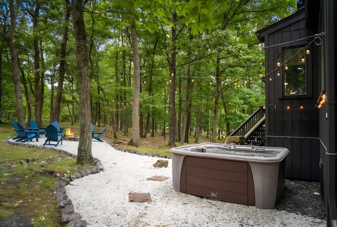 The perfect Poconos vacation destination for your family & friends getaway! Hot tub, fire pit, beautiful, modern design, and TONS of games (all on a private corner lot) will make your trip one that you won't forget! Come enjoy the Poconos in a unique way and book this house today! 15 min - Delaware Water Gap, Downtown Stroudsburg 20 min - Kalahari Resort, Shawnee Mountain, Big Pocono State Park 30 min - Bushkill Falls Experience The Poconos With Us & Learn More Below!