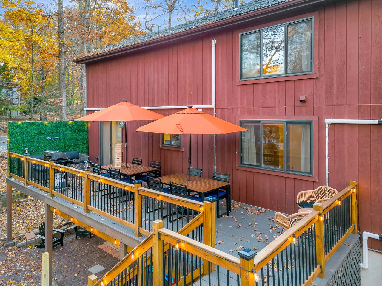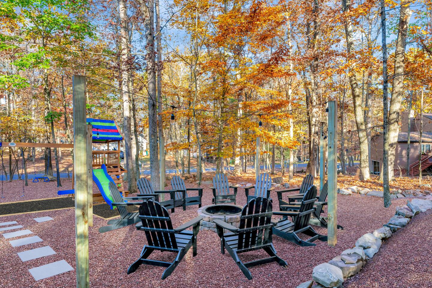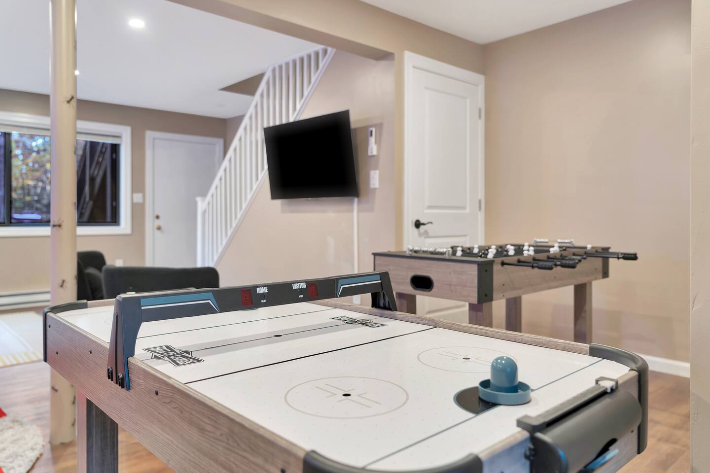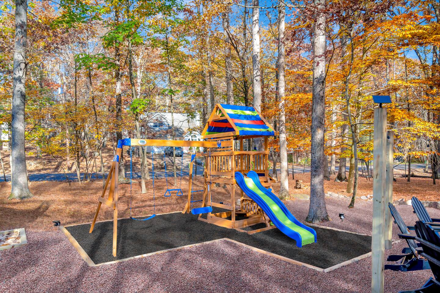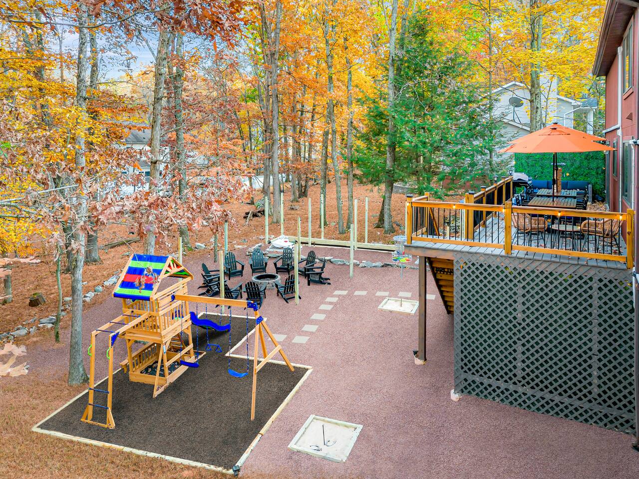 **During the summer months (Memorial Day weekend - Labor Day weekend), you will receive amenity badges that allow you to access the following amenities. If you’re staying with us outside of these dates, these amenities will be closed.** ☀ Lakes (with beach access - swimming allowed!) ☀ Pools ☀ Tennis courts ☀ Basketball courts ☀ Volleyball courts ☀ Dog park ☀ Playground areas KEY FEATURES: ☀ 5 beautiful bedrooms; 2 kings, 2 queens, 1 full, & 2 twin beds ☀ 3 full bathrooms ☀ Modern kitchen with new, stainless steel appliances ☀ Grand living room with lots of comfy seating & smart TV ☀ Dining room with seating to comfortably accommodate 8 (plus countertop seating & outdoor dining) ☀ TWO amazing game rooms; pool table, arcade games, ping pong, foosball, & more! ☀ Private movie theater with classic theater seating & fun ambiance! ☀ Private & peaceful resort-style backyard surrounded by nature; hot tub, fire pit, jungle gym, & TONS more! Here Are A Few Kind Words From Our Past Guests: “This was a great place to stay! The morning light through the windows was so beautiful. Overall, just a relaxing experience. The hosts were super responsive whenever I had a question. I would stay again!” - Emily “Sabrina was very accommodating and communicative. the house is beautiful and very comfortable, close to nature hikes.” - Jennifer “This place was lovely! Exactly as pictured! Very clean and excellent host experience!!! I plan to come back again!” - Regina ☆☆ BEDROOMS ☆☆ This three-level home has 5 bedrooms throughout. On the main floor, there is one bedroom with a king bed, smart TV, and attached ensuite bathroom. There are two separate entrances to the top level - one goes to its own private master suite, totally separated from the rest of the home. The master suite has a king bed, smart TV, and private ensuite bathroom. On the other side of the third floor are the remaining bedrooms. The third and fourth bedrooms have a queen in each, while the fifth bedroom has a twin-over-full bunk & a separate twin bed. ☆☆ BATHROOMS ☆☆ There are three full bathrooms in this home. The main floor bathroom has a sink, toilet, and shower/tub combo. The private ensuite bathroom on the third floor has a sink, toilet, walk-in shower, & soaking tub. The third bathroom, which is accessible by the other three bedrooms on this floor, has a sink, toilet, and shower/tub combo. ☆☆ KITCHEN & DINING ☆☆ The modern kitchen is located right off of the main living areas, and is loaded with all new stainless steel appliances & a coffee station (including a Keurig & coffee pods). The dining room is right next to the kitchen, with enough seating to comfortably fit 8 people, and opens right up to the rest of the living areas & also has direct access to the private back deck. There is additional countertop seating in the kitchen, as well as plenty of seating on the private back deck. ☆☆ LIVING ROOM ☆☆ In the living room, you’ll be greeted with lots of comfy seating, a big smart TV, and beautiful, modern design that will catch your eye as soon as you enter! This is the perfect spot to host your movie nights & games with your friends and family. ☆☆ GAME ROOMS ☆☆ Keep your family and friends entertained throughout your stay in our TWO amenity-filled game rooms! Pool table, ping pong, foosball, air hockey, basketball (Pop-a-Shot), arcade games, board games, card games, and seating to enjoy the TVs in each game room. Whether your reason for staying is to explore the town or stay at home and relax, this place will be the perfect spot to unwind! ☆☆ MOVIE THEATER ☆☆ Right off of the game room is your private movie theater! A big smart TV, classic movie theater seating, and true theater ambiance to feel like you really are right in your own private movie theater. ☆☆ OUTDOOR SPACE ☆☆ This backyard is everything you could ask for, and more! ☀ Hot tub ☀ Fire pit ☀ Jungle gym ☀ Bowling ☀ Corn hole ☀ Ring toss ☀ Frisbee golf ☀ Giant Connect 4 ☀ Giant Jenga ☀ Outdoor lounge seating ☀ Outdoor dining There is so much to do here, that all of your friends & family will be thoroughly entertained throughout your entire stay. No matter the season, this backyard has it all. Book your stay with us today and you will NOT be disappointed. Get ready for a vacation you will never forget! ★☆ Book Now & Let Us Take Care Of You In The Poconos! ☆★