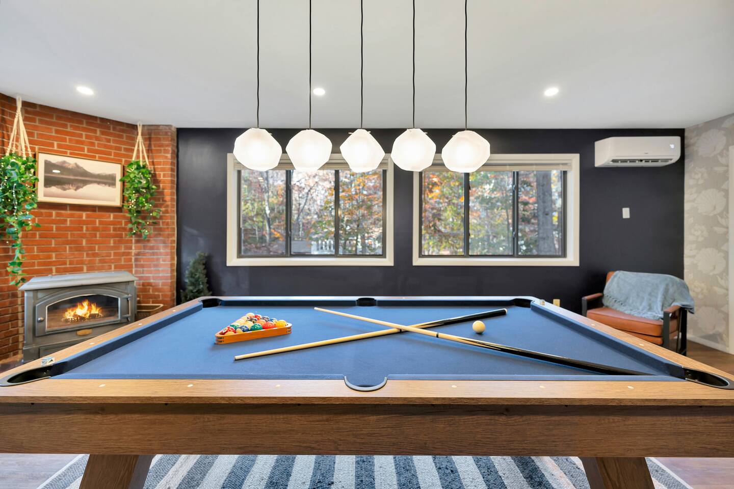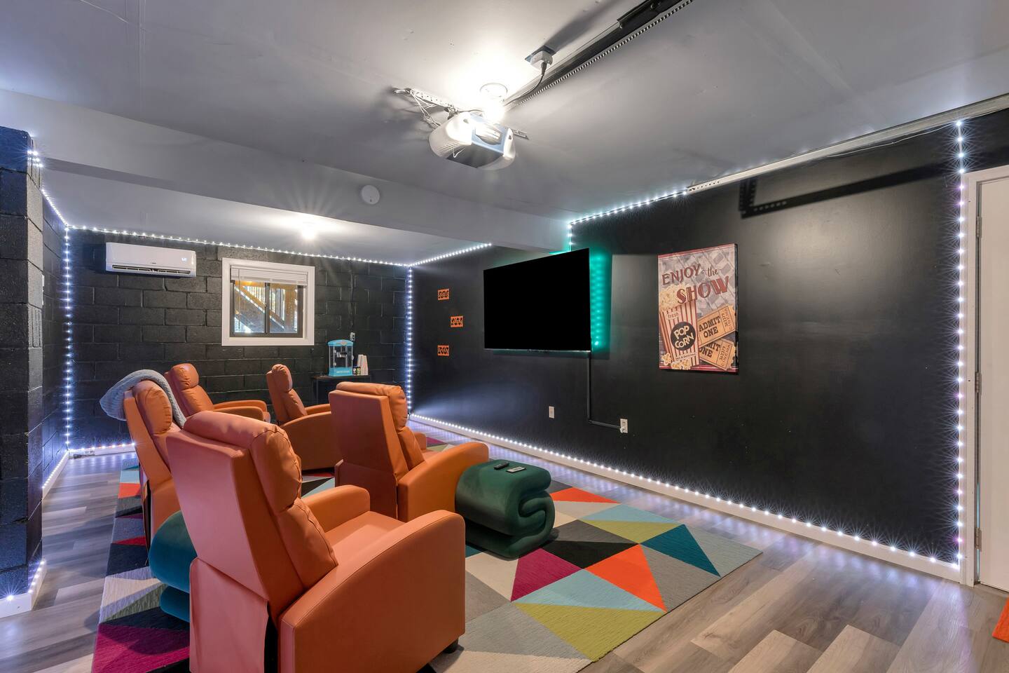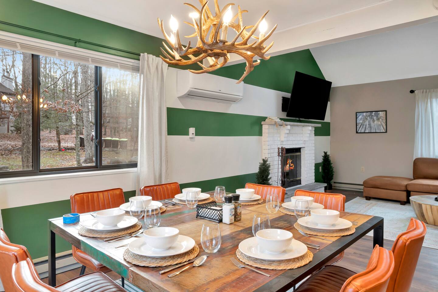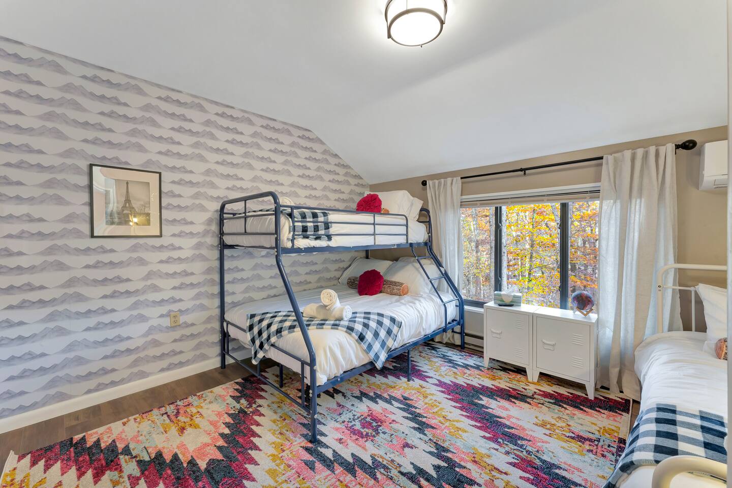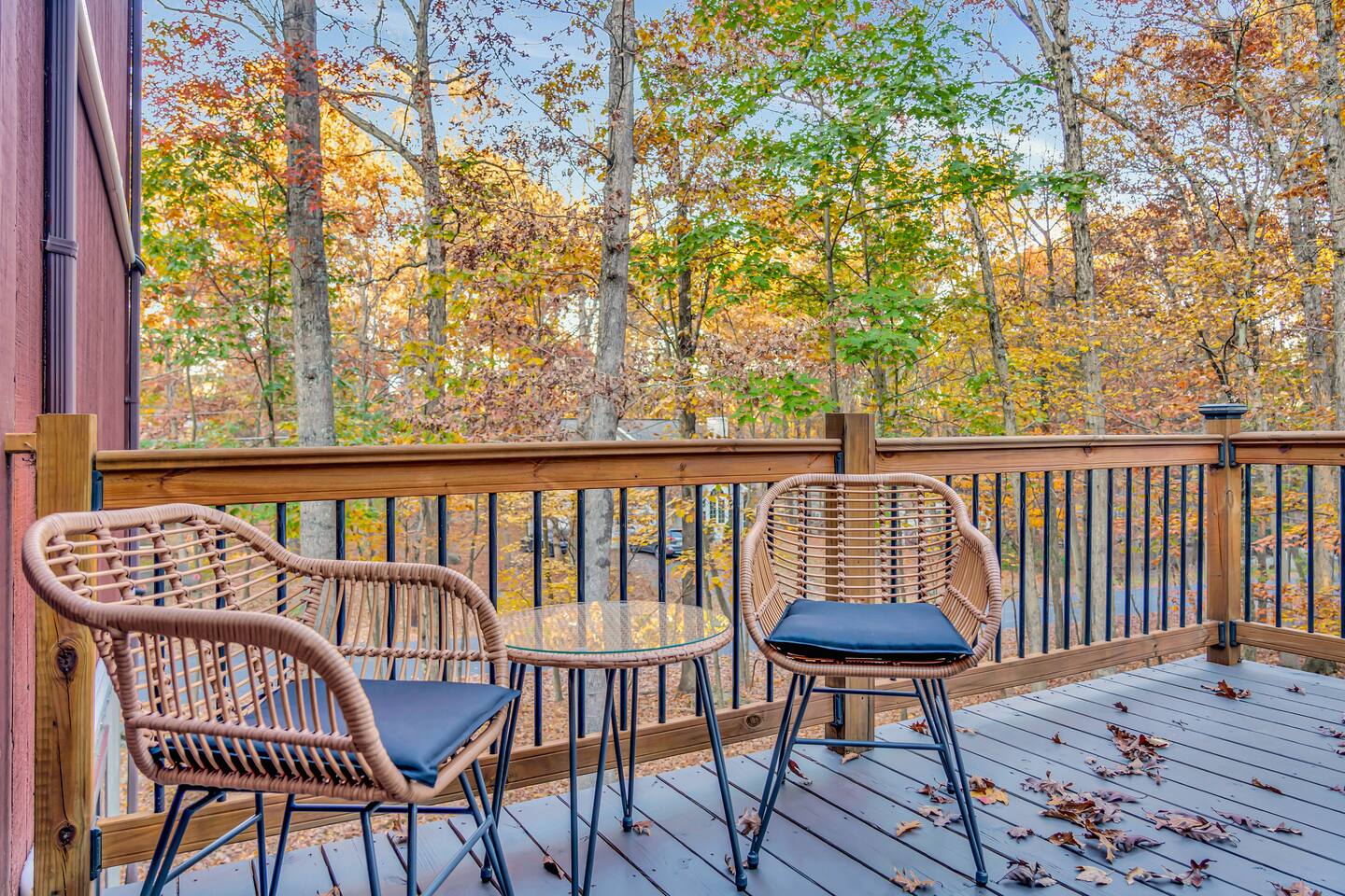 **During the summer months (Memorial Day weekend - Labor Day weekend), you will receive amenity badges that allow you to access the following amenities. If you’re staying with us outside of these dates, these amenities will be closed.** ☀ Lakes (with beach access - swimming allowed!) ☀ Pools ☀ Tennis courts ☀ Basketball courts ☀ Volleyball courts ☀ Dog park ☀ Playground areas KEY FEATURES: ☀ 5 beautiful bedrooms; 2 kings, 2 queens, 1 full, & 2 twin beds ☀ 3 full bathrooms ☀ Modern kitchen with new, stainless steel appliances ☀ Grand living room with lots of comfy seating & smart TV ☀ Dining room with seating to comfortably accommodate 8 (plus countertop seating & outdoor dining) ☀ TWO amazing game rooms; pool table, arcade games, ping pong, foosball, & more! ☀ Private movie theater with classic theater seating & fun ambiance! ☀ Private & peaceful resort-style backyard surrounded by nature; hot tub, fire pit, jungle gym, & TONS more! Here Are A Few Kind Words From Our Past Guests: “This was a great place to stay! The morning light through the windows was so beautiful. Overall, just a relaxing experience. The hosts were super responsive whenever I had a question. I would stay again!” - Emily “Sabrina was very accommodating and communicative. the house is beautiful and very comfortable, close to nature hikes.” - Jennifer “This place was lovely! Exactly as pictured! Very clean and excellent host experience!!! I plan to come back again!” - Regina ☆☆ BEDROOMS ☆☆ This three-level home has 5 bedrooms throughout. On the main floor, there is one bedroom with a king bed, smart TV, and attached ensuite bathroom. There are two separate entrances to the top level - one goes to its own private master suite, totally separated from the rest of the home. The master suite has a king bed, smart TV, and private ensuite bathroom. On the other side of the third floor are the remaining bedrooms. The third and fourth bedrooms have a queen in each, while the fifth bedroom has a twin-over-full bunk & a separate twin bed. ☆☆ BATHROOMS ☆☆ There are three full bathrooms in this home. The main floor bathroom has a sink, toilet, and shower/tub combo. The private ensuite bathroom on the third floor has a sink, toilet, walk-in shower, & soaking tub. The third bathroom, which is accessible by the other three bedrooms on this floor, has a sink, toilet, and shower/tub combo. ☆☆ KITCHEN & DINING ☆☆ The modern kitchen is located right off of the main living areas, and is loaded with all new stainless steel appliances & a coffee station (including a Keurig & coffee pods). The dining room is right next to the kitchen, with enough seating to comfortably fit 8 people, and opens right up to the rest of the living areas & also has direct access to the private back deck. There is additional countertop seating in the kitchen, as well as plenty of seating on the private back deck. ☆☆ LIVING ROOM ☆☆ In the living room, you’ll be greeted with lots of comfy seating, a big smart TV, and beautiful, modern design that will catch your eye as soon as you enter! This is the perfect spot to host your movie nights & games with your friends and family. ☆☆ GAME ROOMS ☆☆ Keep your family and friends entertained throughout your stay in our TWO amenity-filled game rooms! Pool table, ping pong, foosball, air hockey, basketball (Pop-a-Shot), arcade games, board games, card games, and seating to enjoy the TVs in each game room. Whether your reason for staying is to explore the town or stay at home and relax, this place will be the perfect spot to unwind! ☆☆ MOVIE THEATER ☆☆ Right off of the game room is your private movie theater! A big smart TV, classic movie theater seating, and true theater ambiance to feel like you really are right in your own private movie theater. ☆☆ OUTDOOR SPACE ☆☆ This backyard is everything you could ask for, and more! ☀ Hot tub ☀ Fire pit ☀ Jungle gym ☀ Bowling ☀ Corn hole ☀ Ring toss ☀ Frisbee golf ☀ Giant Connect 4 ☀ Giant Jenga ☀ Outdoor lounge seating ☀ Outdoor dining There is so much to do here, that all of your friends & family will be thoroughly entertained throughout your entire stay. No matter the season, this backyard has it all. Book your stay with us today and you will NOT be disappointed. Get ready for a vacation you will never forget! ★☆ Book Now & Let Us Take Care Of You In The Poconos! ☆★