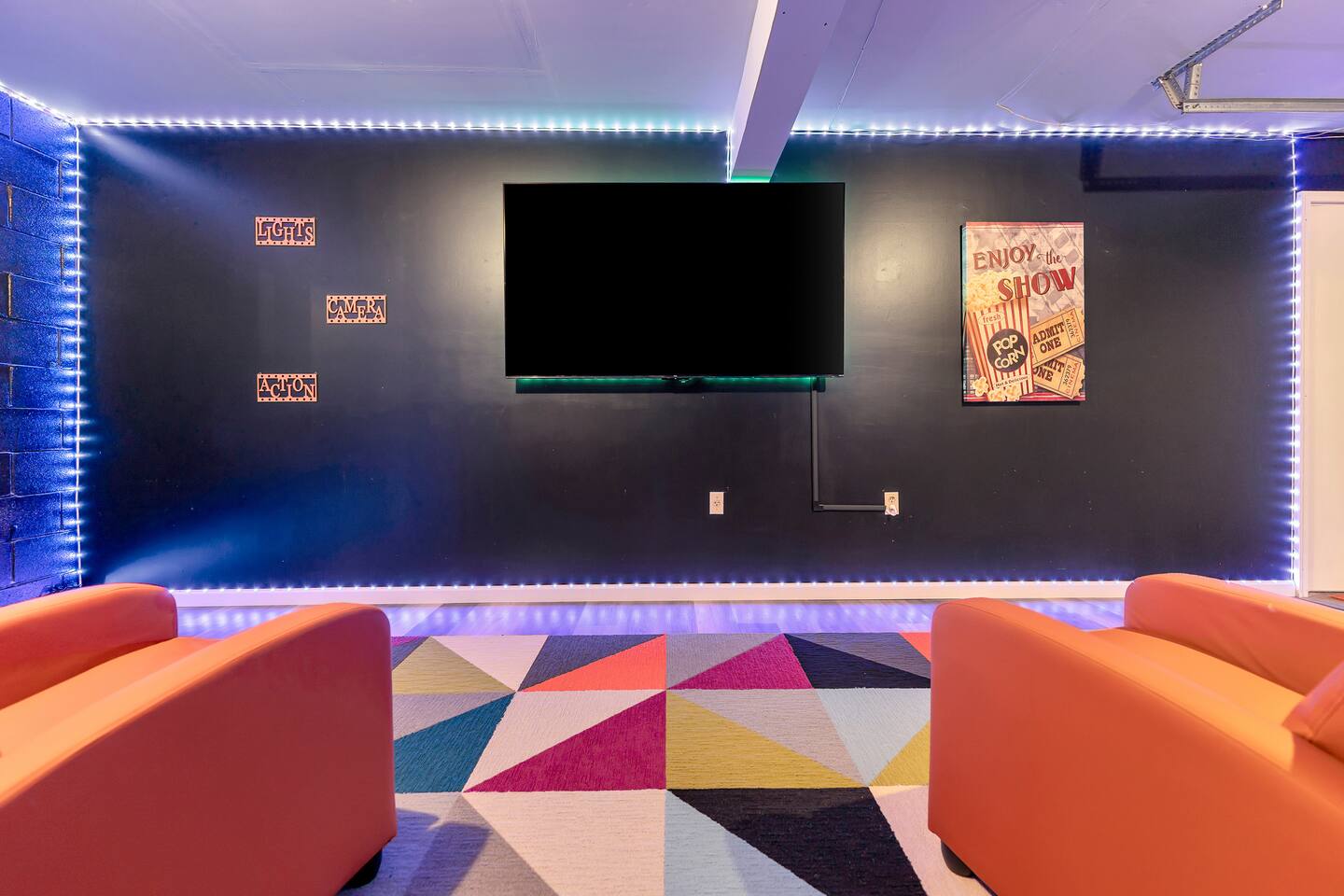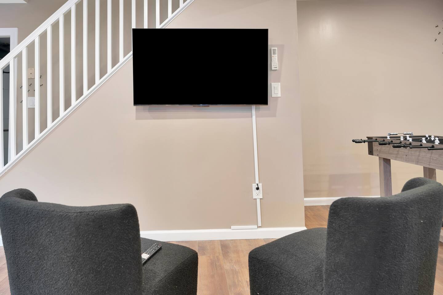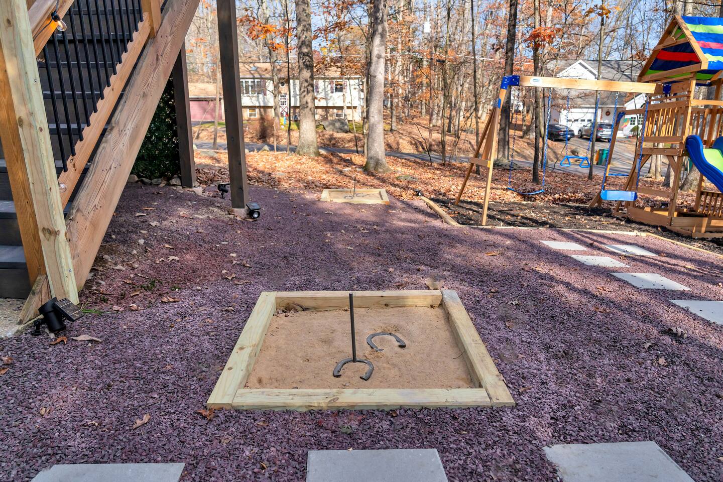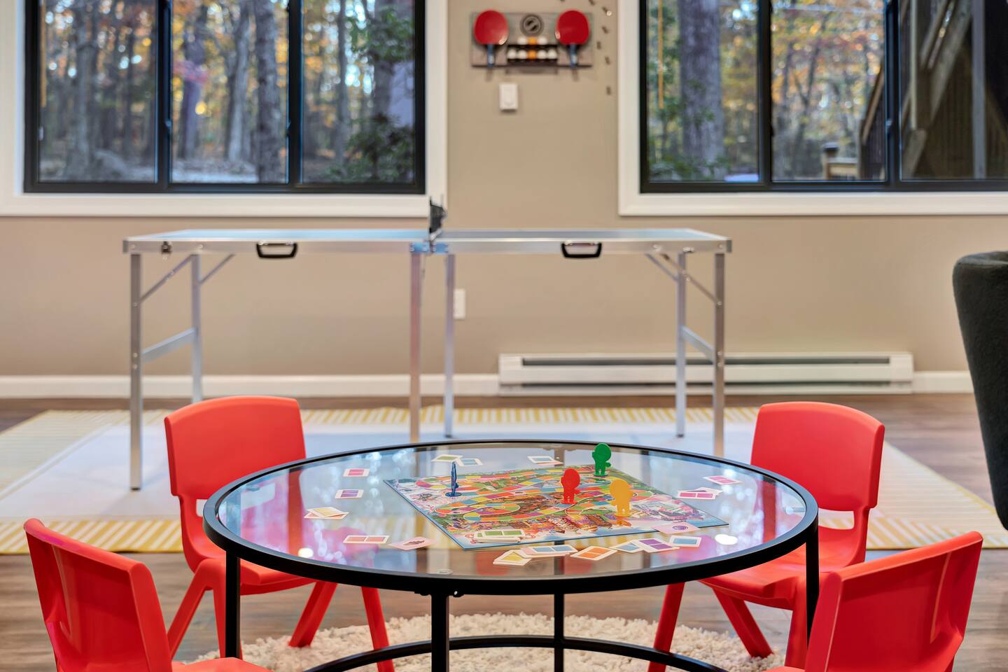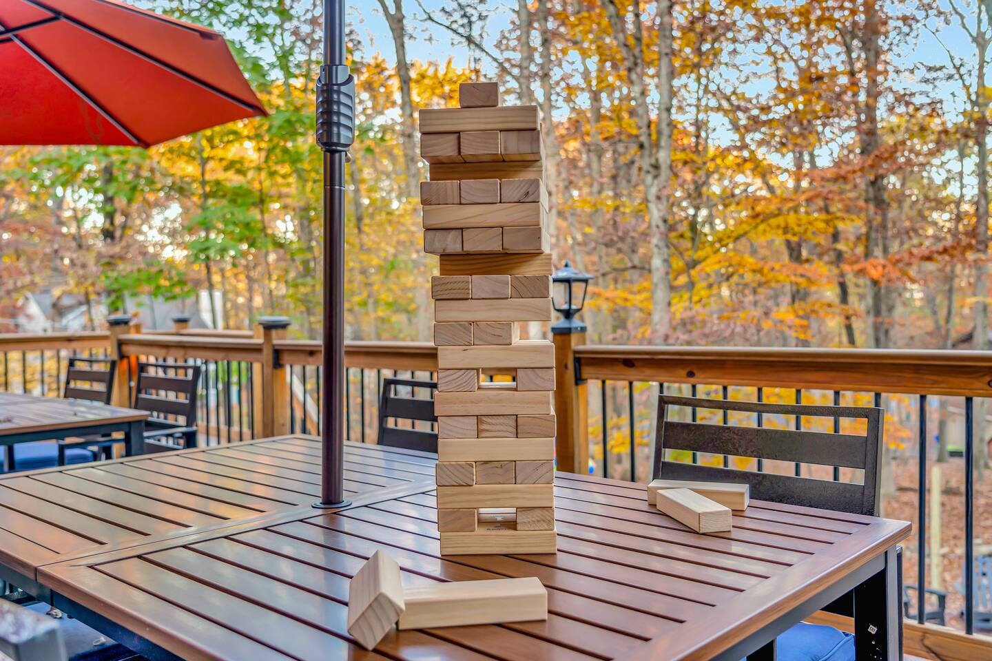 **During the summer months (Memorial Day weekend - Labor Day weekend), you will receive amenity badges that allow you to access the following amenities. If you’re staying with us outside of these dates, these amenities will be closed.** ☀ Lakes (with beach access - swimming allowed!) ☀ Pools ☀ Tennis courts ☀ Basketball courts ☀ Volleyball courts ☀ Dog park ☀ Playground areas KEY FEATURES: ☀ 5 beautiful bedrooms; 2 kings, 2 queens, 1 full, & 2 twin beds ☀ 3 full bathrooms ☀ Modern kitchen with new, stainless steel appliances ☀ Grand living room with lots of comfy seating & smart TV ☀ Dining room with seating to comfortably accommodate 8 (plus countertop seating & outdoor dining) ☀ TWO amazing game rooms; pool table, arcade games, ping pong, foosball, & more! ☀ Private movie theater with classic theater seating & fun ambiance! ☀ Private & peaceful resort-style backyard surrounded by nature; hot tub, fire pit, jungle gym, & TONS more! Here Are A Few Kind Words From Our Past Guests: “This was a great place to stay! The morning light through the windows was so beautiful. Overall, just a relaxing experience. The hosts were super responsive whenever I had a question. I would stay again!” - Emily “Sabrina was very accommodating and communicative. the house is beautiful and very comfortable, close to nature hikes.” - Jennifer “This place was lovely! Exactly as pictured! Very clean and excellent host experience!!! I plan to come back again!” - Regina ☆☆ BEDROOMS ☆☆ This three-level home has 5 bedrooms throughout. On the main floor, there is one bedroom with a king bed, smart TV, and attached ensuite bathroom. There are two separate entrances to the top level - one goes to its own private master suite, totally separated from the rest of the home. The master suite has a king bed, smart TV, and private ensuite bathroom. On the other side of the third floor are the remaining bedrooms. The third and fourth bedrooms have a queen in each, while the fifth bedroom has a twin-over-full bunk & a separate twin bed. ☆☆ BATHROOMS ☆☆ There are three full bathrooms in this home. The main floor bathroom has a sink, toilet, and shower/tub combo. The private ensuite bathroom on the third floor has a sink, toilet, walk-in shower, & soaking tub. The third bathroom, which is accessible by the other three bedrooms on this floor, has a sink, toilet, and shower/tub combo. ☆☆ KITCHEN & DINING ☆☆ The modern kitchen is located right off of the main living areas, and is loaded with all new stainless steel appliances & a coffee station (including a Keurig & coffee pods). The dining room is right next to the kitchen, with enough seating to comfortably fit 8 people, and opens right up to the rest of the living areas & also has direct access to the private back deck. There is additional countertop seating in the kitchen, as well as plenty of seating on the private back deck. ☆☆ LIVING ROOM ☆☆ In the living room, you’ll be greeted with lots of comfy seating, a big smart TV, and beautiful, modern design that will catch your eye as soon as you enter! This is the perfect spot to host your movie nights & games with your friends and family. ☆☆ GAME ROOMS ☆☆ Keep your family and friends entertained throughout your stay in our TWO amenity-filled game rooms! Pool table, ping pong, foosball, air hockey, basketball (Pop-a-Shot), arcade games, board games, card games, and seating to enjoy the TVs in each game room. Whether your reason for staying is to explore the town or stay at home and relax, this place will be the perfect spot to unwind! ☆☆ MOVIE THEATER ☆☆ Right off of the game room is your private movie theater! A big smart TV, classic movie theater seating, and true theater ambiance to feel like you really are right in your own private movie theater. ☆☆ OUTDOOR SPACE ☆☆ This backyard is everything you could ask for, and more! ☀ Hot tub ☀ Fire pit ☀ Jungle gym ☀ Bowling ☀ Corn hole ☀ Ring toss ☀ Frisbee golf ☀ Giant Connect 4 ☀ Giant Jenga ☀ Outdoor lounge seating ☀ Outdoor dining There is so much to do here, that all of your friends & family will be thoroughly entertained throughout your entire stay. No matter the season, this backyard has it all. Book your stay with us today and you will NOT be disappointed. Get ready for a vacation you will never forget! ★☆ Book Now & Let Us Take Care Of You In The Poconos! ☆★