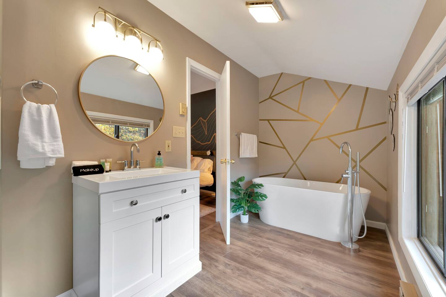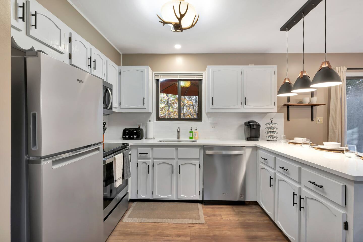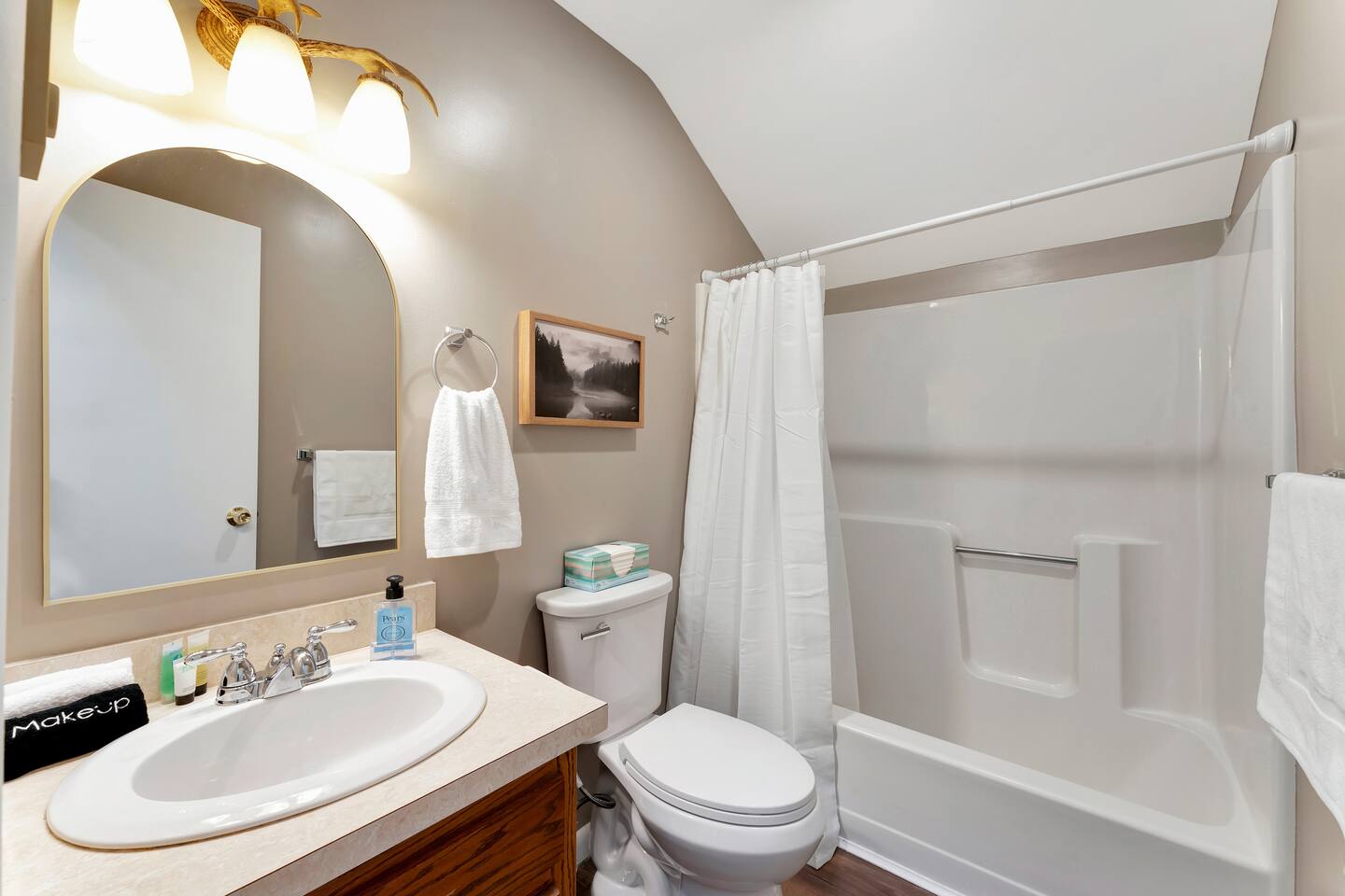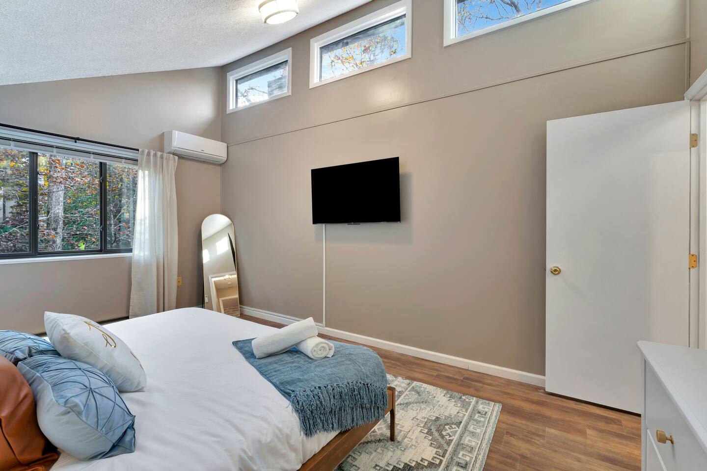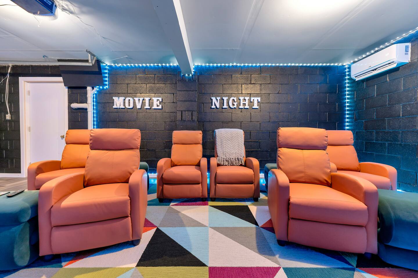 **During the summer months (Memorial Day weekend - Labor Day weekend), you will receive amenity badges that allow you to access the following amenities. If you’re staying with us outside of these dates, these amenities will be closed.** ☀ Lakes (with beach access - swimming allowed!) ☀ Pools ☀ Tennis courts ☀ Basketball courts ☀ Volleyball courts ☀ Dog park ☀ Playground areas KEY FEATURES: ☀ 5 beautiful bedrooms; 2 kings, 2 queens, 1 full, & 2 twin beds ☀ 3 full bathrooms ☀ Modern kitchen with new, stainless steel appliances ☀ Grand living room with lots of comfy seating & smart TV ☀ Dining room with seating to comfortably accommodate 8 (plus countertop seating & outdoor dining) ☀ TWO amazing game rooms; pool table, arcade games, ping pong, foosball, & more! ☀ Private movie theater with classic theater seating & fun ambiance! ☀ Private & peaceful resort-style backyard surrounded by nature; hot tub, fire pit, jungle gym, & TONS more! Here Are A Few Kind Words From Our Past Guests: “This was a great place to stay! The morning light through the windows was so beautiful. Overall, just a relaxing experience. The hosts were super responsive whenever I had a question. I would stay again!” - Emily “Sabrina was very accommodating and communicative. the house is beautiful and very comfortable, close to nature hikes.” - Jennifer “This place was lovely! Exactly as pictured! Very clean and excellent host experience!!! I plan to come back again!” - Regina ☆☆ BEDROOMS ☆☆ This three-level home has 5 bedrooms throughout. On the main floor, there is one bedroom with a king bed, smart TV, and attached ensuite bathroom. There are two separate entrances to the top level - one goes to its own private master suite, totally separated from the rest of the home. The master suite has a king bed, smart TV, and private ensuite bathroom. On the other side of the third floor are the remaining bedrooms. The third and fourth bedrooms have a queen in each, while the fifth bedroom has a twin-over-full bunk & a separate twin bed. ☆☆ BATHROOMS ☆☆ There are three full bathrooms in this home. The main floor bathroom has a sink, toilet, and shower/tub combo. The private ensuite bathroom on the third floor has a sink, toilet, walk-in shower, & soaking tub. The third bathroom, which is accessible by the other three bedrooms on this floor, has a sink, toilet, and shower/tub combo. ☆☆ KITCHEN & DINING ☆☆ The modern kitchen is located right off of the main living areas, and is loaded with all new stainless steel appliances & a coffee station (including a Keurig & coffee pods). The dining room is right next to the kitchen, with enough seating to comfortably fit 8 people, and opens right up to the rest of the living areas & also has direct access to the private back deck. There is additional countertop seating in the kitchen, as well as plenty of seating on the private back deck. ☆☆ LIVING ROOM ☆☆ In the living room, you’ll be greeted with lots of comfy seating, a big smart TV, and beautiful, modern design that will catch your eye as soon as you enter! This is the perfect spot to host your movie nights & games with your friends and family. ☆☆ GAME ROOMS ☆☆ Keep your family and friends entertained throughout your stay in our TWO amenity-filled game rooms! Pool table, ping pong, foosball, air hockey, basketball (Pop-a-Shot), arcade games, board games, card games, and seating to enjoy the TVs in each game room. Whether your reason for staying is to explore the town or stay at home and relax, this place will be the perfect spot to unwind! ☆☆ MOVIE THEATER ☆☆ Right off of the game room is your private movie theater! A big smart TV, classic movie theater seating, and true theater ambiance to feel like you really are right in your own private movie theater. ☆☆ OUTDOOR SPACE ☆☆ This backyard is everything you could ask for, and more! ☀ Hot tub ☀ Fire pit ☀ Jungle gym ☀ Bowling ☀ Corn hole ☀ Ring toss ☀ Frisbee golf ☀ Giant Connect 4 ☀ Giant Jenga ☀ Outdoor lounge seating ☀ Outdoor dining There is so much to do here, that all of your friends & family will be thoroughly entertained throughout your entire stay. No matter the season, this backyard has it all. Book your stay with us today and you will NOT be disappointed. Get ready for a vacation you will never forget! ★☆ Book Now & Let Us Take Care Of You In The Poconos! ☆★