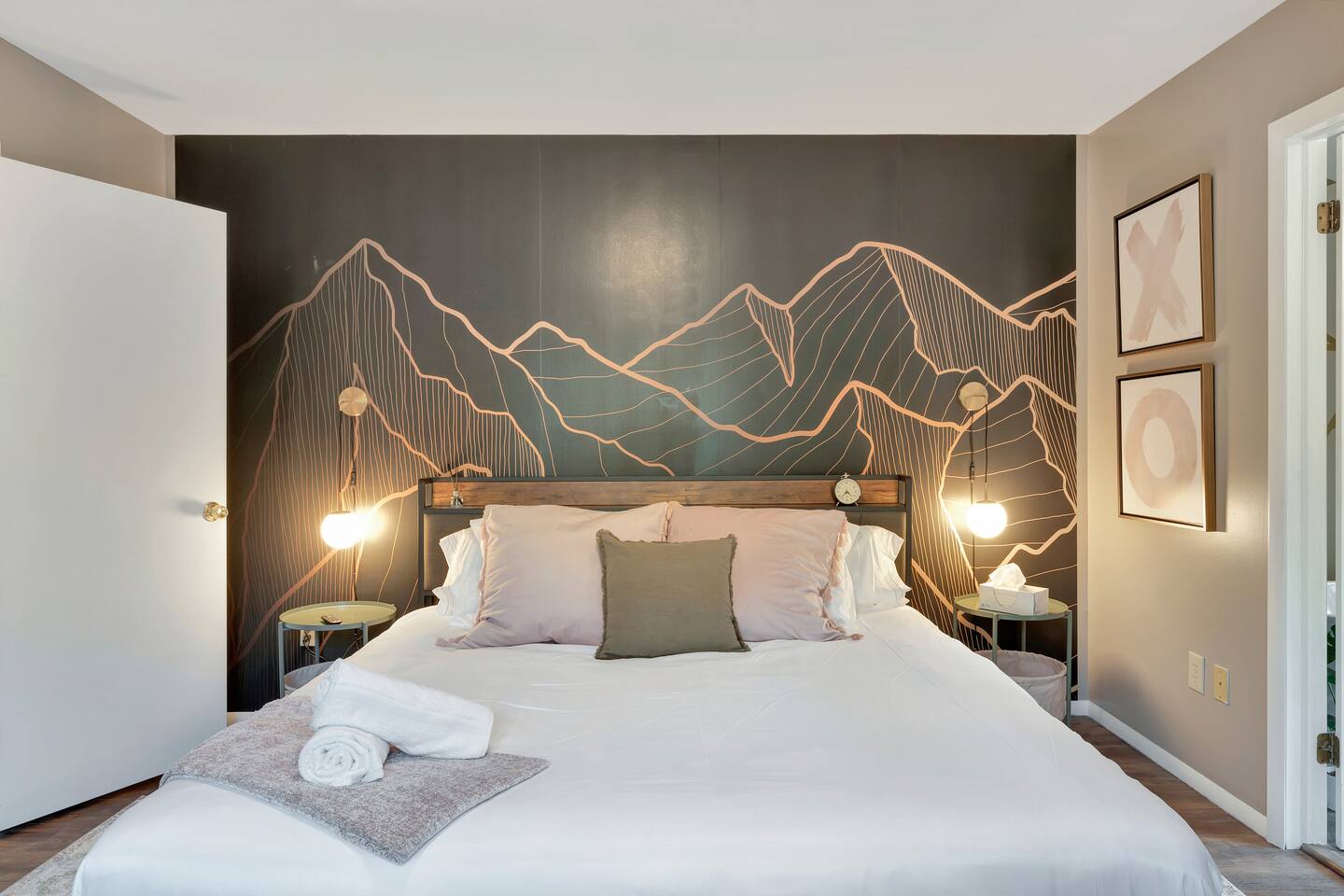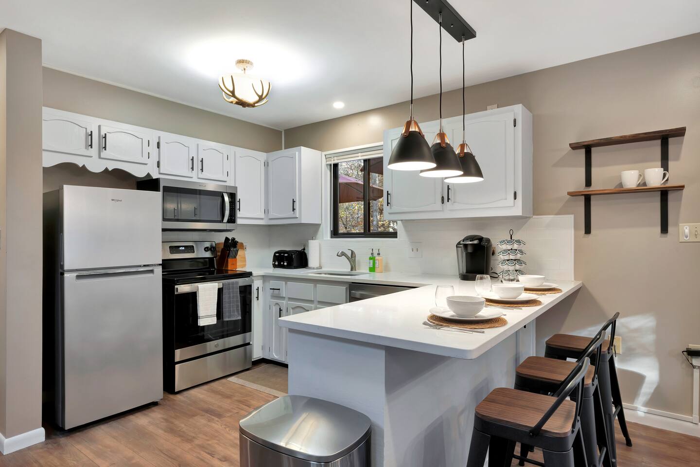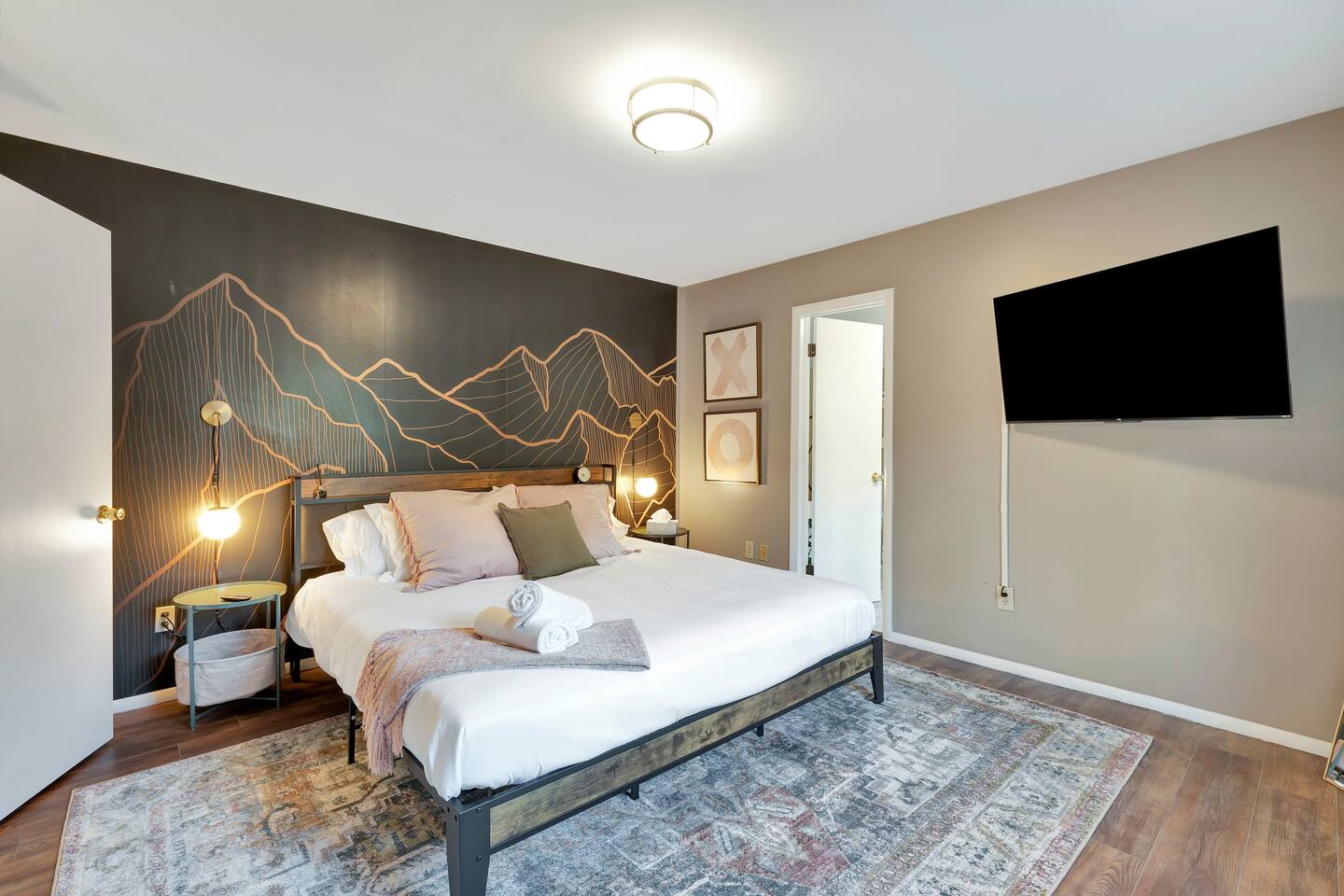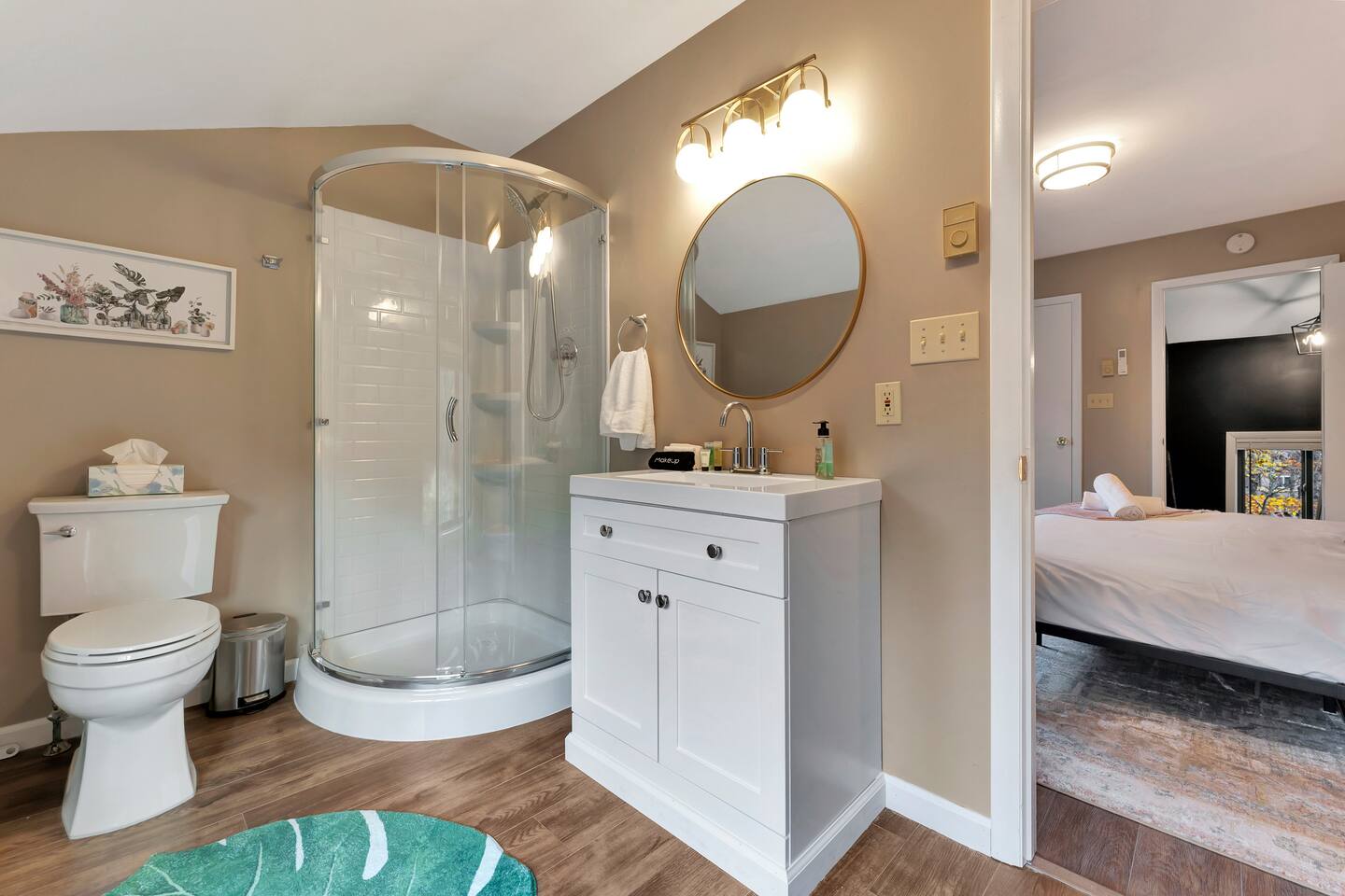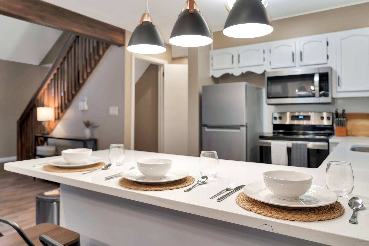 **During the summer months (Memorial Day weekend - Labor Day weekend), you will receive amenity badges that allow you to access the following amenities. If you’re staying with us outside of these dates, these amenities will be closed.** ☀ Lakes (with beach access - swimming allowed!) ☀ Pools ☀ Tennis courts ☀ Basketball courts ☀ Volleyball courts ☀ Dog park ☀ Playground areas KEY FEATURES: ☀ 5 beautiful bedrooms; 2 kings, 2 queens, 1 full, & 2 twin beds ☀ 3 full bathrooms ☀ Modern kitchen with new, stainless steel appliances ☀ Grand living room with lots of comfy seating & smart TV ☀ Dining room with seating to comfortably accommodate 8 (plus countertop seating & outdoor dining) ☀ TWO amazing game rooms; pool table, arcade games, ping pong, foosball, & more! ☀ Private movie theater with classic theater seating & fun ambiance! ☀ Private & peaceful resort-style backyard surrounded by nature; hot tub, fire pit, jungle gym, & TONS more! Here Are A Few Kind Words From Our Past Guests: “This was a great place to stay! The morning light through the windows was so beautiful. Overall, just a relaxing experience. The hosts were super responsive whenever I had a question. I would stay again!” - Emily “Sabrina was very accommodating and communicative. the house is beautiful and very comfortable, close to nature hikes.” - Jennifer “This place was lovely! Exactly as pictured! Very clean and excellent host experience!!! I plan to come back again!” - Regina ☆☆ BEDROOMS ☆☆ This three-level home has 5 bedrooms throughout. On the main floor, there is one bedroom with a king bed, smart TV, and attached ensuite bathroom. There are two separate entrances to the top level - one goes to its own private master suite, totally separated from the rest of the home. The master suite has a king bed, smart TV, and private ensuite bathroom. On the other side of the third floor are the remaining bedrooms. The third and fourth bedrooms have a queen in each, while the fifth bedroom has a twin-over-full bunk & a separate twin bed. ☆☆ BATHROOMS ☆☆ There are three full bathrooms in this home. The main floor bathroom has a sink, toilet, and shower/tub combo. The private ensuite bathroom on the third floor has a sink, toilet, walk-in shower, & soaking tub. The third bathroom, which is accessible by the other three bedrooms on this floor, has a sink, toilet, and shower/tub combo. ☆☆ KITCHEN & DINING ☆☆ The modern kitchen is located right off of the main living areas, and is loaded with all new stainless steel appliances & a coffee station (including a Keurig & coffee pods). The dining room is right next to the kitchen, with enough seating to comfortably fit 8 people, and opens right up to the rest of the living areas & also has direct access to the private back deck. There is additional countertop seating in the kitchen, as well as plenty of seating on the private back deck. ☆☆ LIVING ROOM ☆☆ In the living room, you’ll be greeted with lots of comfy seating, a big smart TV, and beautiful, modern design that will catch your eye as soon as you enter! This is the perfect spot to host your movie nights & games with your friends and family. ☆☆ GAME ROOMS ☆☆ Keep your family and friends entertained throughout your stay in our TWO amenity-filled game rooms! Pool table, ping pong, foosball, air hockey, basketball (Pop-a-Shot), arcade games, board games, card games, and seating to enjoy the TVs in each game room. Whether your reason for staying is to explore the town or stay at home and relax, this place will be the perfect spot to unwind! ☆☆ MOVIE THEATER ☆☆ Right off of the game room is your private movie theater! A big smart TV, classic movie theater seating, and true theater ambiance to feel like you really are right in your own private movie theater. ☆☆ OUTDOOR SPACE ☆☆ This backyard is everything you could ask for, and more! ☀ Hot tub ☀ Fire pit ☀ Jungle gym ☀ Bowling ☀ Corn hole ☀ Ring toss ☀ Frisbee golf ☀ Giant Connect 4 ☀ Giant Jenga ☀ Outdoor lounge seating ☀ Outdoor dining There is so much to do here, that all of your friends & family will be thoroughly entertained throughout your entire stay. No matter the season, this backyard has it all. Book your stay with us today and you will NOT be disappointed. Get ready for a vacation you will never forget! ★☆ Book Now & Let Us Take Care Of You In The Poconos! ☆★