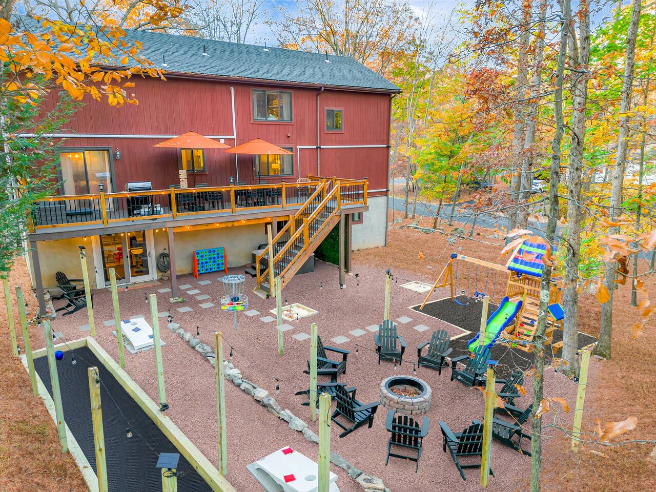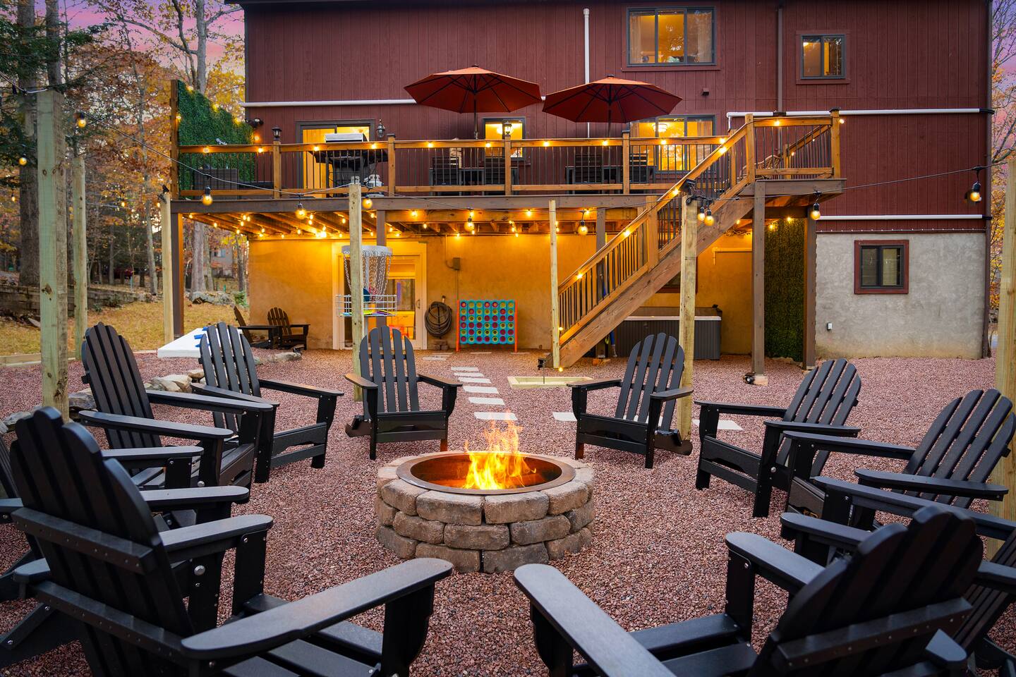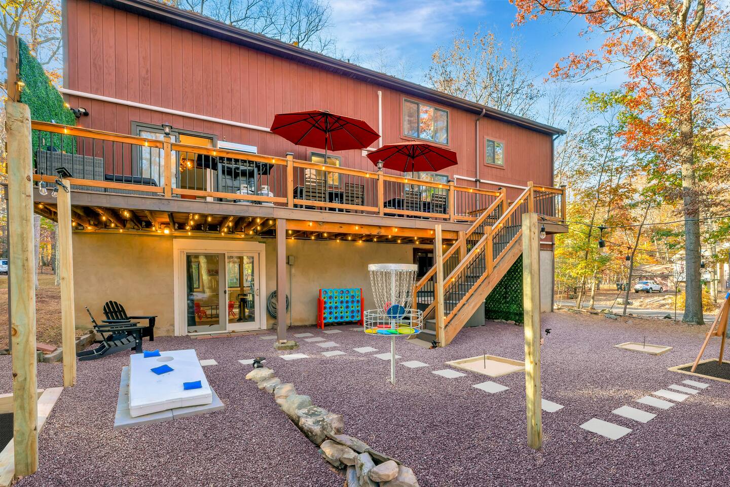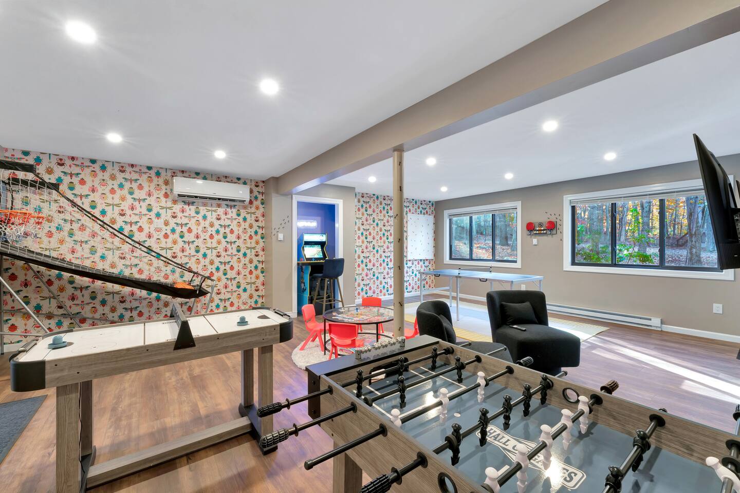 Welcome to your private Poconos resort! This massive 5 bedroom home has been completely upgraded to create a modern vacation experience, loaded with amenities! TWO game rooms, pool table, ping pong, air hockey, arcade games, fire pit, hot tub, bowling, frisbee golf, and so much more - all completely yours! 15 min - Delaware Water Gap, Downtown Stroudsburg 20 min - Kalahari Resort, Shawnee Mountain, Big Pocono State Park 30 min - Bushkill Falls Experience The Poconos With Us & Learn More Below!