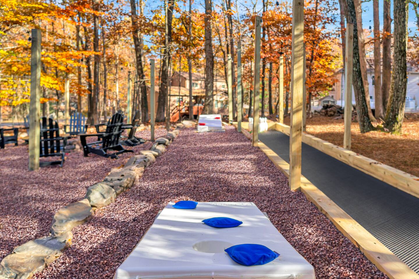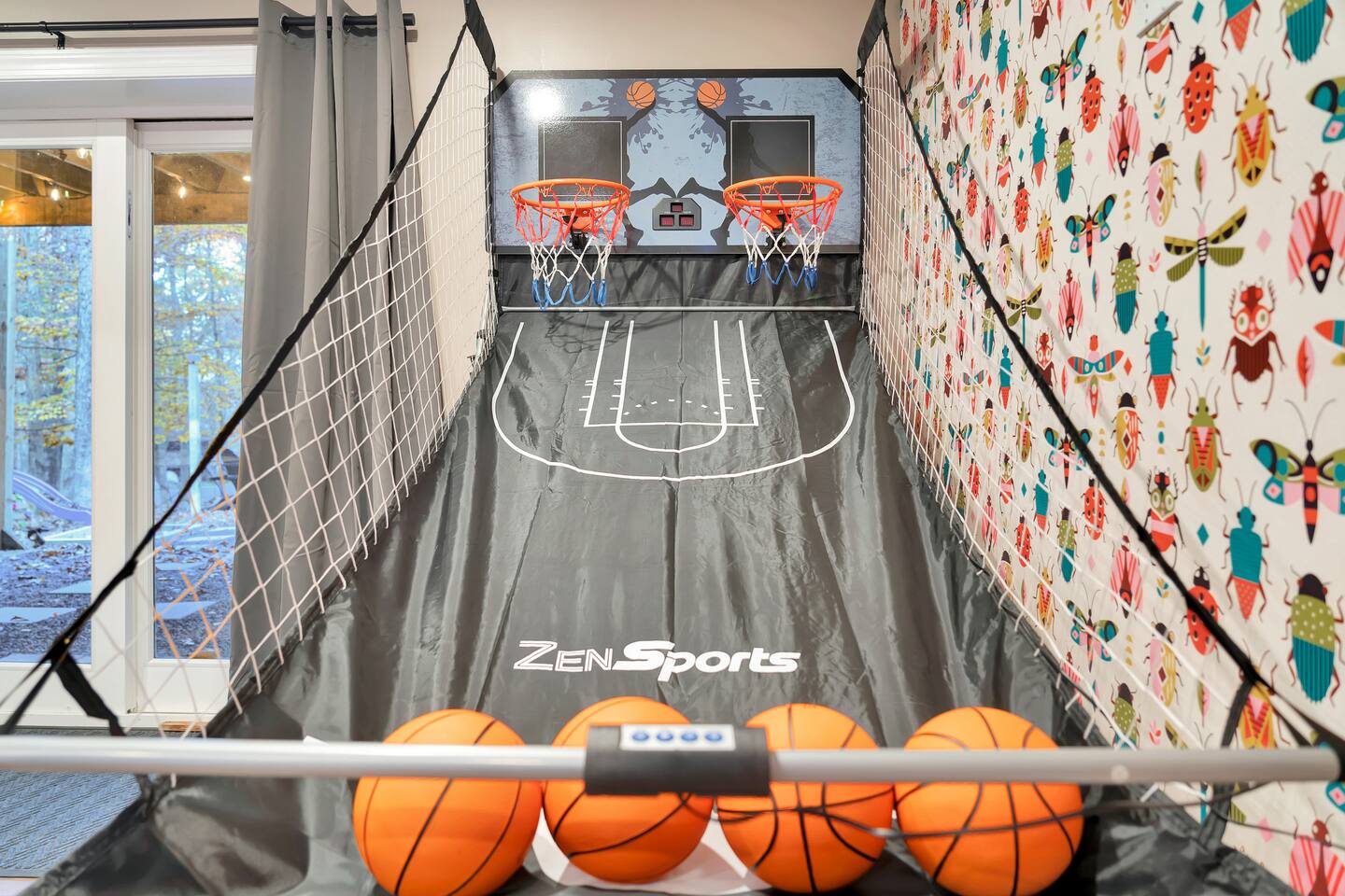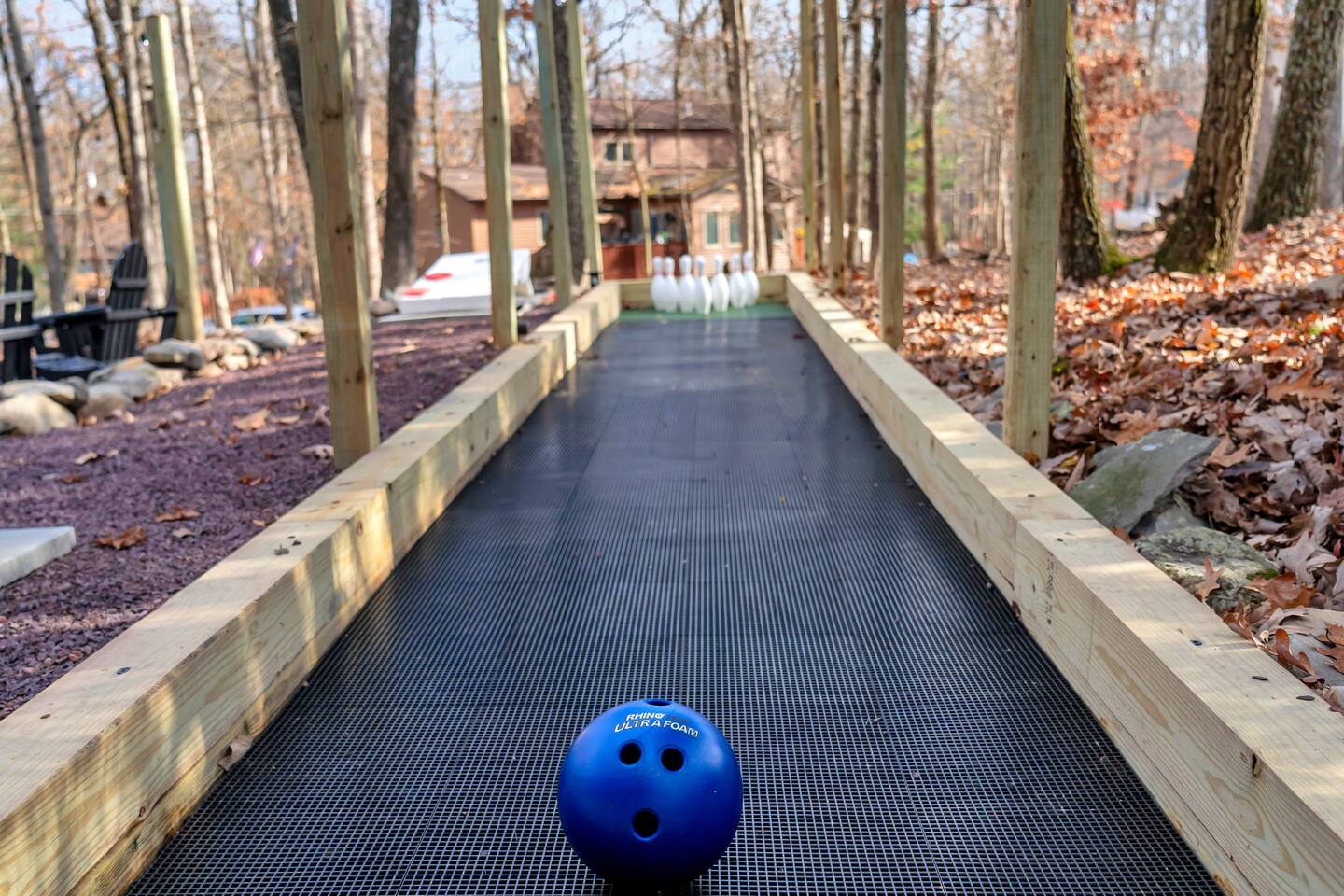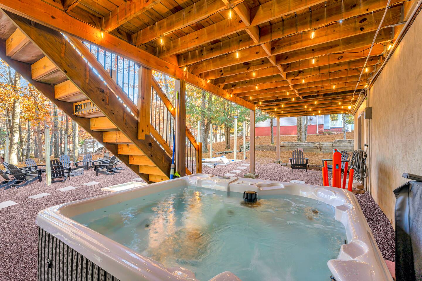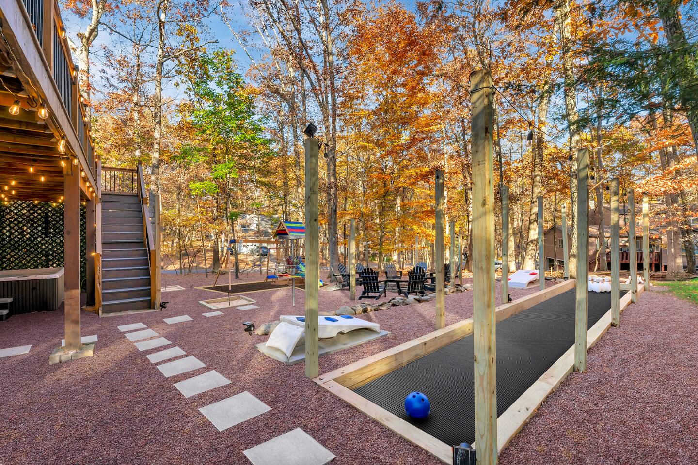 Welcome to your private Poconos resort! This massive 5 bedroom home has been completely upgraded to create a modern vacation experience, loaded with amenities! TWO game rooms, pool table, ping pong, air hockey, arcade games, fire pit, hot tub, bowling, frisbee golf, and so much more - all completely yours! 15 min - Delaware Water Gap, Downtown Stroudsburg 20 min - Kalahari Resort, Shawnee Mountain, Big Pocono State Park 30 min - Bushkill Falls Experience The Poconos With Us & Learn More Below!