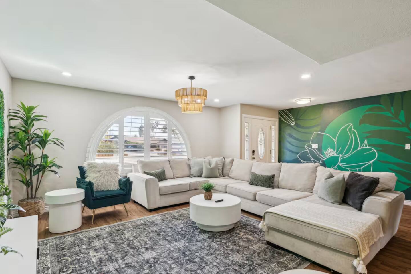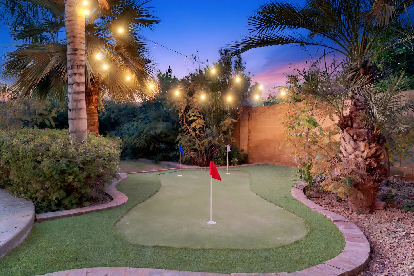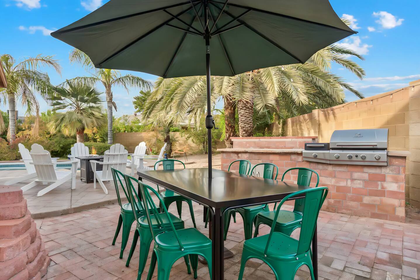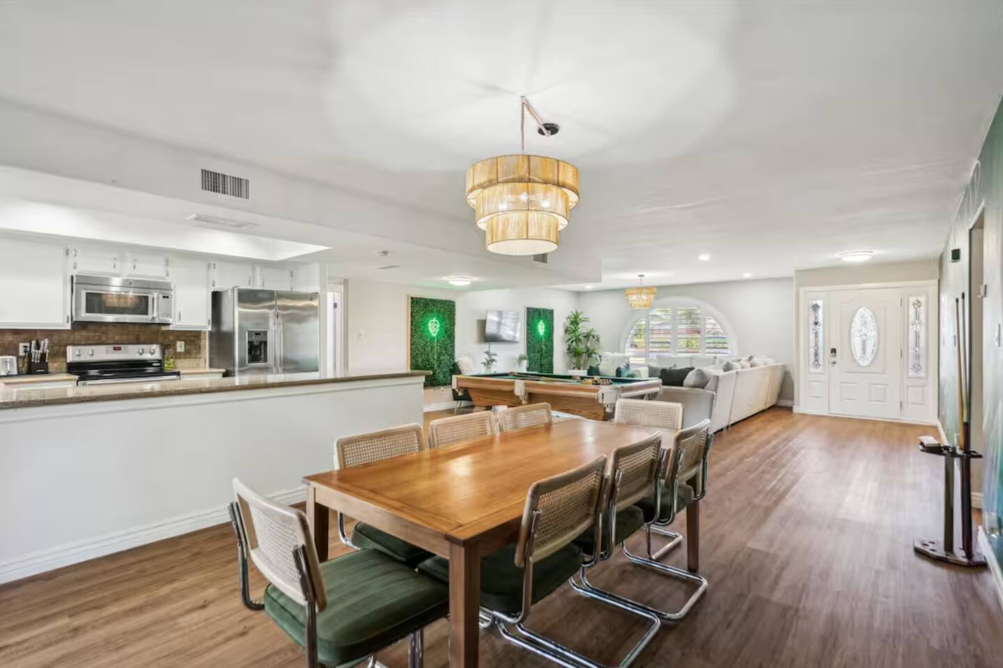 KEY FEATURES: ☀ UNREAL backyard - so tropical and filled with amenities! ☀ Pool table, putting green, fire pit, BBQ + much more! ☀ Heated pool + hot tub ☀ Tiki bar, outdoor dining, and outdoor lounge seating ☀ 4 comfy bedrooms; 1 king, 1 queen, 2 fulls (bunk bed), and 2 twin beds ☀ 2 full bathrooms; master ensuite & hallway bathroom ☀ Modern kitchen with stainless steel appliances ☀ Open living room with modern design - opens up to the rest of the entertainment space ☀ Fun mural backdrop behind the main dining space Here Are A Few Kind Words From Our Past Guests: “This was a great place to stay! The morning light through the windows was so beautiful. Overall, just a relaxing experience. The hosts were super responsive whenever I had a question. I would stay again!” - Emily “Sabrina was very accommodating and communicative. the house is beautiful and very comfortable, close to nature hikes.” - Jennifer “This place was lovely! Exactly as pictured! Very clean and excellent host experience!!! I plan to come back again!” - Regina ☆☆ BEDROOMS ☆☆ 4 comfy bedrooms, all masterfully designed! The master is equipped with a king bed, smart TV, and direct access to the backyard (ensuite bathroom is attached), on its own private wing of the house. The other three bedrooms are across the other end of the living space, consisting of one bedroom with a queen bed, one with two fulls (bunk bed), and one with two twin beds. ☆☆ BATHROOMS ☆☆ The master ensuite has two sinks & a walk-in shower, with complete privacy from the rest of the home. The second bathroom is shared by the remaining bedrooms, with one sink and a shower/tub combo. ☆☆ KITCHEN & DINING ☆☆ The modern kitchen opens right up to the rest of the living space, with new, modern appliances and fully stocked with all the cooking essentials you will need (including a Keurig & coffee pods). The dining area is right across from the kitchen, with seating for 8 right in front of a fun, vibrant "Scottsdale" themed mural! ☆☆ LIVING ROOM ☆☆ The open living space will take your breath away as you enter the home. A giant, comfy sectional, tropical design, pool table, and a big smart TV - the perfect spot for movie nights with your friends and family! Of course, this living area opens up directly to the rest of the attractions of the home: the game room, dining/kitchen, and backyard. It's a perfect entertaining space! ☆☆ OUTDOOR SPACE ☆☆ A backyard like you have never seen in Scottsdale! Trees and bushes surround this yard, giving you complete privacy to enjoy your own private oasis. Take a dip in the heated pool, or sun bathe in the comfy lounge chairs beside all of the other lounge seating that this yard has to offer. Another large comfy sofa, propane fire pit, an outdoor dining table, & a unique set up at a tiki bar provides you with many options to sit out here and enjoy the beauty of Scottsdale! Looking for family entertainment? Look no further than this amazing yard! Putting green, hot tub, and so much more. Whether you are looking for a spot for the kids to have a blast, or if you're looking for an fun adult retreat, this yard has it all! ★☆ Book Now & Let Us Take Care Of You In Scottsdale! ☆★