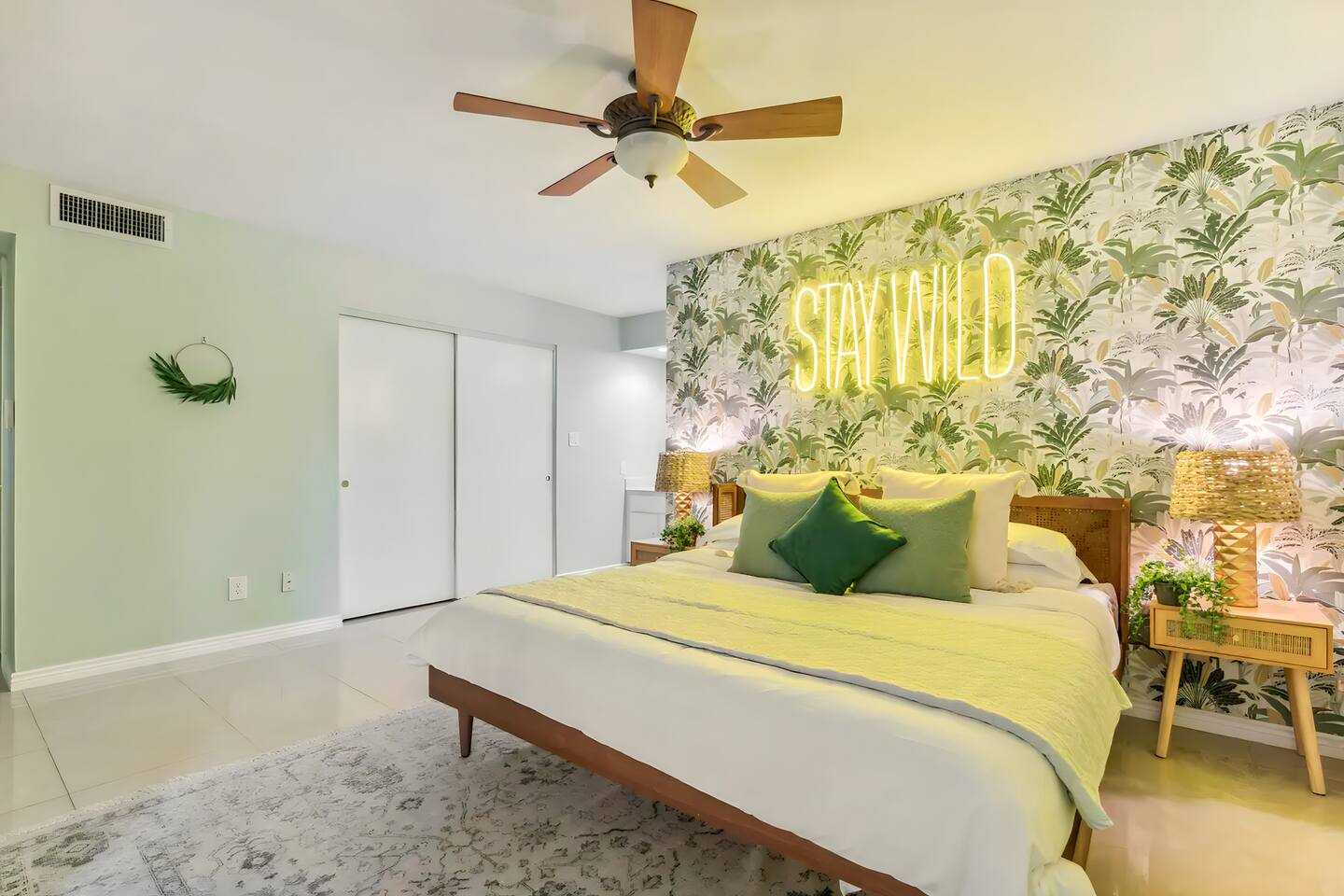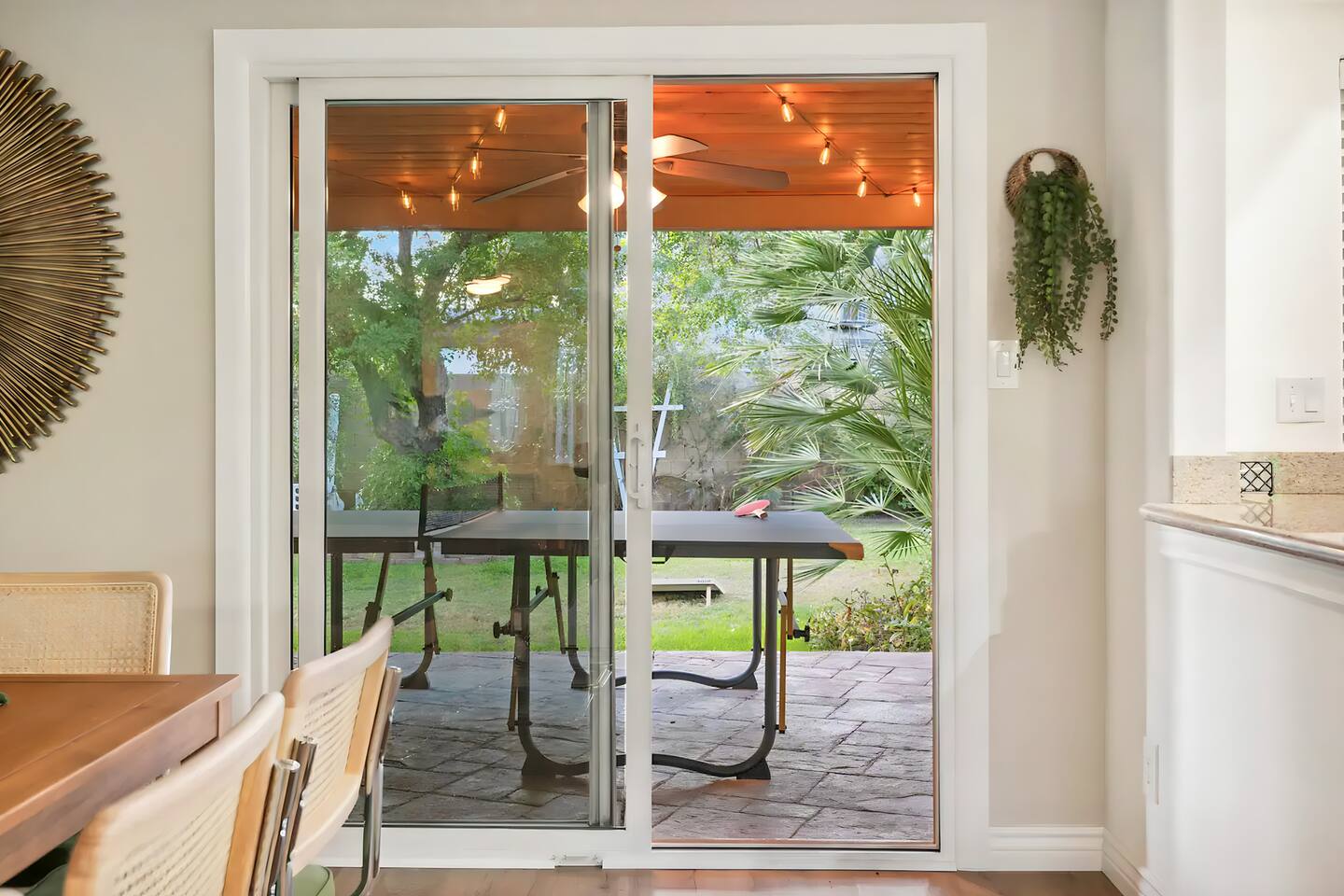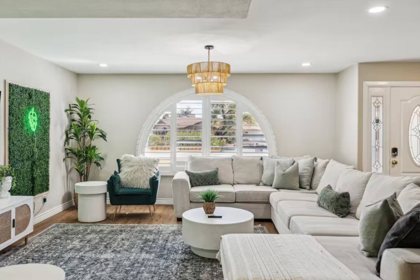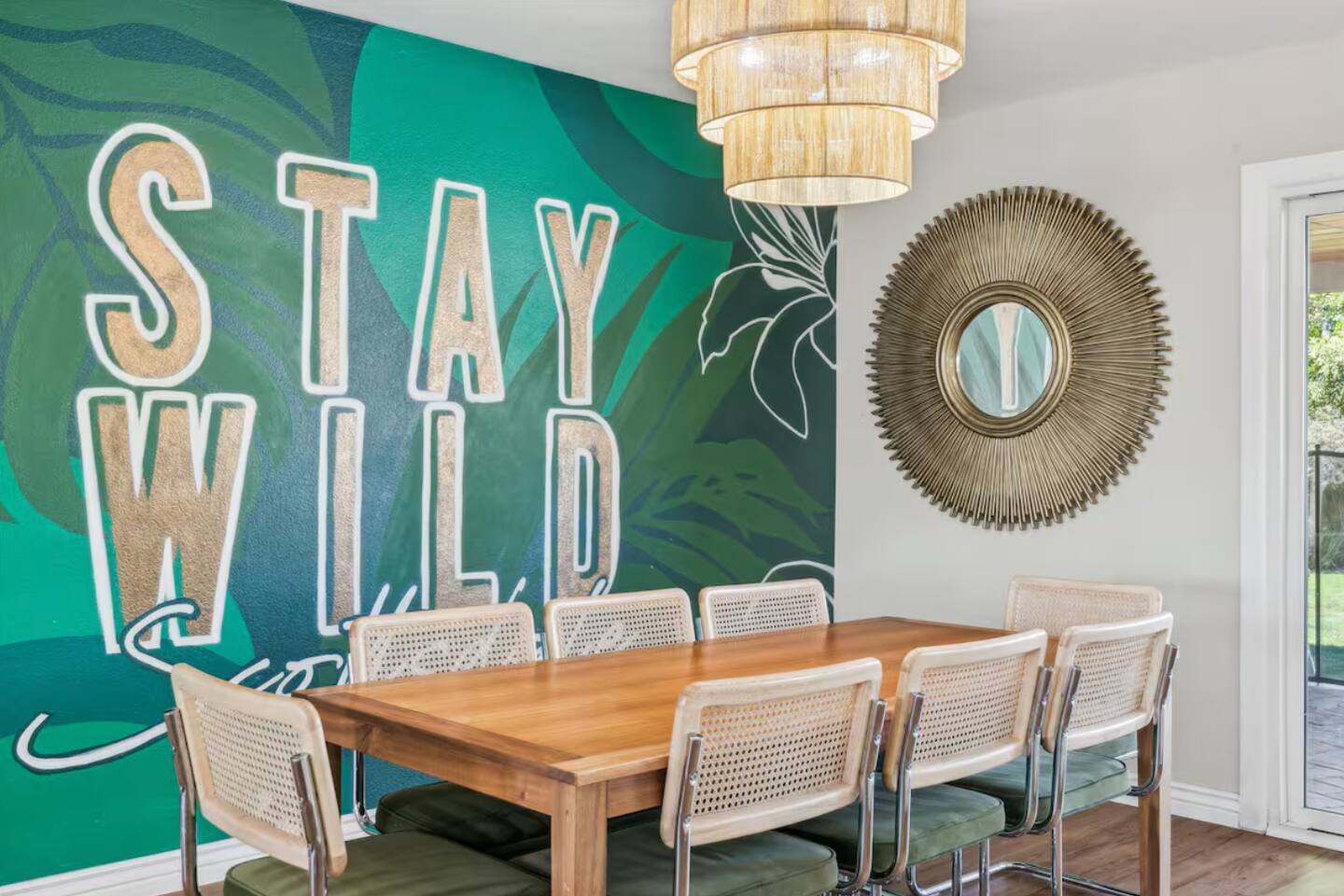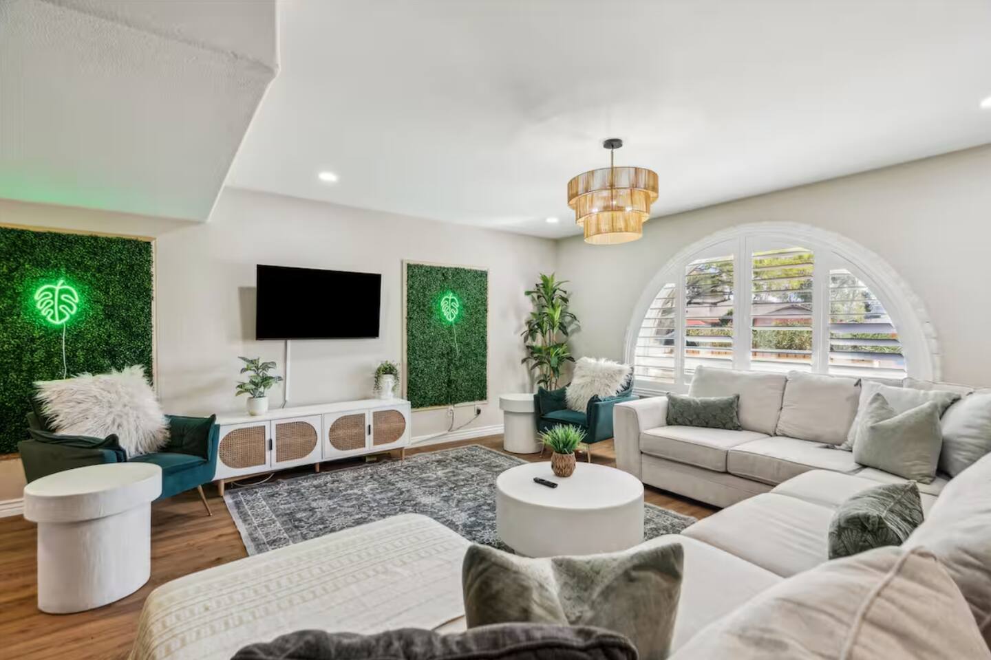 KEY FEATURES: ☀ UNREAL backyard - so tropical and filled with amenities! ☀ Pool table, putting green, fire pit, BBQ + much more! ☀ Heated pool + hot tub ☀ Tiki bar, outdoor dining, and outdoor lounge seating ☀ 4 comfy bedrooms; 1 king, 1 queen, 2 fulls (bunk bed), and 2 twin beds ☀ 2 full bathrooms; master ensuite & hallway bathroom ☀ Modern kitchen with stainless steel appliances ☀ Open living room with modern design - opens up to the rest of the entertainment space ☀ Fun mural backdrop behind the main dining space Here Are A Few Kind Words From Our Past Guests: “This was a great place to stay! The morning light through the windows was so beautiful. Overall, just a relaxing experience. The hosts were super responsive whenever I had a question. I would stay again!” - Emily “Sabrina was very accommodating and communicative. the house is beautiful and very comfortable, close to nature hikes.” - Jennifer “This place was lovely! Exactly as pictured! Very clean and excellent host experience!!! I plan to come back again!” - Regina ☆☆ BEDROOMS ☆☆ 4 comfy bedrooms, all masterfully designed! The master is equipped with a king bed, smart TV, and direct access to the backyard (ensuite bathroom is attached), on its own private wing of the house. The other three bedrooms are across the other end of the living space, consisting of one bedroom with a queen bed, one with two fulls (bunk bed), and one with two twin beds. ☆☆ BATHROOMS ☆☆ The master ensuite has two sinks & a walk-in shower, with complete privacy from the rest of the home. The second bathroom is shared by the remaining bedrooms, with one sink and a shower/tub combo. ☆☆ KITCHEN & DINING ☆☆ The modern kitchen opens right up to the rest of the living space, with new, modern appliances and fully stocked with all the cooking essentials you will need (including a Keurig & coffee pods). The dining area is right across from the kitchen, with seating for 8 right in front of a fun, vibrant "Scottsdale" themed mural! ☆☆ LIVING ROOM ☆☆ The open living space will take your breath away as you enter the home. A giant, comfy sectional, tropical design, pool table, and a big smart TV - the perfect spot for movie nights with your friends and family! Of course, this living area opens up directly to the rest of the attractions of the home: the game room, dining/kitchen, and backyard. It's a perfect entertaining space! ☆☆ OUTDOOR SPACE ☆☆ A backyard like you have never seen in Scottsdale! Trees and bushes surround this yard, giving you complete privacy to enjoy your own private oasis. Take a dip in the heated pool, or sun bathe in the comfy lounge chairs beside all of the other lounge seating that this yard has to offer. Another large comfy sofa, propane fire pit, an outdoor dining table, & a unique set up at a tiki bar provides you with many options to sit out here and enjoy the beauty of Scottsdale! Looking for family entertainment? Look no further than this amazing yard! Putting green, hot tub, and so much more. Whether you are looking for a spot for the kids to have a blast, or if you're looking for an fun adult retreat, this yard has it all! ★☆ Book Now & Let Us Take Care Of You In Scottsdale! ☆★