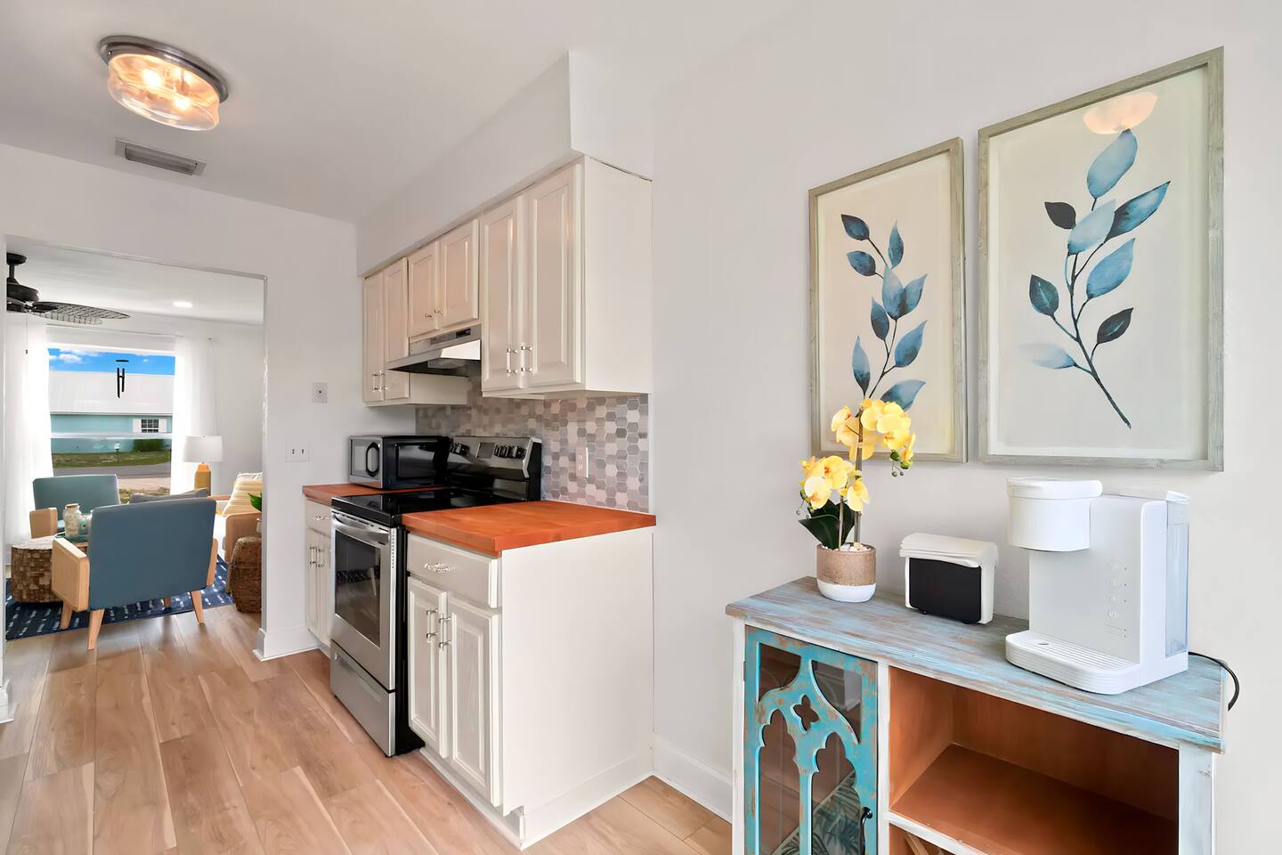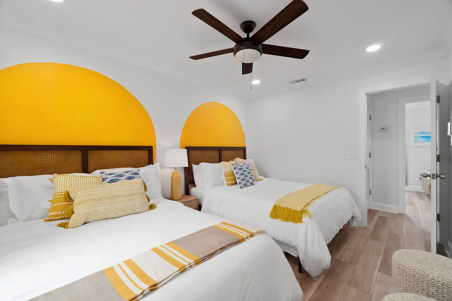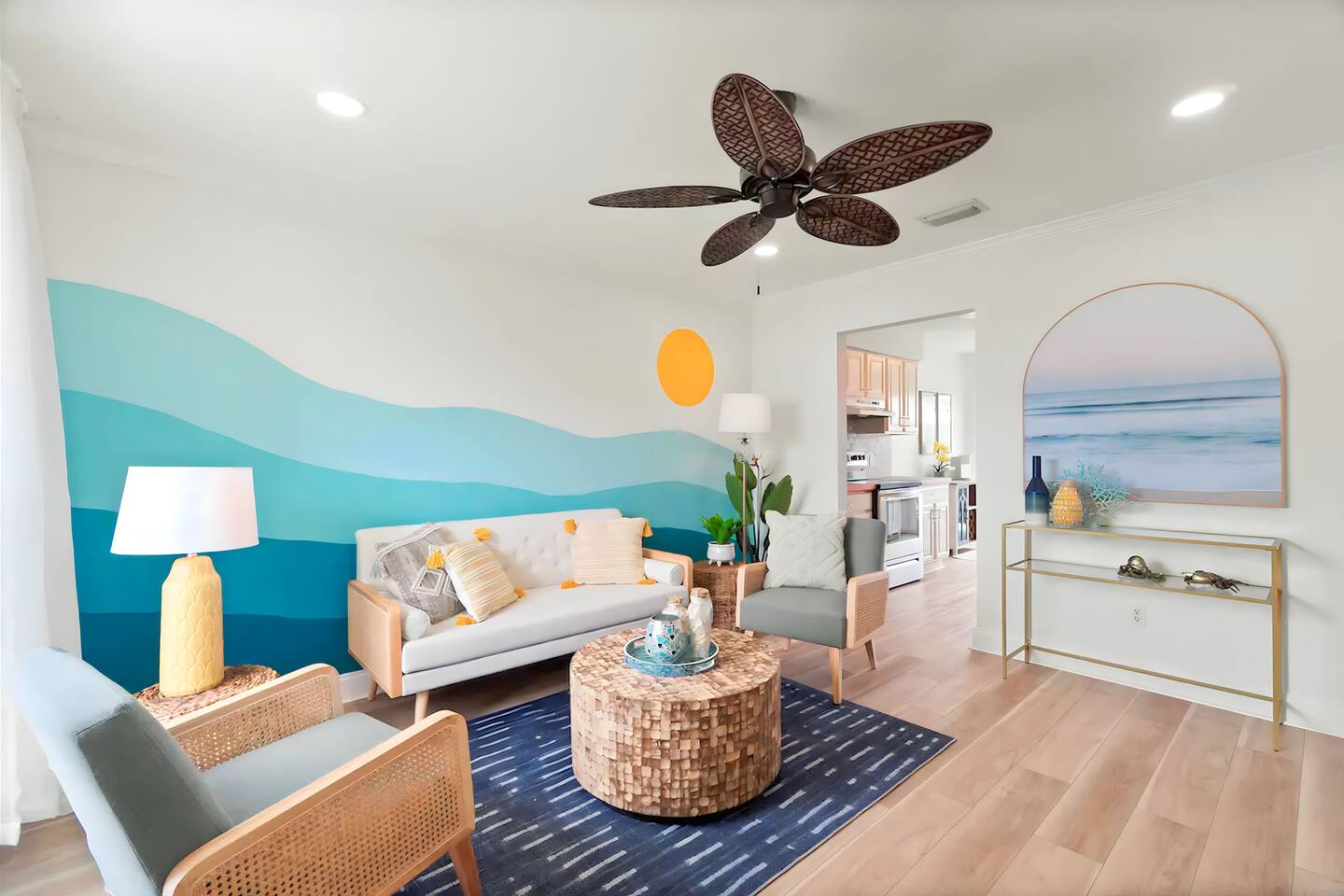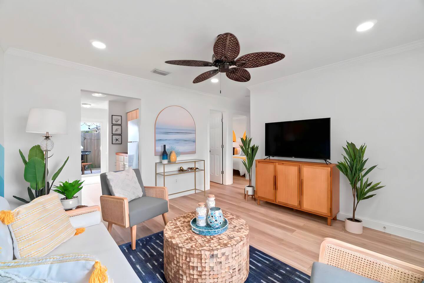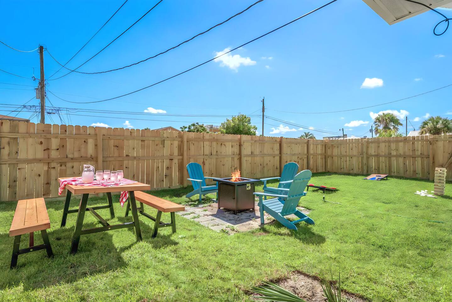 KEY FEATURES: ☀ 2 bedrooms; 3 comfy queen beds ☀ 1 bathroom + bathroom essentials ☀ Fully-equipped, upgraded kitchen with modern appliances ☀ Spacious private backyard, grill, fire pit, outdoor games ☀ Outdoor dining area, beach essentials ☀ Washer + dryer ☀ We are pet-friendly! ($20/pet per night, max of 3) Here Are A Few Kind Words From Our Past Guests: "Super friendly hosts and the cabin is cute and quaint. We had a wonderful weekend." - Lena "We had the best little getaway in this cabin. Everything was clean and as pictured. The cabin was so cozy and the lights were the perfect touch! Would definitely go back!" - Penny "This place was lovely! Exactly as pictured! Very clean and excellent host experience!!! I plan to come back again!" - Regina ☆☆ BEDROOMS ☆☆ You'll have a great night's sleep, no matter which room you choose. The beds are exceptionally comfy and the theme is very cozy! In one bedroom, you will have a queen bed + a smart TV to yourself. In the larger bedroom, you will find two queen beds. ☆☆ BATHROOM ☆☆ The one full bathroom has a combo shower/tub and is stocked with all the bathroom essentials you could need, including plenty of shower towels, makeup towels, Q-tips, cotton balls, shampoo/conditioner, and body wash. ☆☆ KITCHEN & LIVING ROOM ☆☆ Sit back and relax in the beautiful, beach inspired design of the main living area! With a fun sunset mural, comfy seating, and a smart TV, you will experience the true relaxation of Panama City Beach. The kitchen has been completely renovated with new, modern appliances and the same bright, beach theme. Moving past the kitchen, you will find a coffee station (stocked with a Keurig, coffee pods, and creamer) and a small bistro table overlooking the private patio. ☆☆ OUTSIDE SPACE ☆☆ The truly special piece of this home is the outdoor area. Right off of the kitchen, you will walk into the private patio with comfy seating and an outdoor grill. Moving past the patio, you will find the brand new private yard, with a fire pit, picnic table, outdoor games, and plenty of space. ★☆ Book Today & Let Us Take Care Of You In Panama City Beach! ☆★
