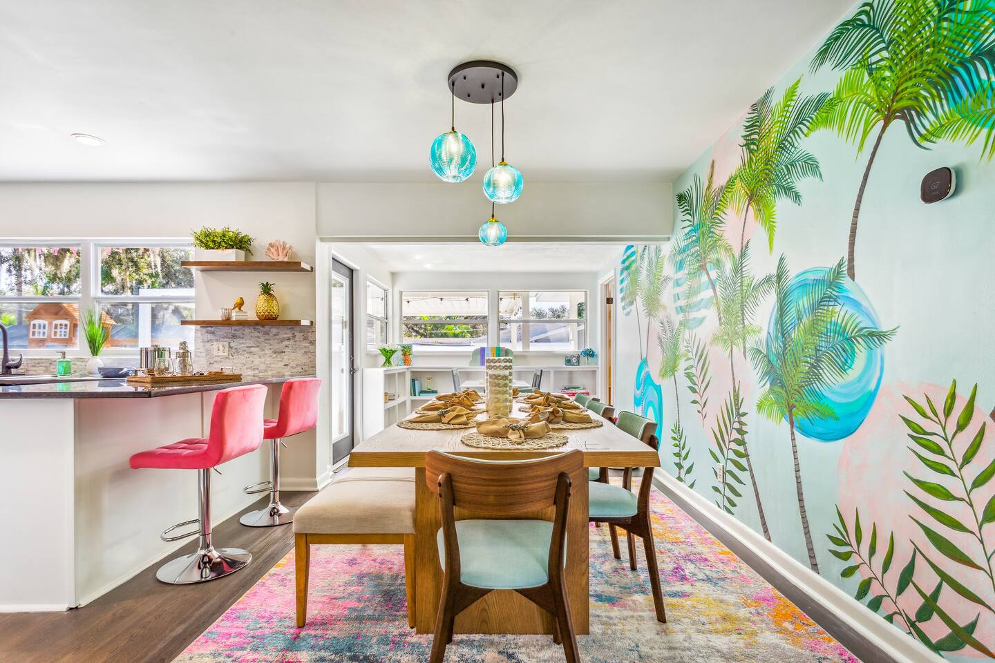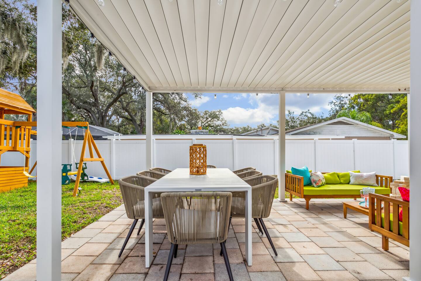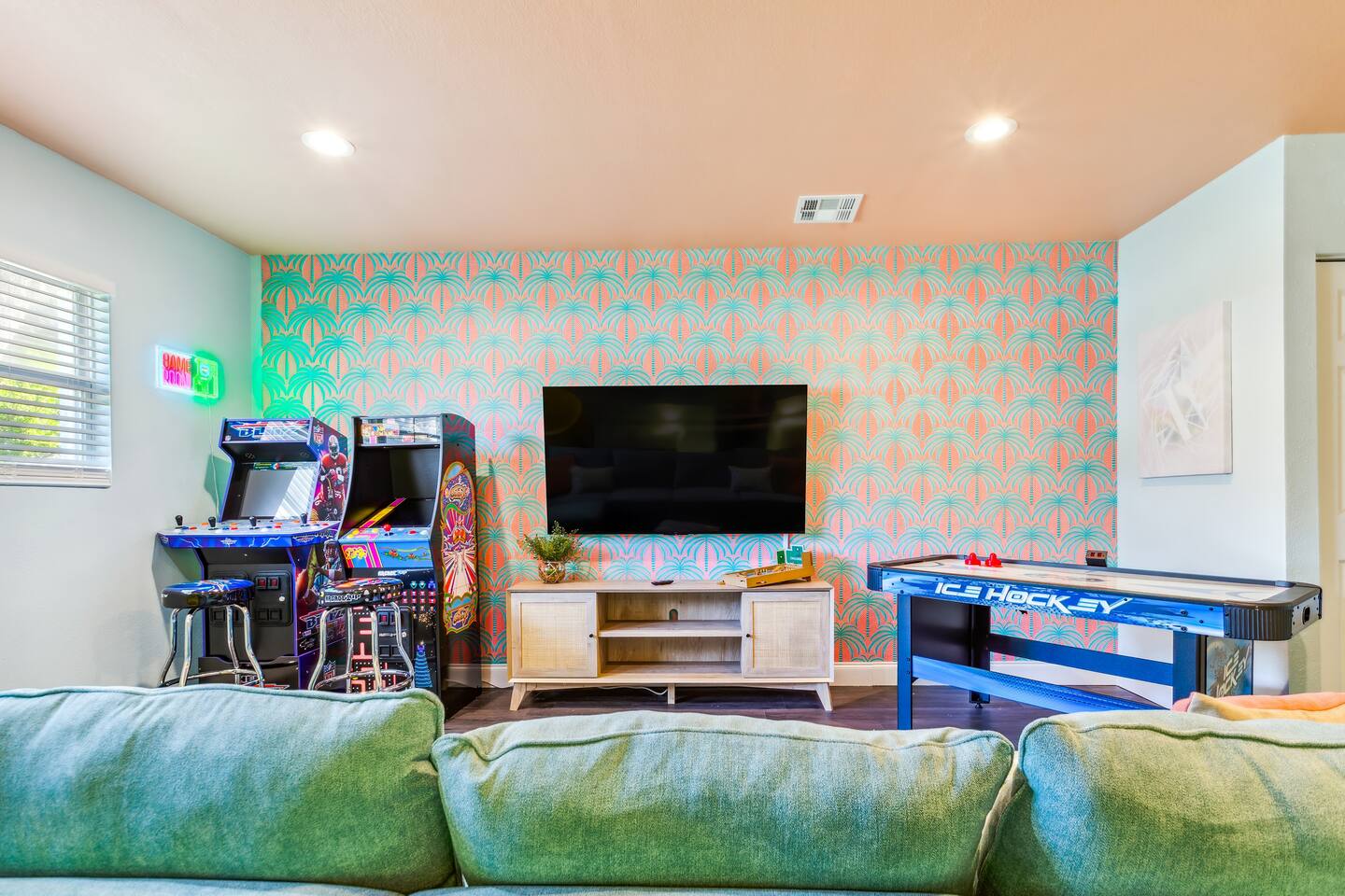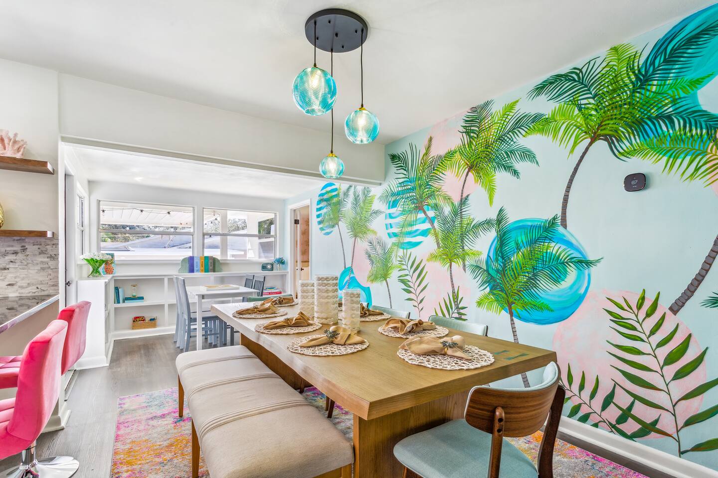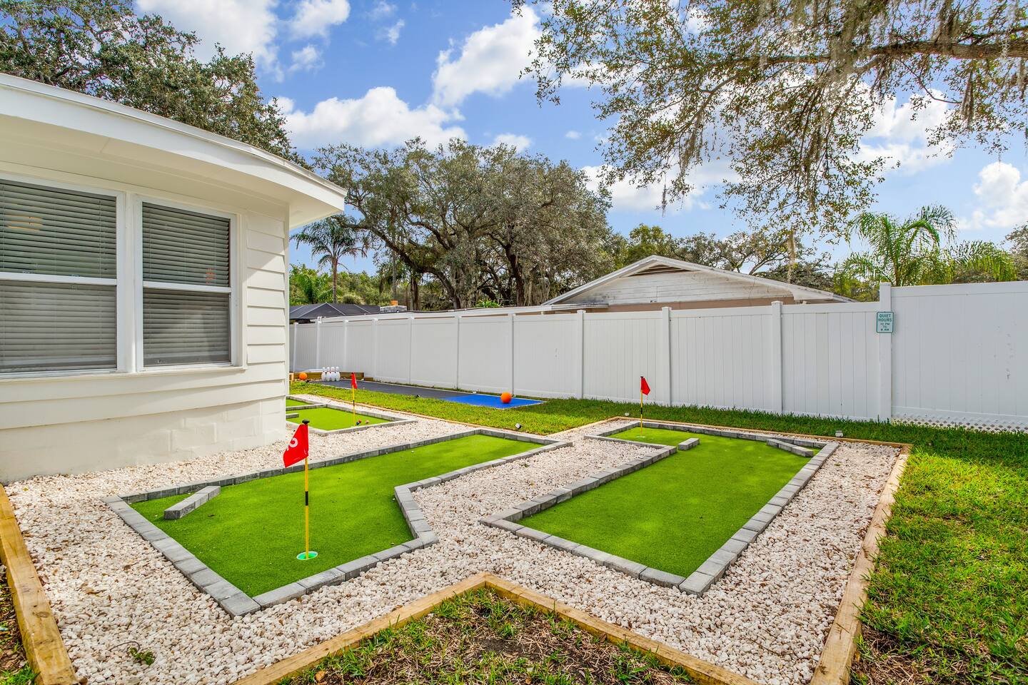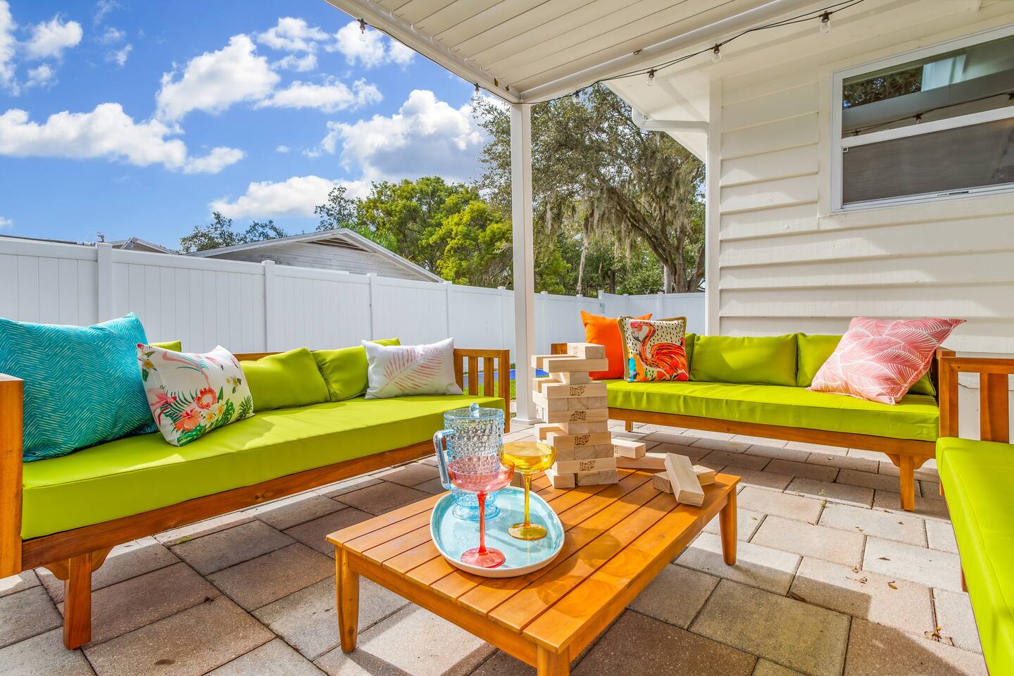 KEY FEATURES: ☀ 5 spacious bedrooms with fun, unique designs; 1 king, 2 queens, 4 fulls, & 2 twin beds ☀ 2 full bathrooms ☀ Beautiful chef's kitchen with modern appliances & design ☀ Living room with lots of comfy seating and large smart TV ☀ Game rooms with pool table, air hockey, arcade games, & more ☀ Vibrant dining room that opens up to the main living area; great for entertaining! ☀ Huge backyard with heated pool, mini golf, fire pit, games, and more ☀ Quiet, private neighborhood just minutes away from beautiful beaches! Here Are A Few Kind Words From Our Past Guests: “This was a great place to stay! The morning light through the windows was so beautiful. Overall, just a relaxing experience. The hosts were super responsive whenever I had a question. I would stay again!” - Emily “Sabrina was very accommodating and communicative. the house is beautiful and very comfortable, close to nature hikes.” - Jennifer “This place was lovely! Exactly as pictured! Very clean and excellent host experience!!! I plan to come back again!” - Regina ☆☆ BEDROOMS ☆☆ There are 5 beautiful bedrooms throughout this home. On one end of the home, you will find the first two bedrooms; one with a king bed (& smart TV), and the other with a queen bed. As you move along to the other side of the house, you'll find the three remaining bedrooms. One with another queen bed, another with 2 full beds, and the fifth (& most fun) room has two twin-over-full bunk beds, two slides, arcade games, air hockey, and lots of comfy seating to enjoy the large smart TV! ☆☆ BATHROOMS ☆☆ There are two full bathrooms in this home. One one end of the home is the first bathroom, with a sink, toilet, & shower/tub combo. On the other end of the house, the second bathroom has two sinks, a toilet, & a walk-in shower. ☆☆ KITCHEN & DINING ☆☆ The modern kitchen continues with the gorgeous, tropical vibe that is so perfectly designed through the entire home. With lots of counter space and bar tops seating, it's a great kitchen for entertaining! Just one room over is the dining room, which is bright, vibrant, and welcoming. The formal dining room seats 12, plus 2 countertop seats. There is also additional dining space right in the backyard, under the covered patio. ☆☆ LIVING ROOM ☆☆ As you walk into the home, you're greeted with the big, open living room, which has lots of comfy seating and a big smart TV. It's a great place for your movie or game nights, where the whole family can sit together in this cozy space! ☆☆ GAME ROOM ☆☆ On top of all the other amenities we offer here, you will find a game room filled with a pool table, smart TV, & hightop seating, of course with a gorgeous beach vibe! ☆☆ OUTDOOR SPACE ☆☆ This backyard is everything you could ask for, and more! ☀ Heated pool ☀ Fire pit ☀ Mini golf ☀ Bowling ☀ Jungle gym ☀ Corn hole ☀ Giant Connect 4 ☀ Giant Jenga ☀ BBQ grill ☀ Covered dining ☀ Covered lounge seating ☀ Sun loungers There is so much to do here, that all of your friends & family will be thoroughly entertained throughout your entire stay. No matter the season, this backyard has it all. Book your stay with us today and you will NOT be disappointed. Get ready for a vacation you will never forget! ★☆ Book Now & Let Us Take Care Of You In Seminole! ☆★