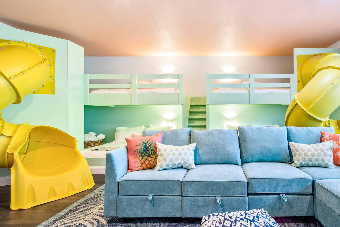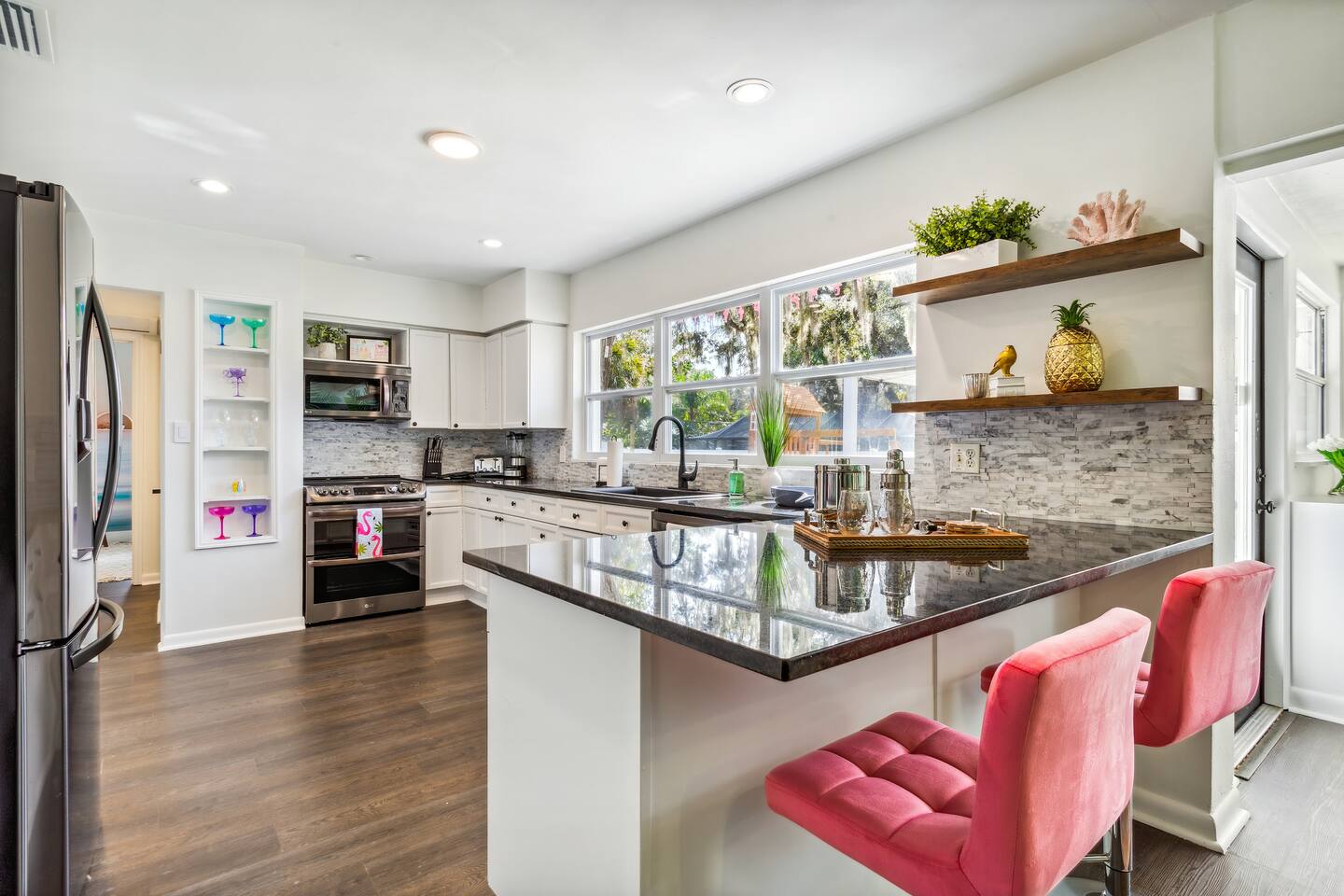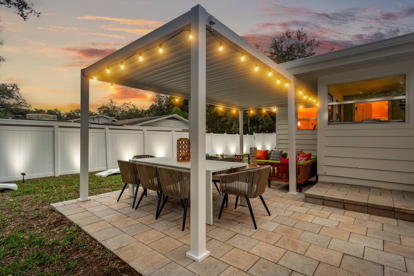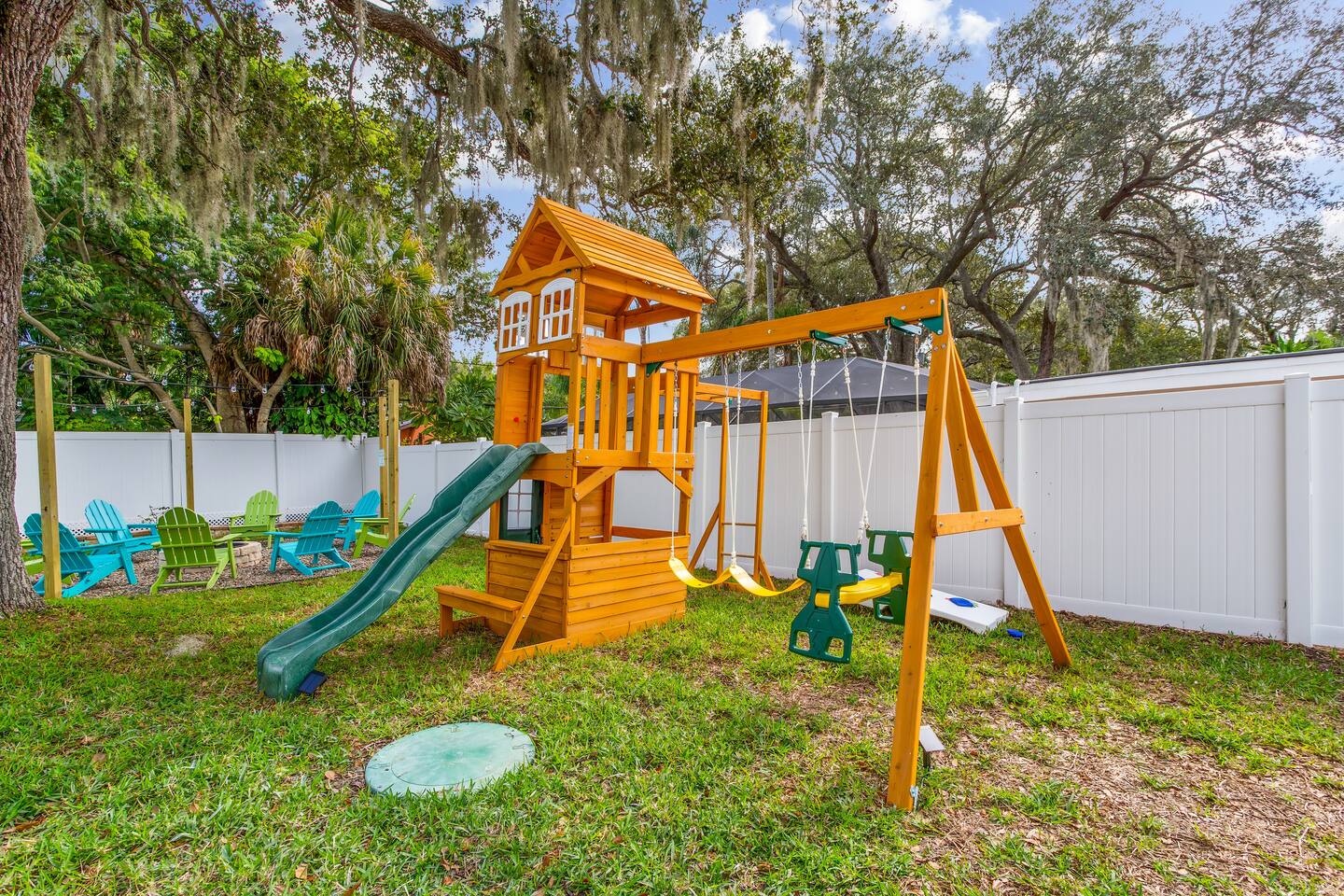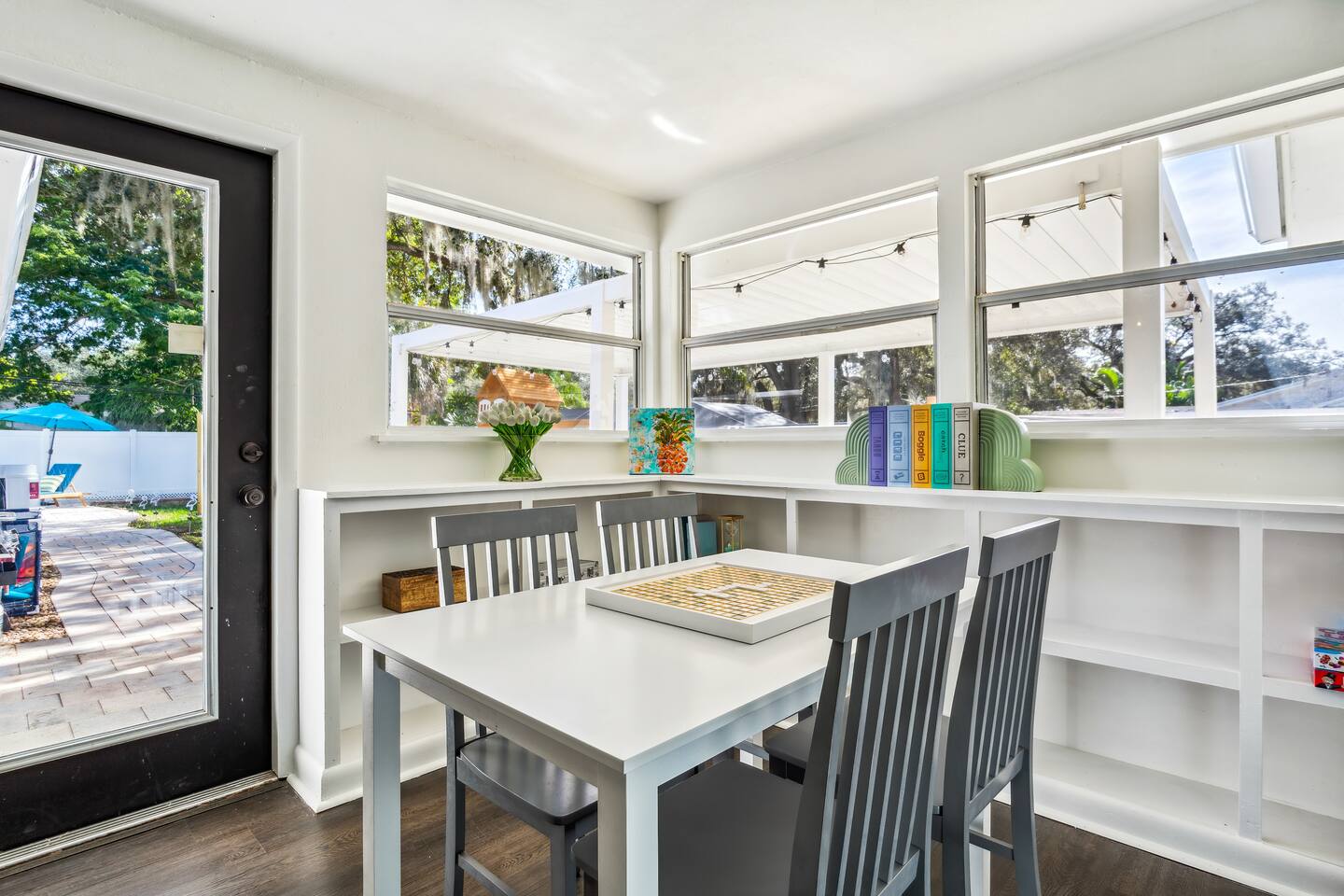 KEY FEATURES: ☀ 5 spacious bedrooms with fun, unique designs; 1 king, 2 queens, 4 fulls, & 2 twin beds ☀ 2 full bathrooms ☀ Beautiful chef's kitchen with modern appliances & design ☀ Living room with lots of comfy seating and large smart TV ☀ Game rooms with pool table, air hockey, arcade games, & more ☀ Vibrant dining room that opens up to the main living area; great for entertaining! ☀ Huge backyard with heated pool, mini golf, fire pit, games, and more ☀ Quiet, private neighborhood just minutes away from beautiful beaches! Here Are A Few Kind Words From Our Past Guests: “This was a great place to stay! The morning light through the windows was so beautiful. Overall, just a relaxing experience. The hosts were super responsive whenever I had a question. I would stay again!” - Emily “Sabrina was very accommodating and communicative. the house is beautiful and very comfortable, close to nature hikes.” - Jennifer “This place was lovely! Exactly as pictured! Very clean and excellent host experience!!! I plan to come back again!” - Regina ☆☆ BEDROOMS ☆☆ There are 5 beautiful bedrooms throughout this home. On one end of the home, you will find the first two bedrooms; one with a king bed (& smart TV), and the other with a queen bed. As you move along to the other side of the house, you'll find the three remaining bedrooms. One with another queen bed, another with 2 full beds, and the fifth (& most fun) room has two twin-over-full bunk beds, two slides, arcade games, air hockey, and lots of comfy seating to enjoy the large smart TV! ☆☆ BATHROOMS ☆☆ There are two full bathrooms in this home. One one end of the home is the first bathroom, with a sink, toilet, & shower/tub combo. On the other end of the house, the second bathroom has two sinks, a toilet, & a walk-in shower. ☆☆ KITCHEN & DINING ☆☆ The modern kitchen continues with the gorgeous, tropical vibe that is so perfectly designed through the entire home. With lots of counter space and bar tops seating, it's a great kitchen for entertaining! Just one room over is the dining room, which is bright, vibrant, and welcoming. The formal dining room seats 12, plus 2 countertop seats. There is also additional dining space right in the backyard, under the covered patio. ☆☆ LIVING ROOM ☆☆ As you walk into the home, you're greeted with the big, open living room, which has lots of comfy seating and a big smart TV. It's a great place for your movie or game nights, where the whole family can sit together in this cozy space! ☆☆ GAME ROOM ☆☆ On top of all the other amenities we offer here, you will find a game room filled with a pool table, smart TV, & hightop seating, of course with a gorgeous beach vibe! ☆☆ OUTDOOR SPACE ☆☆ This backyard is everything you could ask for, and more! ☀ Heated pool ☀ Fire pit ☀ Mini golf ☀ Bowling ☀ Jungle gym ☀ Corn hole ☀ Giant Connect 4 ☀ Giant Jenga ☀ BBQ grill ☀ Covered dining ☀ Covered lounge seating ☀ Sun loungers There is so much to do here, that all of your friends & family will be thoroughly entertained throughout your entire stay. No matter the season, this backyard has it all. Book your stay with us today and you will NOT be disappointed. Get ready for a vacation you will never forget! ★☆ Book Now & Let Us Take Care Of You In Seminole! ☆★