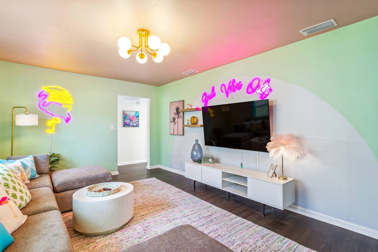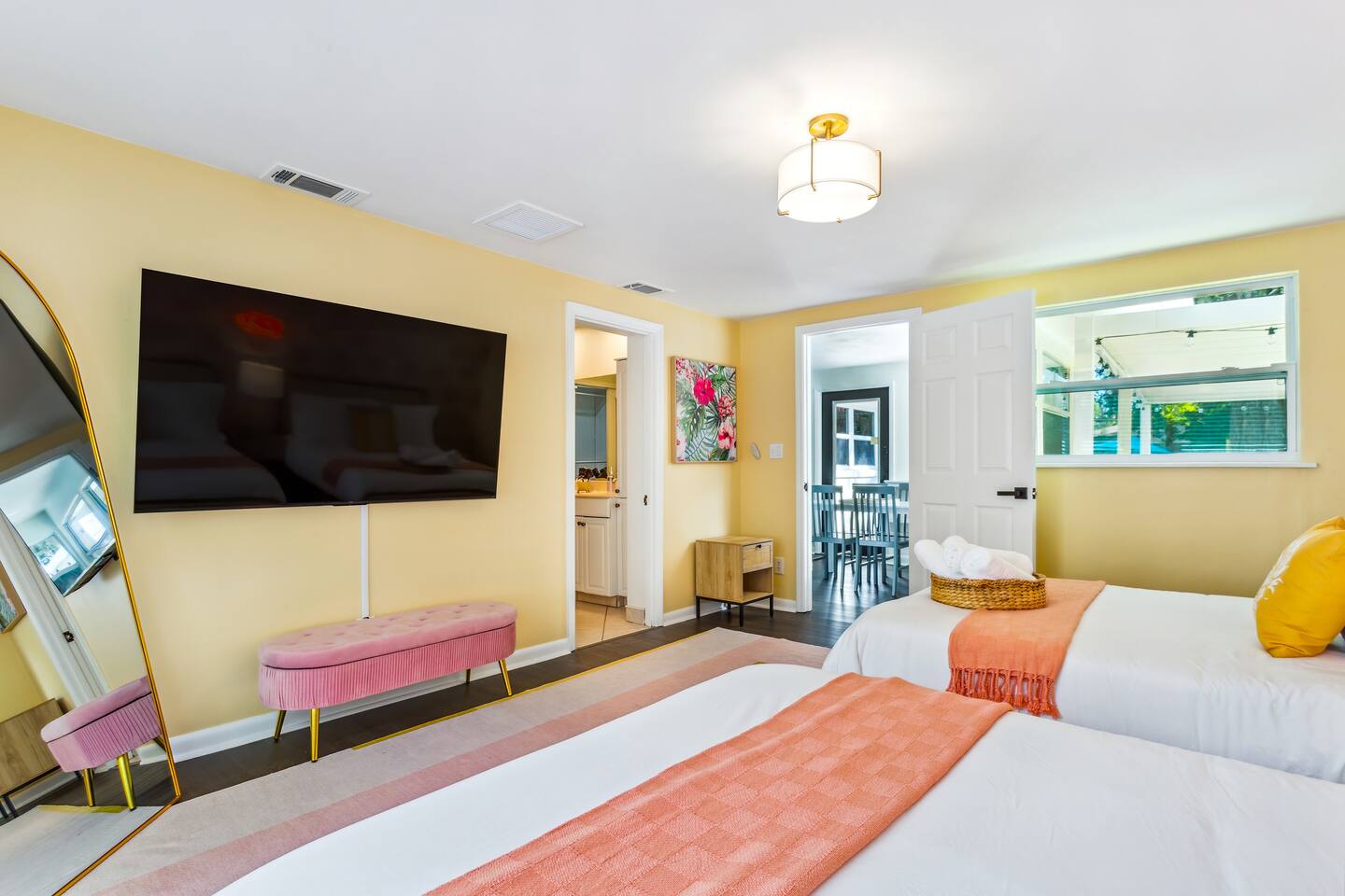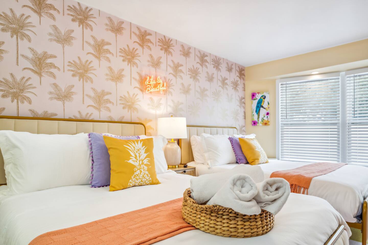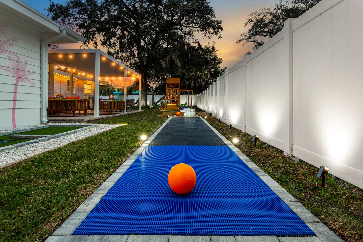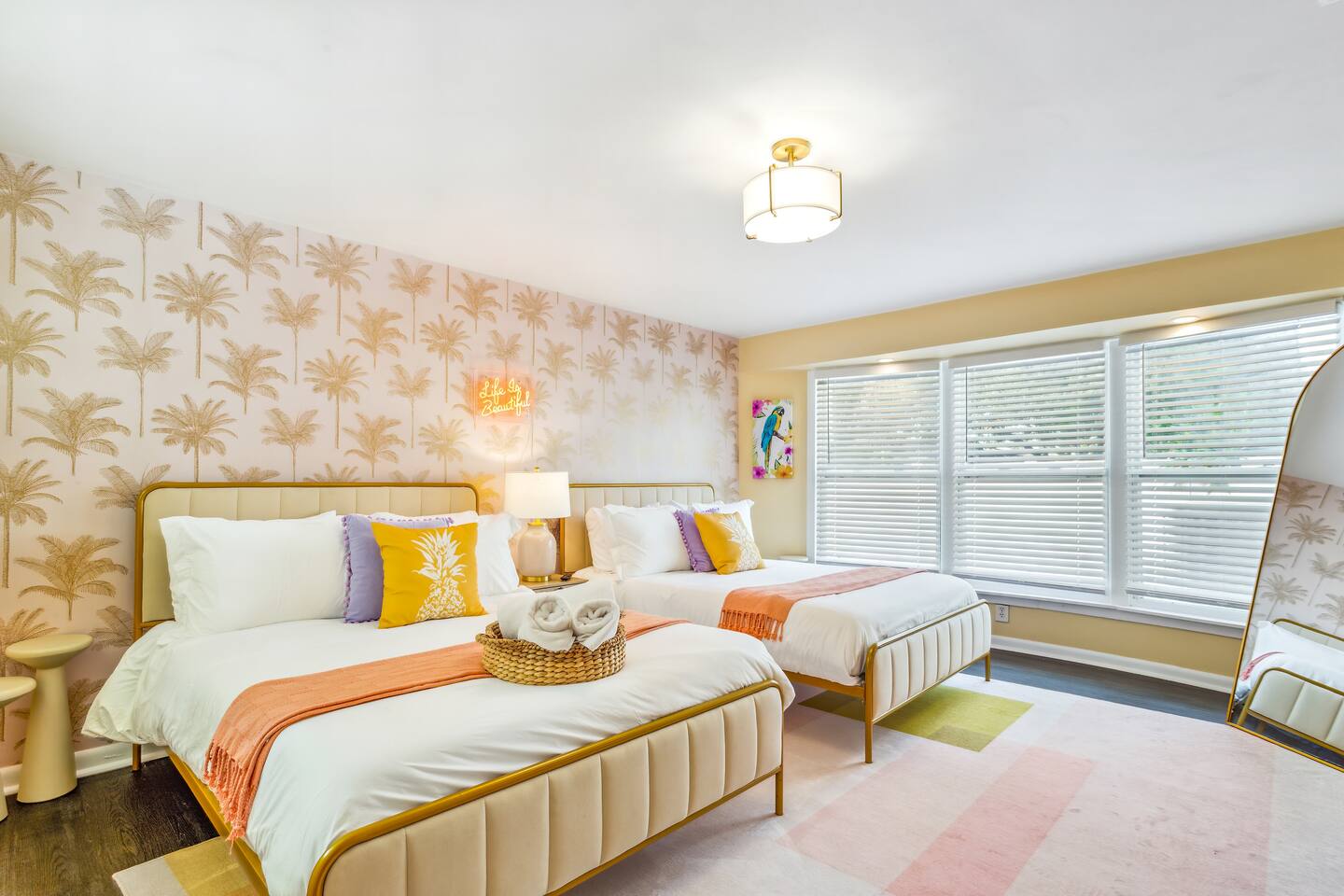 KEY FEATURES: ☀ 5 spacious bedrooms with fun, unique designs; 1 king, 2 queens, 4 fulls, & 2 twin beds ☀ 2 full bathrooms ☀ Beautiful chef's kitchen with modern appliances & design ☀ Living room with lots of comfy seating and large smart TV ☀ Game rooms with pool table, air hockey, arcade games, & more ☀ Vibrant dining room that opens up to the main living area; great for entertaining! ☀ Huge backyard with heated pool, mini golf, fire pit, games, and more ☀ Quiet, private neighborhood just minutes away from beautiful beaches! Here Are A Few Kind Words From Our Past Guests: “This was a great place to stay! The morning light through the windows was so beautiful. Overall, just a relaxing experience. The hosts were super responsive whenever I had a question. I would stay again!” - Emily “Sabrina was very accommodating and communicative. the house is beautiful and very comfortable, close to nature hikes.” - Jennifer “This place was lovely! Exactly as pictured! Very clean and excellent host experience!!! I plan to come back again!” - Regina ☆☆ BEDROOMS ☆☆ There are 5 beautiful bedrooms throughout this home. On one end of the home, you will find the first two bedrooms; one with a king bed (& smart TV), and the other with a queen bed. As you move along to the other side of the house, you'll find the three remaining bedrooms. One with another queen bed, another with 2 full beds, and the fifth (& most fun) room has two twin-over-full bunk beds, two slides, arcade games, air hockey, and lots of comfy seating to enjoy the large smart TV! ☆☆ BATHROOMS ☆☆ There are two full bathrooms in this home. One one end of the home is the first bathroom, with a sink, toilet, & shower/tub combo. On the other end of the house, the second bathroom has two sinks, a toilet, & a walk-in shower. ☆☆ KITCHEN & DINING ☆☆ The modern kitchen continues with the gorgeous, tropical vibe that is so perfectly designed through the entire home. With lots of counter space and bar tops seating, it's a great kitchen for entertaining! Just one room over is the dining room, which is bright, vibrant, and welcoming. The formal dining room seats 12, plus 2 countertop seats. There is also additional dining space right in the backyard, under the covered patio. ☆☆ LIVING ROOM ☆☆ As you walk into the home, you're greeted with the big, open living room, which has lots of comfy seating and a big smart TV. It's a great place for your movie or game nights, where the whole family can sit together in this cozy space! ☆☆ GAME ROOM ☆☆ On top of all the other amenities we offer here, you will find a game room filled with a pool table, smart TV, & hightop seating, of course with a gorgeous beach vibe! ☆☆ OUTDOOR SPACE ☆☆ This backyard is everything you could ask for, and more! ☀ Heated pool ☀ Fire pit ☀ Mini golf ☀ Bowling ☀ Jungle gym ☀ Corn hole ☀ Giant Connect 4 ☀ Giant Jenga ☀ BBQ grill ☀ Covered dining ☀ Covered lounge seating ☀ Sun loungers There is so much to do here, that all of your friends & family will be thoroughly entertained throughout your entire stay. No matter the season, this backyard has it all. Book your stay with us today and you will NOT be disappointed. Get ready for a vacation you will never forget! ★☆ Book Now & Let Us Take Care Of You In Seminole! ☆★