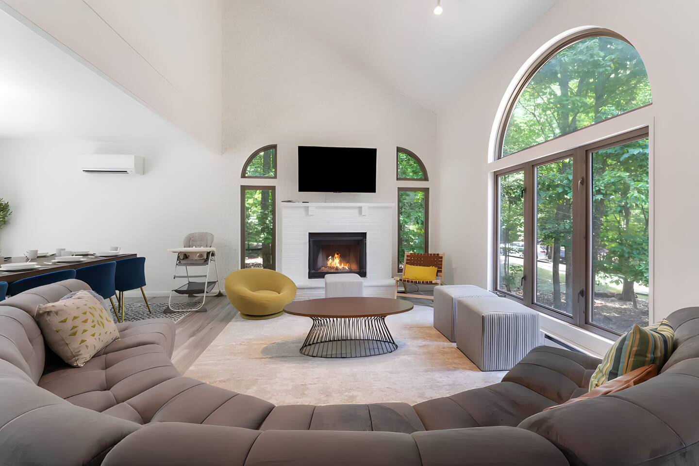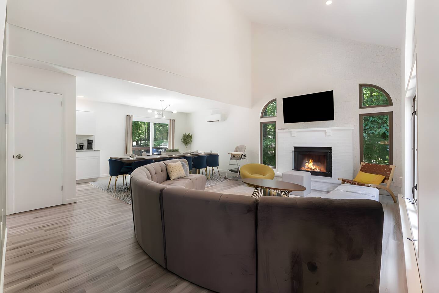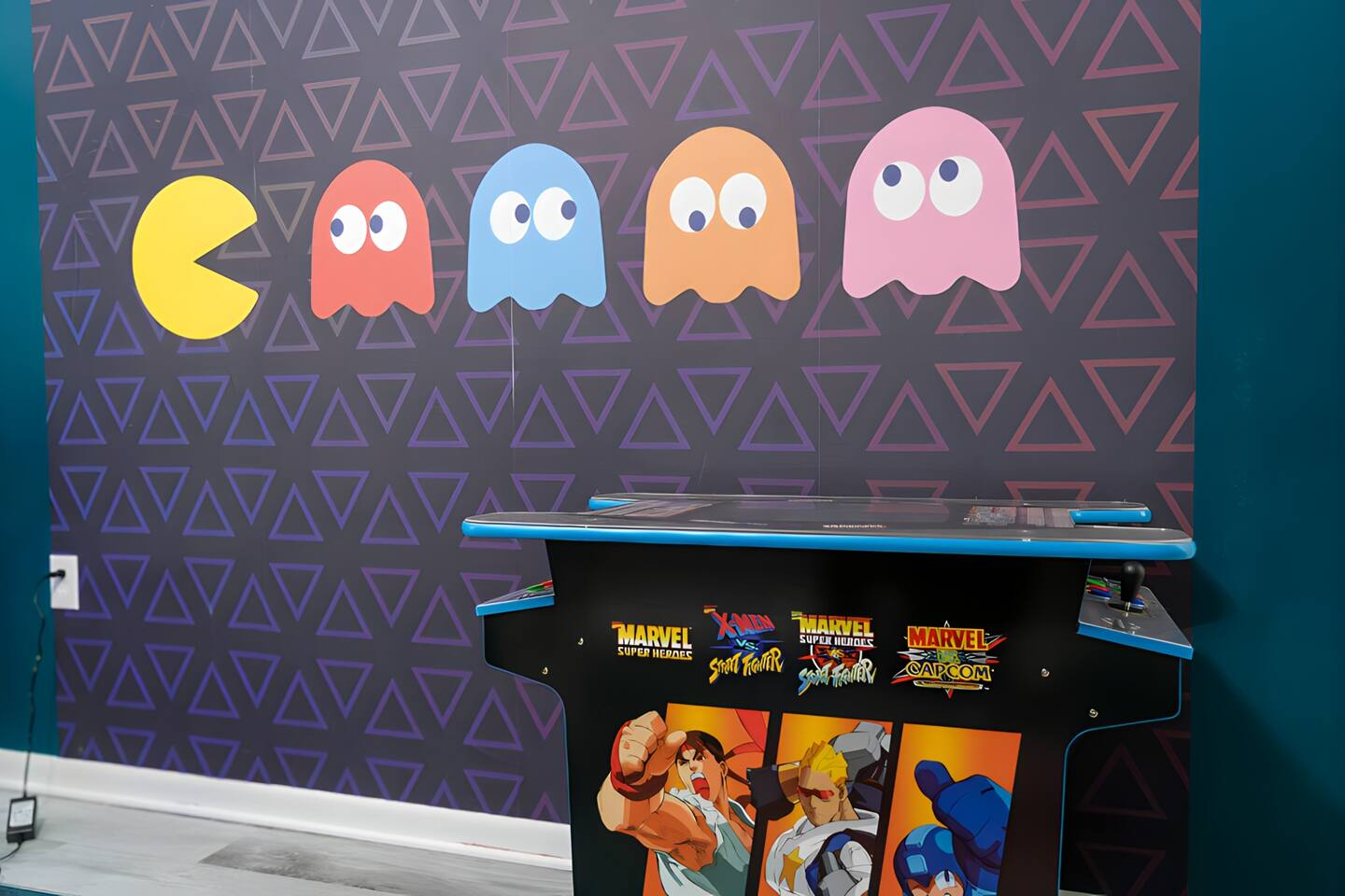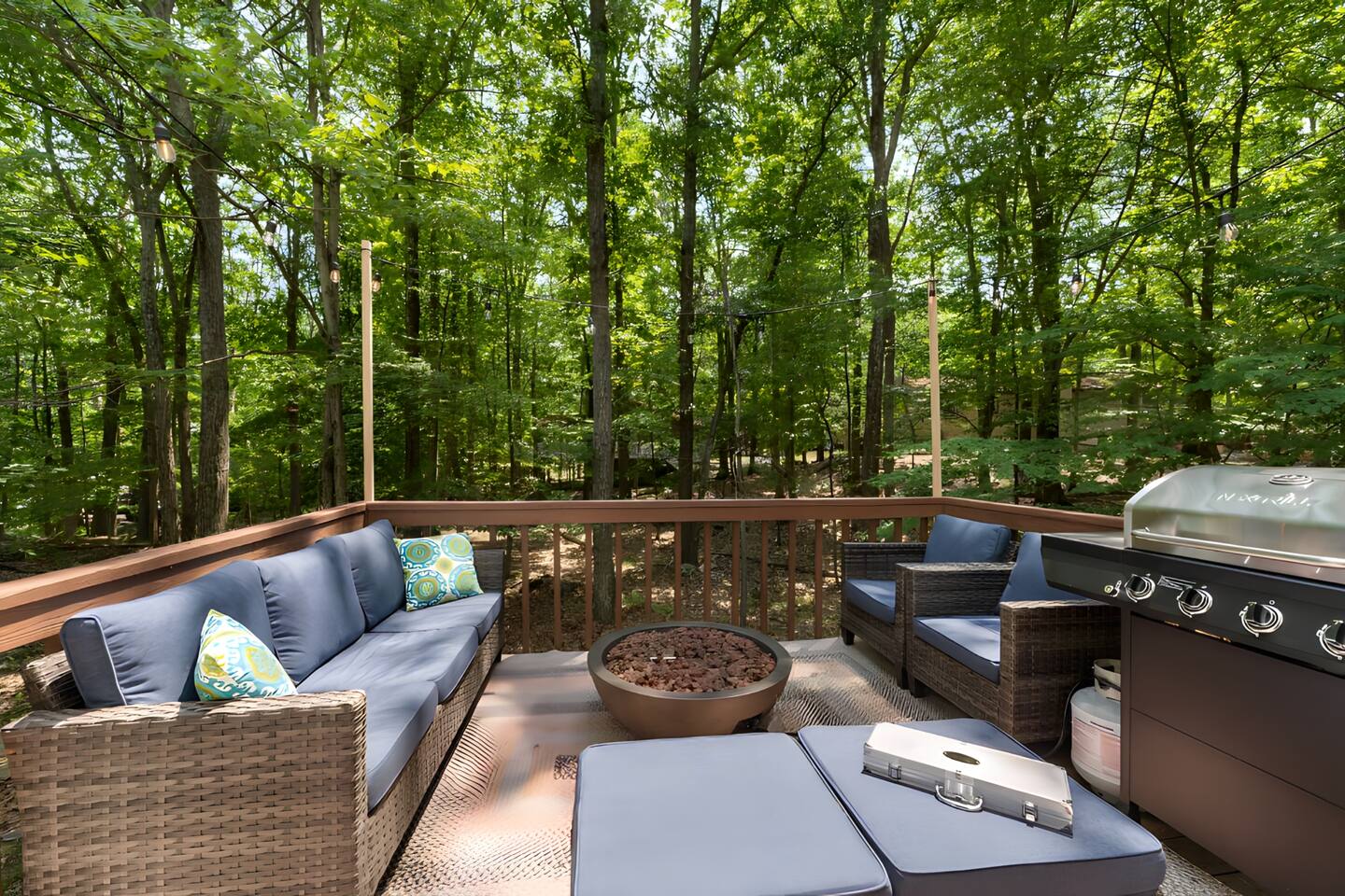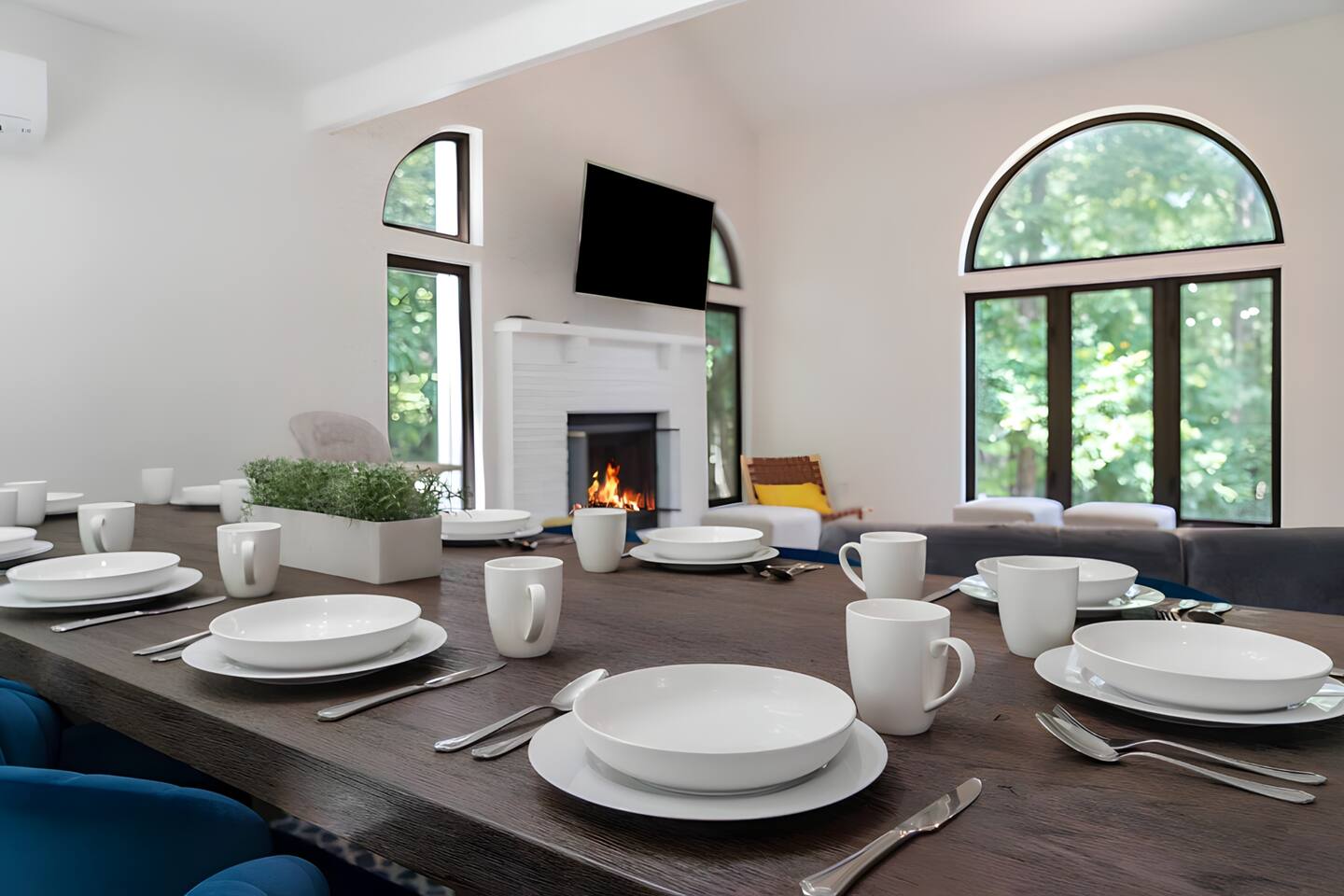 **During the summer months (Memorial Day weekend - Labor Day weekend), you will receive amenity badges that allow you to access the following amenities. If you’re staying with us outside of these dates, these amenities will be closed.** ☀ Lakes (with beach access - swimming allowed!) ☀ Pools ☀ Tennis courts ☀ Basketball courts ☀ Volleyball courts ☀ Dog park ☀ Playground areas KEY FEATURES: ☀ 5 beautiful bedrooms; 2 kings, 1 queen, 2 fulls, & 3 twin beds ☀ 3 full bathrooms ☀ Modern kitchen with new, stainless steel appliances ☀ Open living room with lots of comfy seating & smart TV ☀ Dining room with seating to comfortably accommodate 12 ☀ TWO amazing game rooms; pool table, arcade games, board games, darts, & more! ☀ Private & peaceful backyard surrounded by nature; hot tub, fire pit, & more! Here Are A Few Kind Words From Our Past Guests: “This was a great place to stay! The morning light through the windows was so beautiful. Overall, just a relaxing experience. The hosts were super responsive whenever I had a question. I would stay again!” - Emily “Sabrina was very accommodating and communicative. the house is beautiful and very comfortable, close to nature hikes.” - Jennifer “This place was lovely! Exactly as pictured! Very clean and excellent host experience!!! I plan to come back again!” - Regina ☆☆ BEDROOMS ☆☆ This three-level home has 5 bedrooms throughout. On the ground level, there are two bedrooms. One bedroom has a king bed, while the other has two twins & one full bed, plus two designated workspaces. On the second level, there is one bedroom with a king bed, smart TV, & private ensuite bathroom. The third level has the two remaining bedrooms. One bedroom has a full size bed, while the other has one queen & one twin. ☆☆ BATHROOMS ☆☆ There are three full bathrooms in this home; one on each level. The ground level bathroom has one sink, toilet, and shower/tub combo. The second level bathroom (private master ensuite) has two sinks, toilet, and shower/tub combo. The last bathroom on the third level has one sink, toilet, and shower/tub combo. ☆☆ KITCHEN & DINING ☆☆ The modern kitchen is located right off of the main living areas, and is loaded with all new stainless steel appliances & a coffee station (including a Keurig & coffee pods). The dining room is right next to the kitchen, with enough seating to comfortably fit 12 people, and opens right up to the rest of the living areas & also has direct access to the private back deck. ☆☆ LIVING ROOM ☆☆ In the living room, you’ll be greeted with lots of comfy seating, a big smart TV, and beautiful, modern design that will catch your eye as soon as you enter! This is the perfect spot to host your movie nights & games with your friends and family. ☆☆ GAME ROOMS ☆☆ Keep your family and friends entertained throughout your stay in our TWO amenity-filled game rooms! Pool table, darts, smart TV, and LOTS of arcade games. Whether your reason for staying is to explore the town or stay at home and relax, this place will be the perfect spot to unwind! ☆☆ OUTDOOR SPACE ☆☆ This backyard is everything you could ask for, and more! ☀ TWO fire pits (one on the second level deck & one in the backyard) ☀ Private hot tub ☀ Comfy lounge seating ☀ Corn hole ☀ BBQ grill There is so much to do here, that all of your friends & family will be thoroughly entertained throughout your entire stay. No matter the season, this backyard has it all. Book your stay with us today and you will NOT be disappointed. Get ready for a vacation you will never forget! ★☆ Book Now & Let Us Take Care Of You In The Poconos! ☆★