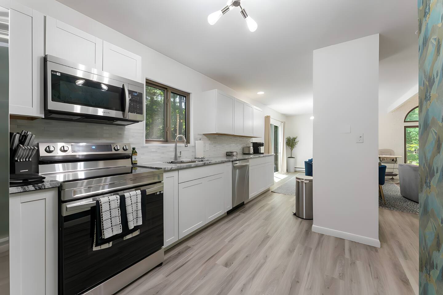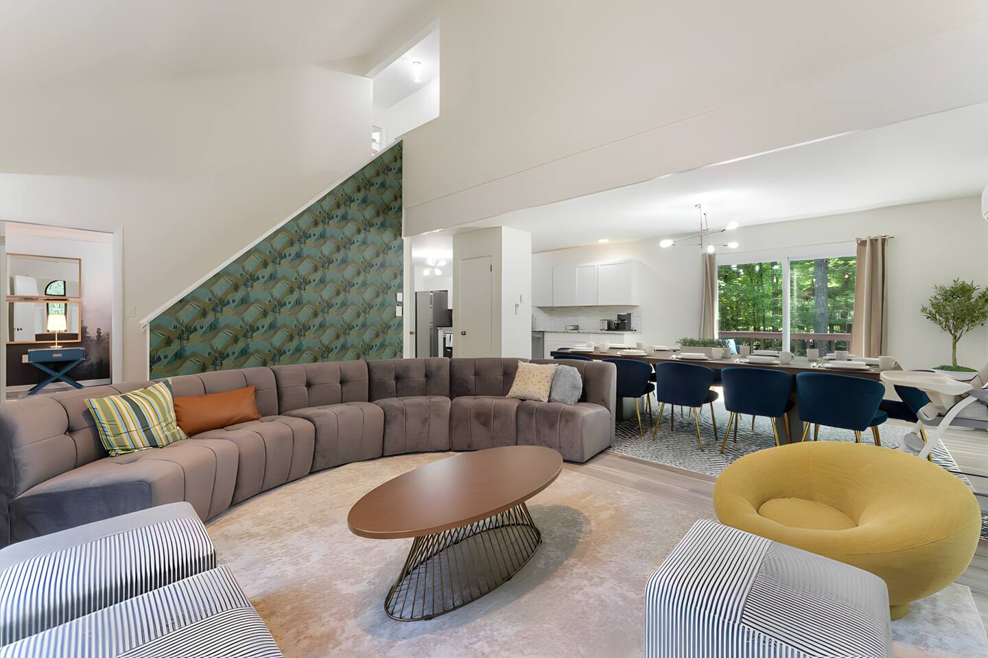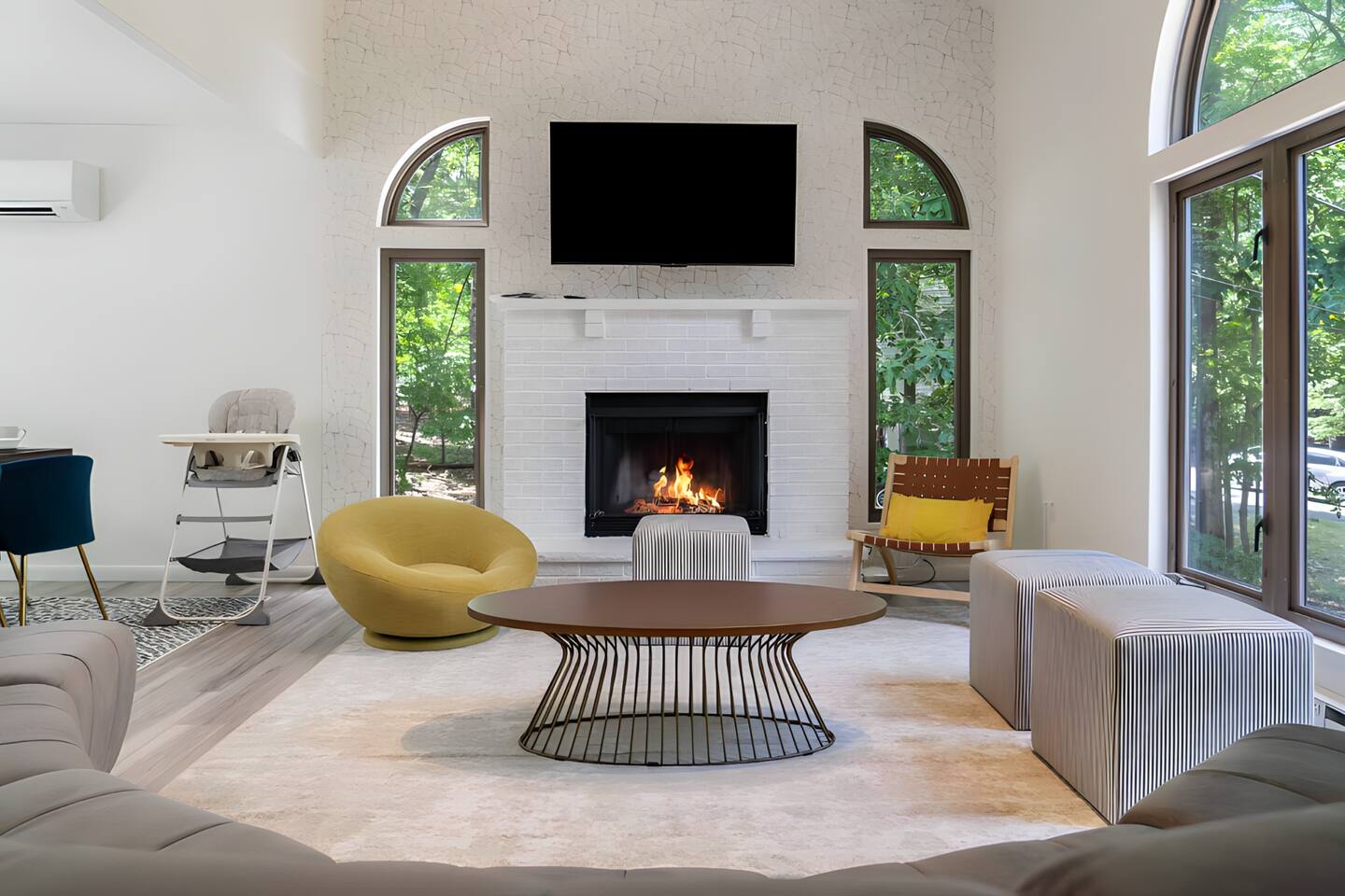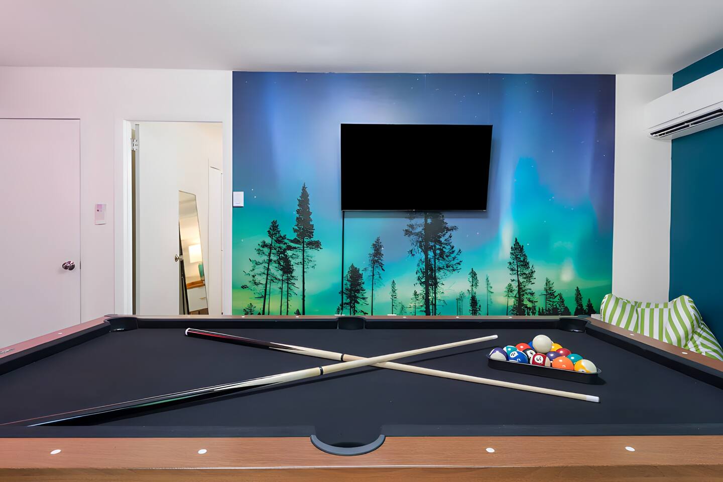 **During the summer months (Memorial Day weekend - Labor Day weekend), you will receive amenity badges that allow you to access the following amenities. If you’re staying with us outside of these dates, these amenities will be closed.** ☀ Lakes (with beach access - swimming allowed!) ☀ Pools ☀ Tennis courts ☀ Basketball courts ☀ Volleyball courts ☀ Dog park ☀ Playground areas KEY FEATURES: ☀ 5 beautiful bedrooms; 2 kings, 1 queen, 2 fulls, & 3 twin beds ☀ 3 full bathrooms ☀ Modern kitchen with new, stainless steel appliances ☀ Open living room with lots of comfy seating & smart TV ☀ Dining room with seating to comfortably accommodate 12 ☀ TWO amazing game rooms; pool table, arcade games, board games, darts, & more! ☀ Private & peaceful backyard surrounded by nature; hot tub, fire pit, & more! Here Are A Few Kind Words From Our Past Guests: “This was a great place to stay! The morning light through the windows was so beautiful. Overall, just a relaxing experience. The hosts were super responsive whenever I had a question. I would stay again!” - Emily “Sabrina was very accommodating and communicative. the house is beautiful and very comfortable, close to nature hikes.” - Jennifer “This place was lovely! Exactly as pictured! Very clean and excellent host experience!!! I plan to come back again!” - Regina ☆☆ BEDROOMS ☆☆ This three-level home has 5 bedrooms throughout. On the ground level, there are two bedrooms. One bedroom has a king bed, while the other has two twins & one full bed, plus two designated workspaces. On the second level, there is one bedroom with a king bed, smart TV, & private ensuite bathroom. The third level has the two remaining bedrooms. One bedroom has a full size bed, while the other has one queen & one twin. ☆☆ BATHROOMS ☆☆ There are three full bathrooms in this home; one on each level. The ground level bathroom has one sink, toilet, and shower/tub combo. The second level bathroom (private master ensuite) has two sinks, toilet, and shower/tub combo. The last bathroom on the third level has one sink, toilet, and shower/tub combo. ☆☆ KITCHEN & DINING ☆☆ The modern kitchen is located right off of the main living areas, and is loaded with all new stainless steel appliances & a coffee station (including a Keurig & coffee pods). The dining room is right next to the kitchen, with enough seating to comfortably fit 12 people, and opens right up to the rest of the living areas & also has direct access to the private back deck. ☆☆ LIVING ROOM ☆☆ In the living room, you’ll be greeted with lots of comfy seating, a big smart TV, and beautiful, modern design that will catch your eye as soon as you enter! This is the perfect spot to host your movie nights & games with your friends and family. ☆☆ GAME ROOMS ☆☆ Keep your family and friends entertained throughout your stay in our TWO amenity-filled game rooms! Pool table, darts, smart TV, and LOTS of arcade games. Whether your reason for staying is to explore the town or stay at home and relax, this place will be the perfect spot to unwind! ☆☆ OUTDOOR SPACE ☆☆ This backyard is everything you could ask for, and more! ☀ TWO fire pits (one on the second level deck & one in the backyard) ☀ Private hot tub ☀ Comfy lounge seating ☀ Corn hole ☀ BBQ grill There is so much to do here, that all of your friends & family will be thoroughly entertained throughout your entire stay. No matter the season, this backyard has it all. Book your stay with us today and you will NOT be disappointed. Get ready for a vacation you will never forget! ★☆ Book Now & Let Us Take Care Of You In The Poconos! ☆★