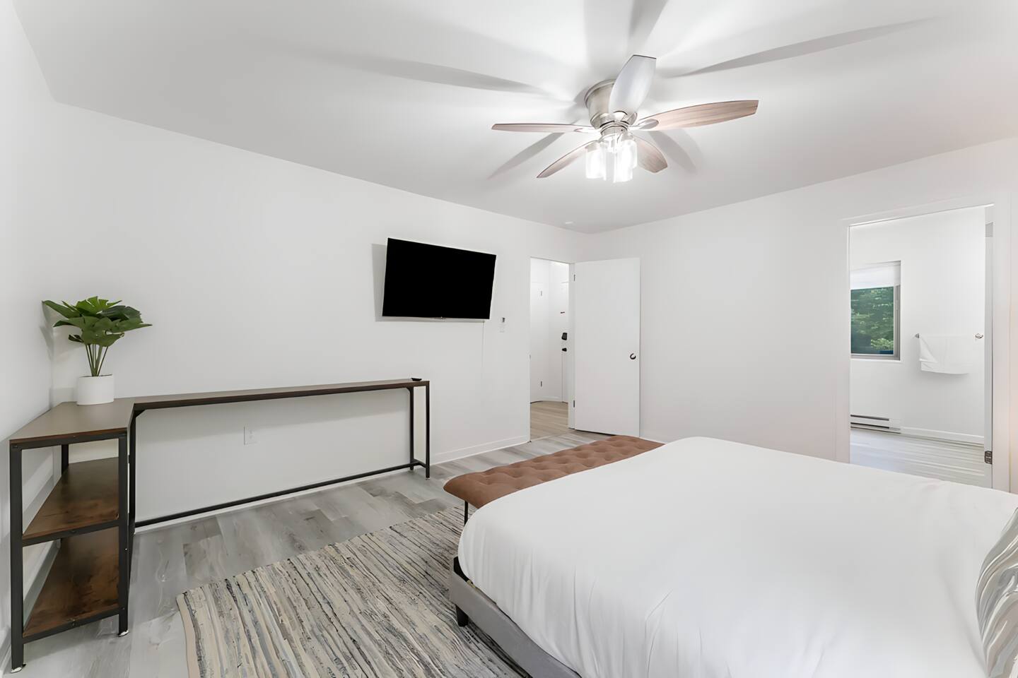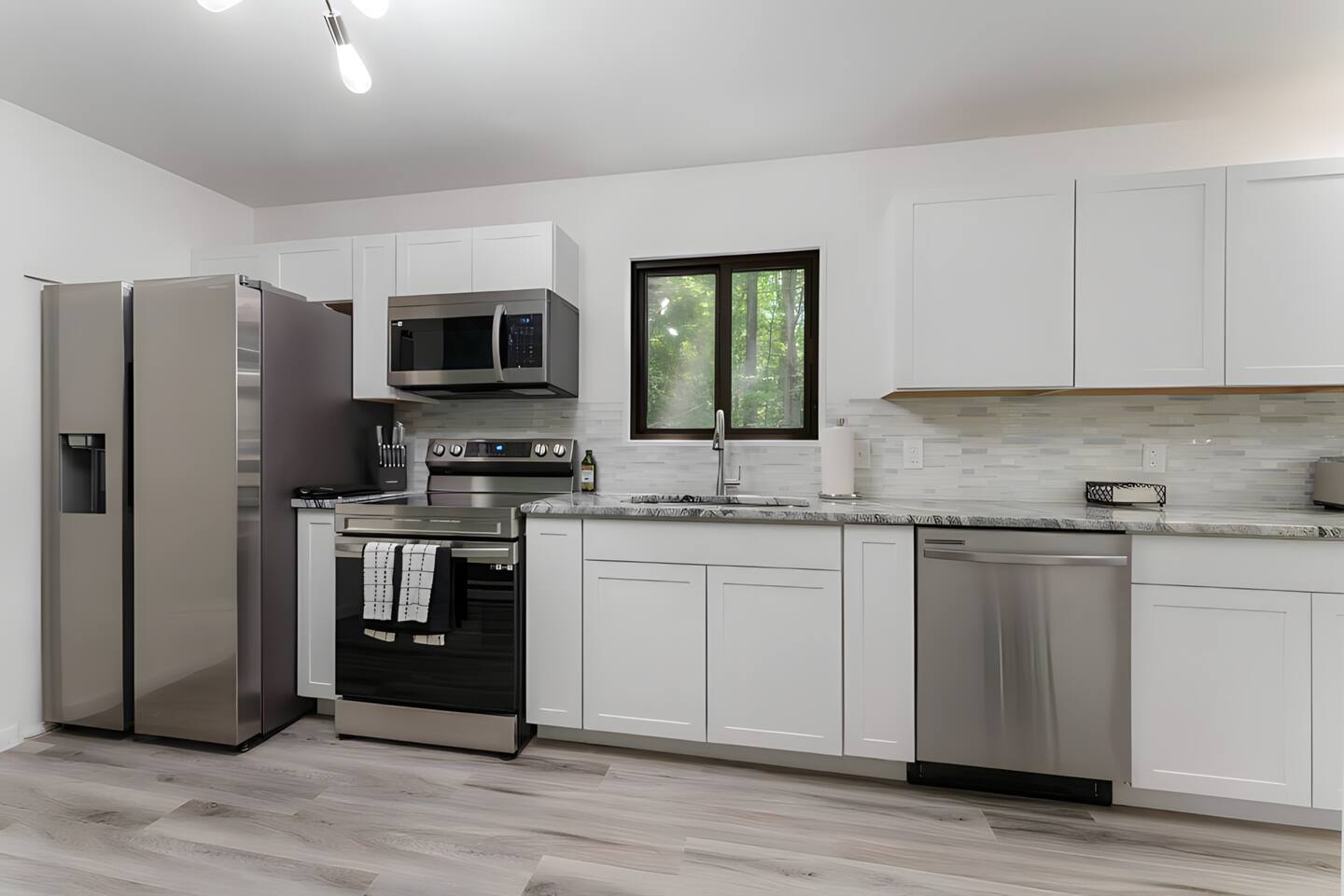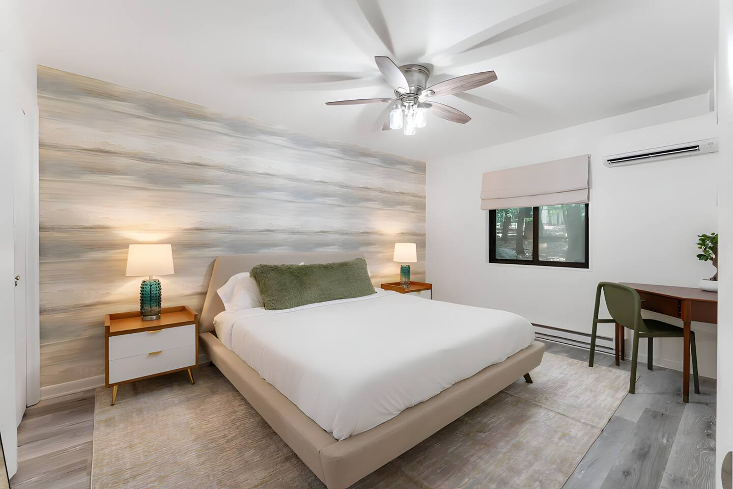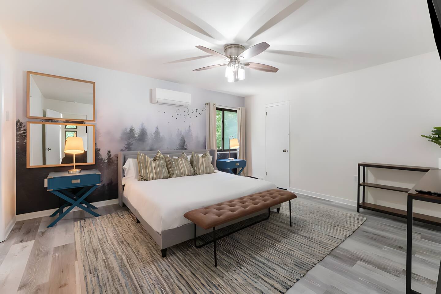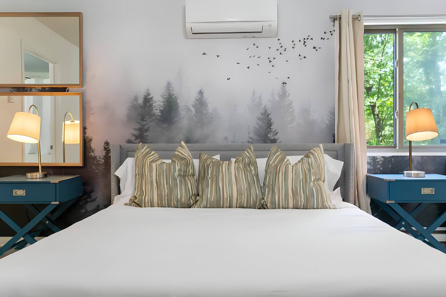 **During the summer months (Memorial Day weekend - Labor Day weekend), you will receive amenity badges that allow you to access the following amenities. If you’re staying with us outside of these dates, these amenities will be closed.** ☀ Lakes (with beach access - swimming allowed!) ☀ Pools ☀ Tennis courts ☀ Basketball courts ☀ Volleyball courts ☀ Dog park ☀ Playground areas KEY FEATURES: ☀ 5 beautiful bedrooms; 2 kings, 1 queen, 2 fulls, & 3 twin beds ☀ 3 full bathrooms ☀ Modern kitchen with new, stainless steel appliances ☀ Open living room with lots of comfy seating & smart TV ☀ Dining room with seating to comfortably accommodate 12 ☀ TWO amazing game rooms; pool table, arcade games, board games, darts, & more! ☀ Private & peaceful backyard surrounded by nature; hot tub, fire pit, & more! Here Are A Few Kind Words From Our Past Guests: “This was a great place to stay! The morning light through the windows was so beautiful. Overall, just a relaxing experience. The hosts were super responsive whenever I had a question. I would stay again!” - Emily “Sabrina was very accommodating and communicative. the house is beautiful and very comfortable, close to nature hikes.” - Jennifer “This place was lovely! Exactly as pictured! Very clean and excellent host experience!!! I plan to come back again!” - Regina ☆☆ BEDROOMS ☆☆ This three-level home has 5 bedrooms throughout. On the ground level, there are two bedrooms. One bedroom has a king bed, while the other has two twins & one full bed, plus two designated workspaces. On the second level, there is one bedroom with a king bed, smart TV, & private ensuite bathroom. The third level has the two remaining bedrooms. One bedroom has a full size bed, while the other has one queen & one twin. ☆☆ BATHROOMS ☆☆ There are three full bathrooms in this home; one on each level. The ground level bathroom has one sink, toilet, and shower/tub combo. The second level bathroom (private master ensuite) has two sinks, toilet, and shower/tub combo. The last bathroom on the third level has one sink, toilet, and shower/tub combo. ☆☆ KITCHEN & DINING ☆☆ The modern kitchen is located right off of the main living areas, and is loaded with all new stainless steel appliances & a coffee station (including a Keurig & coffee pods). The dining room is right next to the kitchen, with enough seating to comfortably fit 12 people, and opens right up to the rest of the living areas & also has direct access to the private back deck. ☆☆ LIVING ROOM ☆☆ In the living room, you’ll be greeted with lots of comfy seating, a big smart TV, and beautiful, modern design that will catch your eye as soon as you enter! This is the perfect spot to host your movie nights & games with your friends and family. ☆☆ GAME ROOMS ☆☆ Keep your family and friends entertained throughout your stay in our TWO amenity-filled game rooms! Pool table, darts, smart TV, and LOTS of arcade games. Whether your reason for staying is to explore the town or stay at home and relax, this place will be the perfect spot to unwind! ☆☆ OUTDOOR SPACE ☆☆ This backyard is everything you could ask for, and more! ☀ TWO fire pits (one on the second level deck & one in the backyard) ☀ Private hot tub ☀ Comfy lounge seating ☀ Corn hole ☀ BBQ grill There is so much to do here, that all of your friends & family will be thoroughly entertained throughout your entire stay. No matter the season, this backyard has it all. Book your stay with us today and you will NOT be disappointed. Get ready for a vacation you will never forget! ★☆ Book Now & Let Us Take Care Of You In The Poconos! ☆★