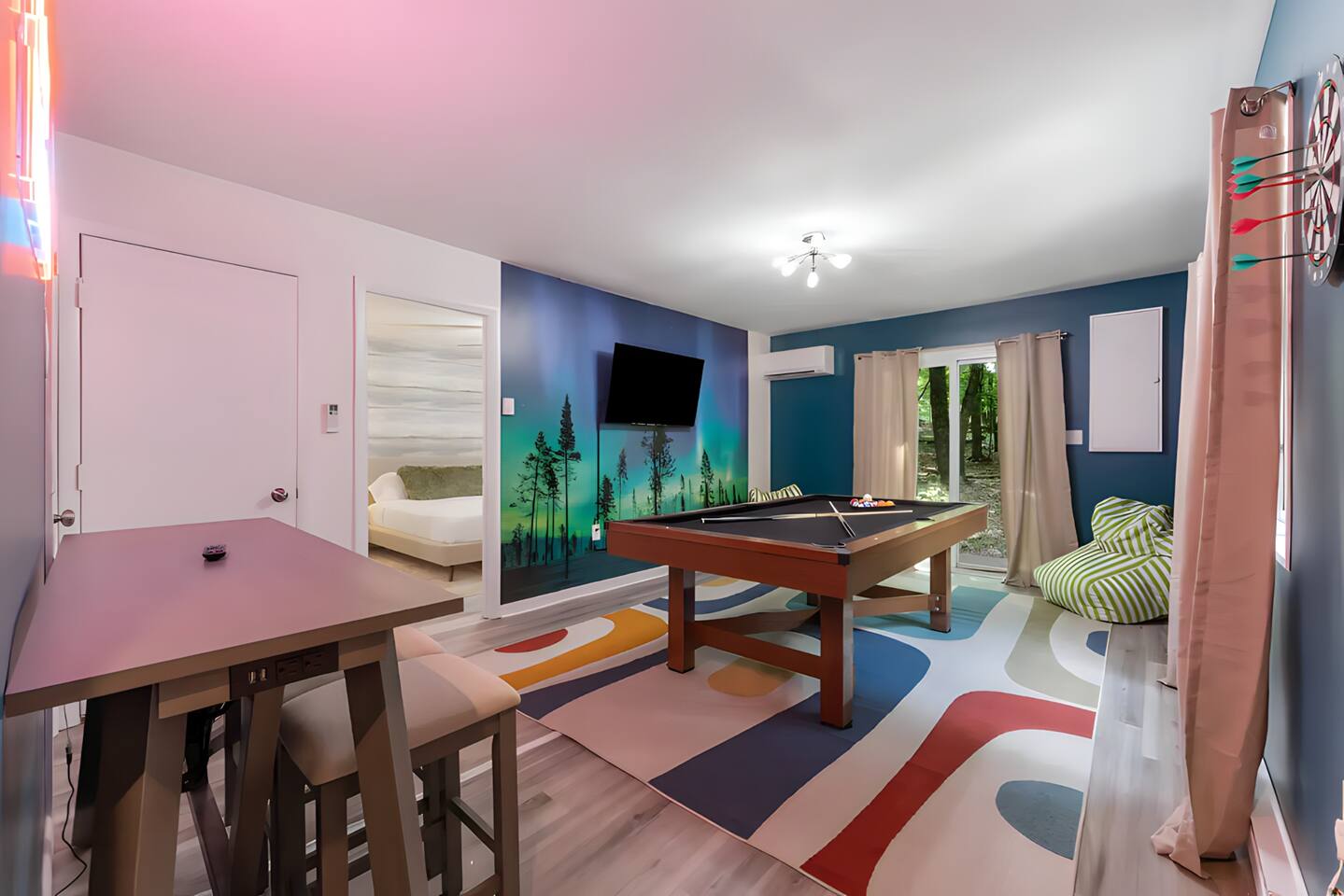 Welcome to your private Poconos haven! This massive 5 bedroom home has been completely upgraded to create a modern vacation experience, loaded with amenities! TWO game rooms, pool table, arcade games, TWO fire pits, hot tub, and so much more - all completely private! 15 min - Delaware Water Gap, Downtown Stroudsburg 20 min - Kalahari Resort, Shawnee Mountain, Big Pocono State Park 30 min - Bushkill Falls Experience The Poconos With Us & Learn More Below!