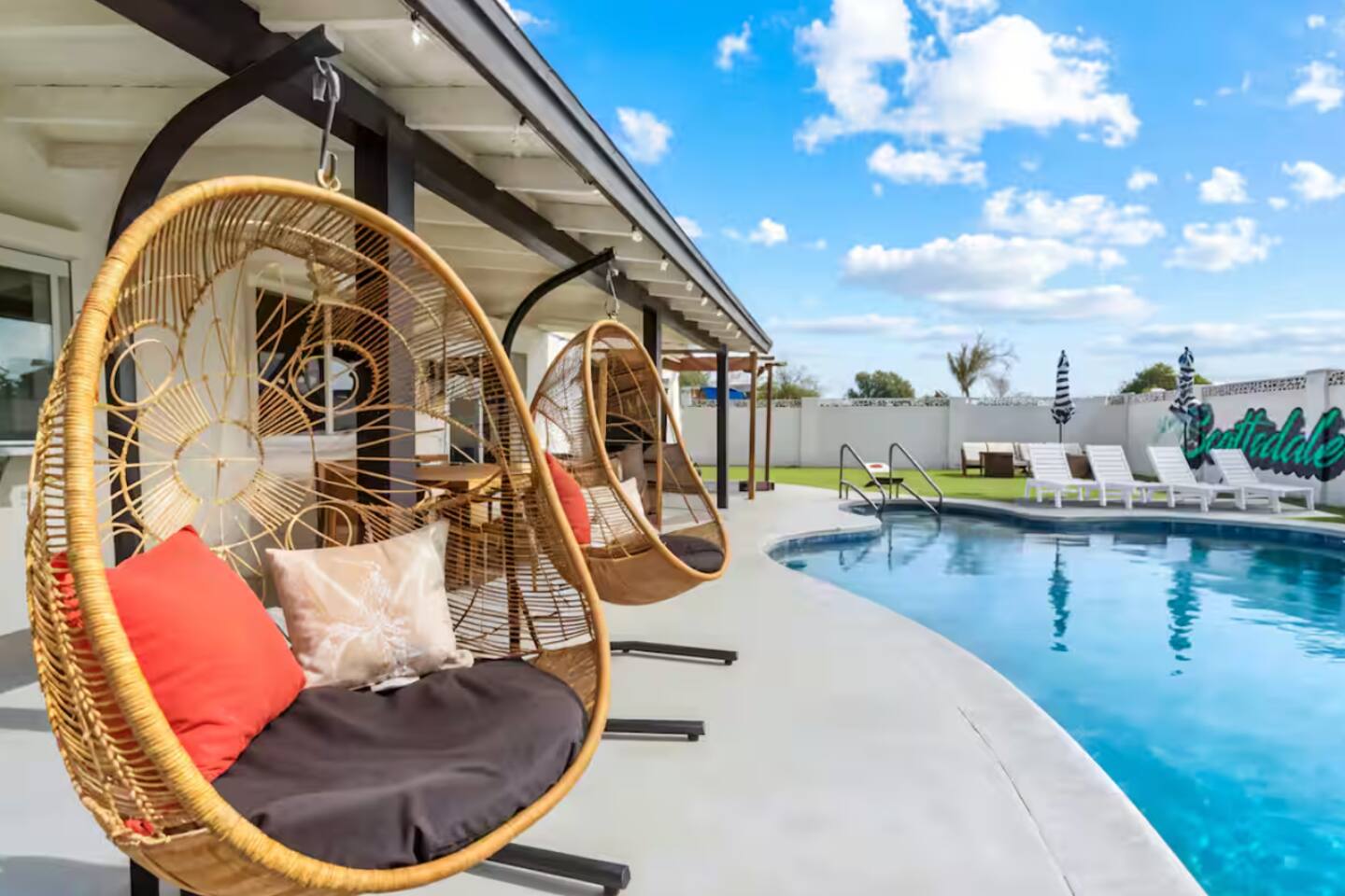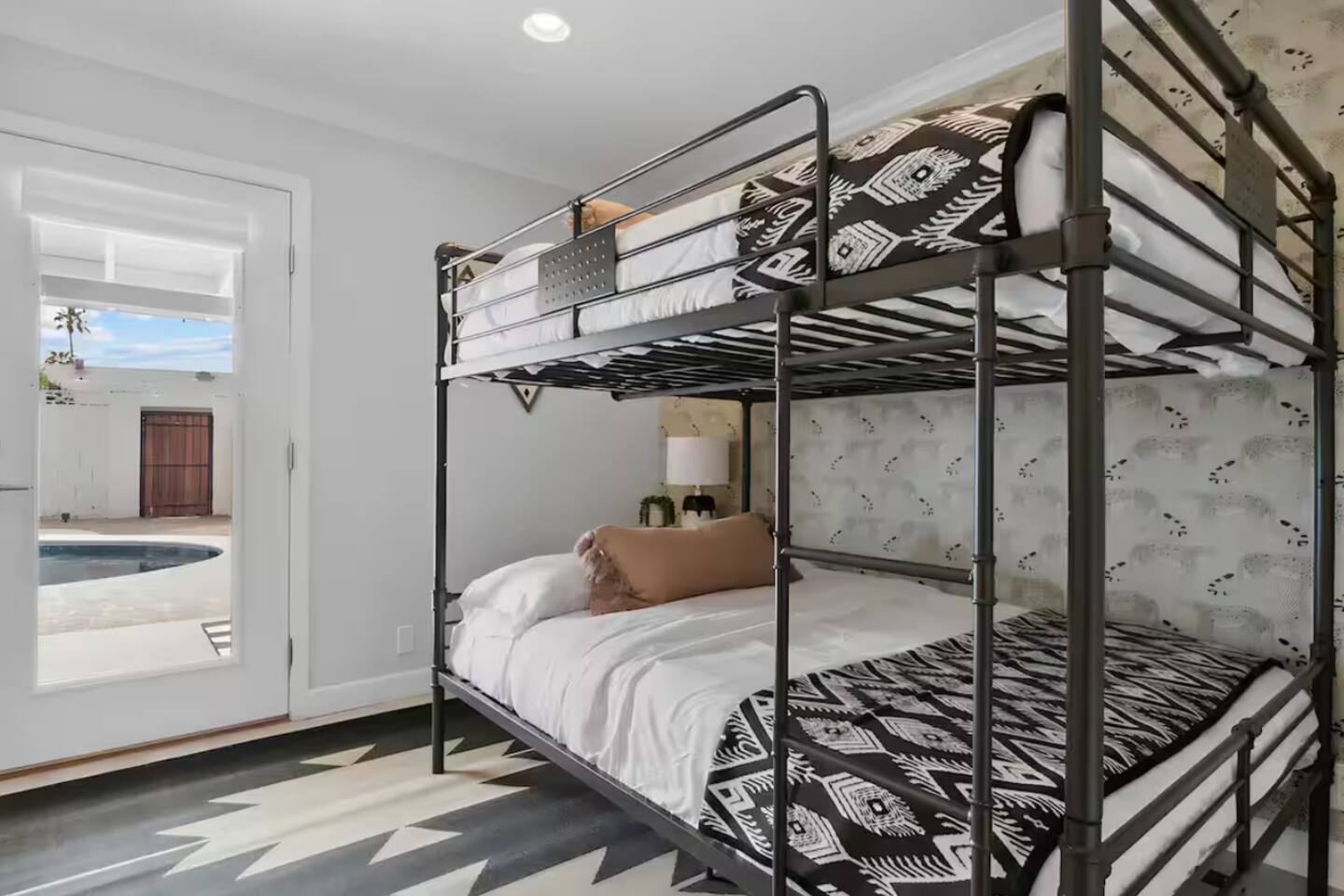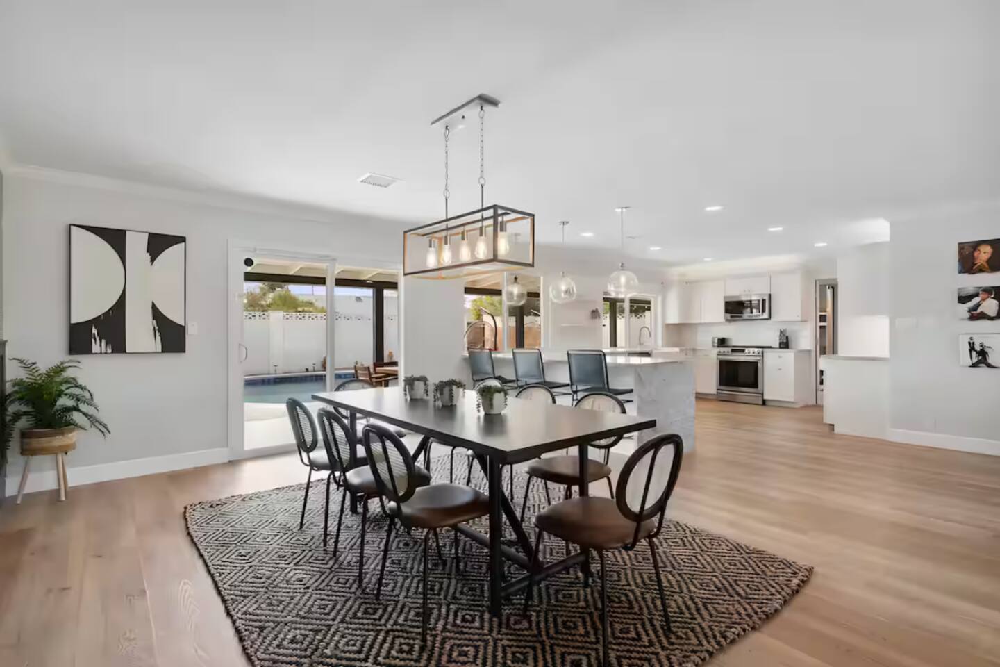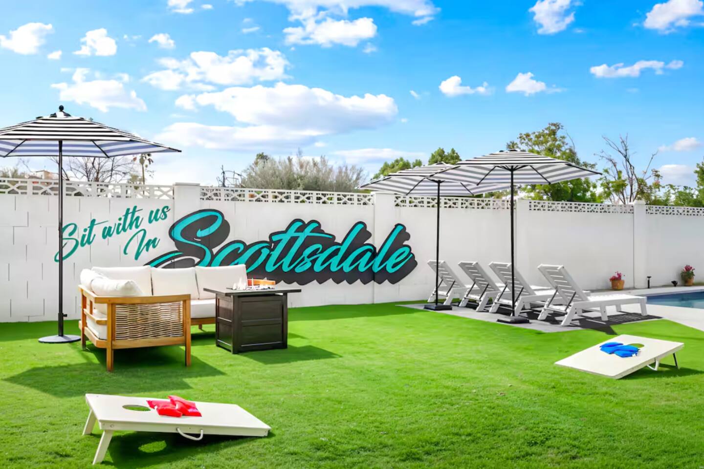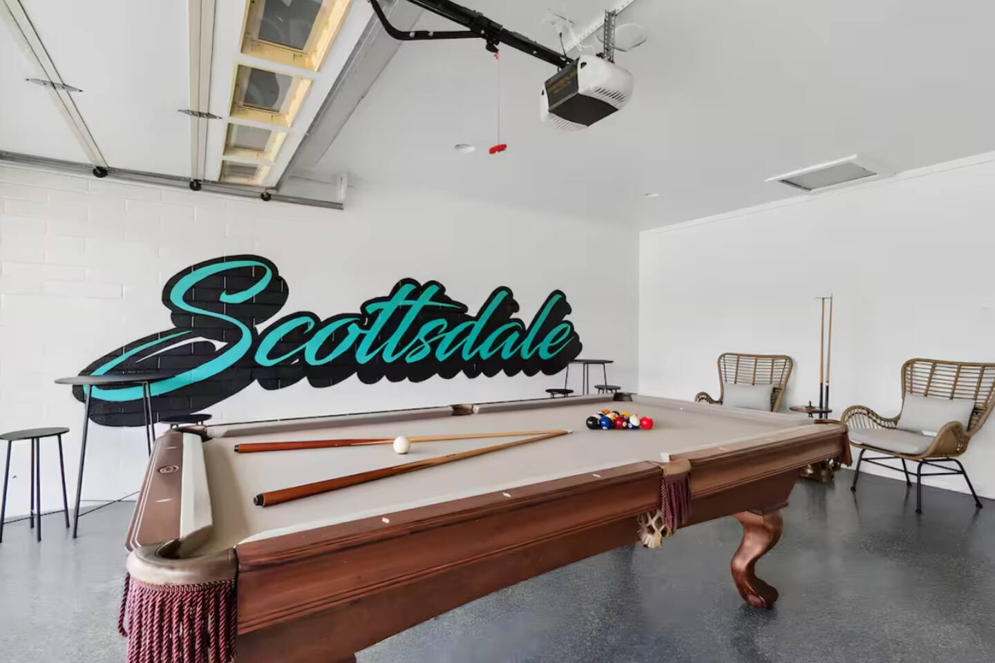KEY FEATURES: ☀ 5 luxurious bedrooms; 1 king, 3 queens, and 2 full beds (bunk bed) ☀ 2 modern bathrooms ☀ Stunning kitchen with modern appliances ☀ Large living room with tons of comfy seating - perfect for entertaining! ☀ Open dining room with seating for 8 (opens up to the backyard) ☀ Game room with pool table ☀ AMAZING backyard; heated pool, fire pit, and more! ☀ Quiet location just a few minutes away from Old Town Here Are A Few Kind Words From Our Past Guests: “This was a great place to stay! The morning light through the windows was so beautiful. Overall, just a relaxing experience. The hosts were super responsive whenever I had a question. I would stay again!” - Emily “Sabrina was very accommodating and communicative. the house is beautiful and very comfortable, close to nature hikes.” - Jennifer “This place was lovely! Exactly as pictured! Very clean and excellent host experience!!! I plan to come back again!” - Regina ☆☆ BEDROOMS ☆☆ Spread throughout the home, you'll find 5 bedrooms. The large master bedroom has a king bed, smart TV, and direct access to the backyard (also with an attached ensuite bathroom). There are three more bedrooms down the hall, each with one queen bed. A full bathroom with a shower/tub combo is shared by these three bedrooms. On the other end of the home is the fifth bedroom, with two full beds (bunk bed) and a door opening up to the backyard. ☆☆ BATHROOMS ☆☆ Both bathrooms in this home have been completely renovated and live up to the modern standard of the rest of the home. The master ensuite has a dual vanity, toilet, and a walk-in shower. The hallway bathroom has one sink, one toilet, and a shower/tub combo. ☆☆ KITCHEN & DINING ☆☆ This kitchen is absolutely STUNNING! Sleek, modern, and so functional! Brand new modern appliances (including a wine fridge), coffee station, and opens right up to the rest of the entertaining space. Right across from the kitchen is the dining room, with seating for 8 and direct access to the backyard. ☆☆ LIVING ROOM ☆☆ As you enter the home, you'll be greeted with the grand living room. Large smart TV, big sectional couch, electric fireplace, and a record player completes this classy, comfortable space for the whole crew to hang out and enjoy the Scottsdale ambiance! ☆☆ GAME ROOM ☆☆ The garage has been converted into a game room, complete with a pool table, seating, bistro tables, and a social media-ready mural that is perfect for a fun photoshoot! ☆☆ OUTDOOR SPACE ☆☆ The backyard is so classy and elegant! A heated pool is the centerpiece of this yard, with lots of other amenities surrounding the space, including a fire pit, comfy outdoor seating, outdoor dining, games, and sun lounging chairs - you will feel right at home will never want to leave! ★☆ Book Now & Let Us Take Care Of You In Scottsdale! ☆★