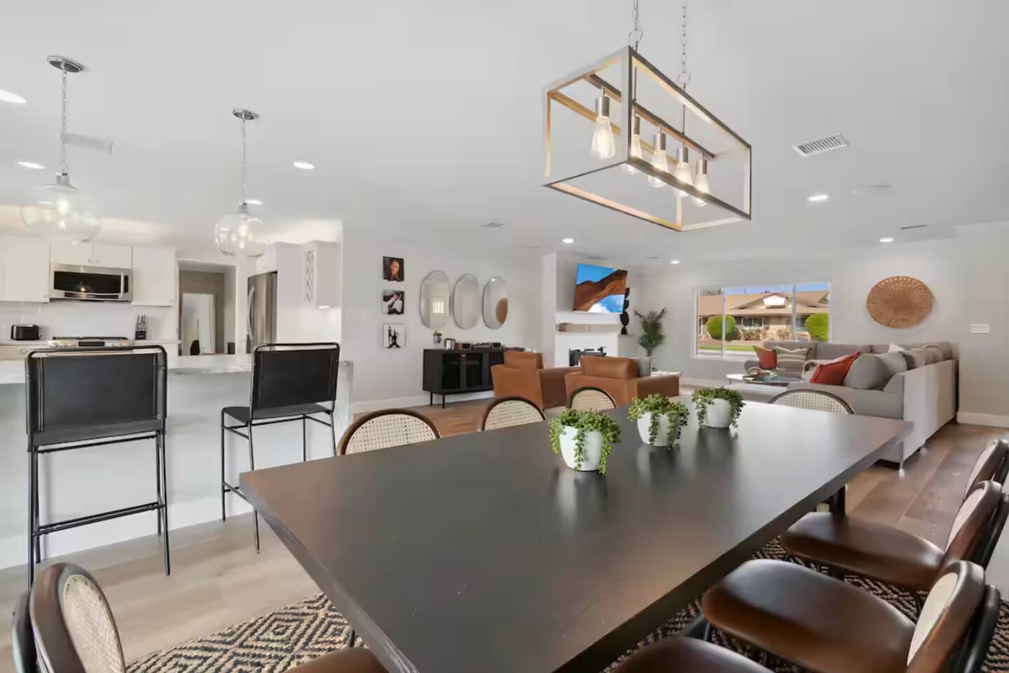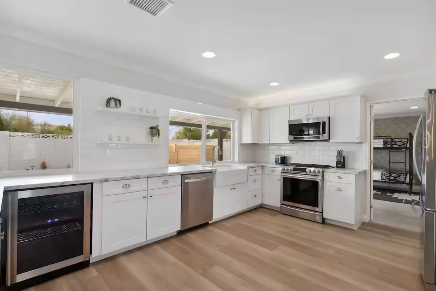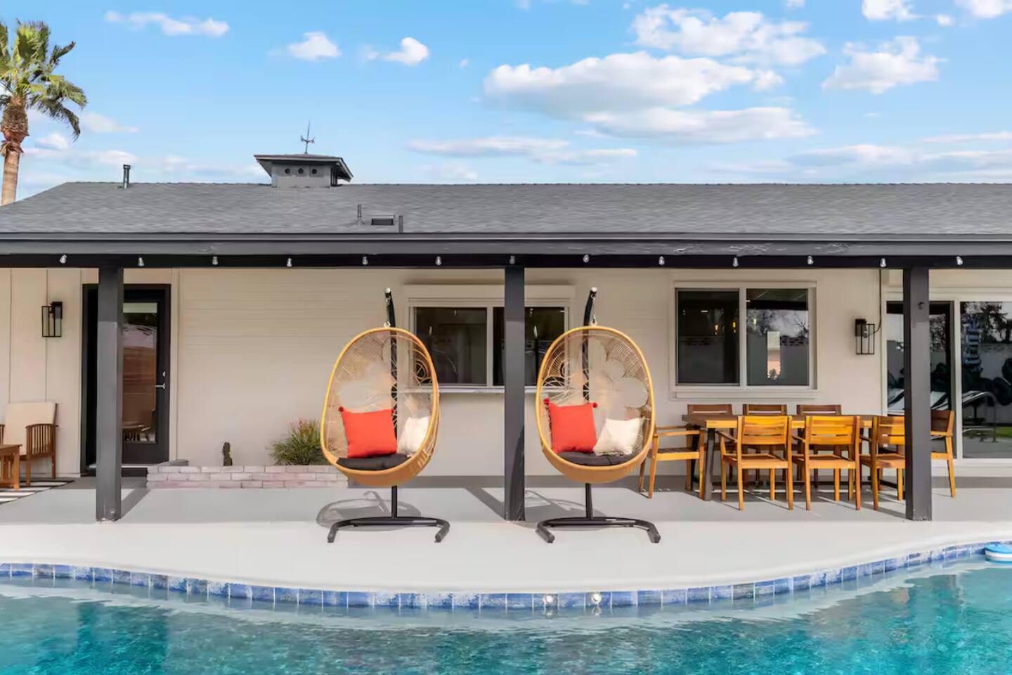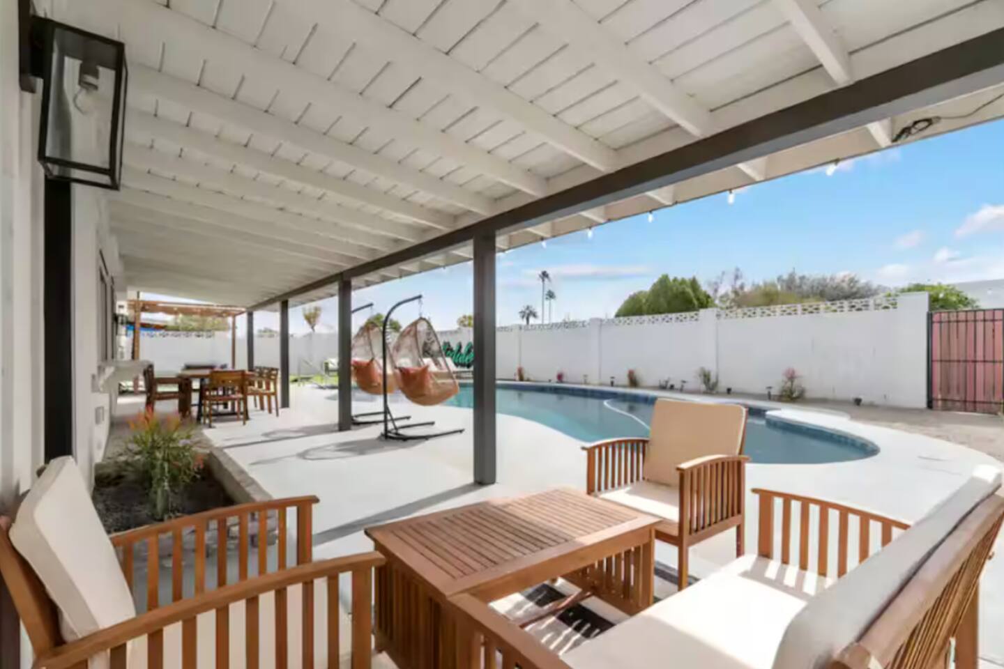 KEY FEATURES: ☀ 5 luxurious bedrooms; 1 king, 3 queens, and 2 full beds (bunk bed) ☀ 2 modern bathrooms ☀ Stunning kitchen with modern appliances ☀ Large living room with tons of comfy seating - perfect for entertaining! ☀ Open dining room with seating for 8 (opens up to the backyard) ☀ Game room with pool table ☀ AMAZING backyard; heated pool, fire pit, and more! ☀ Quiet location just a few minutes away from Old Town Here Are A Few Kind Words From Our Past Guests: “This was a great place to stay! The morning light through the windows was so beautiful. Overall, just a relaxing experience. The hosts were super responsive whenever I had a question. I would stay again!” - Emily “Sabrina was very accommodating and communicative. the house is beautiful and very comfortable, close to nature hikes.” - Jennifer “This place was lovely! Exactly as pictured! Very clean and excellent host experience!!! I plan to come back again!” - Regina ☆☆ BEDROOMS ☆☆ Spread throughout the home, you'll find 5 bedrooms. The large master bedroom has a king bed, smart TV, and direct access to the backyard (also with an attached ensuite bathroom). There are three more bedrooms down the hall, each with one queen bed. A full bathroom with a shower/tub combo is shared by these three bedrooms. On the other end of the home is the fifth bedroom, with two full beds (bunk bed) and a door opening up to the backyard. ☆☆ BATHROOMS ☆☆ Both bathrooms in this home have been completely renovated and live up to the modern standard of the rest of the home. The master ensuite has a dual vanity, toilet, and a walk-in shower. The hallway bathroom has one sink, one toilet, and a shower/tub combo. ☆☆ KITCHEN & DINING ☆☆ This kitchen is absolutely STUNNING! Sleek, modern, and so functional! Brand new modern appliances (including a wine fridge), coffee station, and opens right up to the rest of the entertaining space. Right across from the kitchen is the dining room, with seating for 8 and direct access to the backyard. ☆☆ LIVING ROOM ☆☆ As you enter the home, you'll be greeted with the grand living room. Large smart TV, big sectional couch, electric fireplace, and a record player completes this classy, comfortable space for the whole crew to hang out and enjoy the Scottsdale ambiance! ☆☆ GAME ROOM ☆☆ The garage has been converted into a game room, complete with a pool table, seating, bistro tables, and a social media-ready mural that is perfect for a fun photoshoot! ☆☆ OUTDOOR SPACE ☆☆ The backyard is so classy and elegant! A heated pool is the centerpiece of this yard, with lots of other amenities surrounding the space, including a fire pit, comfy outdoor seating, outdoor dining, games, and sun lounging chairs - you will feel right at home will never want to leave! ★☆ Book Now & Let Us Take Care Of You In Scottsdale! ☆★