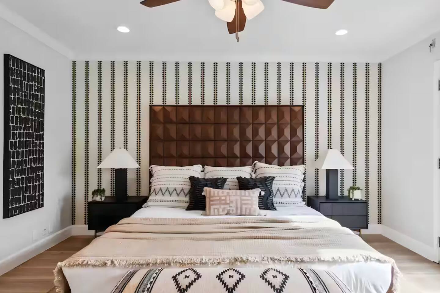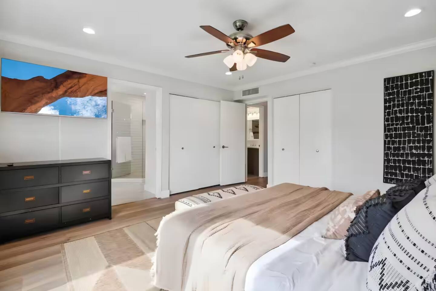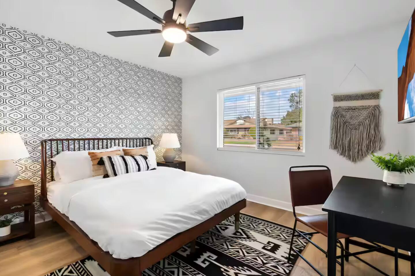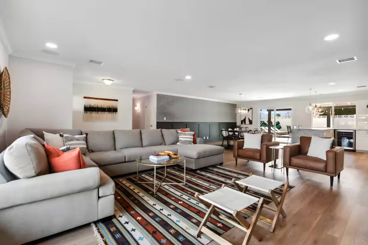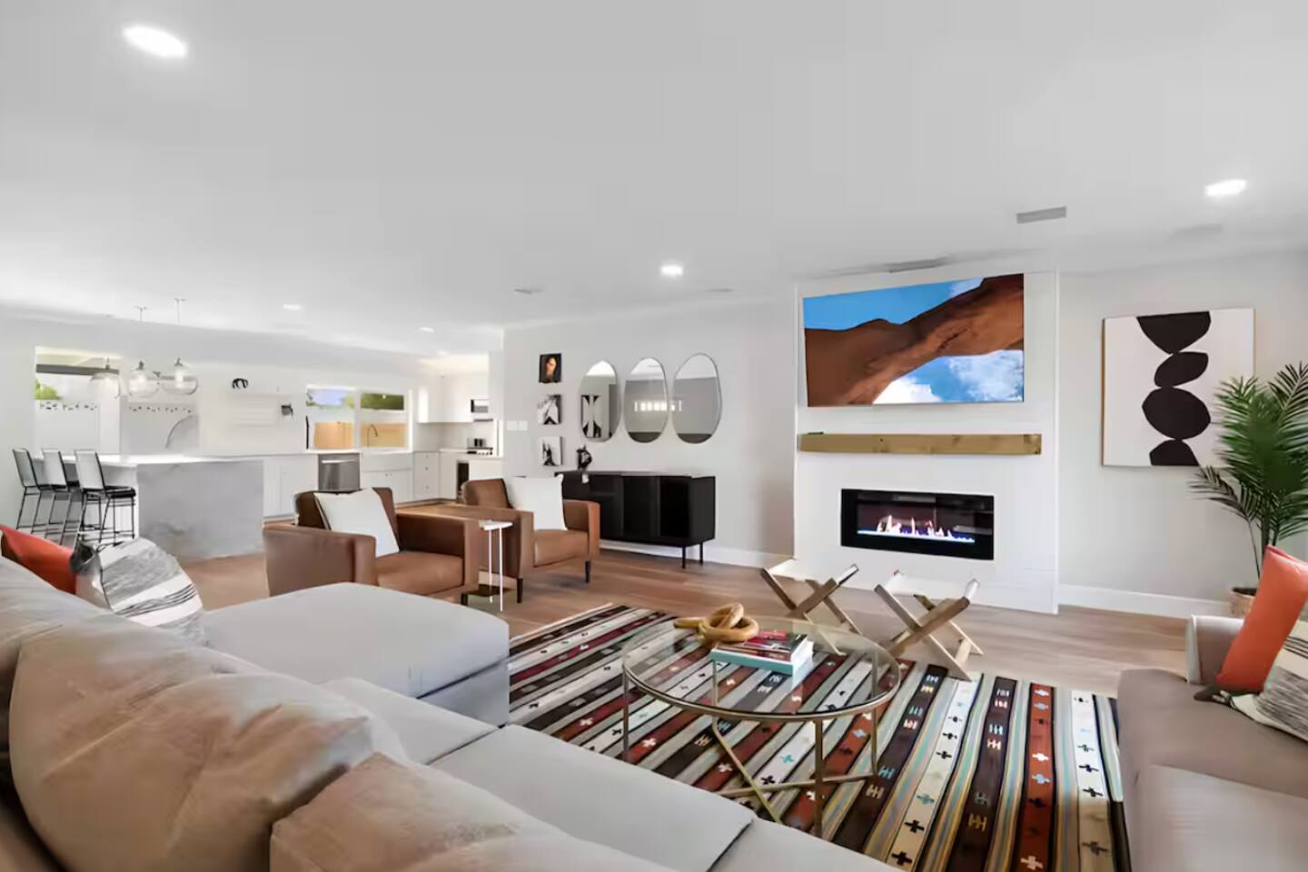 KEY FEATURES: ☀ 5 luxurious bedrooms; 1 king, 3 queens, and 2 full beds (bunk bed) ☀ 2 modern bathrooms ☀ Stunning kitchen with modern appliances ☀ Large living room with tons of comfy seating - perfect for entertaining! ☀ Open dining room with seating for 8 (opens up to the backyard) ☀ Game room with pool table ☀ AMAZING backyard; heated pool, fire pit, and more! ☀ Quiet location just a few minutes away from Old Town Here Are A Few Kind Words From Our Past Guests: “This was a great place to stay! The morning light through the windows was so beautiful. Overall, just a relaxing experience. The hosts were super responsive whenever I had a question. I would stay again!” - Emily “Sabrina was very accommodating and communicative. the house is beautiful and very comfortable, close to nature hikes.” - Jennifer “This place was lovely! Exactly as pictured! Very clean and excellent host experience!!! I plan to come back again!” - Regina ☆☆ BEDROOMS ☆☆ Spread throughout the home, you'll find 5 bedrooms. The large master bedroom has a king bed, smart TV, and direct access to the backyard (also with an attached ensuite bathroom). There are three more bedrooms down the hall, each with one queen bed. A full bathroom with a shower/tub combo is shared by these three bedrooms. On the other end of the home is the fifth bedroom, with two full beds (bunk bed) and a door opening up to the backyard. ☆☆ BATHROOMS ☆☆ Both bathrooms in this home have been completely renovated and live up to the modern standard of the rest of the home. The master ensuite has a dual vanity, toilet, and a walk-in shower. The hallway bathroom has one sink, one toilet, and a shower/tub combo. ☆☆ KITCHEN & DINING ☆☆ This kitchen is absolutely STUNNING! Sleek, modern, and so functional! Brand new modern appliances (including a wine fridge), coffee station, and opens right up to the rest of the entertaining space. Right across from the kitchen is the dining room, with seating for 8 and direct access to the backyard. ☆☆ LIVING ROOM ☆☆ As you enter the home, you'll be greeted with the grand living room. Large smart TV, big sectional couch, electric fireplace, and a record player completes this classy, comfortable space for the whole crew to hang out and enjoy the Scottsdale ambiance! ☆☆ GAME ROOM ☆☆ The garage has been converted into a game room, complete with a pool table, seating, bistro tables, and a social media-ready mural that is perfect for a fun photoshoot! ☆☆ OUTDOOR SPACE ☆☆ The backyard is so classy and elegant! A heated pool is the centerpiece of this yard, with lots of other amenities surrounding the space, including a fire pit, comfy outdoor seating, outdoor dining, games, and sun lounging chairs - you will feel right at home will never want to leave! ★☆ Book Now & Let Us Take Care Of You In Scottsdale! ☆★