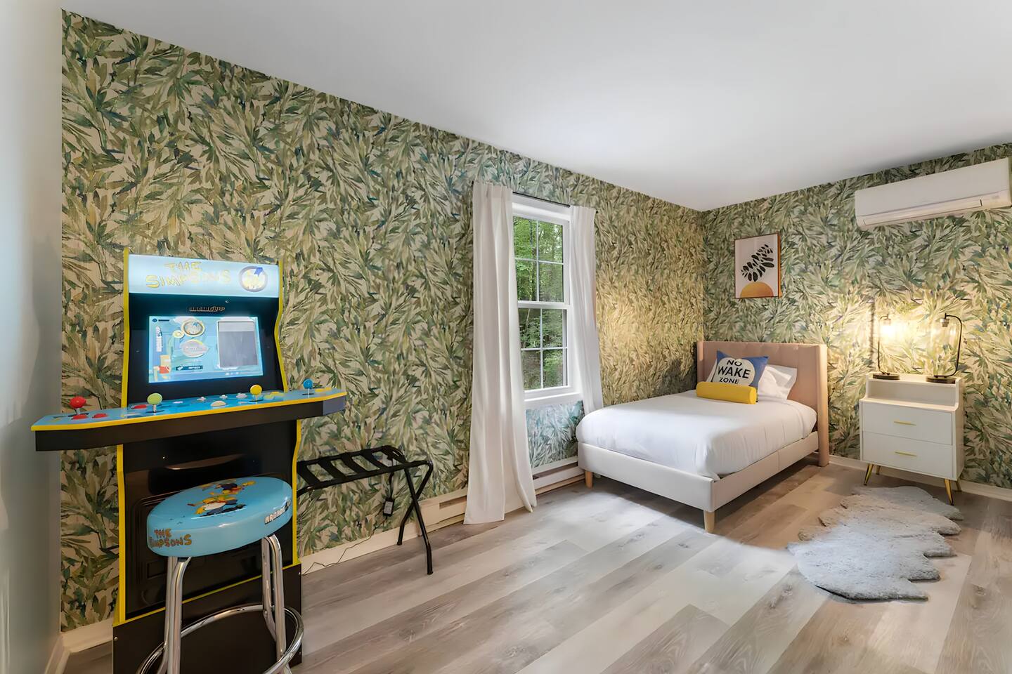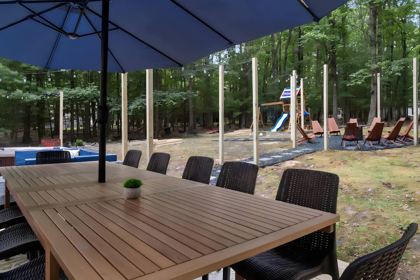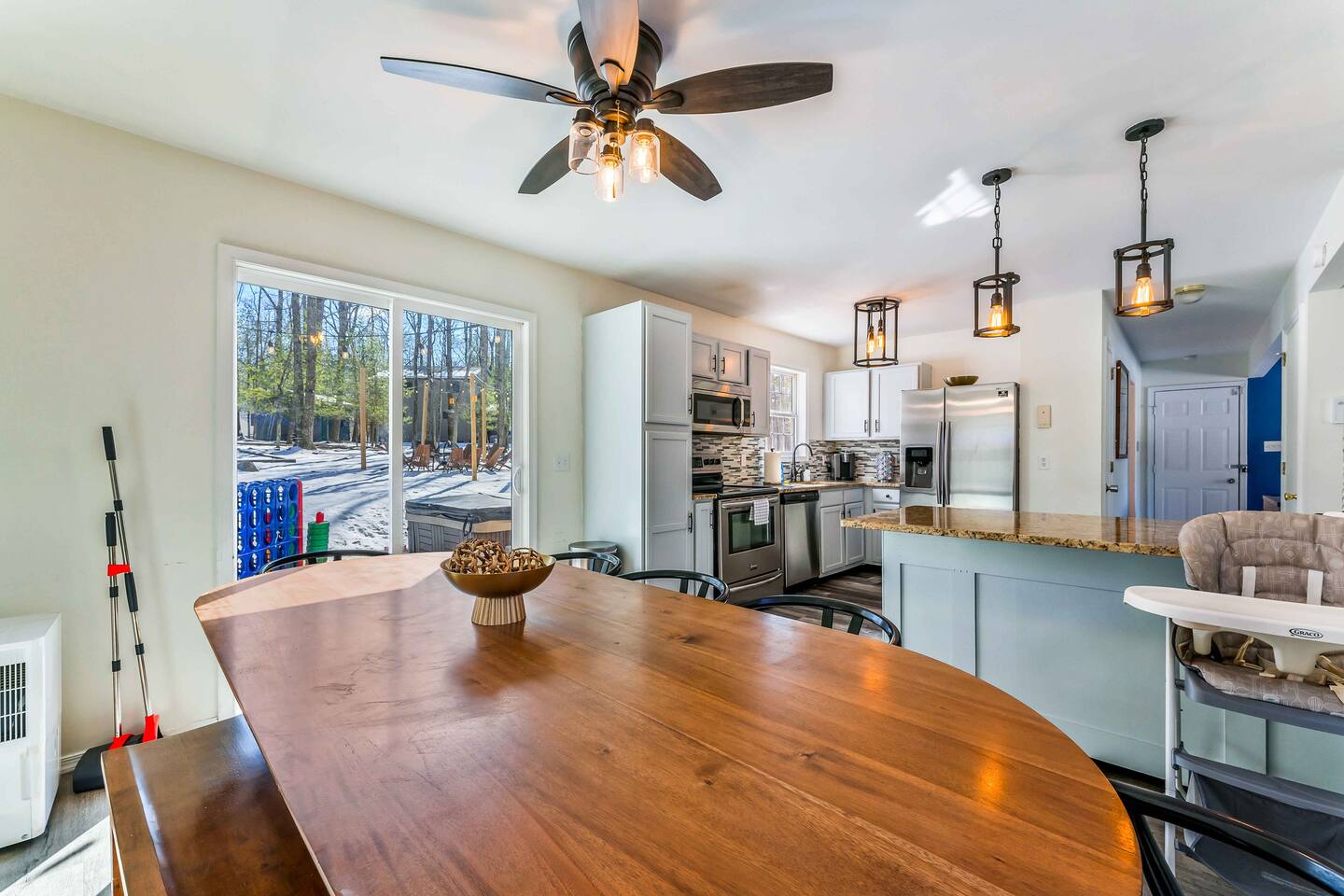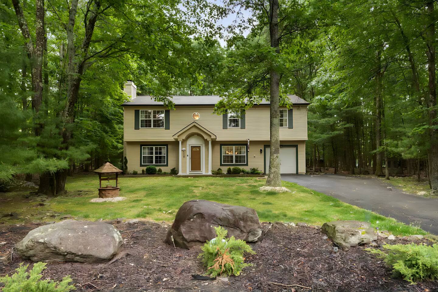 **During the summer months (Memorial Day weekend - Labor Day weekend), you will receive amenity badges that allow you to access the following amenities. If you’re staying with us outside of these dates, these amenities will be closed.** ☀ Lakes (with beach access - swimming allowed!) ☀ Pools ☀ Tennis courts ☀ Basketball courts ☀ Volleyball courts ☀ Dog park ☀ Playground areas KEY FEATURES: ☀ 5 beautiful bedrooms; 2 kings, 1 full, & 6 twin beds (including 2 sets of bunk beds) ☀ 2 full bathrooms ☀ Modern kitchen with new, stainless steel appliances ☀ Open living room with lots of comfy seating & smart TV ☀ Dining room with seating to accommodate 10 (+ 2 countertop seats) ☀ Fun game room with pool table, arcade games, & more! ☀ TONS of amenities in the private backyard; hot tub, fire pit, corn hole, ring toss, jungle gym, & more! Here Are A Few Kind Words From Our Past Guests: “This was a great place to stay! The morning light through the windows was so beautiful. Overall, just a relaxing experience. The hosts were super responsive whenever I had a question. I would stay again!” - Emily “Sabrina was very accommodating and communicative. the house is beautiful and very comfortable, close to nature hikes.” - Jennifer “This place was lovely! Exactly as pictured! Very clean and excellent host experience!!! I plan to come back again!” - Regina ☆☆ BEDROOMS ☆☆ Each of the 5 bedrooms in this home have been masterfully designed for beauty & comfort, all of which are upstairs. Two bedrooms have one king bed & smart TV in each, the third bedroom has one full size bed, the fourth has two twins (& arcade games!), and the fifth bedroom has 4 twin beds (2 bunk beds) & an attached bathroom. ☆☆ BATHROOMS ☆☆ There are two full bathrooms in this home. The first is on the lower level, with a sink, toilet, and walk-in shower. The other bathroom is on the second level, with one sink, toilet, and shower/tub combo. ☆☆ KITCHEN & DINING ☆☆ The modern kitchen is located right off of the main living areas, and is loaded with all new stainless steel appliances & a coffee station (including a Keurig & coffee pods). The dining room is right next to the kitchen, with enough seating to fit 10 people, plus two countertop seats. ☆☆ LIVING ROOM ☆☆ In the living room, you’ll be greeted with lots of comfy seating & a big smart TV. This is the perfect spot to host your movie nights & games with your friends and family! ☆☆ GAME ROOM ☆☆ Keep your family and friends entertained throughout your stay in our amenity-filled game room! Pool table, two arcade games, and darts. Whether your reason for staying is to explore the town or stay at home and relax, this place will be the perfect spot to unwind! ☆☆ OUTDOOR SPACE ☆☆ This backyard is everything you could ask for, and more! ☀ Hot tub ☀ Fire pit ☀ Jungle gym ☀ Corn hole ☀ Ring toss ☀ BBQ grill ☀ Covered outdoor dining ☀ Outdoor lounge seating There is so much to do here, that all of your friends & family will be thoroughly entertained throughout your entire stay. No matter the season, this backyard has it all. Book your stay with us today and you will NOT be disappointed. Get ready for a vacation you will never forget! ★☆ Book Now & Let Us Take Care Of You In The Poconos! ☆★