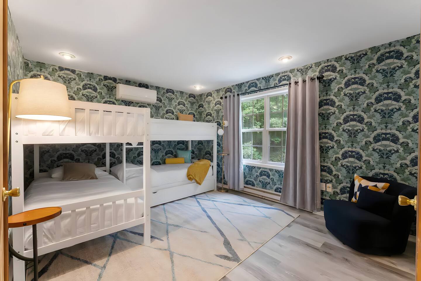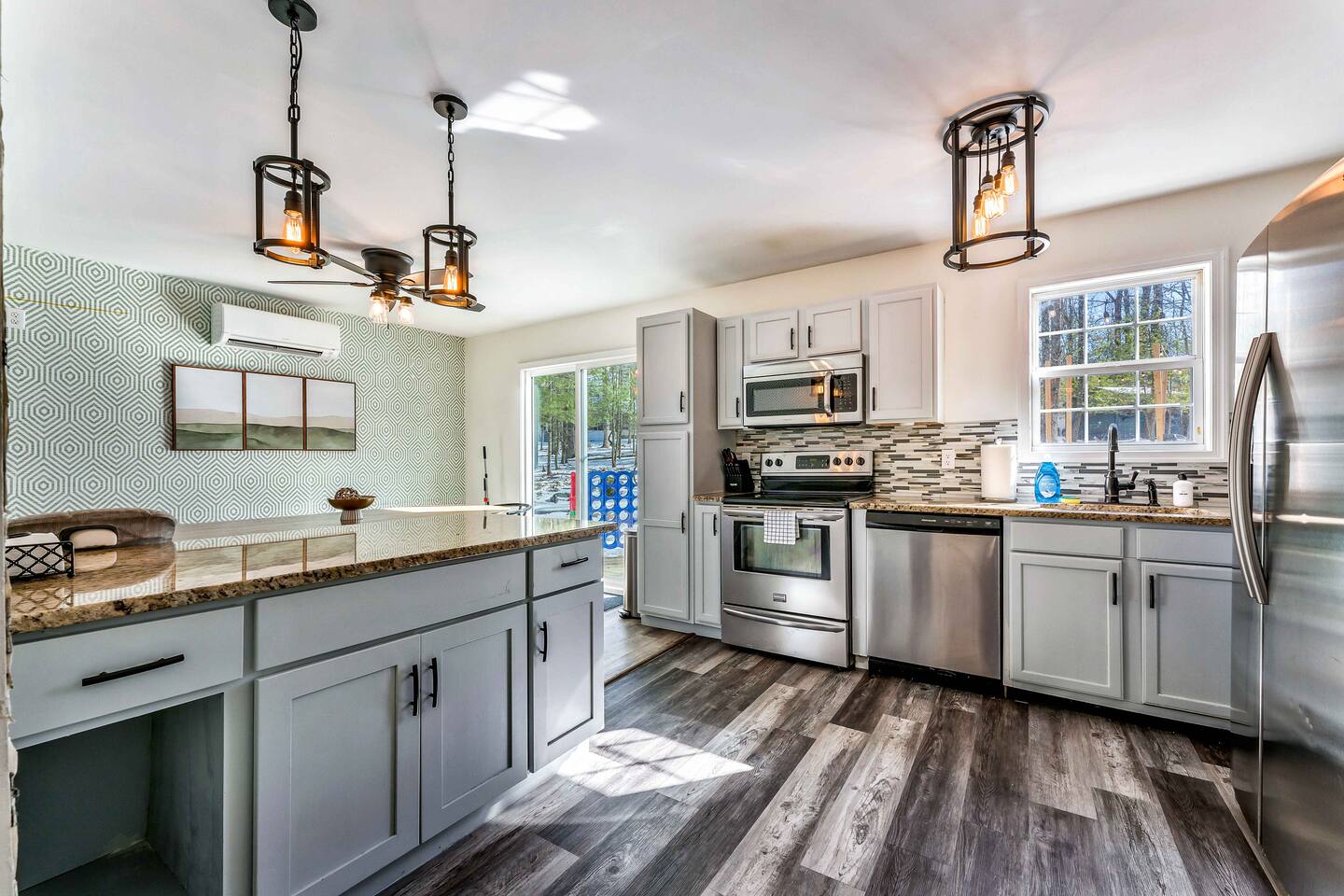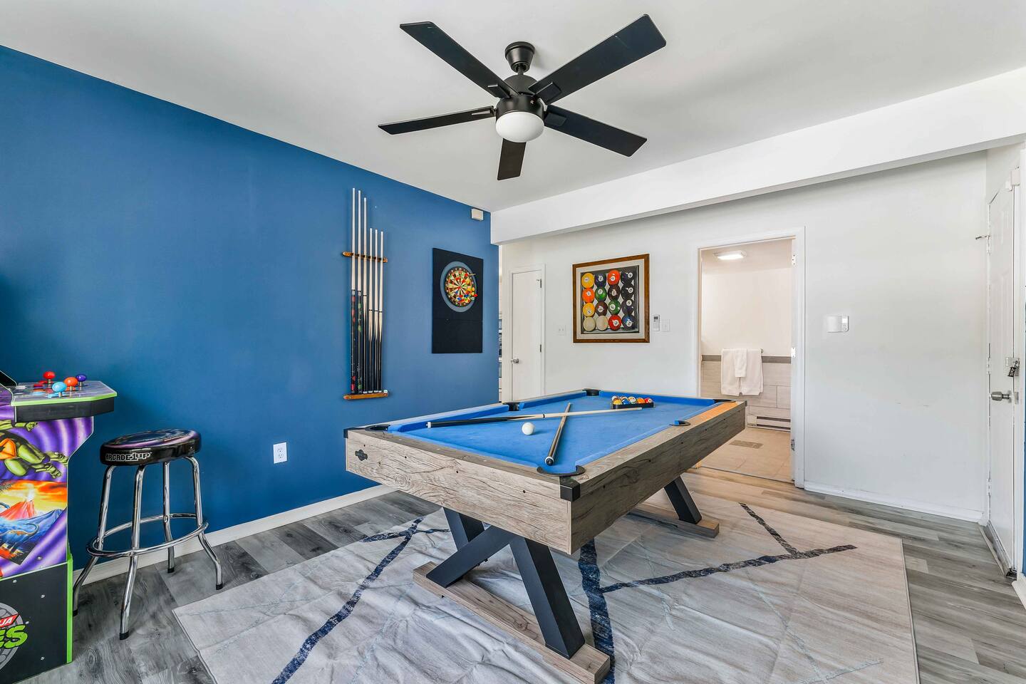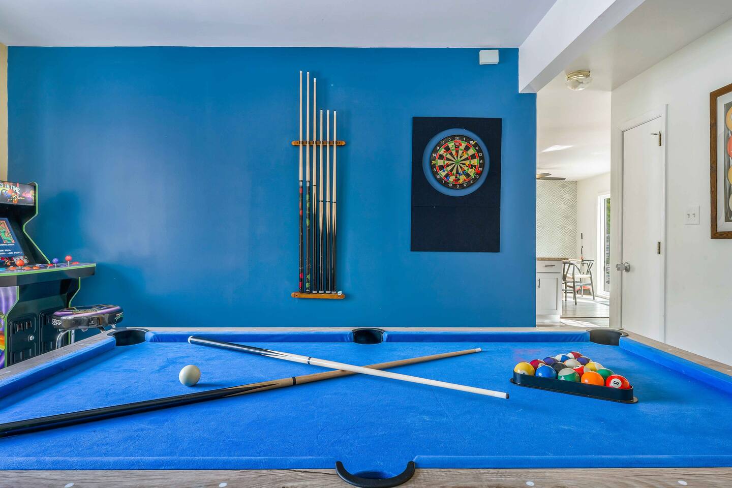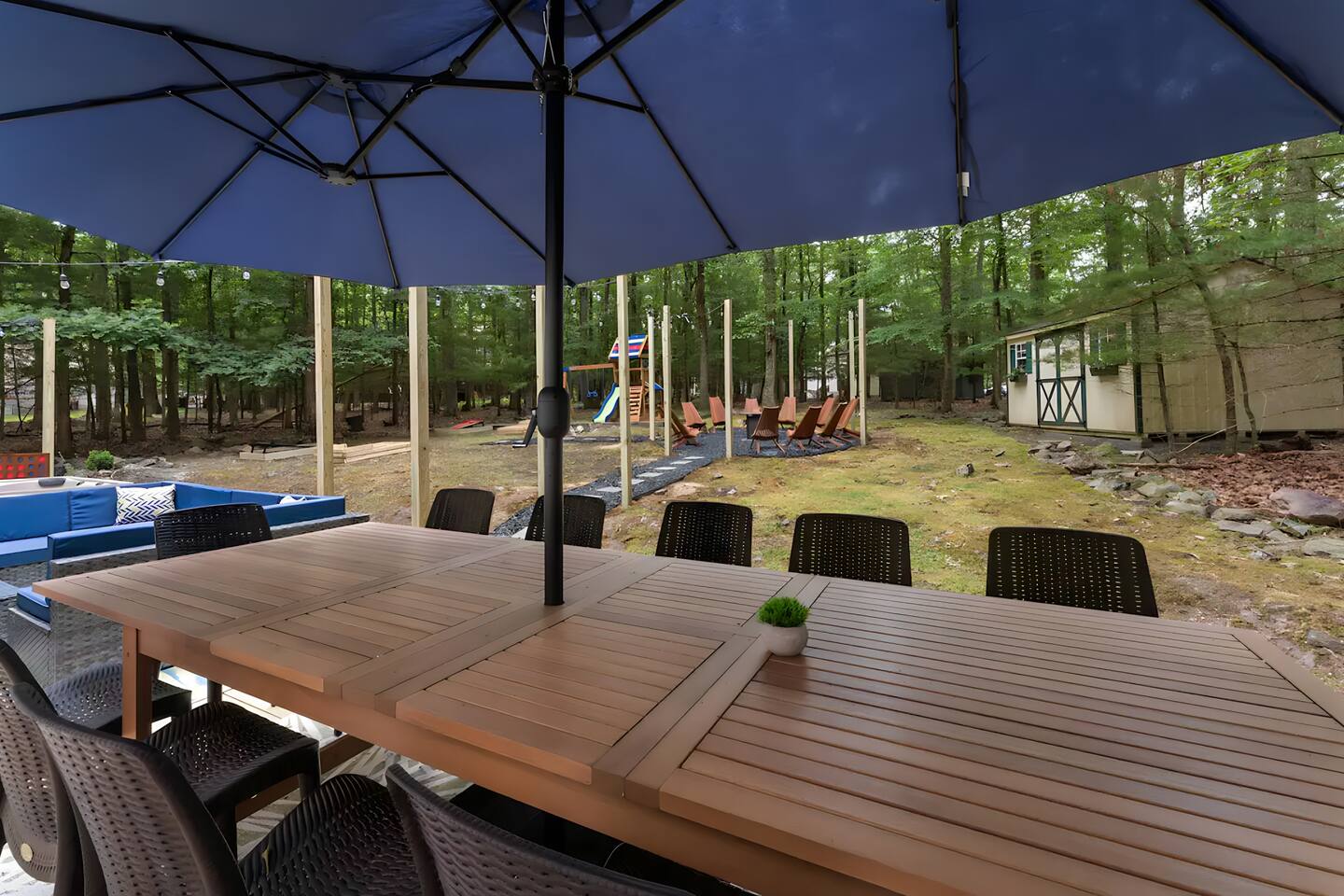 **During the summer months (Memorial Day weekend - Labor Day weekend), you will receive amenity badges that allow you to access the following amenities. If you’re staying with us outside of these dates, these amenities will be closed.** ☀ Lakes (with beach access - swimming allowed!) ☀ Pools ☀ Tennis courts ☀ Basketball courts ☀ Volleyball courts ☀ Dog park ☀ Playground areas KEY FEATURES: ☀ 5 beautiful bedrooms; 2 kings, 1 full, & 6 twin beds (including 2 sets of bunk beds) ☀ 2 full bathrooms ☀ Modern kitchen with new, stainless steel appliances ☀ Open living room with lots of comfy seating & smart TV ☀ Dining room with seating to accommodate 10 (+ 2 countertop seats) ☀ Fun game room with pool table, arcade games, & more! ☀ TONS of amenities in the private backyard; hot tub, fire pit, corn hole, ring toss, jungle gym, & more! Here Are A Few Kind Words From Our Past Guests: “This was a great place to stay! The morning light through the windows was so beautiful. Overall, just a relaxing experience. The hosts were super responsive whenever I had a question. I would stay again!” - Emily “Sabrina was very accommodating and communicative. the house is beautiful and very comfortable, close to nature hikes.” - Jennifer “This place was lovely! Exactly as pictured! Very clean and excellent host experience!!! I plan to come back again!” - Regina ☆☆ BEDROOMS ☆☆ Each of the 5 bedrooms in this home have been masterfully designed for beauty & comfort, all of which are upstairs. Two bedrooms have one king bed & smart TV in each, the third bedroom has one full size bed, the fourth has two twins (& arcade games!), and the fifth bedroom has 4 twin beds (2 bunk beds) & an attached bathroom. ☆☆ BATHROOMS ☆☆ There are two full bathrooms in this home. The first is on the lower level, with a sink, toilet, and walk-in shower. The other bathroom is on the second level, with one sink, toilet, and shower/tub combo. ☆☆ KITCHEN & DINING ☆☆ The modern kitchen is located right off of the main living areas, and is loaded with all new stainless steel appliances & a coffee station (including a Keurig & coffee pods). The dining room is right next to the kitchen, with enough seating to fit 10 people, plus two countertop seats. ☆☆ LIVING ROOM ☆☆ In the living room, you’ll be greeted with lots of comfy seating & a big smart TV. This is the perfect spot to host your movie nights & games with your friends and family! ☆☆ GAME ROOM ☆☆ Keep your family and friends entertained throughout your stay in our amenity-filled game room! Pool table, two arcade games, and darts. Whether your reason for staying is to explore the town or stay at home and relax, this place will be the perfect spot to unwind! ☆☆ OUTDOOR SPACE ☆☆ This backyard is everything you could ask for, and more! ☀ Hot tub ☀ Fire pit ☀ Jungle gym ☀ Corn hole ☀ Ring toss ☀ BBQ grill ☀ Covered outdoor dining ☀ Outdoor lounge seating There is so much to do here, that all of your friends & family will be thoroughly entertained throughout your entire stay. No matter the season, this backyard has it all. Book your stay with us today and you will NOT be disappointed. Get ready for a vacation you will never forget! ★☆ Book Now & Let Us Take Care Of You In The Poconos! ☆★