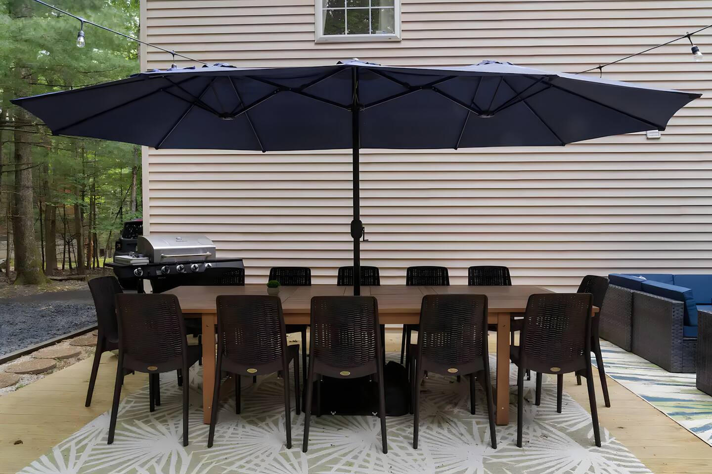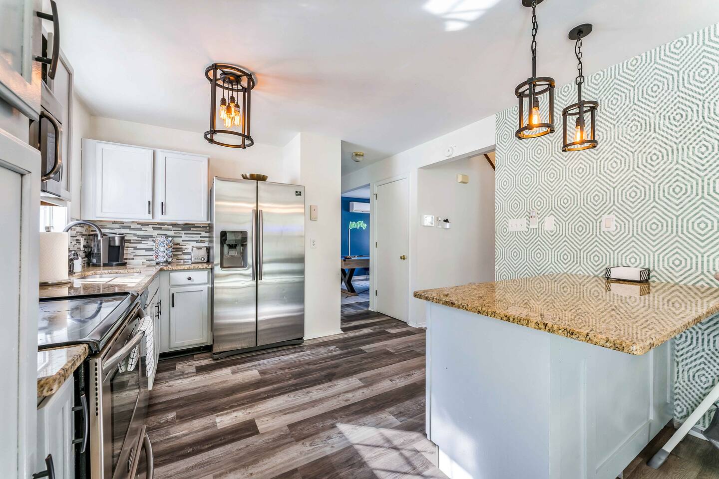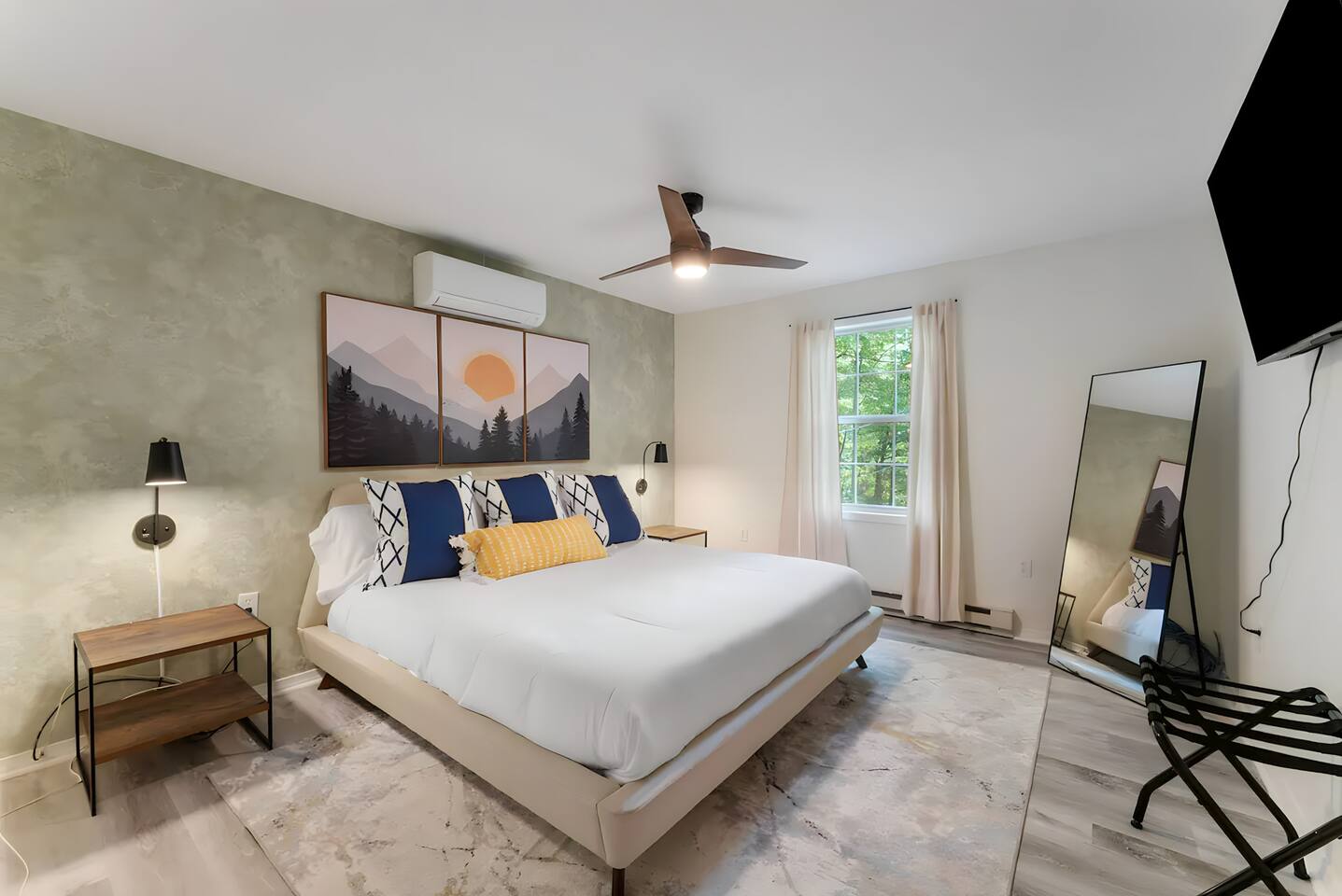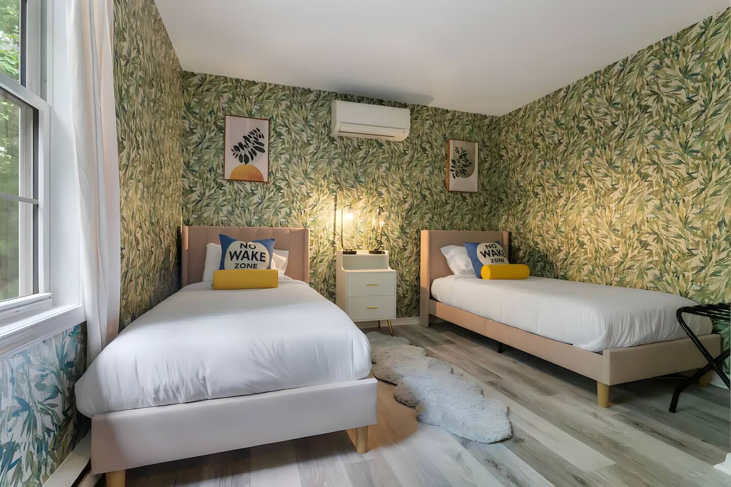 **During the summer months (Memorial Day weekend - Labor Day weekend), you will receive amenity badges that allow you to access the following amenities. If you’re staying with us outside of these dates, these amenities will be closed.** ☀ Lakes (with beach access - swimming allowed!) ☀ Pools ☀ Tennis courts ☀ Basketball courts ☀ Volleyball courts ☀ Dog park ☀ Playground areas KEY FEATURES: ☀ 5 beautiful bedrooms; 2 kings, 1 full, & 6 twin beds (including 2 sets of bunk beds) ☀ 2 full bathrooms ☀ Modern kitchen with new, stainless steel appliances ☀ Open living room with lots of comfy seating & smart TV ☀ Dining room with seating to accommodate 10 (+ 2 countertop seats) ☀ Fun game room with pool table, arcade games, & more! ☀ TONS of amenities in the private backyard; hot tub, fire pit, corn hole, ring toss, jungle gym, & more! Here Are A Few Kind Words From Our Past Guests: “This was a great place to stay! The morning light through the windows was so beautiful. Overall, just a relaxing experience. The hosts were super responsive whenever I had a question. I would stay again!” - Emily “Sabrina was very accommodating and communicative. the house is beautiful and very comfortable, close to nature hikes.” - Jennifer “This place was lovely! Exactly as pictured! Very clean and excellent host experience!!! I plan to come back again!” - Regina ☆☆ BEDROOMS ☆☆ Each of the 5 bedrooms in this home have been masterfully designed for beauty & comfort, all of which are upstairs. Two bedrooms have one king bed & smart TV in each, the third bedroom has one full size bed, the fourth has two twins (& arcade games!), and the fifth bedroom has 4 twin beds (2 bunk beds) & an attached bathroom. ☆☆ BATHROOMS ☆☆ There are two full bathrooms in this home. The first is on the lower level, with a sink, toilet, and walk-in shower. The other bathroom is on the second level, with one sink, toilet, and shower/tub combo. ☆☆ KITCHEN & DINING ☆☆ The modern kitchen is located right off of the main living areas, and is loaded with all new stainless steel appliances & a coffee station (including a Keurig & coffee pods). The dining room is right next to the kitchen, with enough seating to fit 10 people, plus two countertop seats. ☆☆ LIVING ROOM ☆☆ In the living room, you’ll be greeted with lots of comfy seating & a big smart TV. This is the perfect spot to host your movie nights & games with your friends and family! ☆☆ GAME ROOM ☆☆ Keep your family and friends entertained throughout your stay in our amenity-filled game room! Pool table, two arcade games, and darts. Whether your reason for staying is to explore the town or stay at home and relax, this place will be the perfect spot to unwind! ☆☆ OUTDOOR SPACE ☆☆ This backyard is everything you could ask for, and more! ☀ Hot tub ☀ Fire pit ☀ Jungle gym ☀ Corn hole ☀ Ring toss ☀ BBQ grill ☀ Covered outdoor dining ☀ Outdoor lounge seating There is so much to do here, that all of your friends & family will be thoroughly entertained throughout your entire stay. No matter the season, this backyard has it all. Book your stay with us today and you will NOT be disappointed. Get ready for a vacation you will never forget! ★☆ Book Now & Let Us Take Care Of You In The Poconos! ☆★