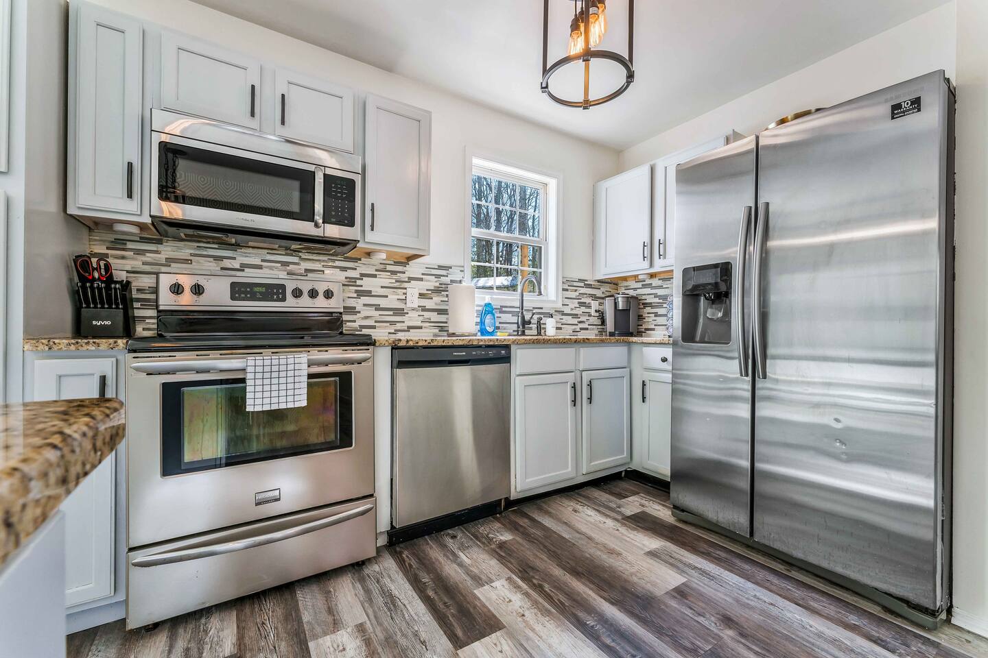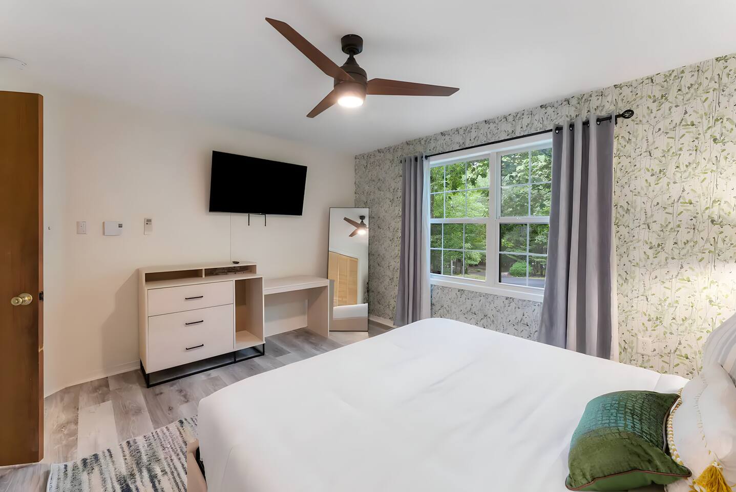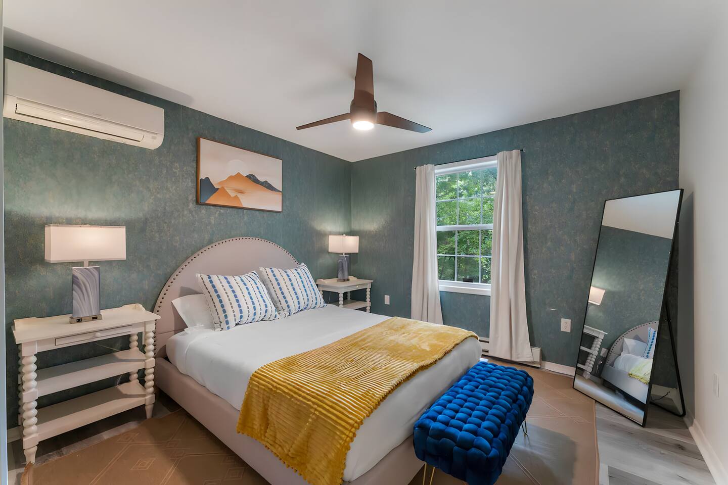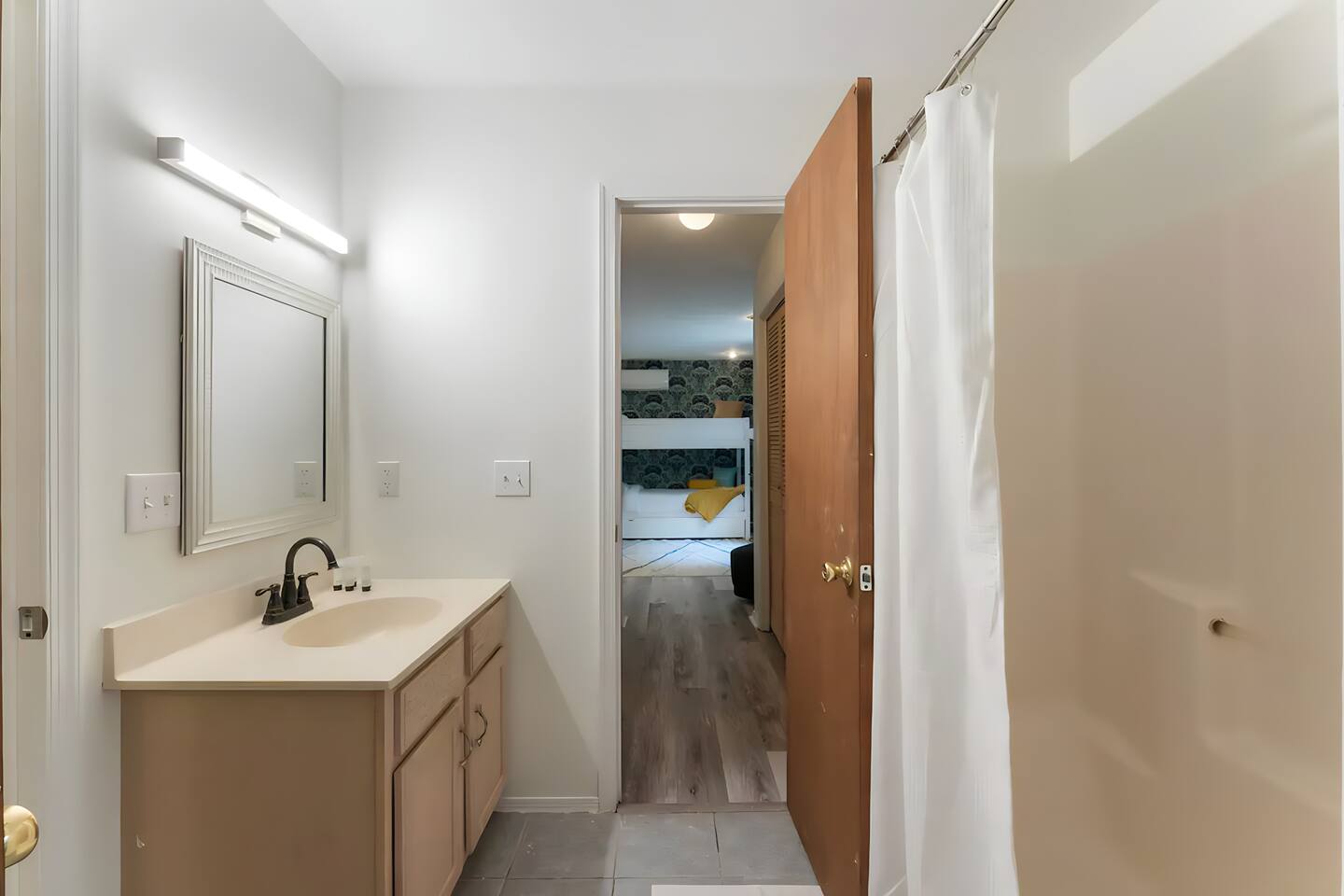 **During the summer months (Memorial Day weekend - Labor Day weekend), you will receive amenity badges that allow you to access the following amenities. If you’re staying with us outside of these dates, these amenities will be closed.** ☀ Lakes (with beach access - swimming allowed!) ☀ Pools ☀ Tennis courts ☀ Basketball courts ☀ Volleyball courts ☀ Dog park ☀ Playground areas KEY FEATURES: ☀ 5 beautiful bedrooms; 2 kings, 1 full, & 6 twin beds (including 2 sets of bunk beds) ☀ 2 full bathrooms ☀ Modern kitchen with new, stainless steel appliances ☀ Open living room with lots of comfy seating & smart TV ☀ Dining room with seating to accommodate 10 (+ 2 countertop seats) ☀ Fun game room with pool table, arcade games, & more! ☀ TONS of amenities in the private backyard; hot tub, fire pit, corn hole, ring toss, jungle gym, & more! Here Are A Few Kind Words From Our Past Guests: “This was a great place to stay! The morning light through the windows was so beautiful. Overall, just a relaxing experience. The hosts were super responsive whenever I had a question. I would stay again!” - Emily “Sabrina was very accommodating and communicative. the house is beautiful and very comfortable, close to nature hikes.” - Jennifer “This place was lovely! Exactly as pictured! Very clean and excellent host experience!!! I plan to come back again!” - Regina ☆☆ BEDROOMS ☆☆ Each of the 5 bedrooms in this home have been masterfully designed for beauty & comfort, all of which are upstairs. Two bedrooms have one king bed & smart TV in each, the third bedroom has one full size bed, the fourth has two twins (& arcade games!), and the fifth bedroom has 4 twin beds (2 bunk beds) & an attached bathroom. ☆☆ BATHROOMS ☆☆ There are two full bathrooms in this home. The first is on the lower level, with a sink, toilet, and walk-in shower. The other bathroom is on the second level, with one sink, toilet, and shower/tub combo. ☆☆ KITCHEN & DINING ☆☆ The modern kitchen is located right off of the main living areas, and is loaded with all new stainless steel appliances & a coffee station (including a Keurig & coffee pods). The dining room is right next to the kitchen, with enough seating to fit 10 people, plus two countertop seats. ☆☆ LIVING ROOM ☆☆ In the living room, you’ll be greeted with lots of comfy seating & a big smart TV. This is the perfect spot to host your movie nights & games with your friends and family! ☆☆ GAME ROOM ☆☆ Keep your family and friends entertained throughout your stay in our amenity-filled game room! Pool table, two arcade games, and darts. Whether your reason for staying is to explore the town or stay at home and relax, this place will be the perfect spot to unwind! ☆☆ OUTDOOR SPACE ☆☆ This backyard is everything you could ask for, and more! ☀ Hot tub ☀ Fire pit ☀ Jungle gym ☀ Corn hole ☀ Ring toss ☀ BBQ grill ☀ Covered outdoor dining ☀ Outdoor lounge seating There is so much to do here, that all of your friends & family will be thoroughly entertained throughout your entire stay. No matter the season, this backyard has it all. Book your stay with us today and you will NOT be disappointed. Get ready for a vacation you will never forget! ★☆ Book Now & Let Us Take Care Of You In The Poconos! ☆★