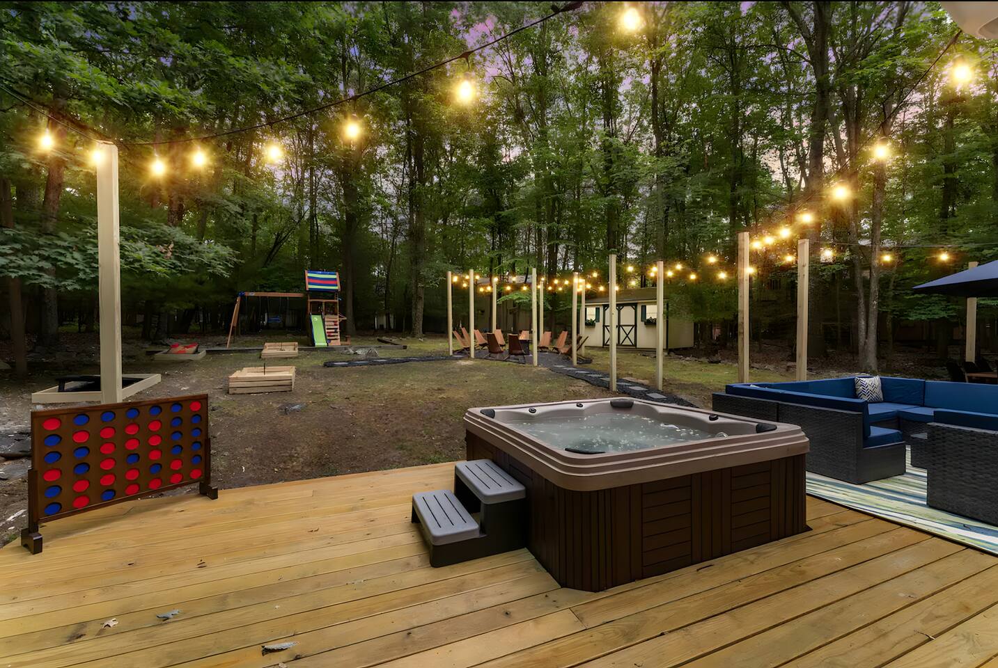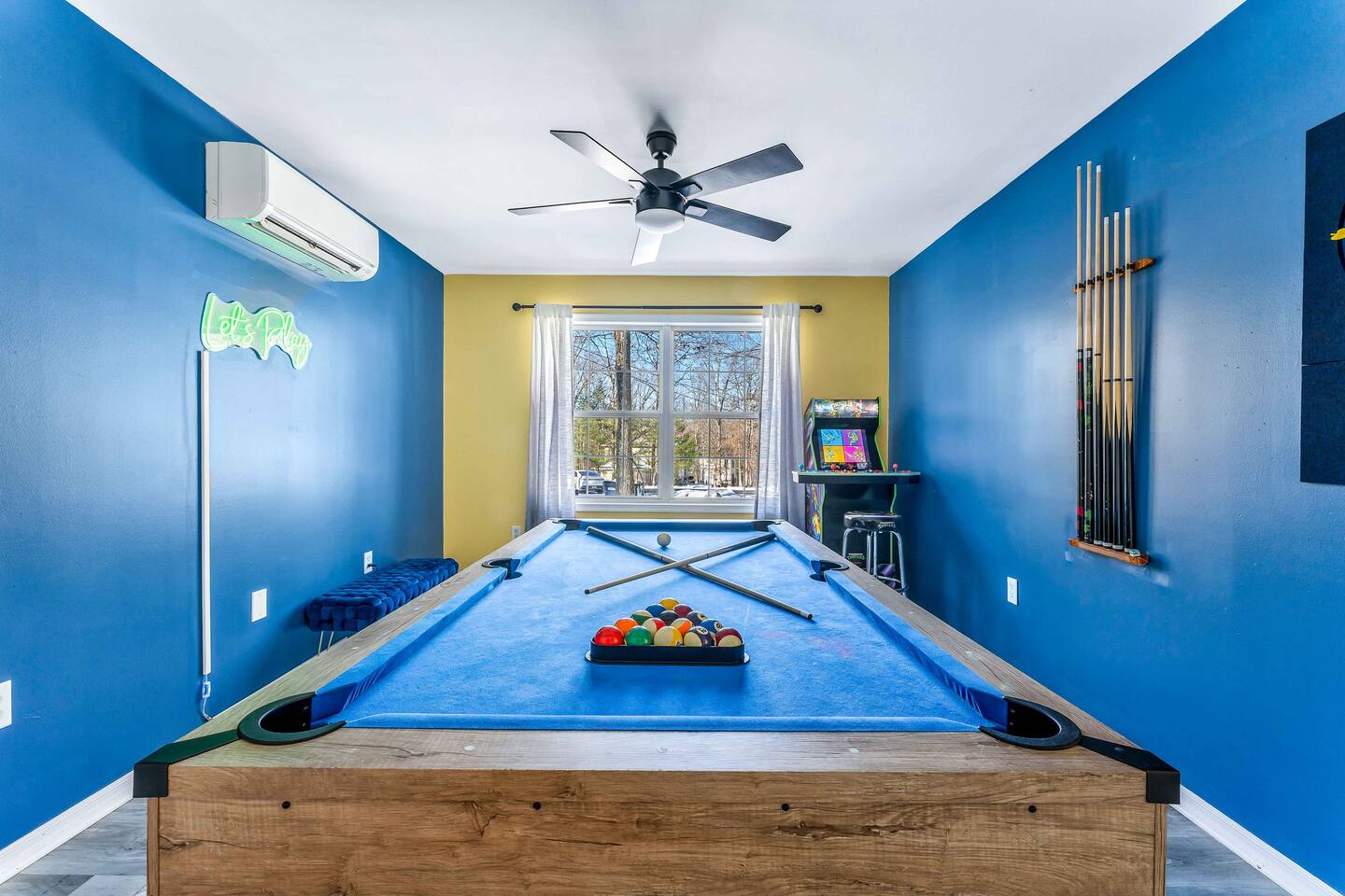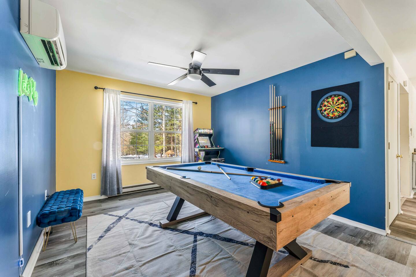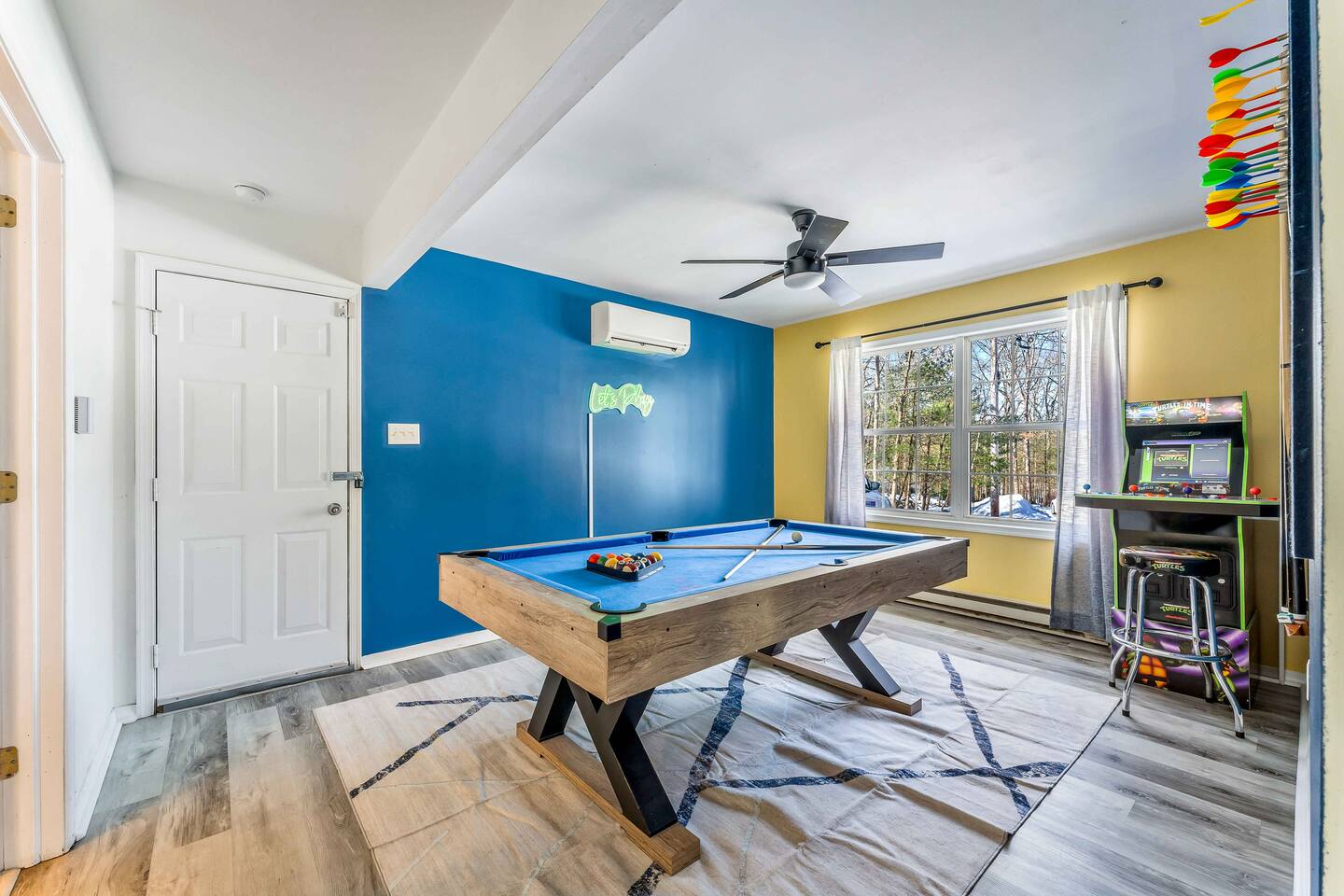 Conveniently located just minutes away from all the natural attractions that the Poconos has to offer (lakes, hiking, & more!), you will have all the amenities & entertainment you could need right here at home. Hot tub, fire pit, jungle gym, corn hole, ring toss, pool table, arcade games, and much more! 15 min - Delaware Water Gap, Downtown Stroudsburg 20 min - Kalahari Resort, Shawnee Mountain, Big Pocono State Park 30 min - Bushkill Falls Experience The Poconos With Us & Learn More Below!