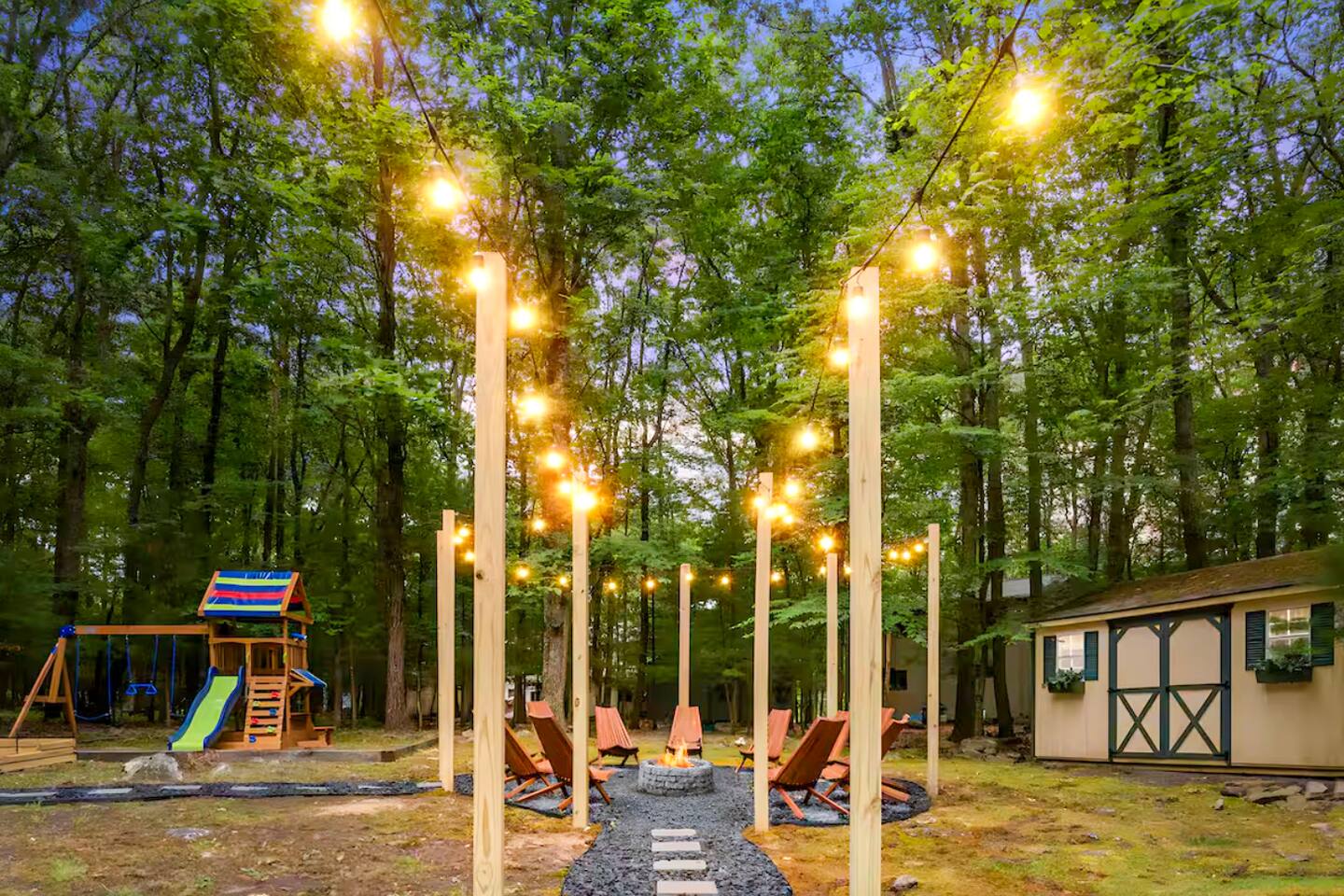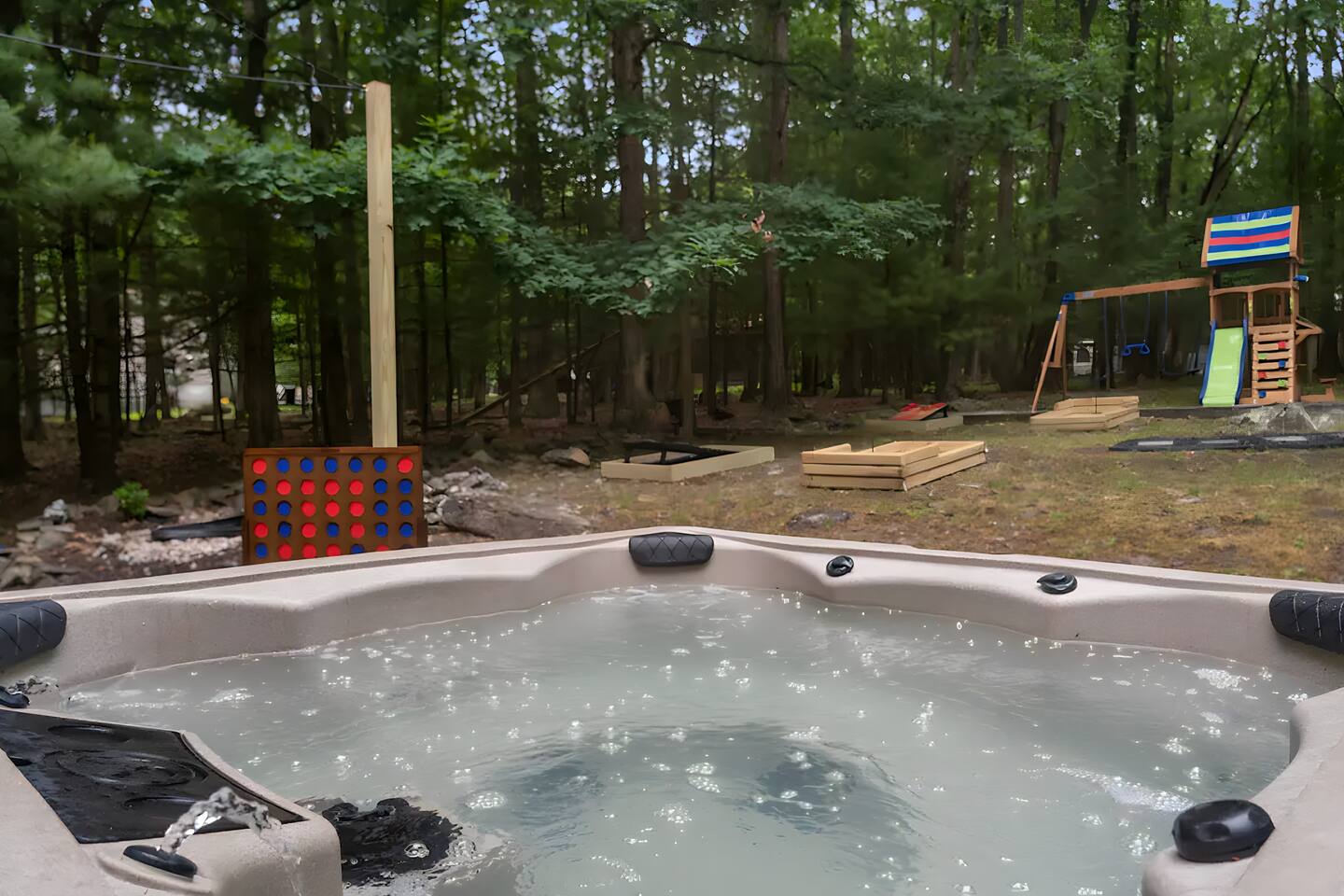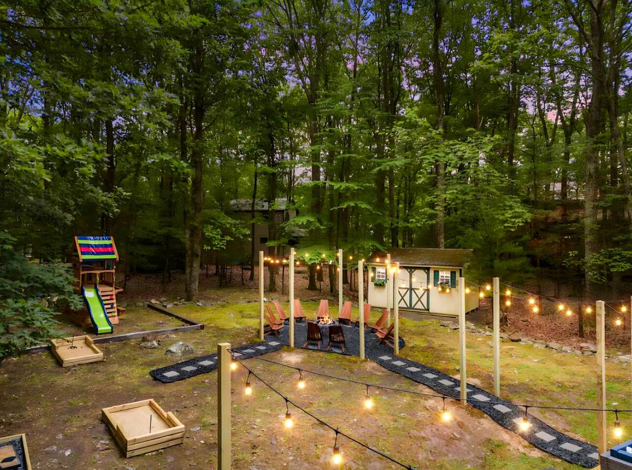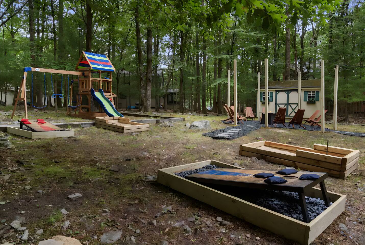 Conveniently located just minutes away from all the natural attractions that the Poconos has to offer (lakes, hiking, & more!), you will have all the amenities & entertainment you could need right here at home. Hot tub, fire pit, jungle gym, corn hole, ring toss, pool table, arcade games, and much more! 15 min - Delaware Water Gap, Downtown Stroudsburg 20 min - Kalahari Resort, Shawnee Mountain, Big Pocono State Park 30 min - Bushkill Falls Experience The Poconos With Us & Learn More Below!