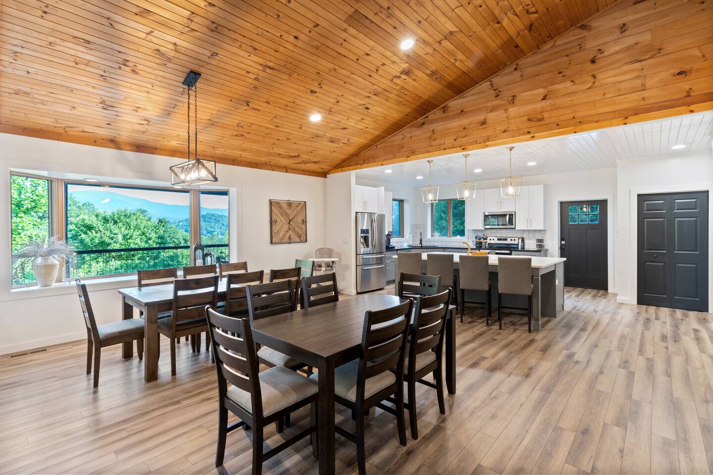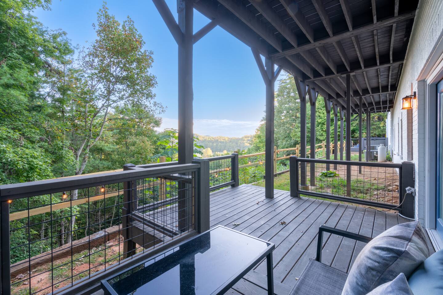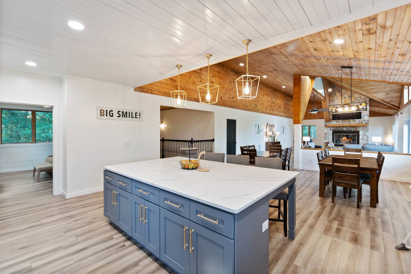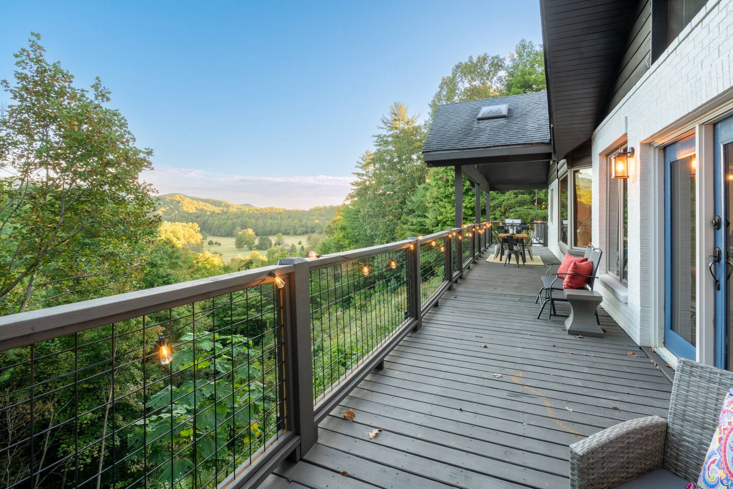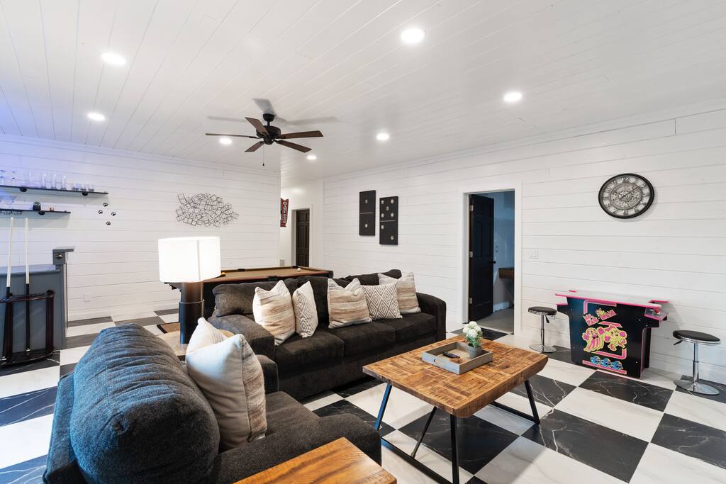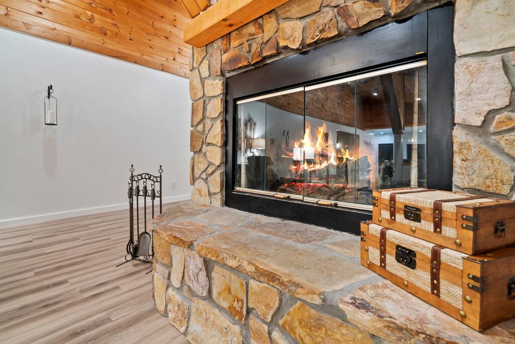 KEY FEATURES: ☀ 6 spacious bedrooms; 3 kings, 2 queens, 2 fulls, & 2 twins ☀ 4 full bathrooms + 1 half bath (beautifully renovated!) ☀ Brand new modern chef's kitchen ☀ Open-concept living space with panoramic views of the mountains & high vaulted ceilings ☀ Huge, private deck with tons of seating, entertainment, and open space! ☀ Private hot tub below the deck with an unbelievable view ☀ Game room with tons of entertainment ☀ High-speed wifi and smart TVs throughout the home ☀ Complete privacy from the neighbors ☀ VIEWS, VIEWS VIEWS!!! Here Are A Few Kind Words From Our Past Guests: "House is beautiful! Very clean, great location, easy check in, and great communication! Would definitely come back!" - Patty "We loved staying here! The location is perfect and the house was just as pictured. The hosts are super responsive and would definitely book again!" - Ashley "We had a great time staying here! The location was secluded, but not completely remote. The house was clean and comfortable with plenty of amenities. It was a perfect place for our pup too." - Michael ☆☆ BEDROOMS ☆☆ Tons to pick from! This home provides you with six bedrooms. On the main level, you will find the master bedroom with a king bed, smart TV, and attached master ensuite bathroom. On the other end of the main level, the second bedroom has another king bed and its own private entrance from the outside! The half bathroom on this level is just right down the hallway from this bedroom. The remaining four bedrooms are spread across the lower level. Right upon entering the bottom floor, you are greeted with a long hallway of bedrooms. First up is the bunk bedroom, with two twin-over-full bunk beds (total of 4 beds). This bedroom shares a full Jack-&-Jill bathroom with the adjacent bedroom, which has one queen bed. Further down the hall, you will find the third downstairs bedroom with a king bed and an attached full bathroom. As you keep walking, you will pass through the game room and into the fourth and final downstairs bedroom, with complete privacy on its own end of the floor. This bedroom has a queen bed with an attached full bathroom. ☆☆ BATHROOMS ☆☆ Each bathroom in this home has been completely renovated and beautifully designed. Starting in the master ensuite, you will have two separate sinks, a walk-in shower with two separate shower heads, and a standalone bath tub. The common bathroom on this level is accessible right off of the living area, with just one toilet & a sink (half bathroom). Downstairs, the Jack-&-Jill bathroom that connects two bedrooms has one sink and a walk-in shower. The bedroom across the hall has an attached bathroom equipped with one sink & shower/tub combo. The final bathroom on this floor is attached to the bedroom adjacent to the game room, which also has one sink & a shower/tub combo. ☆☆ KITCHEN & DINING ☆☆ When you walk through the front door and you are greeted with the absolutely stunning kitchen/dining room area, you won't believe your eyes. It's BREATHTAKING!! A completely redone, modern chef's kitchen with an oversized island and surrounding views of the Blue Ridge Mountains, fully stocked with all of the cooking essentials (yes, including a Keurig and coffee pods). The kitchen opens right up into the massive dining area with a huge bay window, featuring more fantastic views of the surrounding mountains. ☆☆ LIVING SPACE ☆☆ WOW! This living room makes such a grand statement as you walk into this house. A massive wood-burning fireplace, a smart TV, tons of comfy seating, and walls of windows so that you can enjoy the mountain views all from the comfort of the cozy living room. Just around the back side of the fireplace is a dedicated workspace with privacy from the rest of the living area. ☆☆ GAME ROOM ☆☆ The massive game room on the lower level is jam-packed with all the entertainment you need! A big smart TV, lots of comfy seating, a bar area, arcade games (Ms. Pac Man), and shuffleboard in the main room, with a ping pong table room just right next door. Of course, this space has also been completely remodeled to meet the modern luxury standards of the rest of the home. Oh, and just like every other part of this house, you will have easy access onto the back deck (steps away from the hot tub) and unbelievable views around every corner. ☆☆ OUTDOOR SPACE ☆☆ OMG! You won't find another outdoor space like we have here. Tons more comfy seating all across the multiple decks that wrap around the house, a wood-burning fire pit, swinging chairs, outdoor dining, a grill, and a hot tub that is located in one of the best viewpoints of the entire home! Sit back and relax in the steaming hot tub with some of the most breathtaking views you will ever see. What more could you ask for! ★☆ Book Today & Let Us Take Care Of You In Blue Ridge! ☆★