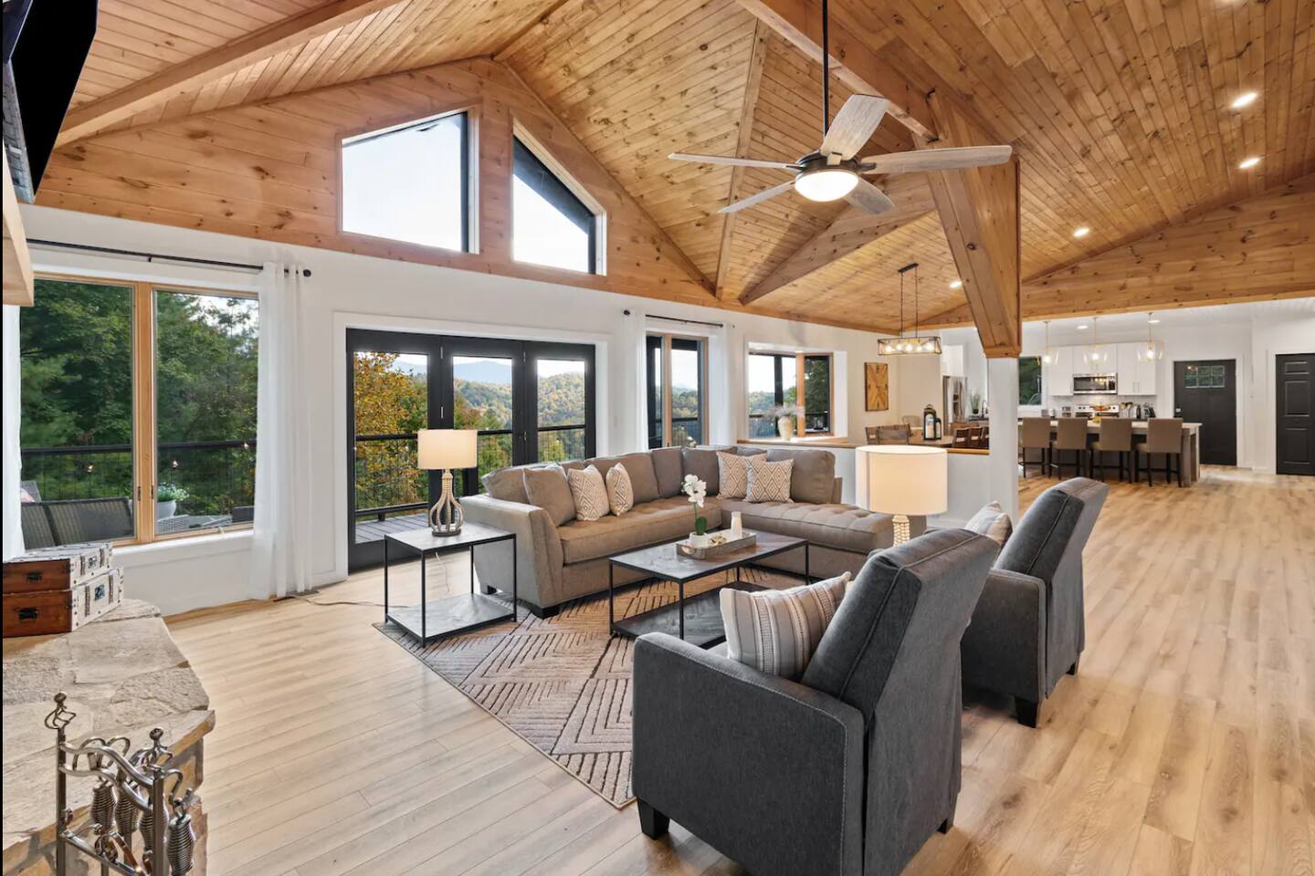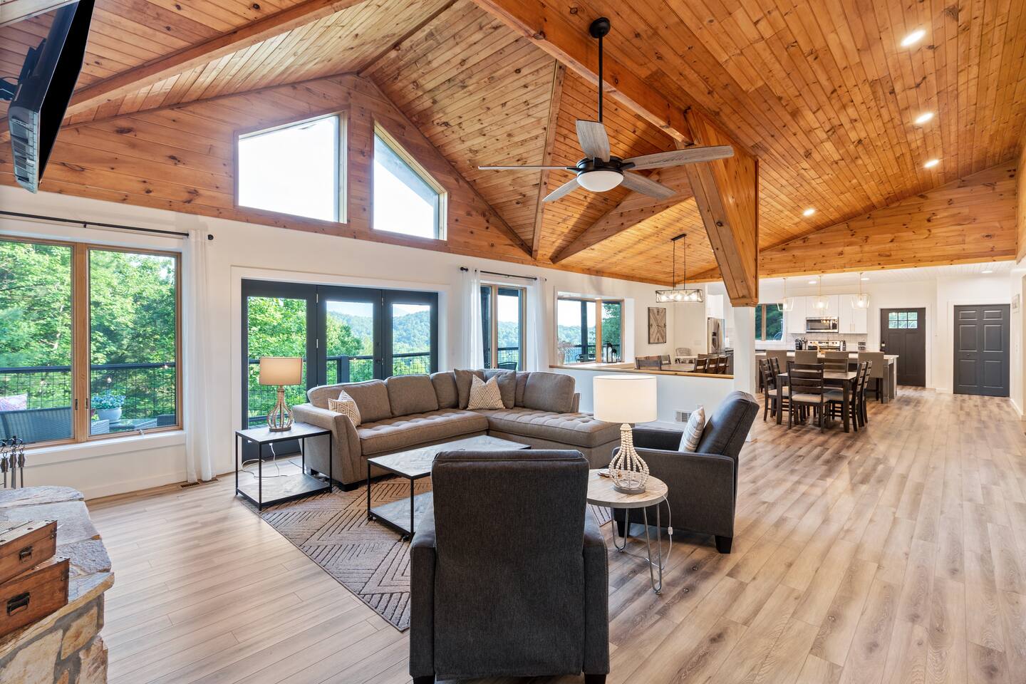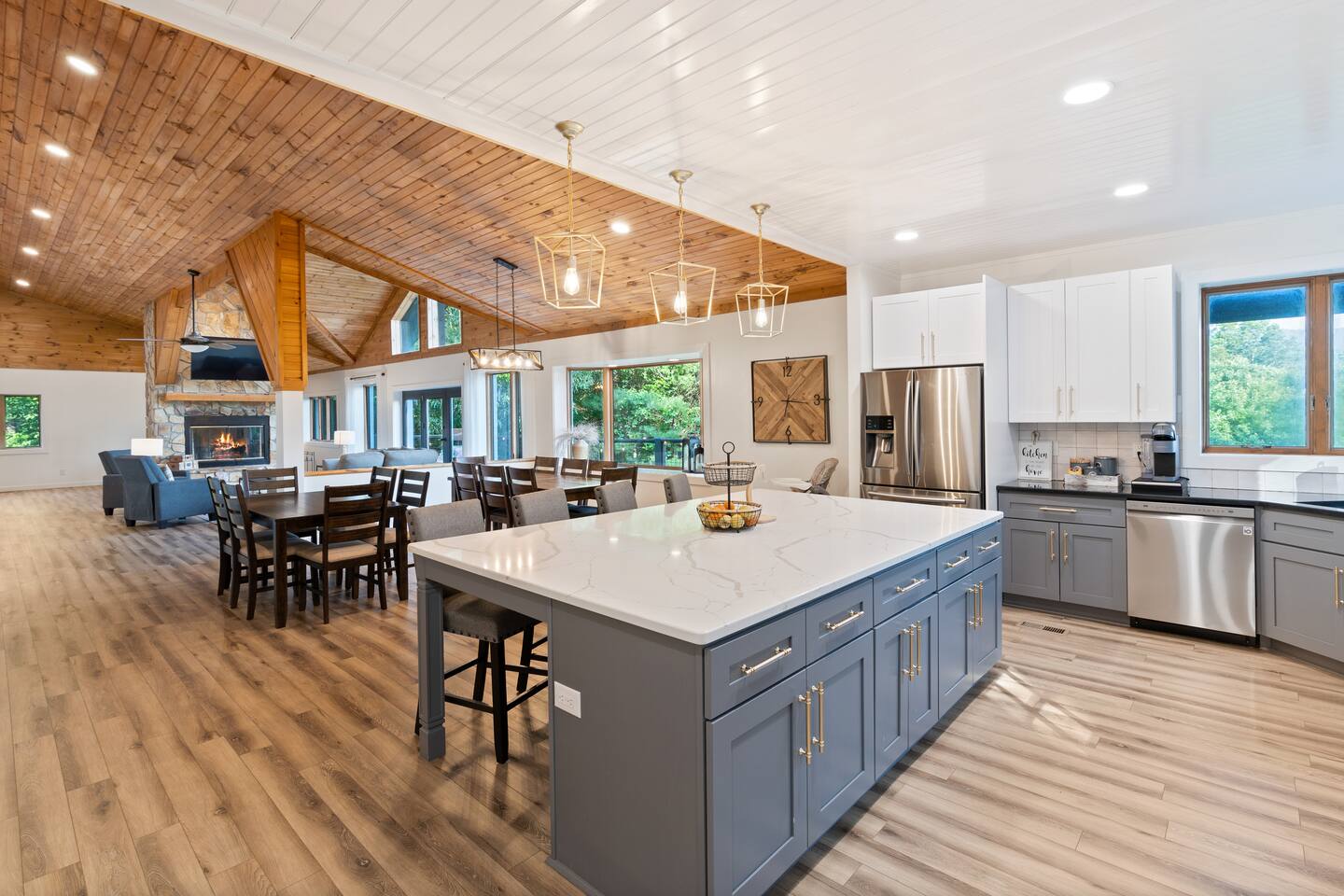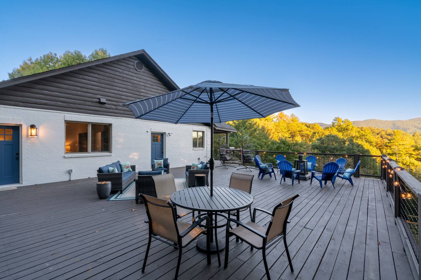 KEY FEATURES: ☀ 6 spacious bedrooms; 3 kings, 2 queens, 2 fulls, & 2 twins ☀ 4 full bathrooms + 1 half bath (beautifully renovated!) ☀ Brand new modern chef's kitchen ☀ Open-concept living space with panoramic views of the mountains & high vaulted ceilings ☀ Huge, private deck with tons of seating, entertainment, and open space! ☀ Private hot tub below the deck with an unbelievable view ☀ Game room with tons of entertainment ☀ High-speed wifi and smart TVs throughout the home ☀ Complete privacy from the neighbors ☀ VIEWS, VIEWS VIEWS!!! Here Are A Few Kind Words From Our Past Guests: "House is beautiful! Very clean, great location, easy check in, and great communication! Would definitely come back!" - Patty "We loved staying here! The location is perfect and the house was just as pictured. The hosts are super responsive and would definitely book again!" - Ashley "We had a great time staying here! The location was secluded, but not completely remote. The house was clean and comfortable with plenty of amenities. It was a perfect place for our pup too." - Michael ☆☆ BEDROOMS ☆☆ Tons to pick from! This home provides you with six bedrooms. On the main level, you will find the master bedroom with a king bed, smart TV, and attached master ensuite bathroom. On the other end of the main level, the second bedroom has another king bed and its own private entrance from the outside! The half bathroom on this level is just right down the hallway from this bedroom. The remaining four bedrooms are spread across the lower level. Right upon entering the bottom floor, you are greeted with a long hallway of bedrooms. First up is the bunk bedroom, with two twin-over-full bunk beds (total of 4 beds). This bedroom shares a full Jack-&-Jill bathroom with the adjacent bedroom, which has one queen bed. Further down the hall, you will find the third downstairs bedroom with a king bed and an attached full bathroom. As you keep walking, you will pass through the game room and into the fourth and final downstairs bedroom, with complete privacy on its own end of the floor. This bedroom has a queen bed with an attached full bathroom. ☆☆ BATHROOMS ☆☆ Each bathroom in this home has been completely renovated and beautifully designed. Starting in the master ensuite, you will have two separate sinks, a walk-in shower with two separate shower heads, and a standalone bath tub. The common bathroom on this level is accessible right off of the living area, with just one toilet & a sink (half bathroom). Downstairs, the Jack-&-Jill bathroom that connects two bedrooms has one sink and a walk-in shower. The bedroom across the hall has an attached bathroom equipped with one sink & shower/tub combo. The final bathroom on this floor is attached to the bedroom adjacent to the game room, which also has one sink & a shower/tub combo. ☆☆ KITCHEN & DINING ☆☆ When you walk through the front door and you are greeted with the absolutely stunning kitchen/dining room area, you won't believe your eyes. It's BREATHTAKING!! A completely redone, modern chef's kitchen with an oversized island and surrounding views of the Blue Ridge Mountains, fully stocked with all of the cooking essentials (yes, including a Keurig and coffee pods). The kitchen opens right up into the massive dining area with a huge bay window, featuring more fantastic views of the surrounding mountains. ☆☆ LIVING SPACE ☆☆ WOW! This living room makes such a grand statement as you walk into this house. A massive wood-burning fireplace, a smart TV, tons of comfy seating, and walls of windows so that you can enjoy the mountain views all from the comfort of the cozy living room. Just around the back side of the fireplace is a dedicated workspace with privacy from the rest of the living area. ☆☆ GAME ROOM ☆☆ The massive game room on the lower level is jam-packed with all the entertainment you need! A big smart TV, lots of comfy seating, a bar area, arcade games (Ms. Pac Man), and shuffleboard in the main room, with a ping pong table room just right next door. Of course, this space has also been completely remodeled to meet the modern luxury standards of the rest of the home. Oh, and just like every other part of this house, you will have easy access onto the back deck (steps away from the hot tub) and unbelievable views around every corner. ☆☆ OUTDOOR SPACE ☆☆ OMG! You won't find another outdoor space like we have here. Tons more comfy seating all across the multiple decks that wrap around the house, a wood-burning fire pit, swinging chairs, outdoor dining, a grill, and a hot tub that is located in one of the best viewpoints of the entire home! Sit back and relax in the steaming hot tub with some of the most breathtaking views you will ever see. What more could you ask for! ★☆ Book Today & Let Us Take Care Of You In Blue Ridge! ☆★