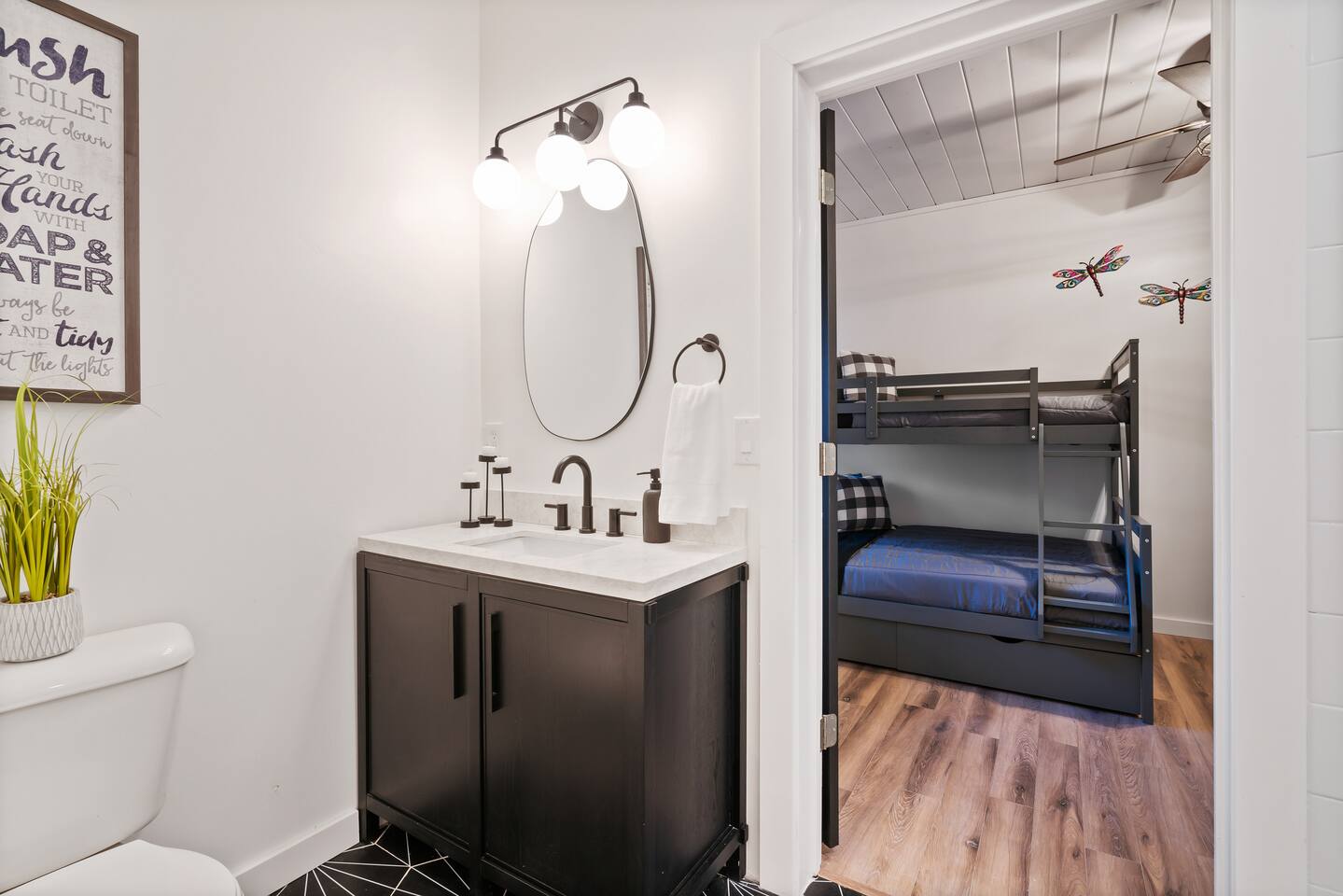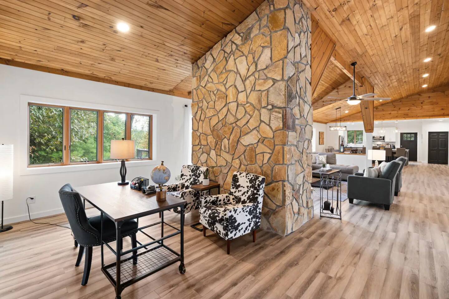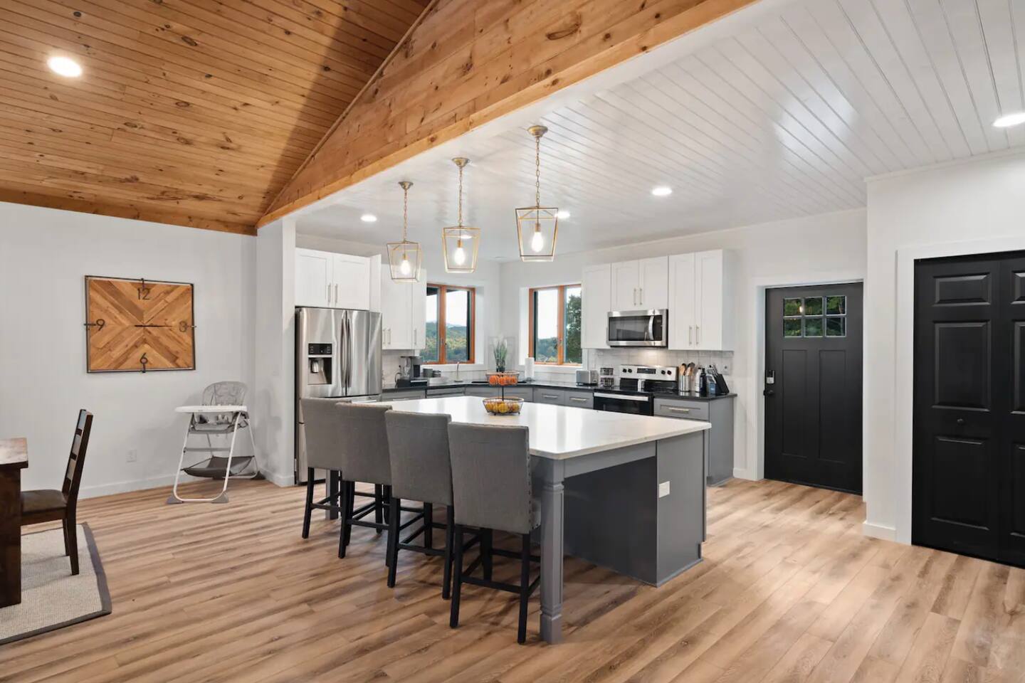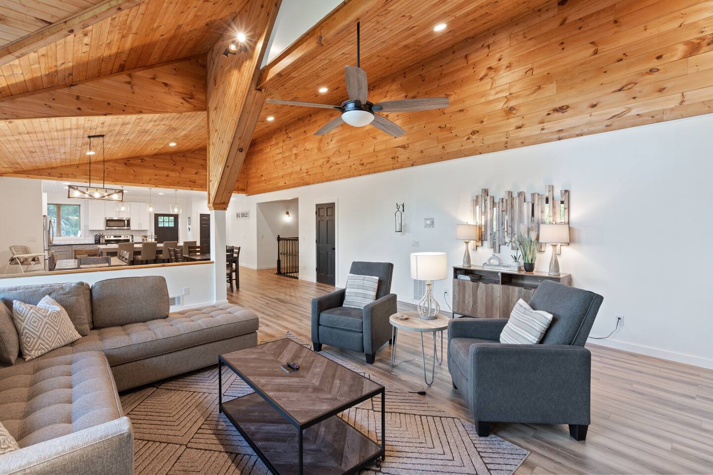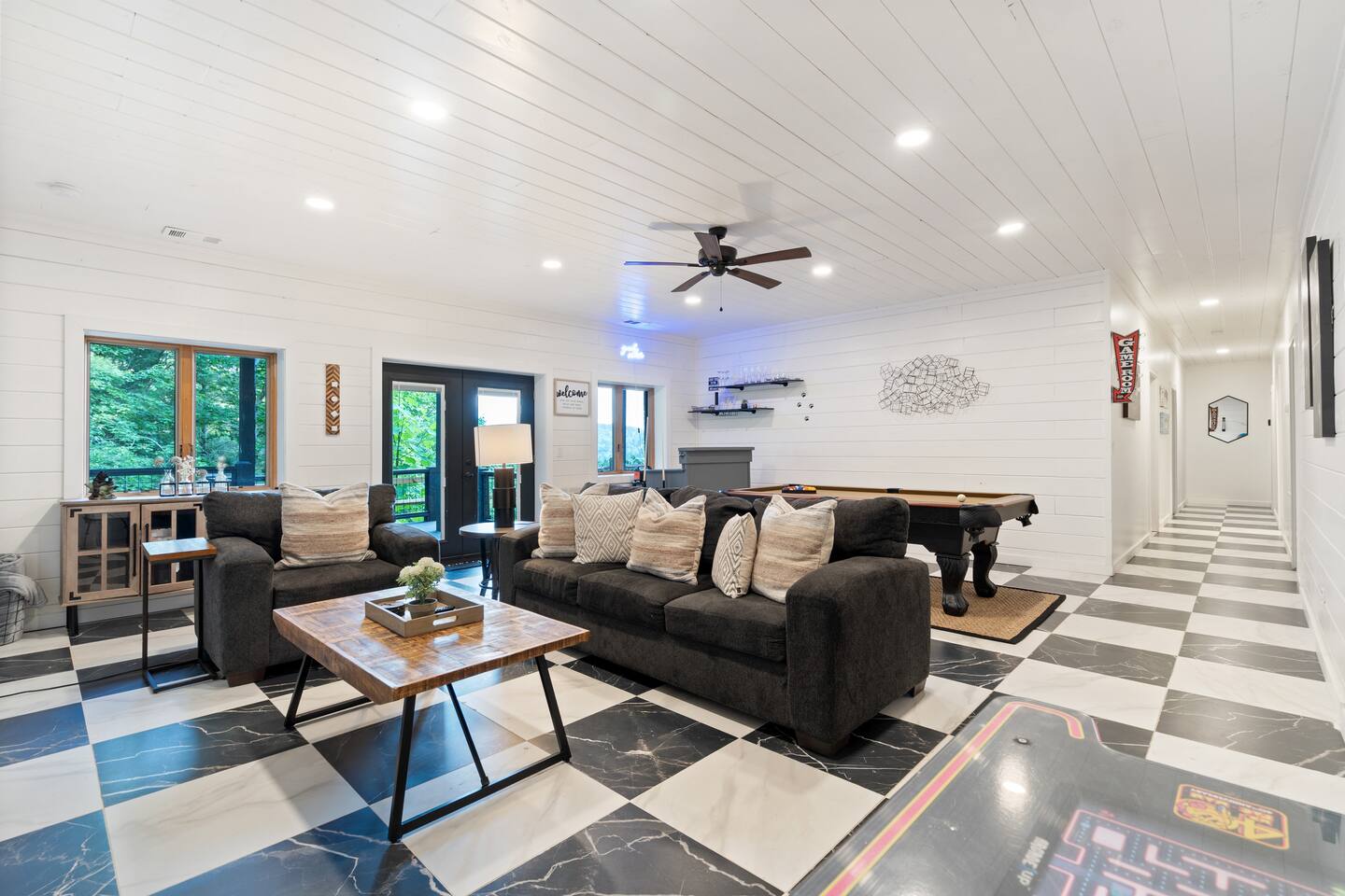 KEY FEATURES: ☀ 6 spacious bedrooms; 3 kings, 2 queens, 2 fulls, & 2 twins ☀ 4 full bathrooms + 1 half bath (beautifully renovated!) ☀ Brand new modern chef's kitchen ☀ Open-concept living space with panoramic views of the mountains & high vaulted ceilings ☀ Huge, private deck with tons of seating, entertainment, and open space! ☀ Private hot tub below the deck with an unbelievable view ☀ Game room with tons of entertainment ☀ High-speed wifi and smart TVs throughout the home ☀ Complete privacy from the neighbors ☀ VIEWS, VIEWS VIEWS!!! Here Are A Few Kind Words From Our Past Guests: "House is beautiful! Very clean, great location, easy check in, and great communication! Would definitely come back!" - Patty "We loved staying here! The location is perfect and the house was just as pictured. The hosts are super responsive and would definitely book again!" - Ashley "We had a great time staying here! The location was secluded, but not completely remote. The house was clean and comfortable with plenty of amenities. It was a perfect place for our pup too." - Michael ☆☆ BEDROOMS ☆☆ Tons to pick from! This home provides you with six bedrooms. On the main level, you will find the master bedroom with a king bed, smart TV, and attached master ensuite bathroom. On the other end of the main level, the second bedroom has another king bed and its own private entrance from the outside! The half bathroom on this level is just right down the hallway from this bedroom. The remaining four bedrooms are spread across the lower level. Right upon entering the bottom floor, you are greeted with a long hallway of bedrooms. First up is the bunk bedroom, with two twin-over-full bunk beds (total of 4 beds). This bedroom shares a full Jack-&-Jill bathroom with the adjacent bedroom, which has one queen bed. Further down the hall, you will find the third downstairs bedroom with a king bed and an attached full bathroom. As you keep walking, you will pass through the game room and into the fourth and final downstairs bedroom, with complete privacy on its own end of the floor. This bedroom has a queen bed with an attached full bathroom. ☆☆ BATHROOMS ☆☆ Each bathroom in this home has been completely renovated and beautifully designed. Starting in the master ensuite, you will have two separate sinks, a walk-in shower with two separate shower heads, and a standalone bath tub. The common bathroom on this level is accessible right off of the living area, with just one toilet & a sink (half bathroom). Downstairs, the Jack-&-Jill bathroom that connects two bedrooms has one sink and a walk-in shower. The bedroom across the hall has an attached bathroom equipped with one sink & shower/tub combo. The final bathroom on this floor is attached to the bedroom adjacent to the game room, which also has one sink & a shower/tub combo. ☆☆ KITCHEN & DINING ☆☆ When you walk through the front door and you are greeted with the absolutely stunning kitchen/dining room area, you won't believe your eyes. It's BREATHTAKING!! A completely redone, modern chef's kitchen with an oversized island and surrounding views of the Blue Ridge Mountains, fully stocked with all of the cooking essentials (yes, including a Keurig and coffee pods). The kitchen opens right up into the massive dining area with a huge bay window, featuring more fantastic views of the surrounding mountains. ☆☆ LIVING SPACE ☆☆ WOW! This living room makes such a grand statement as you walk into this house. A massive wood-burning fireplace, a smart TV, tons of comfy seating, and walls of windows so that you can enjoy the mountain views all from the comfort of the cozy living room. Just around the back side of the fireplace is a dedicated workspace with privacy from the rest of the living area. ☆☆ GAME ROOM ☆☆ The massive game room on the lower level is jam-packed with all the entertainment you need! A big smart TV, lots of comfy seating, a bar area, arcade games (Ms. Pac Man), and shuffleboard in the main room, with a ping pong table room just right next door. Of course, this space has also been completely remodeled to meet the modern luxury standards of the rest of the home. Oh, and just like every other part of this house, you will have easy access onto the back deck (steps away from the hot tub) and unbelievable views around every corner. ☆☆ OUTDOOR SPACE ☆☆ OMG! You won't find another outdoor space like we have here. Tons more comfy seating all across the multiple decks that wrap around the house, a wood-burning fire pit, swinging chairs, outdoor dining, a grill, and a hot tub that is located in one of the best viewpoints of the entire home! Sit back and relax in the steaming hot tub with some of the most breathtaking views you will ever see. What more could you ask for! ★☆ Book Today & Let Us Take Care Of You In Blue Ridge! ☆★