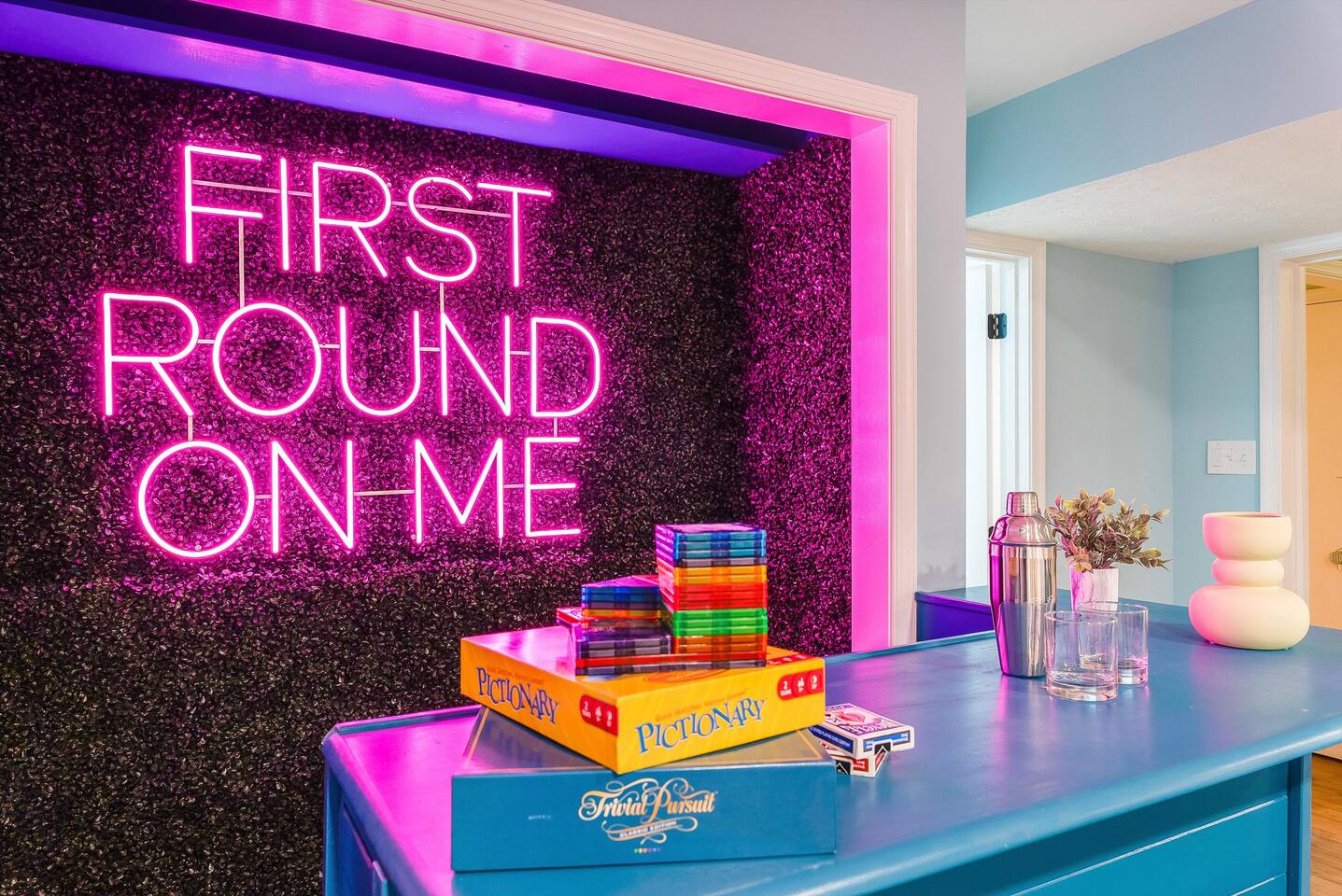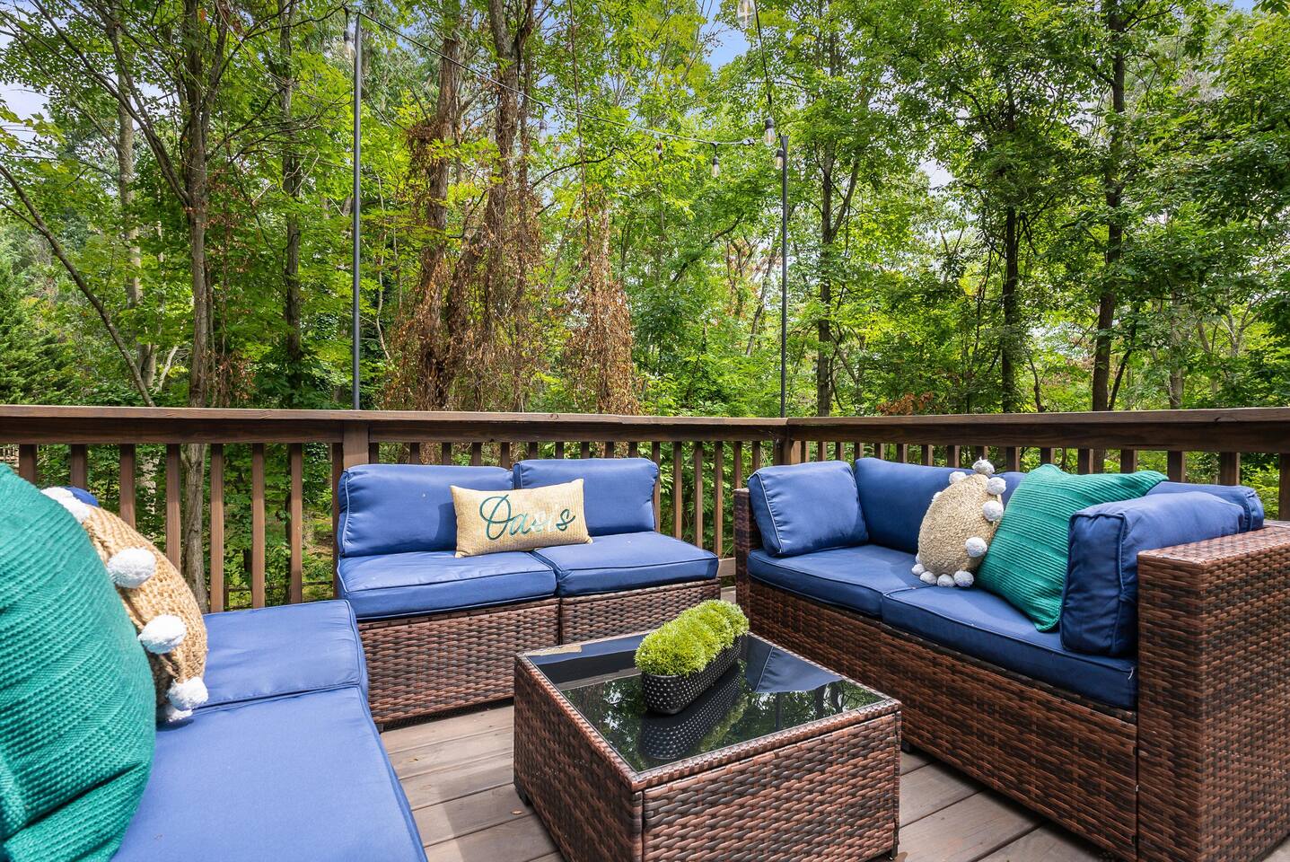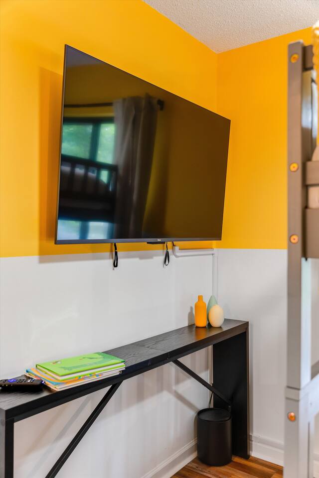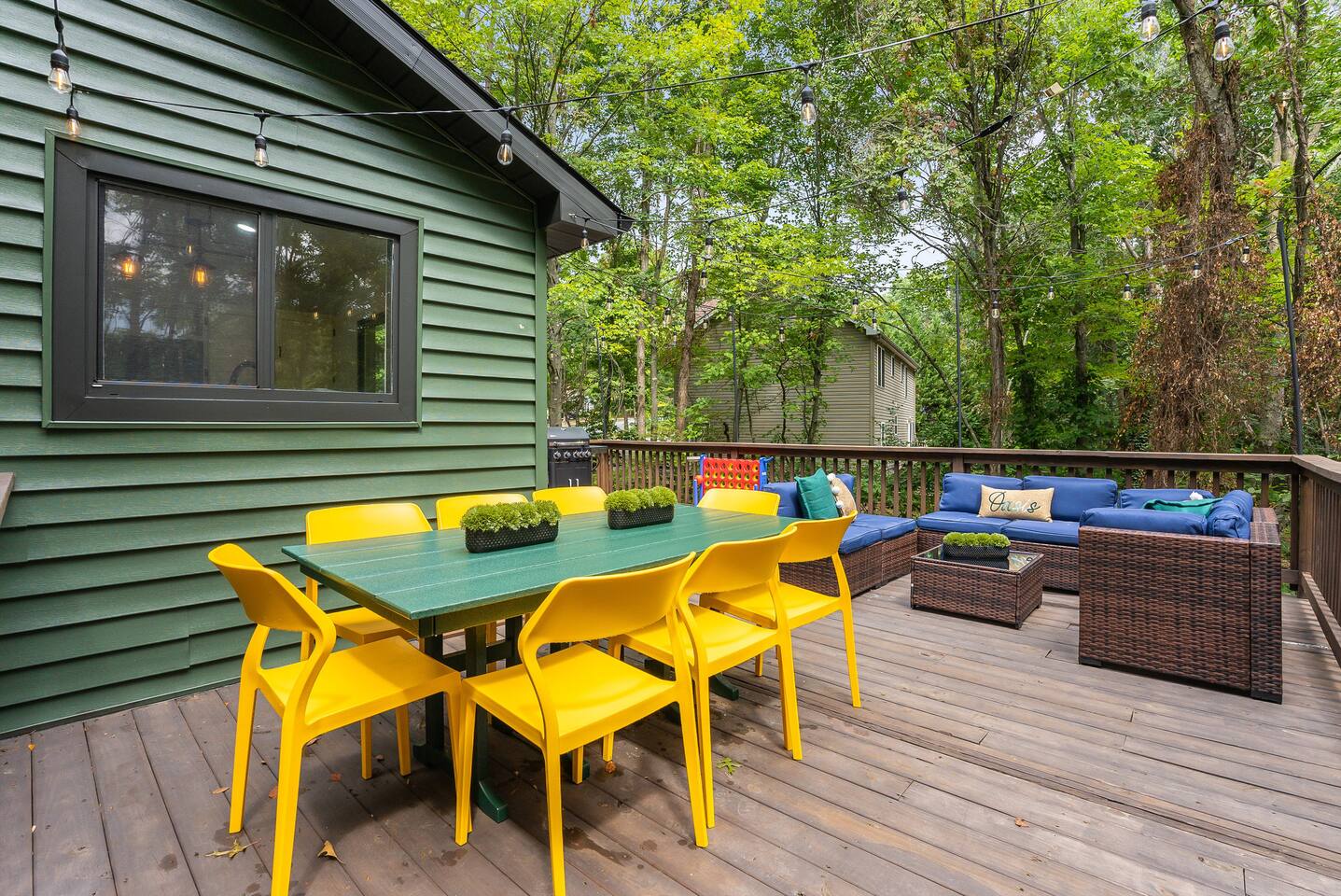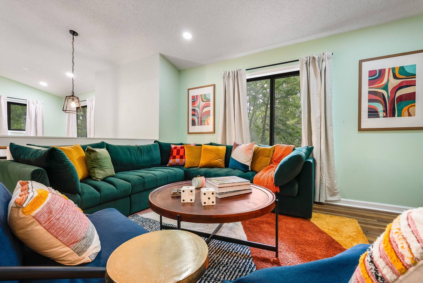 KEY FEATURES: ☀ 6 beautiful bedrooms; 1 king, 4 queens, & 3 full beds ☀ 3 clean, modern bathrooms ☀ Modern kitchen with new, stainless steel appliances ☀ Open living room with lots of comfy seating & smart TV ☀ Dining room with seating to comfortably accommodate 10 (+outdoor dining) ☀ AMAZING game room; pool table & arcade games! ☀ One-of-a-kind movie theater set-up, with huge projector screen & a big, comfy sectional! ☀ Beautiful, private backyard; hot tub, fire pit, bowling, jungle gym, games & more! Here Are A Few Kind Words From Our Past Guests: “This was a great place to stay! The morning light through the windows was so beautiful. Overall, just a relaxing experience. The hosts were super responsive whenever I had a question. I would stay again!” - Emily “Sabrina was very accommodating and communicative. the house is beautiful and very comfortable, close to nature hikes.” - Jennifer “This place was lovely! Exactly as pictured! Very clean and excellent host experience!!! I plan to come back again!” - Regina ☆☆ BEDROOMS ☆☆ There are 6 gorgeous bedrooms throughout this home. On the main floor, you'll find the master bedroom, with a king bed, smart TV, and ensuite master bathroom. Right across the hall you'll find two more bedrooms; one with a full bed & the other with a full-over-full bunk. Downstairs, there are three more bedrooms. Two with one queen bed in each, and the final bedroom with one queen-over-queen bunk bed. ☆☆ BATHROOMS ☆☆ This home has 3 full, modern bathrooms. The master ensuite bathroom has two sinks, a toilet, and a shower/tub combo. Right across the hall, the second full bathroom has a sink, toilet, and shower/tub combo. Downstairs, the third bathroom has a sink, toilet, and walk-in shower only. ☆☆ KITCHEN & DINING ☆☆ The modern kitchen is located right off of the main living areas, and is loaded with all new stainless steel appliances & a coffee station (including a Keurig & coffee pods). The dining room is right next to the kitchen, with enough seating to comfortably fit 10 people, plus additional dining space on the huge back deck! ☆☆ LIVING ROOM ☆☆ In the living room, you’ll be greeted with lots of comfy seating, a big smart TV, and gorgeous, colorful design along with a massive, fun mural. This is the perfect spot to host your movie nights & games with your friends and family! ☆☆ GAME ROOM ☆☆ Keep your family and friends entertained throughout your stay in our super fun game room! With a pool table & arcade games, this is the ideal hangout spot to keep you entertained for hours! ☆☆ MOVIE THEATER ☆☆ A truly unique space! In this home, you'll find a special theater set-up right off of the game room, with a big, comfy sectional couch & a HUGE projector screen. ☆☆ OUTDOOR SPACE ☆☆ This backyard is everything you could ask for, and more! ☀ Hot tub ☀ Fire pit ☀ Bowling ☀ Jungle gym ☀ Corn hole ☀ Giant Connect 4 ☀ BBQ grill ☀ Comfy lounge seating ☀ Outdoor dining There is so much to do here, that all of your friends & family will be thoroughly entertained throughout your entire stay. No matter the season, this backyard has it all. Book your stay with us today and you will NOT be disappointed. Get ready for a vacation you will never forget! ★☆ Book Now & Let Us Take Care Of You In Shenandoah Valley ! ☆★