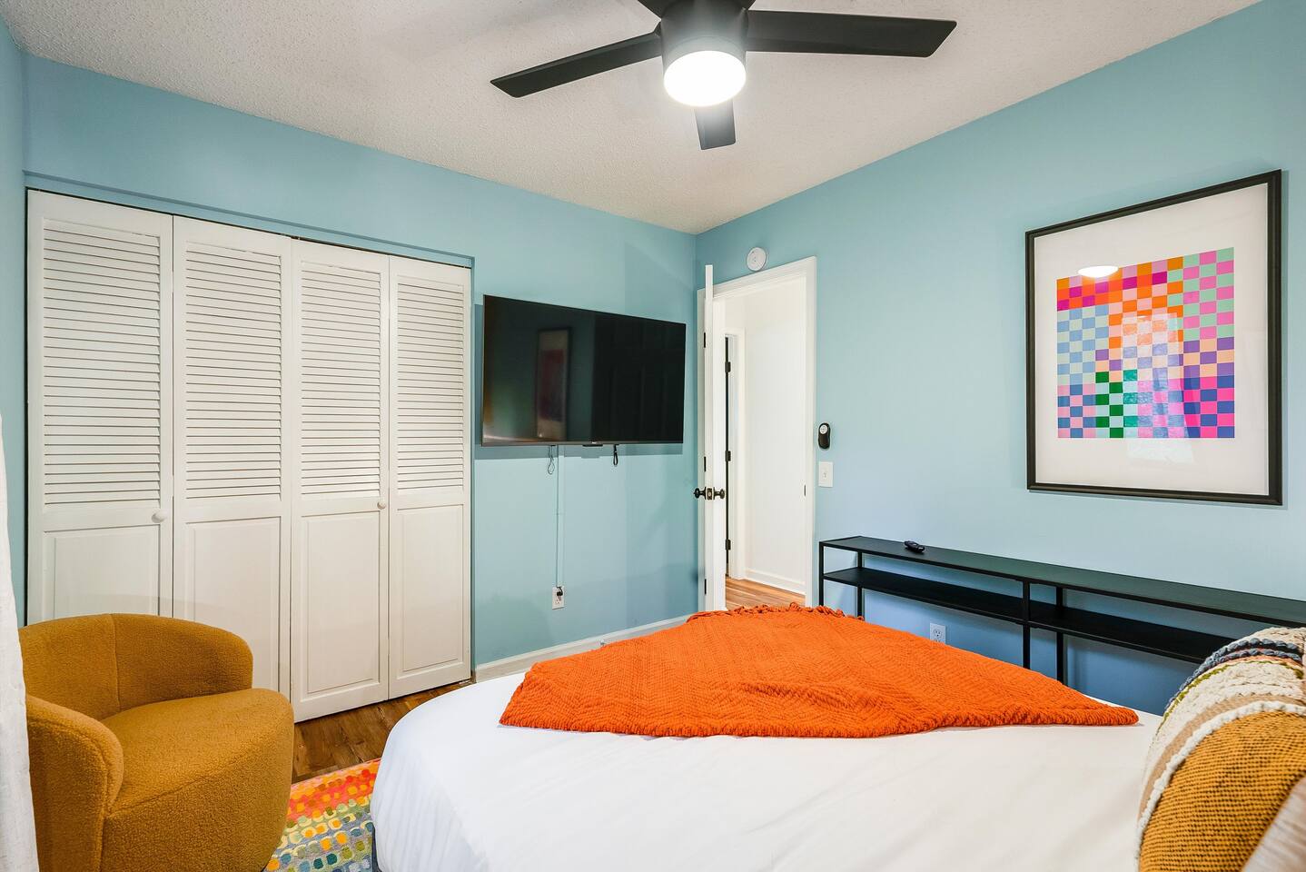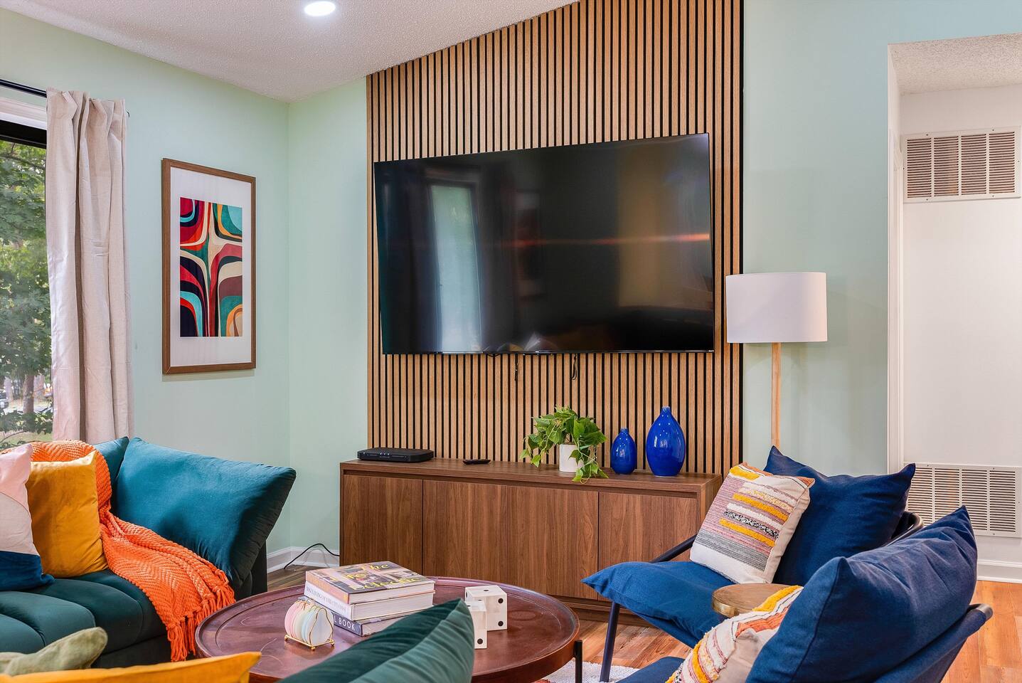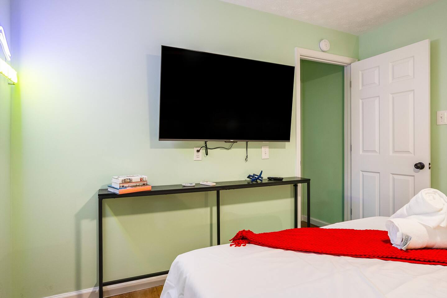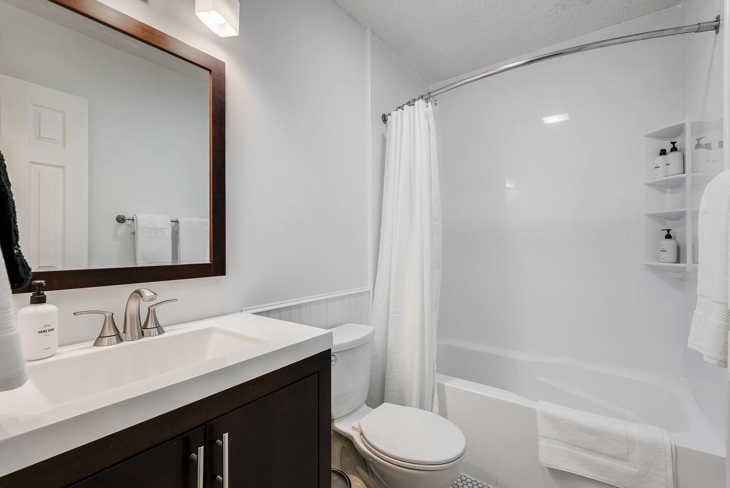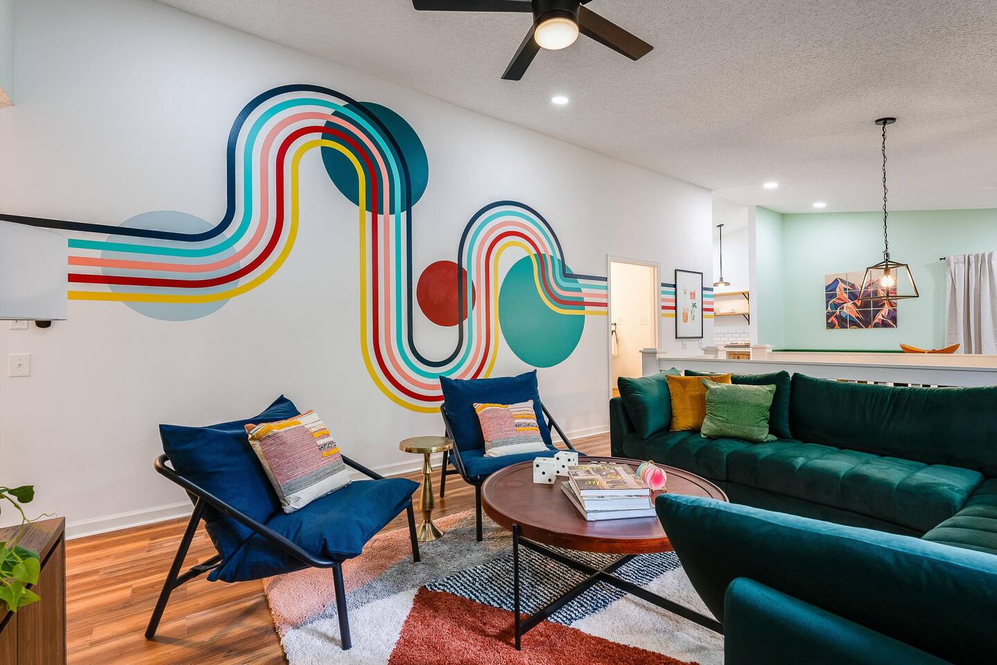 KEY FEATURES: ☀ 6 beautiful bedrooms; 1 king, 4 queens, & 3 full beds ☀ 3 clean, modern bathrooms ☀ Modern kitchen with new, stainless steel appliances ☀ Open living room with lots of comfy seating & smart TV ☀ Dining room with seating to comfortably accommodate 10 (+outdoor dining) ☀ AMAZING game room; pool table & arcade games! ☀ One-of-a-kind movie theater set-up, with huge projector screen & a big, comfy sectional! ☀ Beautiful, private backyard; hot tub, fire pit, bowling, jungle gym, games & more! Here Are A Few Kind Words From Our Past Guests: “This was a great place to stay! The morning light through the windows was so beautiful. Overall, just a relaxing experience. The hosts were super responsive whenever I had a question. I would stay again!” - Emily “Sabrina was very accommodating and communicative. the house is beautiful and very comfortable, close to nature hikes.” - Jennifer “This place was lovely! Exactly as pictured! Very clean and excellent host experience!!! I plan to come back again!” - Regina ☆☆ BEDROOMS ☆☆ There are 6 gorgeous bedrooms throughout this home. On the main floor, you'll find the master bedroom, with a king bed, smart TV, and ensuite master bathroom. Right across the hall you'll find two more bedrooms; one with a full bed & the other with a full-over-full bunk. Downstairs, there are three more bedrooms. Two with one queen bed in each, and the final bedroom with one queen-over-queen bunk bed. ☆☆ BATHROOMS ☆☆ This home has 3 full, modern bathrooms. The master ensuite bathroom has two sinks, a toilet, and a shower/tub combo. Right across the hall, the second full bathroom has a sink, toilet, and shower/tub combo. Downstairs, the third bathroom has a sink, toilet, and walk-in shower only. ☆☆ KITCHEN & DINING ☆☆ The modern kitchen is located right off of the main living areas, and is loaded with all new stainless steel appliances & a coffee station (including a Keurig & coffee pods). The dining room is right next to the kitchen, with enough seating to comfortably fit 10 people, plus additional dining space on the huge back deck! ☆☆ LIVING ROOM ☆☆ In the living room, you’ll be greeted with lots of comfy seating, a big smart TV, and gorgeous, colorful design along with a massive, fun mural. This is the perfect spot to host your movie nights & games with your friends and family! ☆☆ GAME ROOM ☆☆ Keep your family and friends entertained throughout your stay in our super fun game room! With a pool table & arcade games, this is the ideal hangout spot to keep you entertained for hours! ☆☆ MOVIE THEATER ☆☆ A truly unique space! In this home, you'll find a special theater set-up right off of the game room, with a big, comfy sectional couch & a HUGE projector screen. ☆☆ OUTDOOR SPACE ☆☆ This backyard is everything you could ask for, and more! ☀ Hot tub ☀ Fire pit ☀ Bowling ☀ Jungle gym ☀ Corn hole ☀ Giant Connect 4 ☀ BBQ grill ☀ Comfy lounge seating ☀ Outdoor dining There is so much to do here, that all of your friends & family will be thoroughly entertained throughout your entire stay. No matter the season, this backyard has it all. Book your stay with us today and you will NOT be disappointed. Get ready for a vacation you will never forget! ★☆ Book Now & Let Us Take Care Of You In Shenandoah Valley ! ☆★
