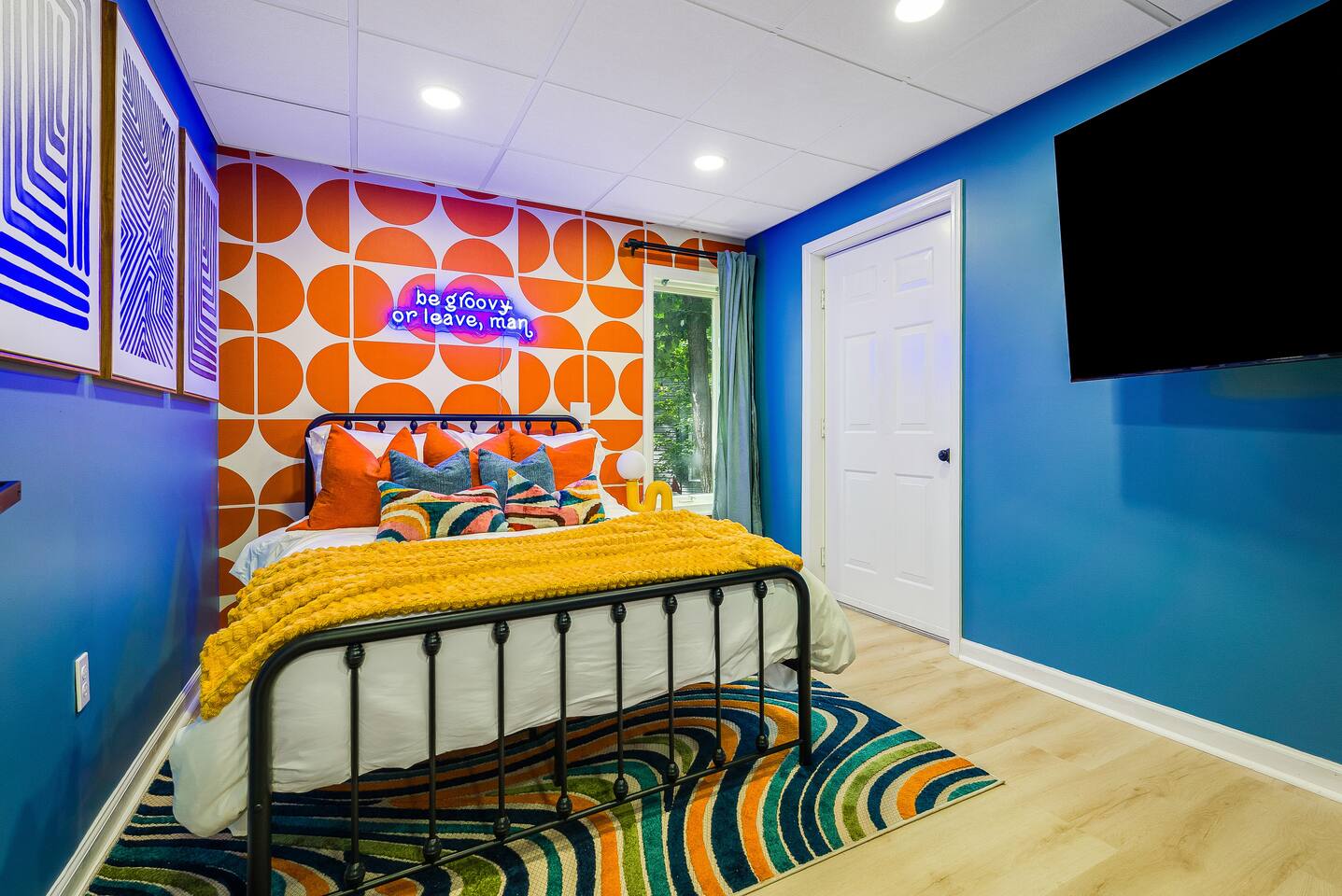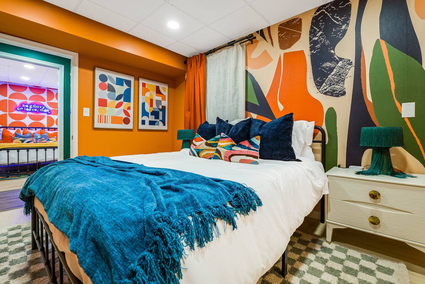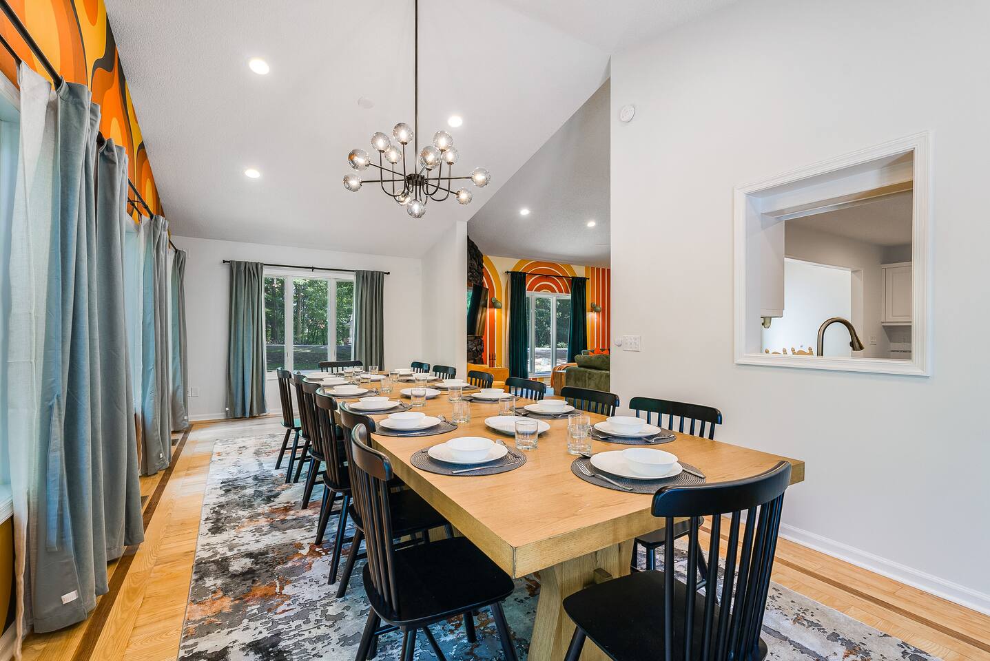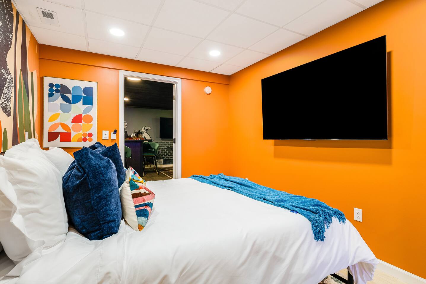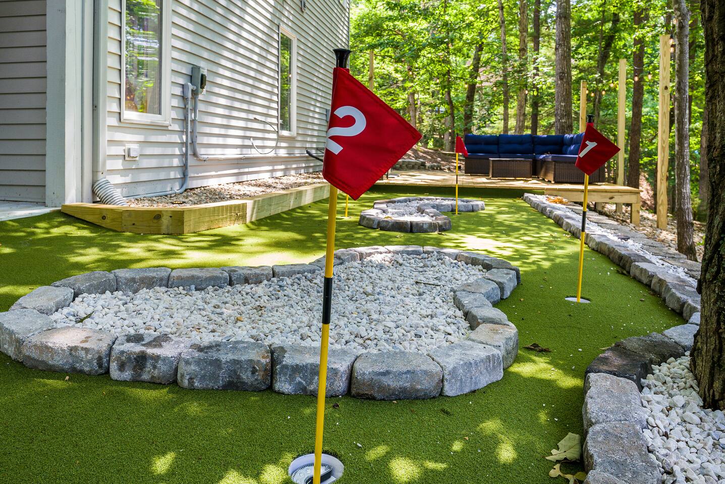 KEY FEATURES: ☀ 7 beautiful bedrooms; 4 kings, 1 queen, & 5 full beds (including two sets of full-over-full bunks) ☀ 3 full bathrooms ☀ Open, modern kitchen with stainless steel appliances ☀ Grand living room with lots of comfy seating & smart TV ☀ HUGE dining room with seating to comfortably accommodate 14 (+ kitchen countertop seating & outdoor dining) ☀ AMAZING speakeasy/game room; pool table, arcade games & more! ☀ One-of-a-kind CUSTOM golf simulator ☀ More games and relaxation in the backyard, with mini golf, hot tub, and more! Here Are A Few Kind Words From Our Past Guests: “This was a great place to stay! The morning light through the windows was so beautiful. Overall, just a relaxing experience. The hosts were super responsive whenever I had a question. I would stay again!” - Emily “Sabrina was very accommodating and communicative. the house is beautiful and very comfortable, close to nature hikes.” - Jennifer “This place was lovely! Exactly as pictured! Very clean and excellent host experience!!! I plan to come back again!” - Regina ☆☆ BEDROOMS ☆☆ There are 7 gorgeous bedrooms throughout this home, each with their own smart TV! On the bottom floor, there are 3 bedrooms. One has a king bed, the second has a queen, and the third has a full. On the main floor, the primary bedroom has a king bed & ensuite bathroom. Right down the hall, the second bedroom on this floor has two full-over-full bunk beds (total of 4 full beds) + a SLIDE! The two remaining bedrooms are on the top floor, with 1 king bed in each. ☆☆ BATHROOMS ☆☆ This home has 3 full bathrooms, one on each floor. On the bottom floor, the bathroom is accessible right off of the hallway, and has a sink, toilet, and walk-in shower only. The bathroom on the second floor is accessible from the primary bedroom & hallway, and has a sink, toilet, and walk-in shower. The bathroom on the top floor is accessible from the hallway, and has a sink, toilet, and shower/tub combo. ☆☆ KITCHEN & DINING ☆☆ The kitchen is oversized, with lots of counter-space, and located right off of the main living room. With all stainless steel appliances and a coffee machine (Keurig), this kitchen is ready for cooking for the entire group! The HUGE dining room is right next to the kitchen, with enough seating to comfortably fit 14 people, plus additional seating at the kitchen countertop and another dining table on the back deck, right off of the dining room. ☆☆ LIVING ROOM ☆☆ In this grand living room, you’ll be greeted with high vaulted ceilings, lots of comfy seating, a big smart TV, a fireplace, and gorgeous, colorful design. This is the perfect spot to host your movie nights & games with your friends and family! ☆☆ SPEAKEASY ☆☆ As you walk down to the bottom floor, you will feel like you have been transported into the 1920s! A stunning, hyper-realistic mural will make you feel as if you walked right into a private speakeasy, complete with a pool table, bar with a mini fridge, arcade games, smart TV, and a cozy, welcoming vibe to keep you down here for hours! ☆☆ GOLF SIMULATOR ☆☆ OMG! This room will take your breath away! Right off of the main living area, you will step down into a completely custom, unique golf simulator room, where you can practice your golf game on a huge projector screen. Unlike anything you have ever experienced! ☆☆ OUTDOOR SPACE ☆☆ This backyard is everything you could ask for, and more! ☀ Hot tub ☀ Fire pit ☀ Mini golf ☀ BBQ grill ☀ Outdoor dining ☀ Outdoor lounge seating There is so much to do here, that all of your friends & family will be thoroughly entertained throughout your entire stay. No matter the season, this backyard has it all. Book your stay with us today and you will NOT be disappointed. Get ready for a vacation you will never forget! ★☆ Book Now & Let Us Take Care Of You In Shenandoah Valley ! ☆★