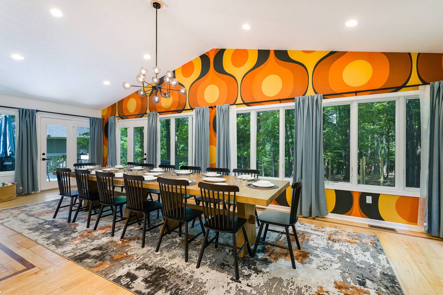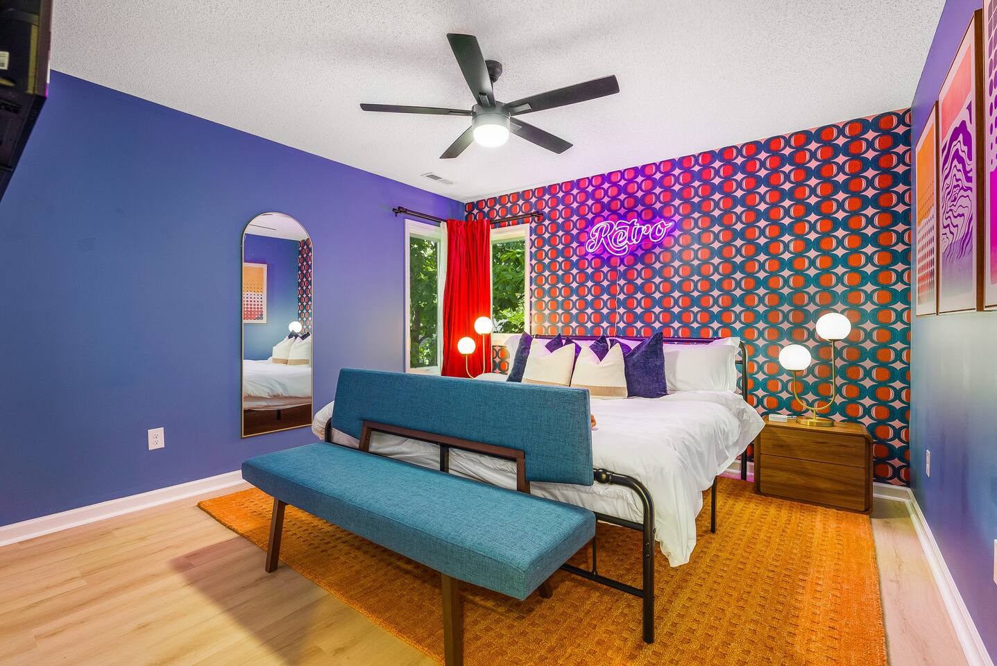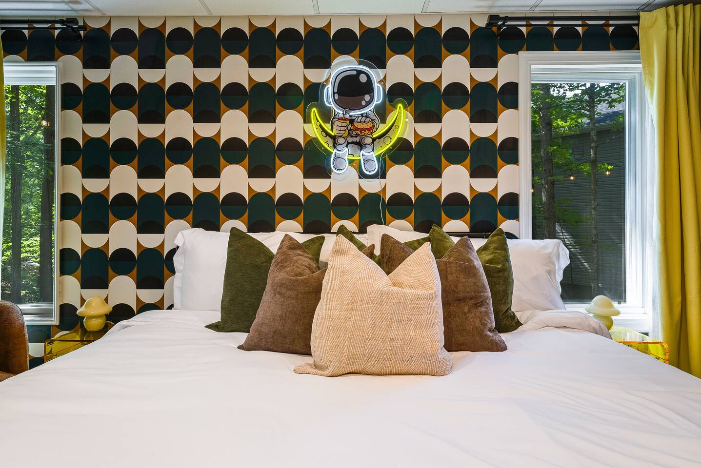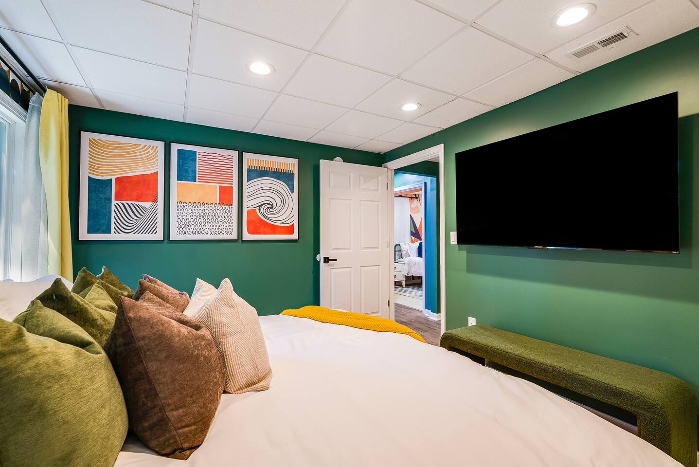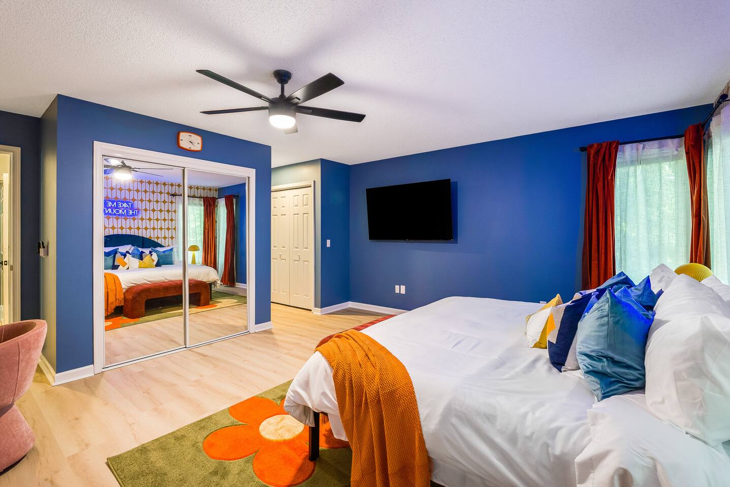 KEY FEATURES: ☀ 7 beautiful bedrooms; 4 kings, 1 queen, & 5 full beds (including two sets of full-over-full bunks) ☀ 3 full bathrooms ☀ Open, modern kitchen with stainless steel appliances ☀ Grand living room with lots of comfy seating & smart TV ☀ HUGE dining room with seating to comfortably accommodate 14 (+ kitchen countertop seating & outdoor dining) ☀ AMAZING speakeasy/game room; pool table, arcade games & more! ☀ One-of-a-kind CUSTOM golf simulator ☀ More games and relaxation in the backyard, with mini golf, hot tub, and more! Here Are A Few Kind Words From Our Past Guests: “This was a great place to stay! The morning light through the windows was so beautiful. Overall, just a relaxing experience. The hosts were super responsive whenever I had a question. I would stay again!” - Emily “Sabrina was very accommodating and communicative. the house is beautiful and very comfortable, close to nature hikes.” - Jennifer “This place was lovely! Exactly as pictured! Very clean and excellent host experience!!! I plan to come back again!” - Regina ☆☆ BEDROOMS ☆☆ There are 7 gorgeous bedrooms throughout this home, each with their own smart TV! On the bottom floor, there are 3 bedrooms. One has a king bed, the second has a queen, and the third has a full. On the main floor, the primary bedroom has a king bed & ensuite bathroom. Right down the hall, the second bedroom on this floor has two full-over-full bunk beds (total of 4 full beds) + a SLIDE! The two remaining bedrooms are on the top floor, with 1 king bed in each. ☆☆ BATHROOMS ☆☆ This home has 3 full bathrooms, one on each floor. On the bottom floor, the bathroom is accessible right off of the hallway, and has a sink, toilet, and walk-in shower only. The bathroom on the second floor is accessible from the primary bedroom & hallway, and has a sink, toilet, and walk-in shower. The bathroom on the top floor is accessible from the hallway, and has a sink, toilet, and shower/tub combo. ☆☆ KITCHEN & DINING ☆☆ The kitchen is oversized, with lots of counter-space, and located right off of the main living room. With all stainless steel appliances and a coffee machine (Keurig), this kitchen is ready for cooking for the entire group! The HUGE dining room is right next to the kitchen, with enough seating to comfortably fit 14 people, plus additional seating at the kitchen countertop and another dining table on the back deck, right off of the dining room. ☆☆ LIVING ROOM ☆☆ In this grand living room, you’ll be greeted with high vaulted ceilings, lots of comfy seating, a big smart TV, a fireplace, and gorgeous, colorful design. This is the perfect spot to host your movie nights & games with your friends and family! ☆☆ SPEAKEASY ☆☆ As you walk down to the bottom floor, you will feel like you have been transported into the 1920s! A stunning, hyper-realistic mural will make you feel as if you walked right into a private speakeasy, complete with a pool table, bar with a mini fridge, arcade games, smart TV, and a cozy, welcoming vibe to keep you down here for hours! ☆☆ GOLF SIMULATOR ☆☆ OMG! This room will take your breath away! Right off of the main living area, you will step down into a completely custom, unique golf simulator room, where you can practice your golf game on a huge projector screen. Unlike anything you have ever experienced! ☆☆ OUTDOOR SPACE ☆☆ This backyard is everything you could ask for, and more! ☀ Hot tub ☀ Fire pit ☀ Mini golf ☀ BBQ grill ☀ Outdoor dining ☀ Outdoor lounge seating There is so much to do here, that all of your friends & family will be thoroughly entertained throughout your entire stay. No matter the season, this backyard has it all. Book your stay with us today and you will NOT be disappointed. Get ready for a vacation you will never forget! ★☆ Book Now & Let Us Take Care Of You In Shenandoah Valley ! ☆★