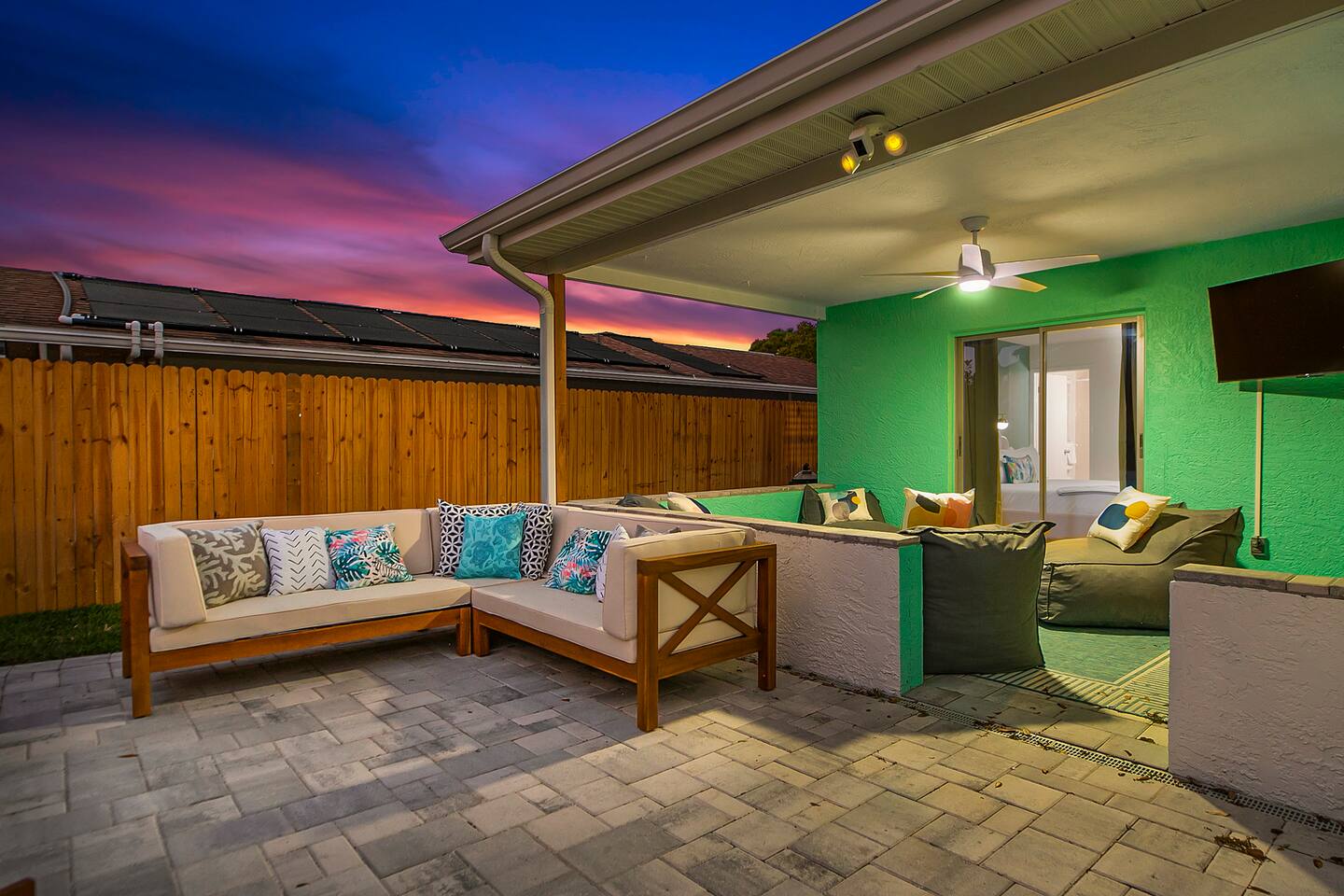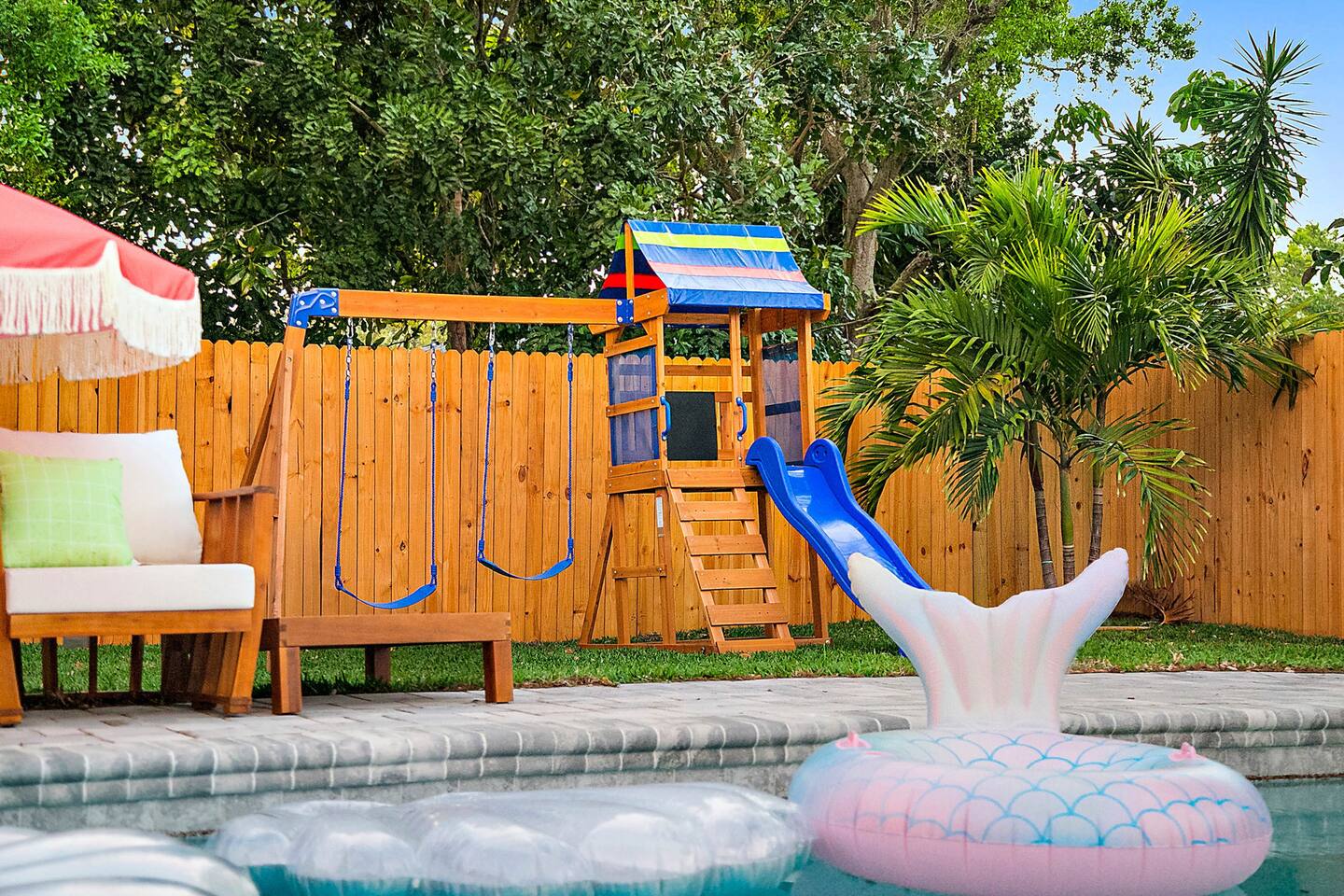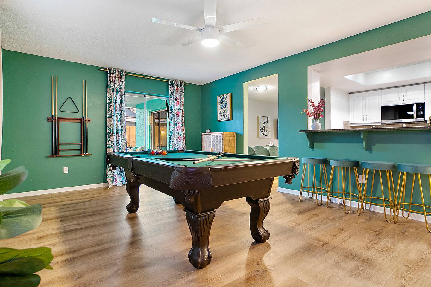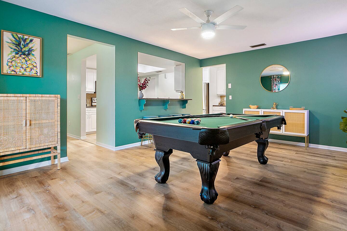 KEY FEATURES: ☀ 3 cozy bedrooms; 1 king, 1 queen, 1 full, & 3 twin beds ☀ 2 full bathrooms; including a master ensuite ☀ Modern kitchen with stainless steel appliances + all kitchen supplies ☀ Open living room with lots of comfy seating & smart TV ☀ Dining room with seating to comfortably accommodate 8 ☀ Fully loaded backyard; heated pool, fire pit, mini golf, and more! (fully fenced - bring your pets!) ☀ Game room with arcade games, foosball, smart TV, and more comfy seating ☀ Pool table room with direct access to the backyard Here Are A Few Kind Words From Our Past Guests: “This was a great place to stay! The morning light through the windows was so beautiful. Overall, just a relaxing experience. The hosts were super responsive whenever I had a question. I would stay again!” - Emily “Sabrina was very accommodating and communicative. the house is beautiful and very comfortable, close to nature hikes.” - Jennifer “This place was lovely! Exactly as pictured! Very clean and excellent host experience!!! I plan to come back again!” - Regina ☆☆ BEDROOMS & BATHROOMS ☆☆ 3 cozy bedrooms, all with a fun, tropical design! On one side of the house, the master has a king bed, smart TV, direct access to the backyard, and attached ensuite bathroom. The ensuite bathroom is equipped with a single vanity, toilet, and walk-in shower. The other end of the home has two more bedrooms; one with a queen bed, and the other with two bunk beds (one twin-over-full & one twin-over-twin).. These two bedrooms share a full bathroom located right off the hallway, with one vanity sink, toilet, and a shower/tub combo. ☆☆ KITCHEN & DINING ☆☆ The kitchen has great visibility into the main entertaining areas of the home, allowing those cooking delicious meals for the entire group in touch with everyone else while they enjoy the amenities! This modern kitchen has all new, stainless steel appliances and a coffee station (including a Keurig & coffee pods). The dining room is adjacent to the kitchen, with enough seating to comfortably seat 8 (plus 4 more bar top seats in the pool table room for casual dining). ☆☆ LIVING ROOM ☆☆ As you enter the home, you'll be greeted with a comfy living room, filled with lots of seating & a big smart TV - perfect for a movie with your close family, or for your group of friends to host a thrilling game night! The beach theme starts in this room, and is tastefully carried out through the rest of this cozy villa! ☆☆ GAME ROOMS ☆☆ Yes, there are two game rooms jam-packed in this house! The first is the pool table room, located right off the dining room. This room has a lounge-vibe, with a cool neon sign and bar top seating that looks into the kitchen. As soon as you're finished with your pool game, you can hop directly into the backyard through the patio access from this room. Right on the other side of this room, you'll have access to the other game room. This room has lots more comfy seating, another big smart TV, arcade games (The Simpsons & Ms. Pac Man), and foosball. So much fun tucked away in this home! ☆☆ OUTDOOR SPACE ☆☆ Your breath will be taken away as you walk out onto this stunning back pool deck! The heated pool is the centerpiece of this yard, but it is also accompanied by lots of seating, outdoor dining, another TV, BBQ, comfy sun lounging chairs, mini golf, fire pit (wood burning), giant Connect 4, corn hole, and a kids' play set. Although the beach is just right down the street, you may very well never need to leave this wonderful home! Get ready for a vacation you'll NEVER forget! ★☆ Book Now & Let Us Take Care Of You In Seminole! ☆★