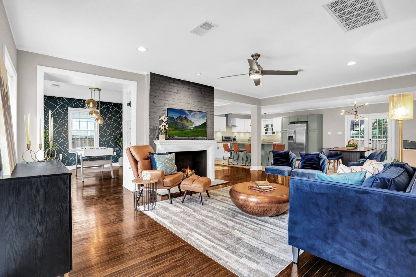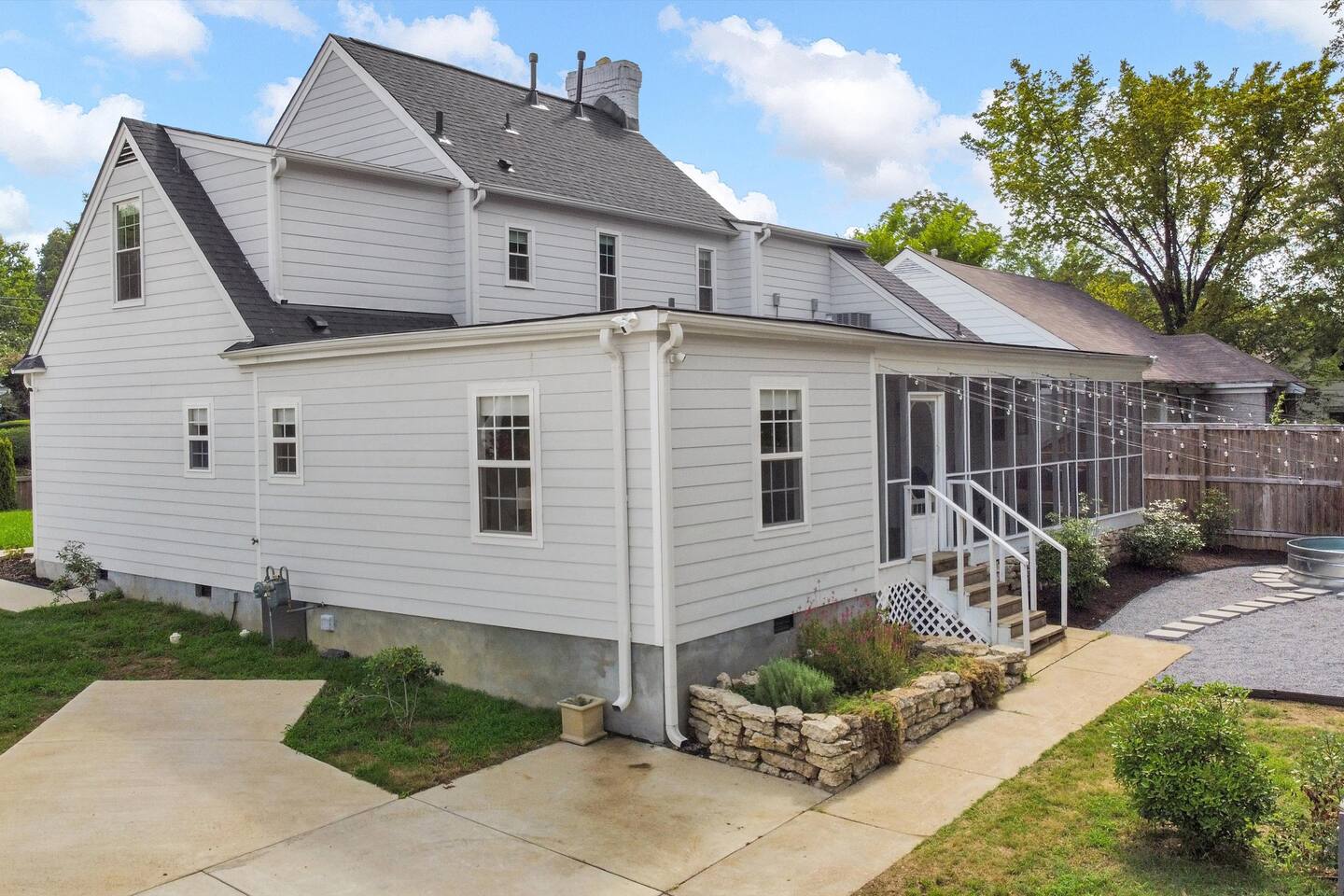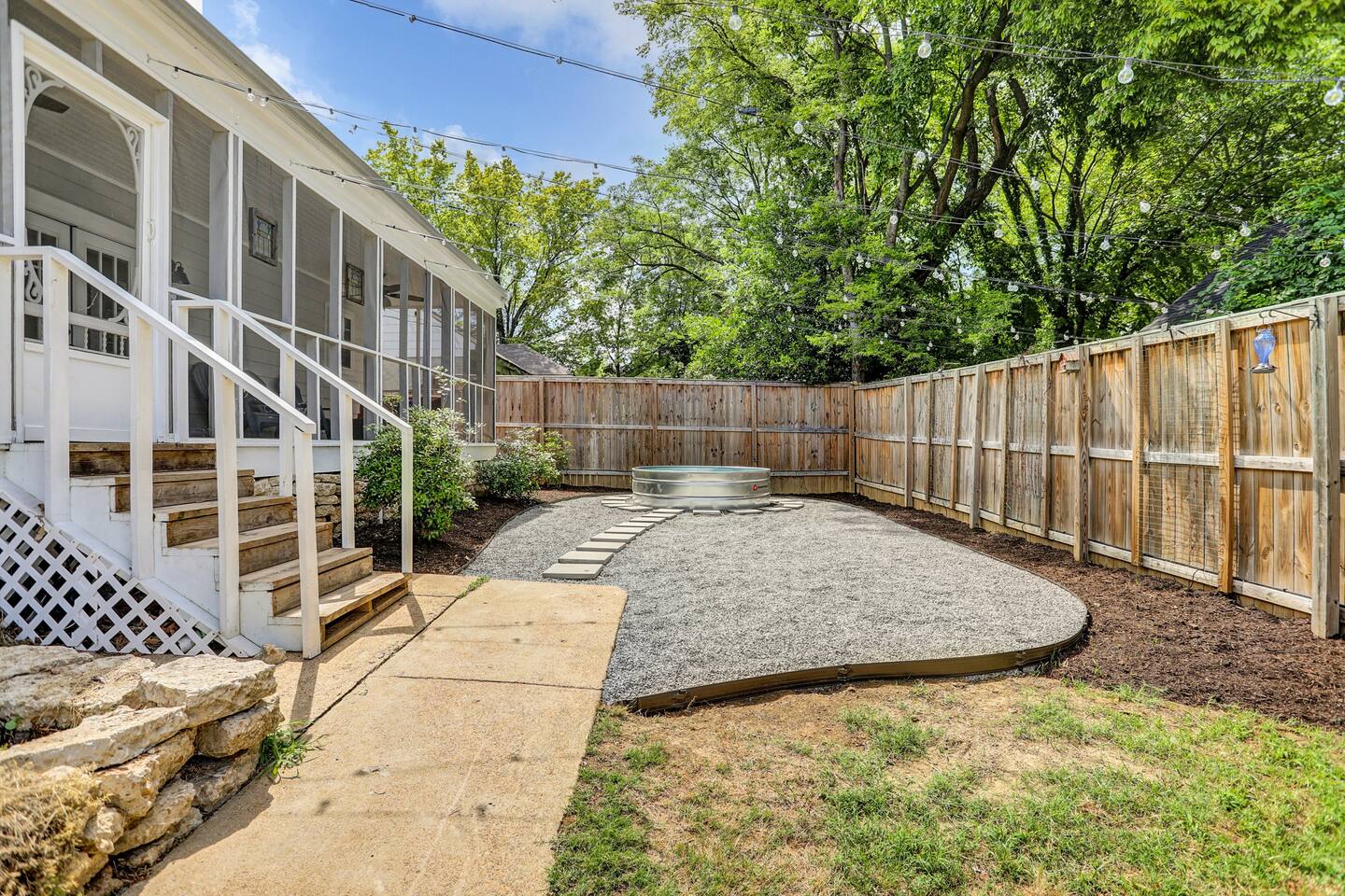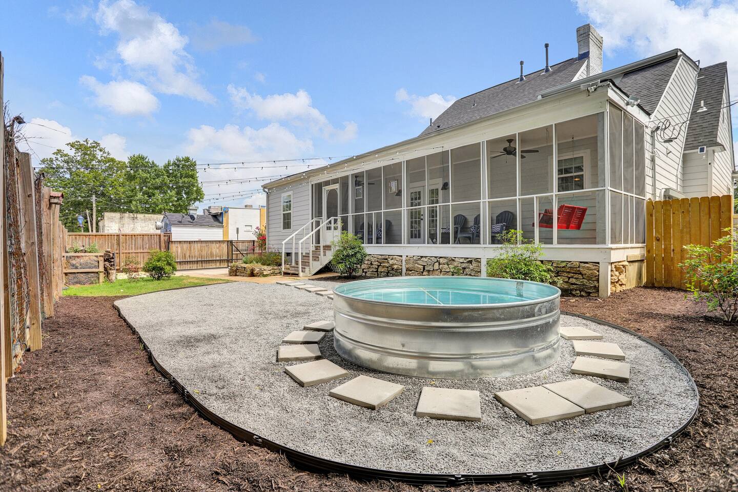 **Request a booking to receive a 3D tour!** ** The pool is NOT heated & is CLOSED during the winter months, weather dependent ** KEY FEATURES: ☀ 4 large bedrooms; 3 king beds, 2 queen beds ☀ 4 full bathrooms ☀ Fully-equipped kitchen with modern appliances + breakfast bar ☀ Spacious, modern layout with tons of comfy seating & entertainment ☀ Screened in porch with fire pit & seating ☀ Private, fully fenced yard (perfect for pets!) with a stock tank pool ☀ Washer + dryer ☀ Beautiful, musician inspired decor Here Are A Few Kind Words From Our Past Guests: “This was a great place to stay! The morning light through the windows was so beautiful. Overall, just a relaxing experience. The hosts were super responsive whenever I had a question. I would stay again!”- Emily “Sabrina and Chad were very accommodating and communicative. the house is beautiful and very comfortable, close to nature hikes.”- Jennifer “This place was lovely! Exactly as pictured! Very clean and excellent host experience!!! I plan to come back again!”- Regina ☆☆ BEDROOMS ☆☆ Downstairs, you will find two bedrooms (with two adjacent full bathrooms). One bedroom has a king bed, while the other has two queens. Upstairs, there are two more bedrooms (including the master suite with a smart TV), both of which are fitted with one king bed in each. All beds in this home are exceptionally comfy - we equipped this house with only the best and most comfortable design! ☆☆ BATHROOMS ☆☆ Downstairs, the two full bathrooms (with a shower/tub combo in each) can be found next to each bedroom, which are down the hallway from the main living area. Upstairs, you will find the beautiful master ensuite with two sinks and a standalone bathtub & shower. Next to the other bedroom is the last full bathroom with a shower/tub combo. Along with the rest of the house, each bathroom has been masterfully renovated to meet the gorgeous, modern aesthetic. ☆☆ KITCHEN & DINING ☆☆ Absolutely stunning, brand new kitchen with modern appliances and plenty of bar seating. With an open concept, you will be able to be part of the entertainment in the rest of the living space while cooking in this massive kitchen! Stocked with all kitchen essentials that you'll need (yes, including a Keurig and coffee pods), you will have everything you'll need to host a gourmet meal right at your fingertips. Directly across from the kitchen and bar seating, you will find a large dining table with lots of seating. Attached to the dining room is a unique little coffee nook. ☆☆ LIVING ROOM ☆☆ One of the centerpieces of the house: the living space. Tons of comfortable seating, a smart TV, and beautiful musically-influenced design. Directly off of the open living room is a game area with a foosball table and high top seating. This is a truly unique space that you will not find anywhere else. A one-of-a-kind experience! ☆☆ OUTDOOR SPACE ☆☆ This home sits on a large, private lot that is fully fenced - perfect for you to bring your pets! On the back side of the house is where you will find all of the outdoor amenities. You can sit around the fire pit in the screened in porch, swing on the porch bench, or relax in the brand new cowboy tub (small, above ground pool - the pool is CLOSED during the winter months, weather dependent). In the evening, you can turn the exterior string lights on to truly relax in this wonderful, private space! ** Please note, we do NOT have a BBQ grill** ★☆ Book Now & Let Us Take Care Of You In Memphis! ☆★