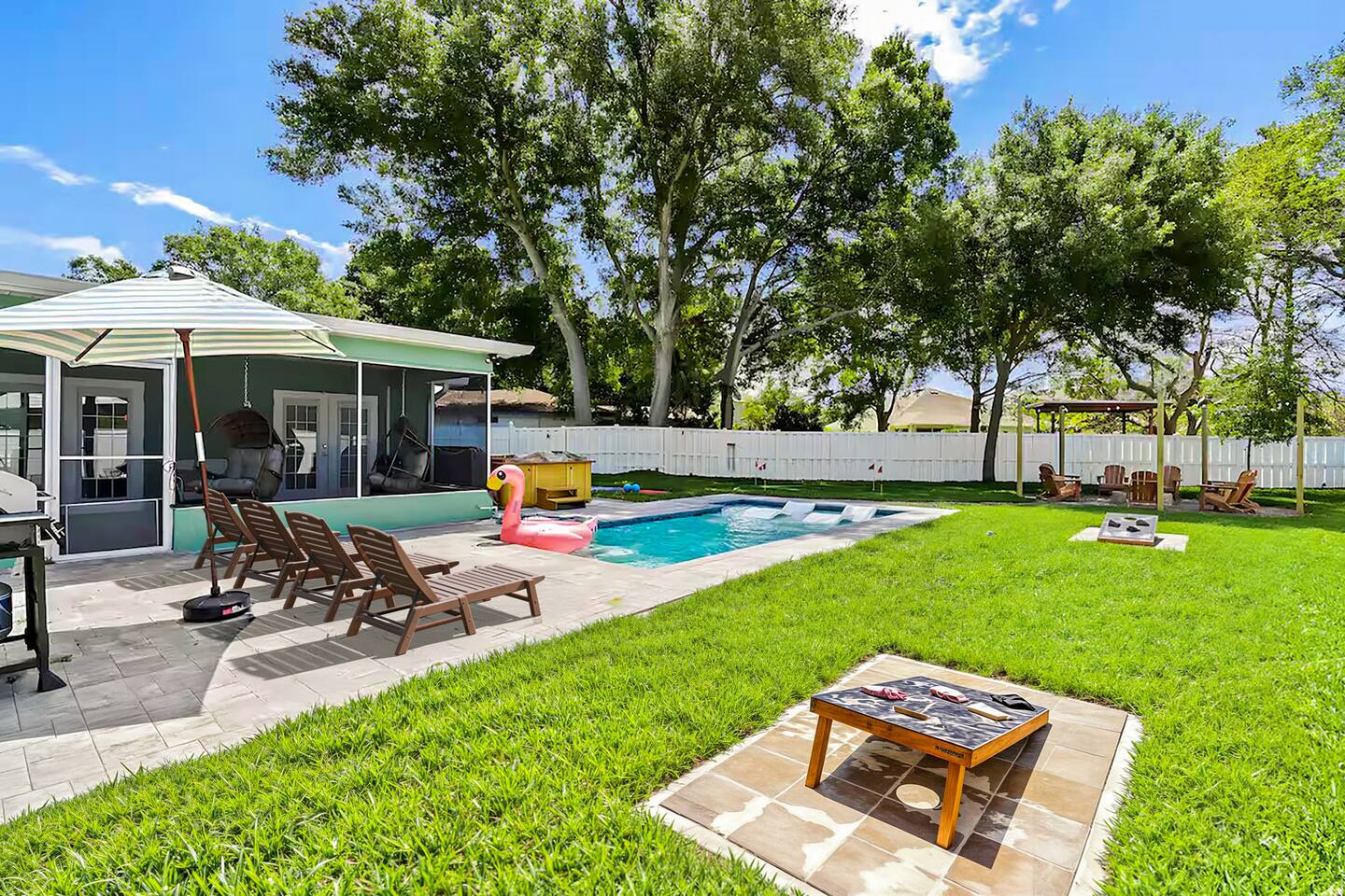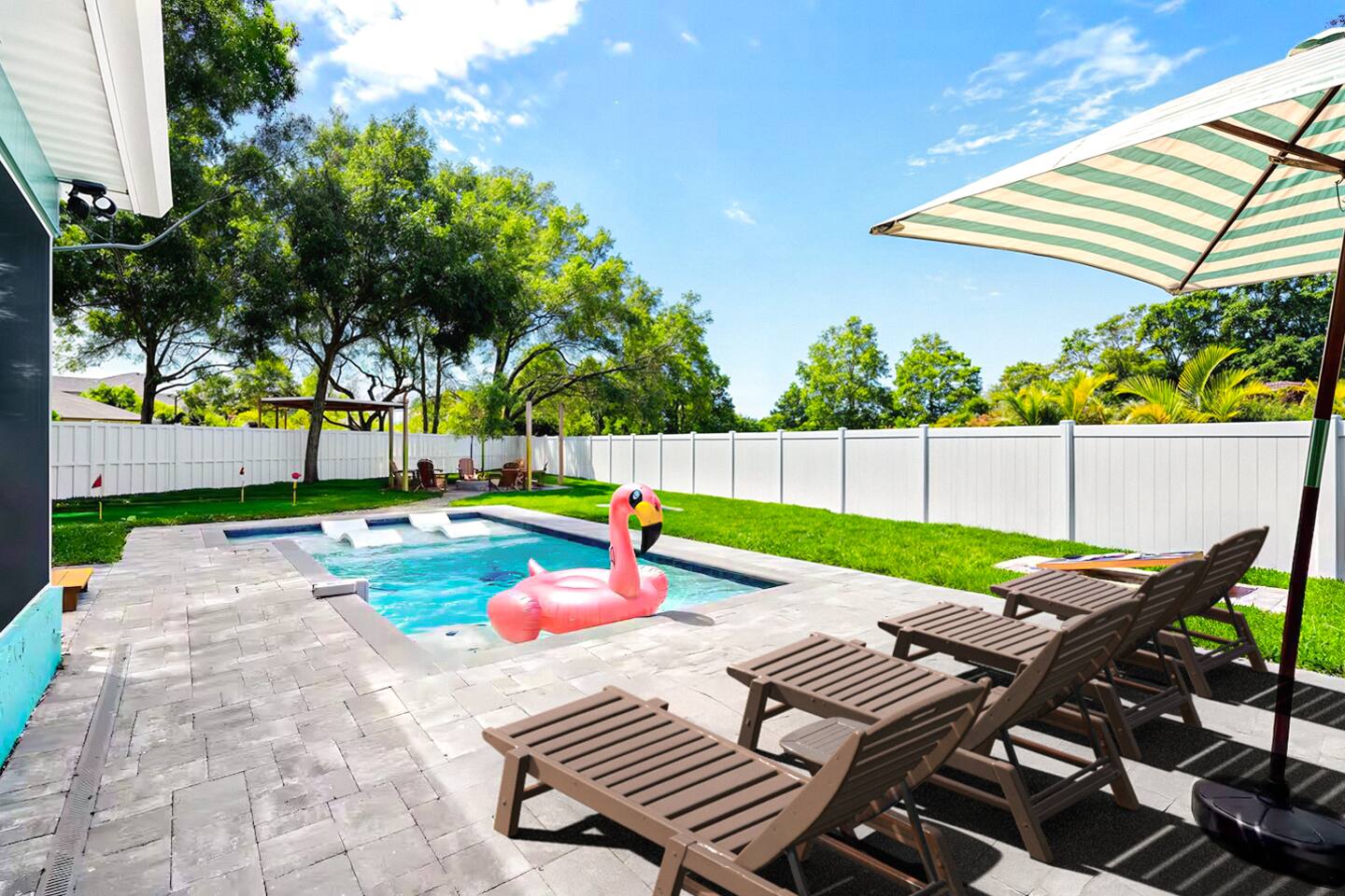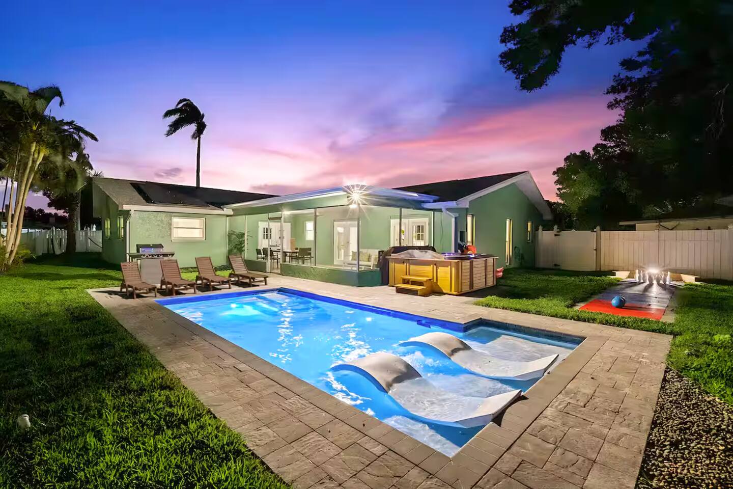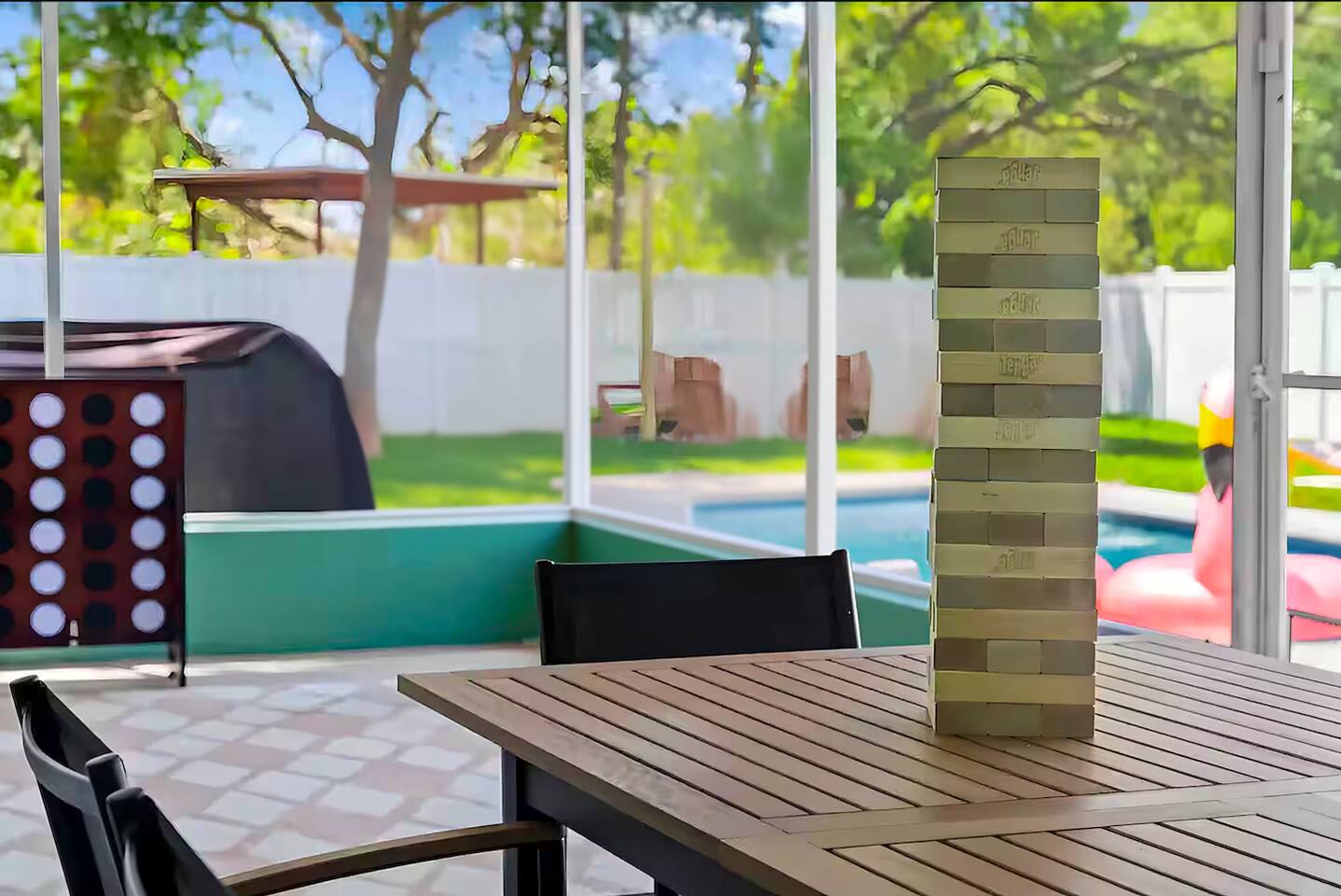 KEY FEATURES: ☀ Four spacious bedrooms; 1 king, 2 queens, & 2 full beds ☀ Two full bathrooms ☀ Open, modern kitchen with all the cooking essentials ☀ Bright dining room with seating for 8 ☀ Vibrant living room with comfy seating & beautiful design ☀ Game room with pool table, smart TV, and additional seating ☀ Additional game room with ping pong, foosball, and basketball ☀ Screened-in back porch with additional dining space, seating, and games ☀ Fully-fenced backyard, loaded with amenities! (Heated pool, hot tub, mini golf, bowling, fire pit, & more) Here Are A Few Kind Words From Our Past Guests: “This was a great place to stay! The morning light through the windows was so beautiful. Overall, just a relaxing experience. The hosts were super responsive whenever I had a question. I would stay again!” - Emily “Sabrina was very accommodating and communicative. the house is beautiful and very comfortable, close to nature hikes.” - Jennifer “This place was lovely! Exactly as pictured! Very clean and excellent host experience!!! I plan to come back again!” - Regina ☆☆ BEDROOMS ☆☆ There are four bedrooms spread across this home. The master bedroom has a king bed, smart TV, and direct access to the backyard. The next two bedrooms have one queen bed in each, while the fourth bedroom has a full-over-full bunk bed. Each bedroom is masterfully designed to carry the tropical, beach theme throughout! ☆☆ BATHROOMS ☆☆ This home has two full bathrooms, both of which are clean and modern. The first bathroom has a sink, toilet, and walk-in shower only, while the second bathroom has a sink, toilet, and shower/tub combo. ☆☆ KITCHEN & DINING ☆☆ The kitchen is open and modern, with new, stainless steel appliances (including a coffee station with a Keurig & coffee pods). This space opens up on both sides to the rest of the main living areas. Right across from the kitchen is the formal dining room, with enough seating to comfortably accommodate 8 (plus outdoor dining options). ☆☆ LIVING ROOM ☆☆ As you walk into the home, you'll be greeted with the living room. This space is beautifully crafted to reflect the beach, flamingo theme that is vibrant throughout the entire home. A fun mural of flamingos overlooks the big sectional couch, additional seating, and a smart TV. A great, cozy space for movie nights with your family & friends! ☆☆ GAME ROOMS ☆☆ Right across from the rest of the main living area is the first game room, equipped with a pool table, smart TV, and more seating options. This space is truly one of the centerpieces of the home, with a big mural, marking this home as the "Flamingo Oasis". The garage has been converted into a second game room, with even more games and an additional space to hang out! Ping pong, foosball, Pop-a-Shot (basketball) and some additional seating makes this game room a great addition to the rest of the entertainment you'll find in this home! ☆☆ OUTDOOR SPACE ☆☆ This backyard is unbelievable; it'll take your breath away! ☀ Heated pool ☀ Hot tub ☀ Bowling ☀ Mini golf ☀ Fire pit (wood burning) ☀ Corn hole ☀ Giant Jenga ☀ Giant Connect 4 ☀ Sun lounging chairs ☀ Hammocks ☀ BBQ grill ☀ Outdoor dining (screened-in porch) ☀ Additional lounge seating (screened-in porch) Total privacy & so much to do in this backyard will make this the perfect spot to stay entertained, whether you plan to use this home as a spot to relax after a day at the beach, or spend your entire vacation here at home! ★☆ Book Now & Let Us Take Care Of You In Seminole! ☆★