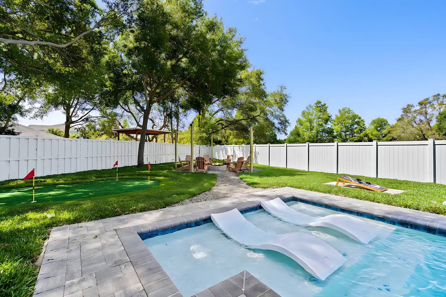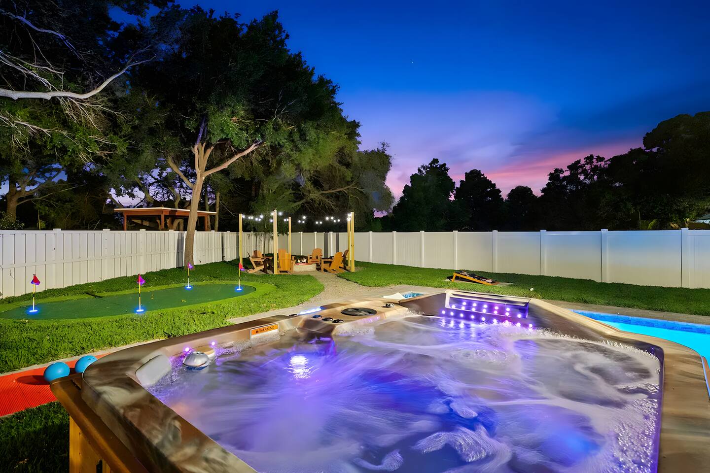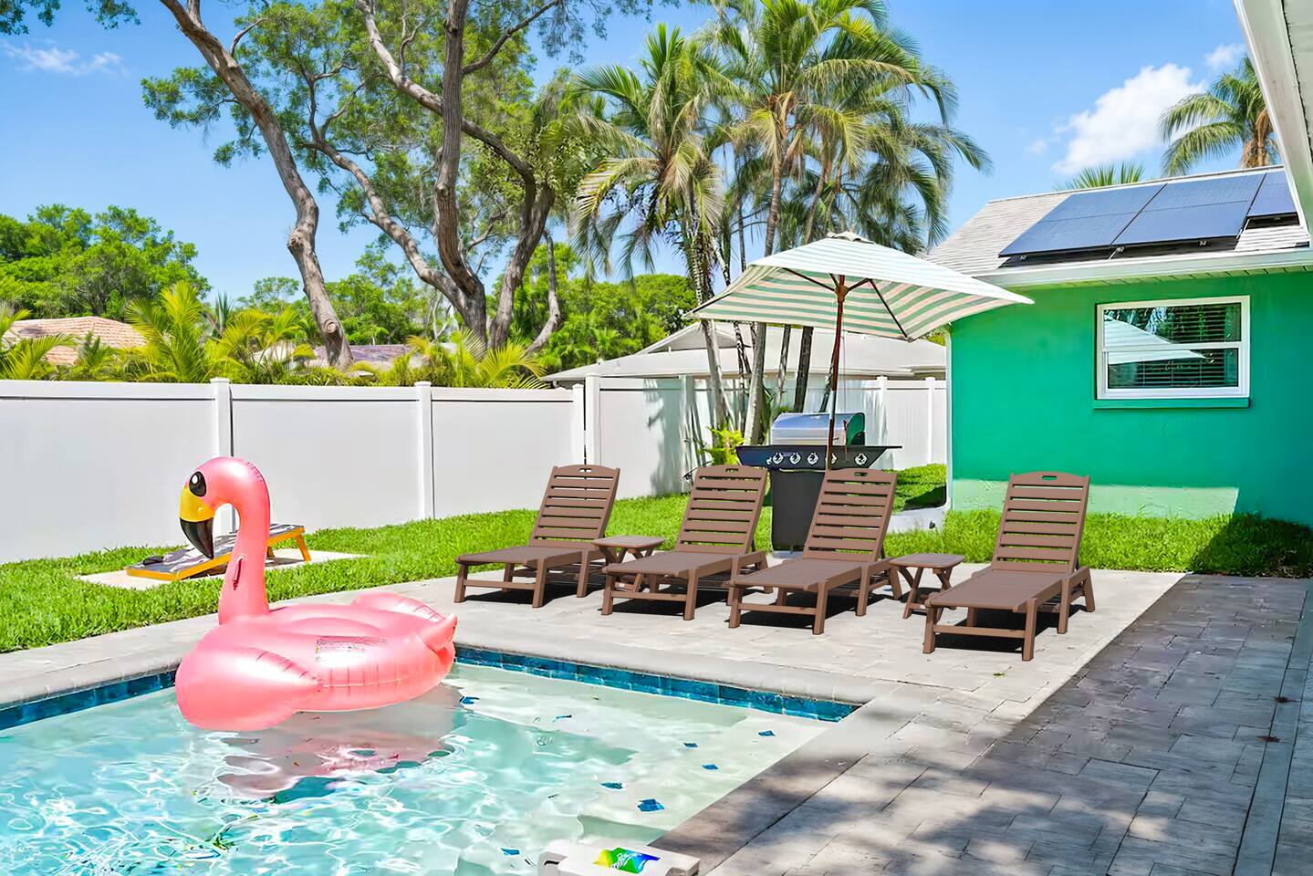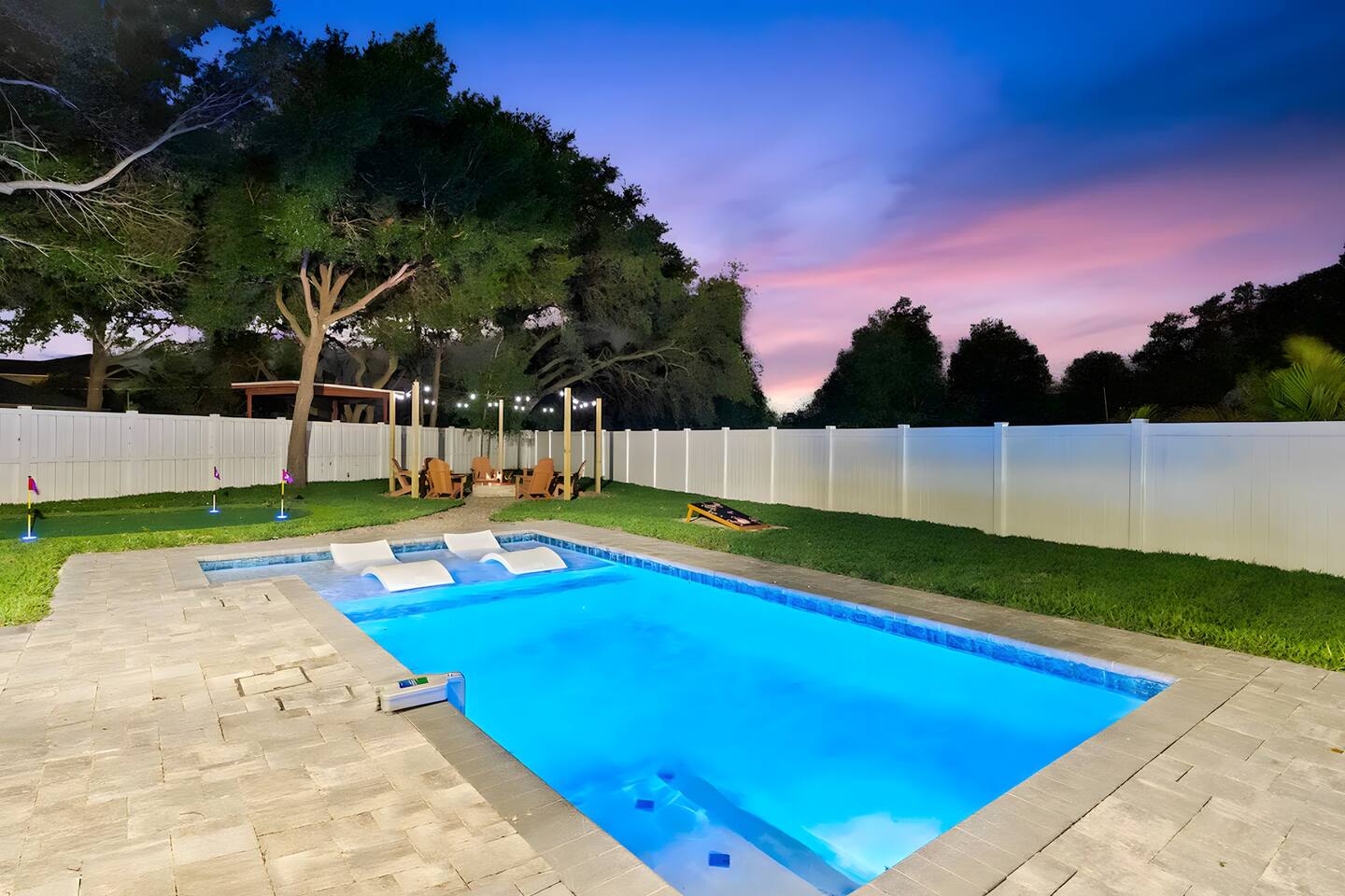 KEY FEATURES: ☀ Four spacious bedrooms; 1 king, 2 queens, & 2 full beds ☀ Two full bathrooms ☀ Open, modern kitchen with all the cooking essentials ☀ Bright dining room with seating for 8 ☀ Vibrant living room with comfy seating & beautiful design ☀ Game room with pool table, smart TV, and additional seating ☀ Additional game room with ping pong, foosball, and basketball ☀ Screened-in back porch with additional dining space, seating, and games ☀ Fully-fenced backyard, loaded with amenities! (Heated pool, hot tub, mini golf, bowling, fire pit, & more) Here Are A Few Kind Words From Our Past Guests: “This was a great place to stay! The morning light through the windows was so beautiful. Overall, just a relaxing experience. The hosts were super responsive whenever I had a question. I would stay again!” - Emily “Sabrina was very accommodating and communicative. the house is beautiful and very comfortable, close to nature hikes.” - Jennifer “This place was lovely! Exactly as pictured! Very clean and excellent host experience!!! I plan to come back again!” - Regina ☆☆ BEDROOMS ☆☆ There are four bedrooms spread across this home. The master bedroom has a king bed, smart TV, and direct access to the backyard. The next two bedrooms have one queen bed in each, while the fourth bedroom has a full-over-full bunk bed. Each bedroom is masterfully designed to carry the tropical, beach theme throughout! ☆☆ BATHROOMS ☆☆ This home has two full bathrooms, both of which are clean and modern. The first bathroom has a sink, toilet, and walk-in shower only, while the second bathroom has a sink, toilet, and shower/tub combo. ☆☆ KITCHEN & DINING ☆☆ The kitchen is open and modern, with new, stainless steel appliances (including a coffee station with a Keurig & coffee pods). This space opens up on both sides to the rest of the main living areas. Right across from the kitchen is the formal dining room, with enough seating to comfortably accommodate 8 (plus outdoor dining options). ☆☆ LIVING ROOM ☆☆ As you walk into the home, you'll be greeted with the living room. This space is beautifully crafted to reflect the beach, flamingo theme that is vibrant throughout the entire home. A fun mural of flamingos overlooks the big sectional couch, additional seating, and a smart TV. A great, cozy space for movie nights with your family & friends! ☆☆ GAME ROOMS ☆☆ Right across from the rest of the main living area is the first game room, equipped with a pool table, smart TV, and more seating options. This space is truly one of the centerpieces of the home, with a big mural, marking this home as the "Flamingo Oasis". The garage has been converted into a second game room, with even more games and an additional space to hang out! Ping pong, foosball, Pop-a-Shot (basketball) and some additional seating makes this game room a great addition to the rest of the entertainment you'll find in this home! ☆☆ OUTDOOR SPACE ☆☆ This backyard is unbelievable; it'll take your breath away! ☀ Heated pool ☀ Hot tub ☀ Bowling ☀ Mini golf ☀ Fire pit (wood burning) ☀ Corn hole ☀ Giant Jenga ☀ Giant Connect 4 ☀ Sun lounging chairs ☀ Hammocks ☀ BBQ grill ☀ Outdoor dining (screened-in porch) ☀ Additional lounge seating (screened-in porch) Total privacy & so much to do in this backyard will make this the perfect spot to stay entertained, whether you plan to use this home as a spot to relax after a day at the beach, or spend your entire vacation here at home! ★☆ Book Now & Let Us Take Care Of You In Seminole! ☆★