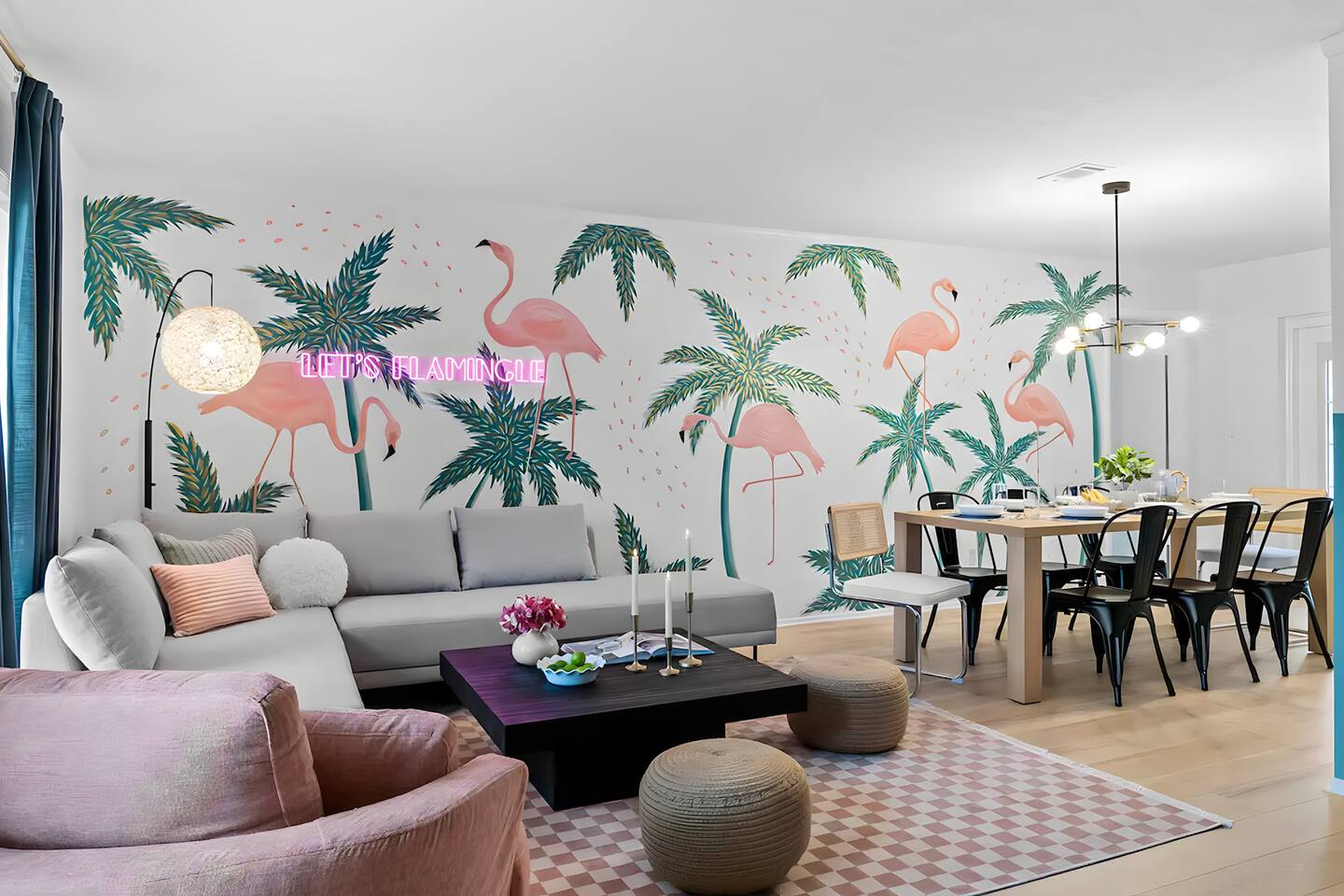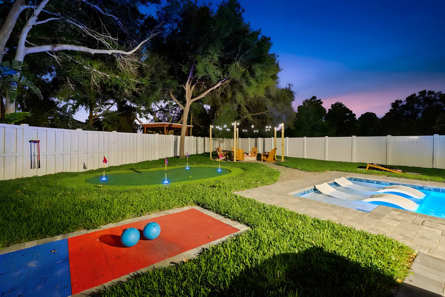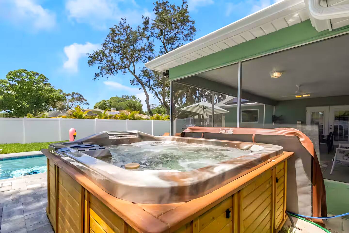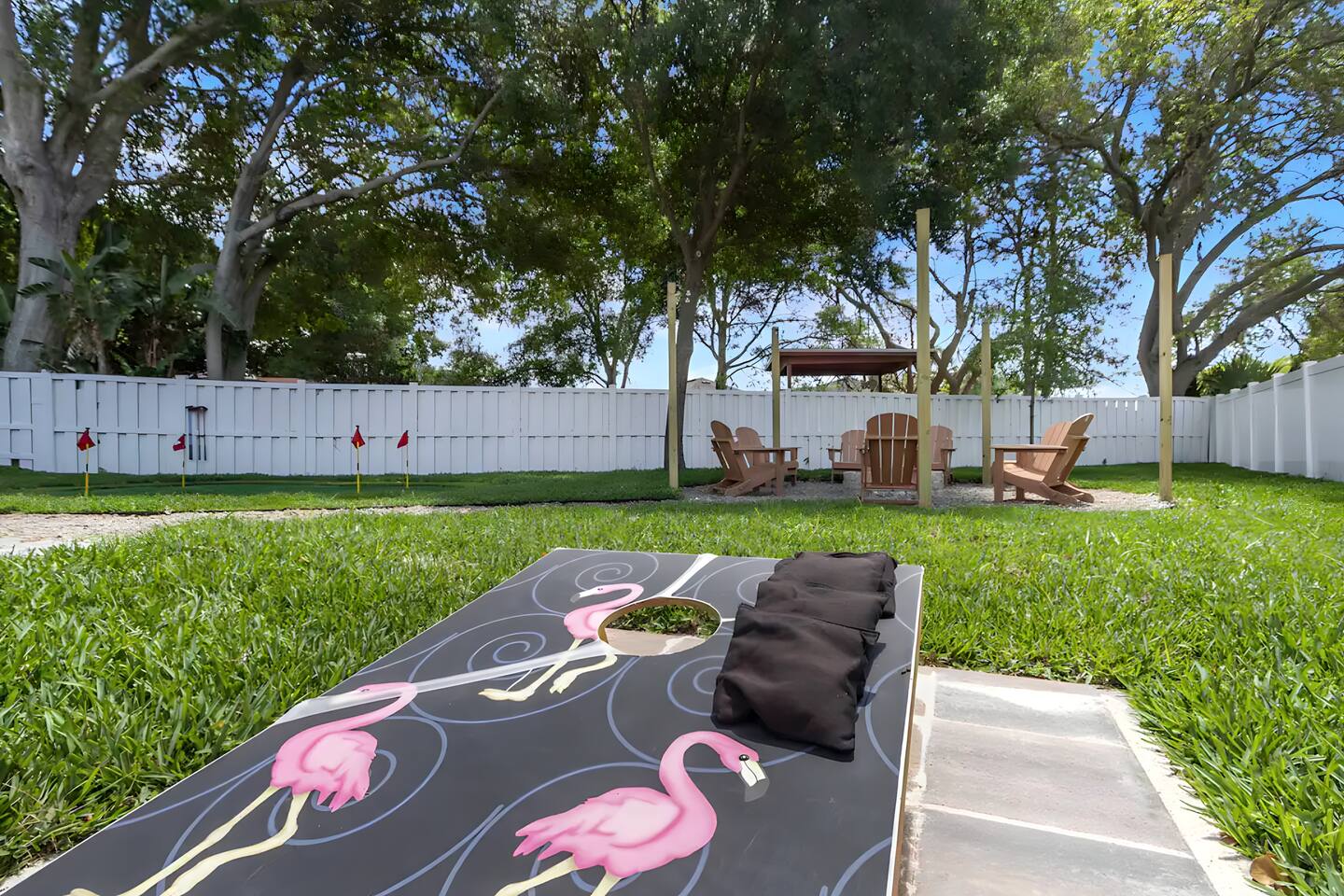 KEY FEATURES: ☀ Four spacious bedrooms; 1 king, 2 queens, & 2 full beds ☀ Two full bathrooms ☀ Open, modern kitchen with all the cooking essentials ☀ Bright dining room with seating for 8 ☀ Vibrant living room with comfy seating & beautiful design ☀ Game room with pool table, smart TV, and additional seating ☀ Additional game room with ping pong, foosball, and basketball ☀ Screened-in back porch with additional dining space, seating, and games ☀ Fully-fenced backyard, loaded with amenities! (Heated pool, hot tub, mini golf, bowling, fire pit, & more) Here Are A Few Kind Words From Our Past Guests: “This was a great place to stay! The morning light through the windows was so beautiful. Overall, just a relaxing experience. The hosts were super responsive whenever I had a question. I would stay again!” - Emily “Sabrina was very accommodating and communicative. the house is beautiful and very comfortable, close to nature hikes.” - Jennifer “This place was lovely! Exactly as pictured! Very clean and excellent host experience!!! I plan to come back again!” - Regina ☆☆ BEDROOMS ☆☆ There are four bedrooms spread across this home. The master bedroom has a king bed, smart TV, and direct access to the backyard. The next two bedrooms have one queen bed in each, while the fourth bedroom has a full-over-full bunk bed. Each bedroom is masterfully designed to carry the tropical, beach theme throughout! ☆☆ BATHROOMS ☆☆ This home has two full bathrooms, both of which are clean and modern. The first bathroom has a sink, toilet, and walk-in shower only, while the second bathroom has a sink, toilet, and shower/tub combo. ☆☆ KITCHEN & DINING ☆☆ The kitchen is open and modern, with new, stainless steel appliances (including a coffee station with a Keurig & coffee pods). This space opens up on both sides to the rest of the main living areas. Right across from the kitchen is the formal dining room, with enough seating to comfortably accommodate 8 (plus outdoor dining options). ☆☆ LIVING ROOM ☆☆ As you walk into the home, you'll be greeted with the living room. This space is beautifully crafted to reflect the beach, flamingo theme that is vibrant throughout the entire home. A fun mural of flamingos overlooks the big sectional couch, additional seating, and a smart TV. A great, cozy space for movie nights with your family & friends! ☆☆ GAME ROOMS ☆☆ Right across from the rest of the main living area is the first game room, equipped with a pool table, smart TV, and more seating options. This space is truly one of the centerpieces of the home, with a big mural, marking this home as the "Flamingo Oasis". The garage has been converted into a second game room, with even more games and an additional space to hang out! Ping pong, foosball, Pop-a-Shot (basketball) and some additional seating makes this game room a great addition to the rest of the entertainment you'll find in this home! ☆☆ OUTDOOR SPACE ☆☆ This backyard is unbelievable; it'll take your breath away! ☀ Heated pool ☀ Hot tub ☀ Bowling ☀ Mini golf ☀ Fire pit (wood burning) ☀ Corn hole ☀ Giant Jenga ☀ Giant Connect 4 ☀ Sun lounging chairs ☀ Hammocks ☀ BBQ grill ☀ Outdoor dining (screened-in porch) ☀ Additional lounge seating (screened-in porch) Total privacy & so much to do in this backyard will make this the perfect spot to stay entertained, whether you plan to use this home as a spot to relax after a day at the beach, or spend your entire vacation here at home! ★☆ Book Now & Let Us Take Care Of You In Seminole! ☆★