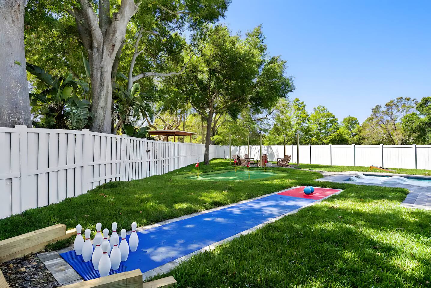 Stunning 4 bedroom home, loaded with amenities, just a short drive away from all the top vacation destinations in the Clearwater area! This home has it all - heated pool, hot tub, bowling, mini golf, and so much more! With enough space to comfortably accommodate 10 people, this home is a perfect beach getaway for your family & friends! 5 min - Beautiful beach access 8 min - Seminole City Center, Walsingham Park 20 min - Clearwater 30 min - Tampa