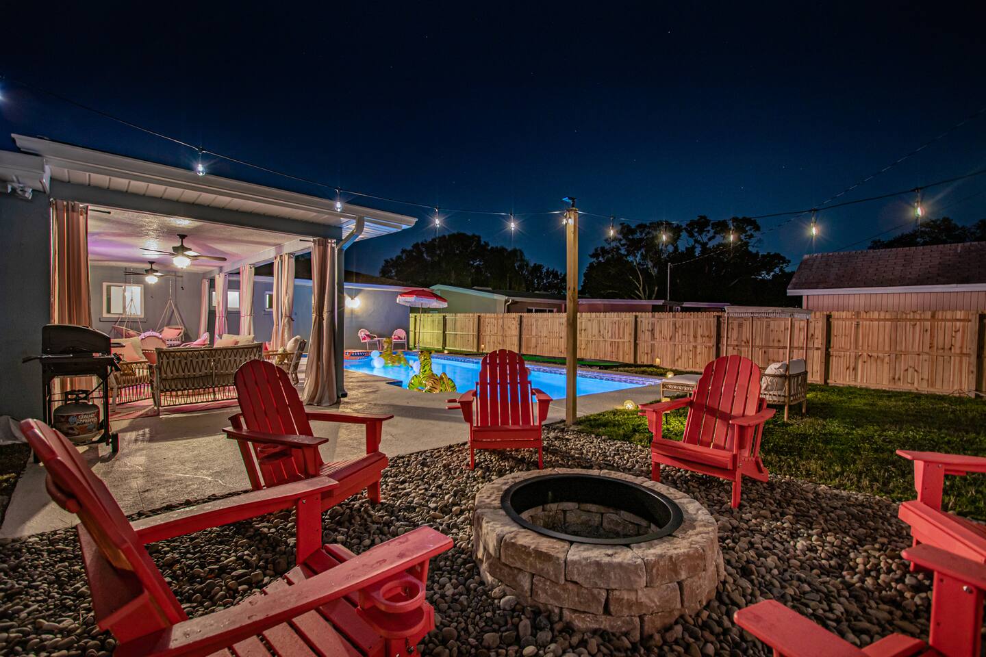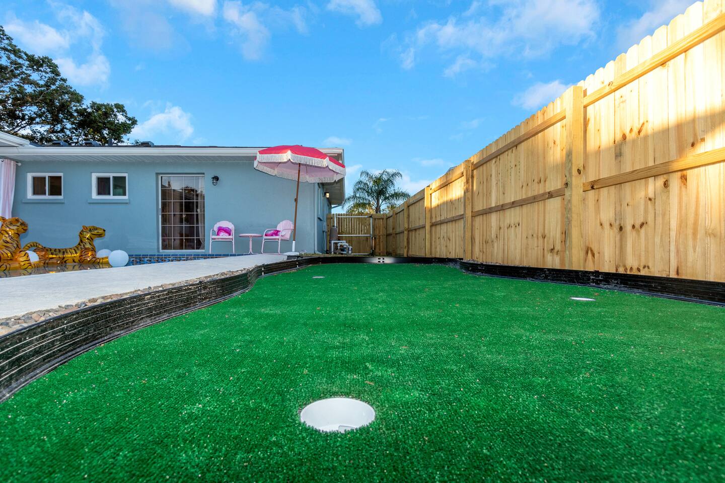 All amenities in this home can be used on our property only, without accessing any neighboring homes. This home is located in a quiet, residential neighborhood. We ask that you please respect our neighbors by observing the quiet hours between 10pm- 9am. We stress the importance of keeping our neighborhood quiet & safe for all of our guests & neighbors. We do not authorize any parties or events at this listing. This home & all of its amenities are either inside of the home itself, or on a private, fully-fenced backyard. Under NO circumstances will our guests be authorized to trespass onto any of our neighbors’ properties.