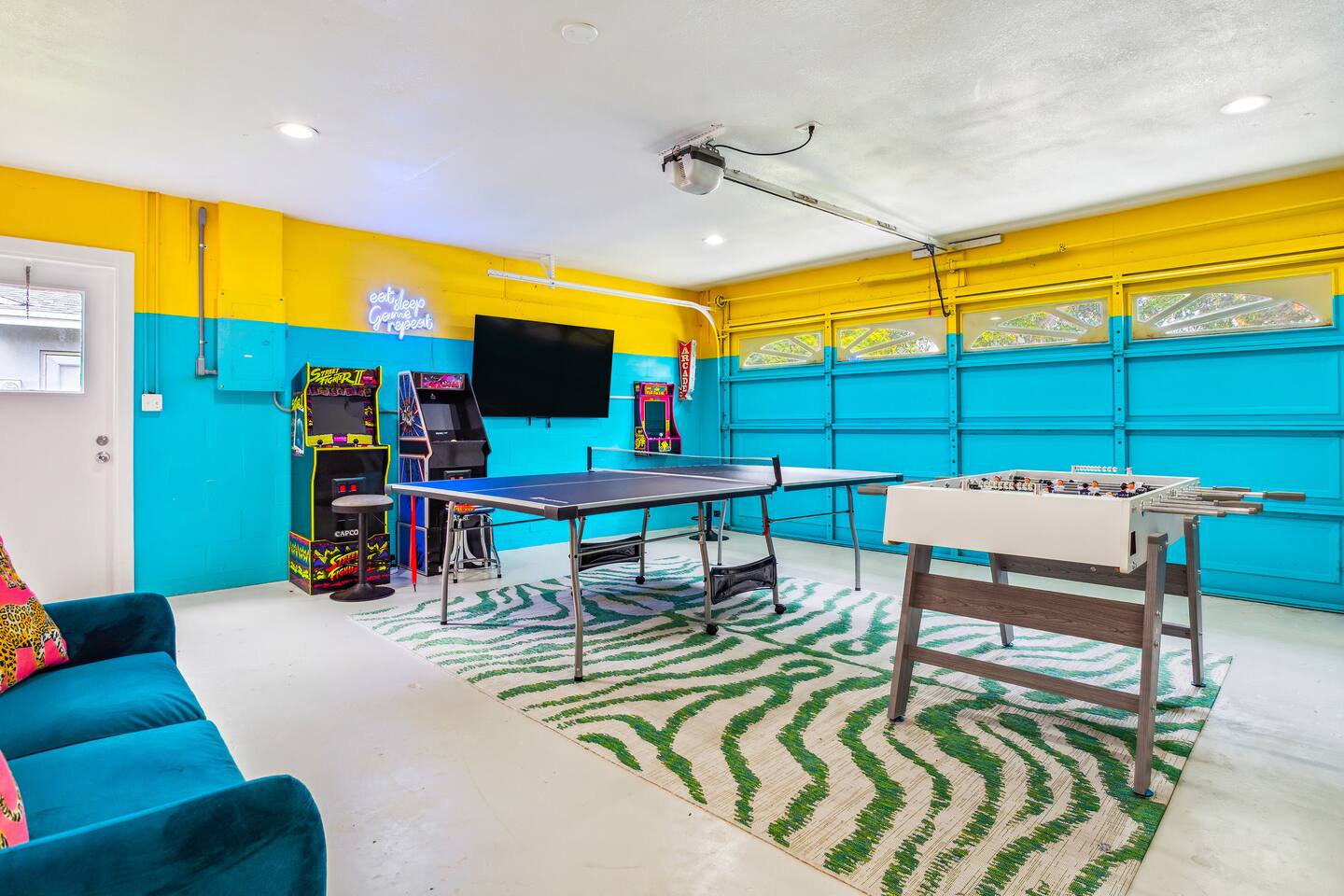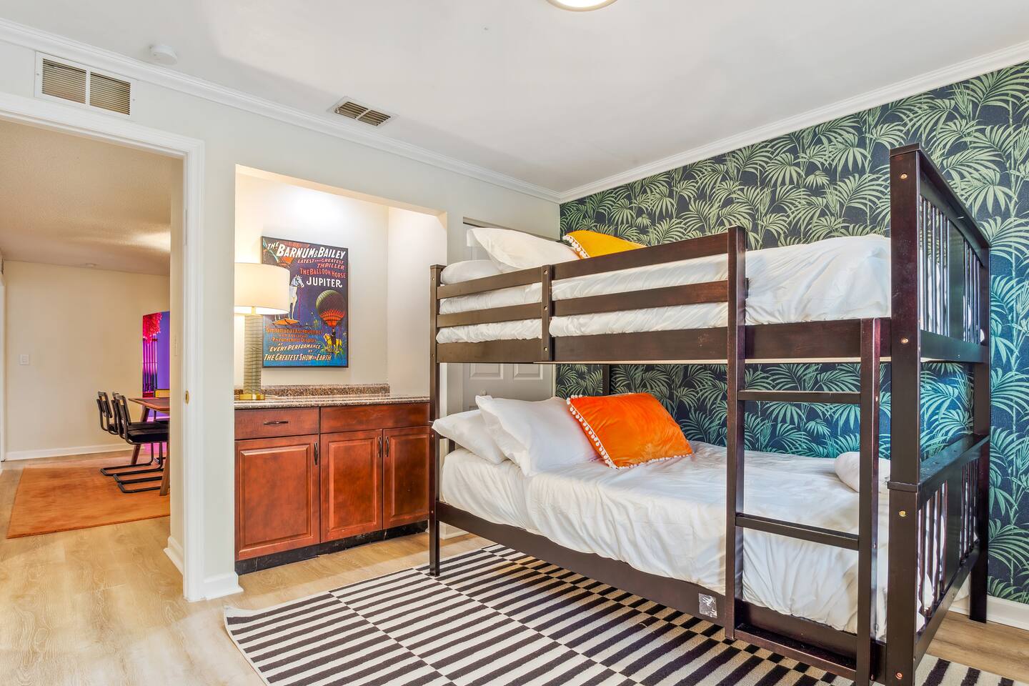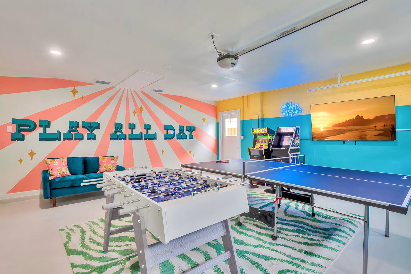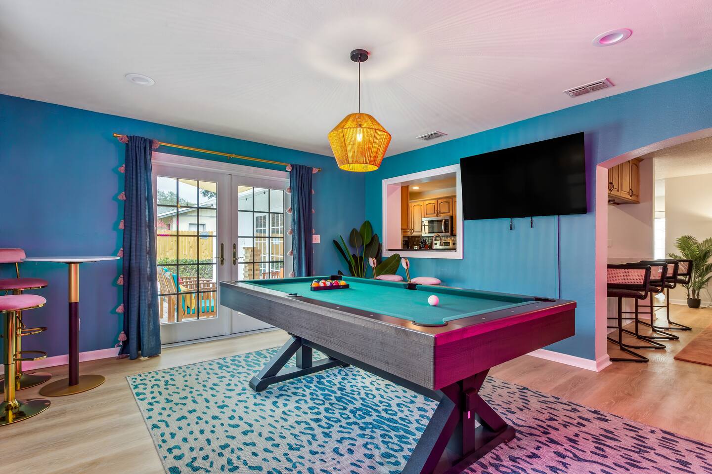 KEY FEATURES: ☀ Four spacious bedrooms; 1 king, 1 queen, & 4 full beds (two bunks) ☀ Two full bathrooms ☀ Open, modern kitchen with all the cooking essentials ☀ Bright dining room with seating for 12 (+ breakfast nook) ☀ Vibrant living room with comfy seating & beautiful design ☀ Game room with pool table, smart TV, and additional seating ☀ Additional game room with ping pong, foosball, and arcade games ☀ Fully-fenced backyard, loaded with amenities! (Heated pool, fire pit, mini golf, & more) Here Are A Few Kind Words From Our Past Guests: “This was a great place to stay! The morning light through the windows was so beautiful. Overall, just a relaxing experience. The hosts were super responsive whenever I had a question. I would stay again!” - Emily “Sabrina was very accommodating and communicative. the house is beautiful and very comfortable, close to nature hikes.” - Jennifer “This place was lovely! Exactly as pictured! Very clean and excellent host experience!!! I plan to come back again!” - Regina ☆☆ BEDROOMS ☆☆ There are four bedrooms spread across this home. The master bedroom has a king bed, while the second bedroom has a queen bed. The two remaining bedrooms have a full-over-full bunk bed in each. Every bedroom is masterfully designed to carry the tropical circus theme throughout! ☆☆ BATHROOMS ☆☆ This home has two full bathrooms. The first bathroom has a sink, toilet, and walk-in shower only, while the second bathroom has a sink, toilet, and shower/tub combo. ☆☆ KITCHEN & DINING ☆☆ The kitchen is bright & open, with new, stainless steel appliances (including a coffee station with a Keurig & coffee pods). This space opens up on both sides to the rest of the main living areas. Right across from the kitchen is the formal dining room, with enough seating to comfortably accommodate 12 (plus a breakfast nook). ☆☆ LIVING ROOM ☆☆ As you walk into the home, you'll be greeted with the living room. This space is beautifully crafted to reflect the beach-circus theme that is vibrant throughout the entire home. You'll be amazed by the big sectional couch, additional seating, and a smart TV. A great, cozy space for movie nights with your family & friends! ☆☆ GAME ROOMS ☆☆ Right across from the rest of the main living area is the first game room, equipped with a pool table, smart TV, and more seating options. This space is truly one of the centerpieces of the home. The garage has been converted into a second game room, with even more games and an additional space to hang out! Ping pong, foosball, arcade games and some additional seating makes this game room a great addition to the rest of the entertainment you'll find in this home! Even the breakfast nook doubles as some more entertainment! The hard-top table in this nook can be removed to reveal a poker table, with enough seating for 5! ☆☆ OUTDOOR SPACE ☆☆ This backyard is unbelievable; it'll take your breath away! ☀ Heated pool ☀ Mini golf ☀ Fire pit (wood burning) ☀ Corn hole ☀ Giant Jenga ☀ Giant Connect 4 ☀ Sun lounging chairs ☀ BBQ grill ☀ Additional lounge seating Total privacy & so much to do in this backyard will make this the perfect spot to stay entertained, whether you plan to use this home as a spot to relax after a day at the beach, or spend your entire vacation here at home! ★☆ Book Now & Let Us Take Care Of You In Seminole! ☆★