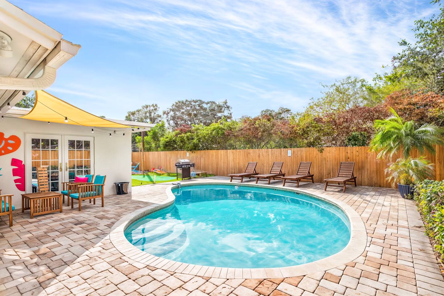 We are pet-friendly! Pet fee is $50 per pet, per night, max of 4 pets. Pool heating: We charge $100 for pool heating and will pre-heat the pool to 85 degrees. However, outdoor weather can affect the pool temperature, and in colder conditions, the heaters may not raise the water significantly above the ambient air temperature. From December through February, pool heaters will be turned on at no additional charge. This property includes security features, such as Schlage smart locks and Ring floodlight cameras, for your safety and peace of mind. Smoking: Smoking or vaping of any kind is strictly prohibited inside the home or on the property. A violation of this policy will result in a minimum $250 fine to cover deep cleaning and odor removal.