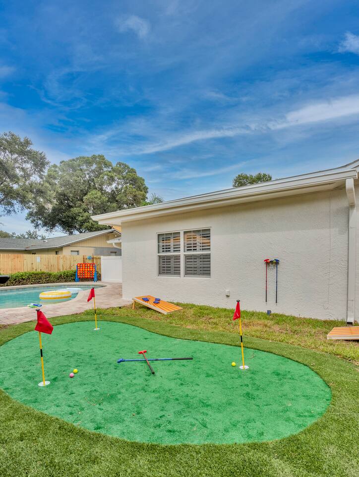 Stunning 4 bedroom home, loaded with amenities, just a short drive away from all the top vacation destinations in the Clearwater area! This home has it all - heated pool, fire pit, mini golf, and so much more! With enough space to comfortably accommodate 12 people, this home is a perfect beach getaway for your family & friends! 5 min - Beautiful beach access 8 min - Seminole City Center, Walsingham Park 20 min - Clearwater 30 min - Tampa Experience Seminole With Us & Learn More Below!