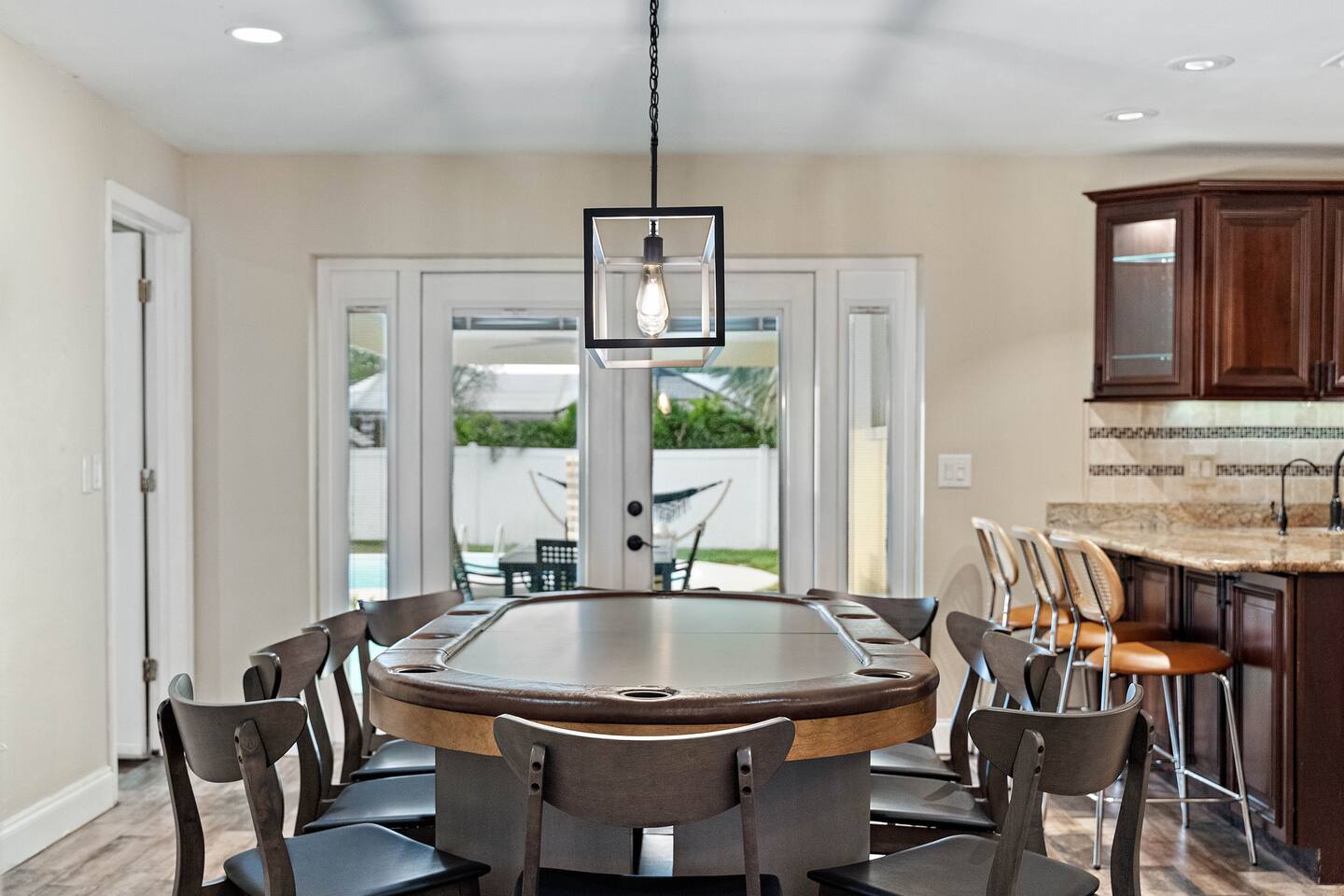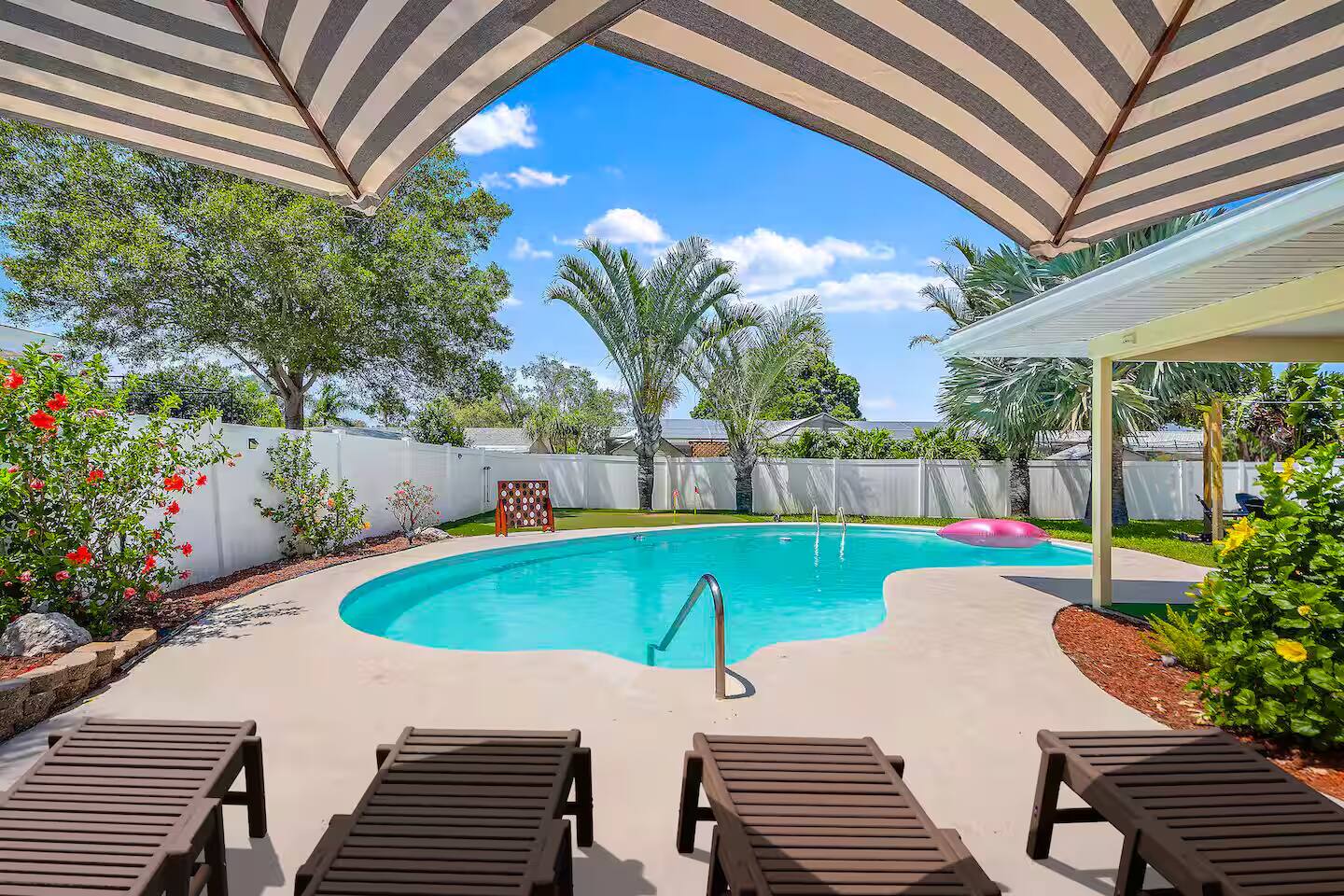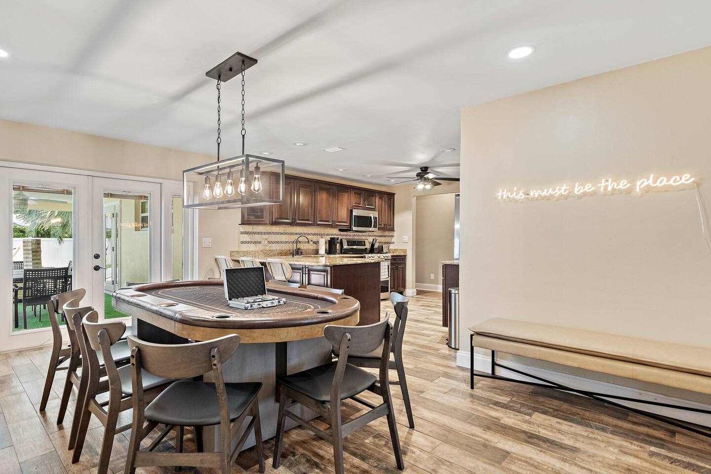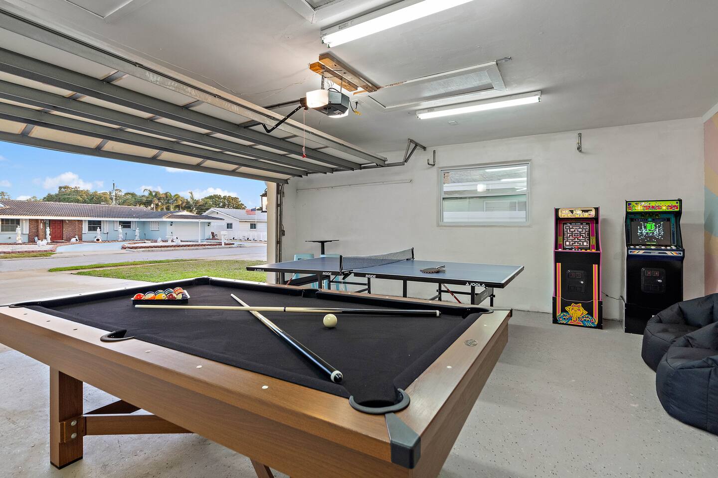 KEY FEATURES: ☀ 4 beautiful bedrooms; 1 king, 2 queens, 1 full, & 2 twin beds ☀ 2 full bathrooms ☀ Modern kitchen with new, stainless steel appliances ☀ Open living room with lots of comfy seating & smart TV ☀ Dining room with seating to comfortably accommodate 10 (+ 3 countertop seats) ☀ Fun game room with pool table, ping pong, & more ☀ Private oasis in the backyard, with heated pool, mini golf, fire pit, and much more! Here Are A Few Kind Words From Our Past Guests: “This was a great place to stay! The morning light through the windows was so beautiful. Overall, just a relaxing experience. The hosts were super responsive whenever I had a question. I would stay again!” - Emily “Sabrina was very accommodating and communicative. the house is beautiful and very comfortable, close to nature hikes.” - Jennifer “This place was lovely! Exactly as pictured! Very clean and excellent host experience!!! I plan to come back again!” - Regina ☆☆ BEDROOMS ☆☆ You'll find 4 stylish, comfy bedrooms in this home. The master bedroom is equipped with a king bed, smart TV, direct access to the backyard, and a private ensuite bathroom. Down the hall, the next two bedrooms have one queen bed in each, while the fourth bedroom has a twin-over-full bunk bed w/ a twin trundle bed underneath. ☆☆ BATHROOMS ☆☆ There are two full bathrooms in this home. The private master ensuite has a sink, toilet, and walk-in shower. The hallway bathroom has a sink, toilet, and shower/tub combo. ☆☆ KITCHEN & DINING ☆☆ The modern kitchen is located right off of the main living areas, and is loaded with all new stainless steel appliances & a coffee station (including a Keurig & coffee pods). The dining room is right next to the kitchen, with enough seating to comfortably fit 10 people, along with 3 more countertop seats in the kitchen. On top of that, the dining table unfolds to reveal a poker table! ☆☆ LIVING ROOM ☆☆ In the living room, you’ll be greeted with lots of comfy seating, a big smart TV, private workspace, and beautiful design throughout. This is the perfect spot to host your movie nights & games with your friends and family! ☆☆ GAME ROOM ☆☆ Keep your family and friends entertained throughout your stay in our amenity-filled game room! Pool table, ping pong, arcade games, smart TV, & lots of seating. Whether your reason for staying is to explore the town or stay at home and relax, this place will be the perfect spot to unwind! ☆☆ OUTDOOR SPACE ☆☆ This backyard is everything you could ask for, and more! ☀ Heated pool ☀ Mini golf ☀ Fire pit ☀ Corn hole ☀ Giant Connect 4 ☀ Giant Jenga ☀ BBQ grill ☀ Sun lounging chairs ☀ Covered outdoor lounge seating ☀ Covered outdoor dining There is so much to do here, that all of your friends & family will be thoroughly entertained throughout your entire stay. No matter the season, this backyard has it all. Book your stay with us today and you will NOT be disappointed. Get ready for a vacation you will never forget! ★☆ Book Now & Let Us Take Care Of You In Clearwater! ☆★