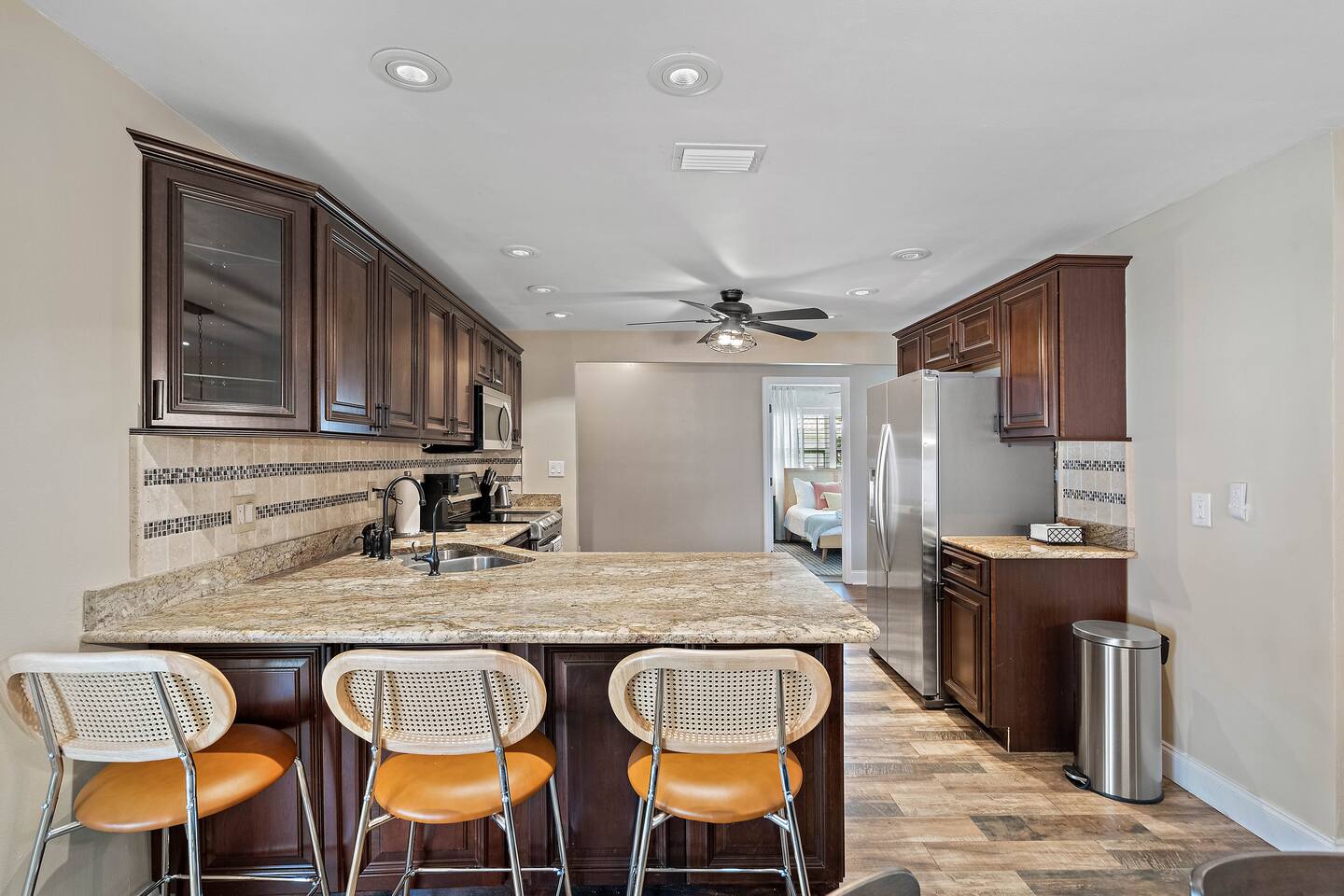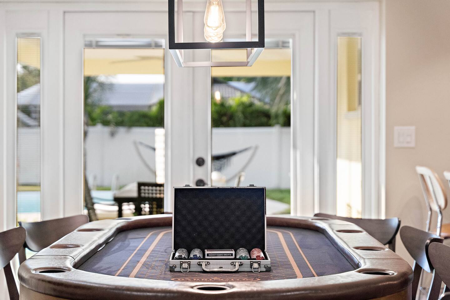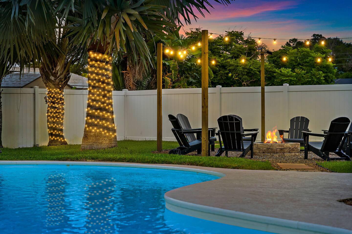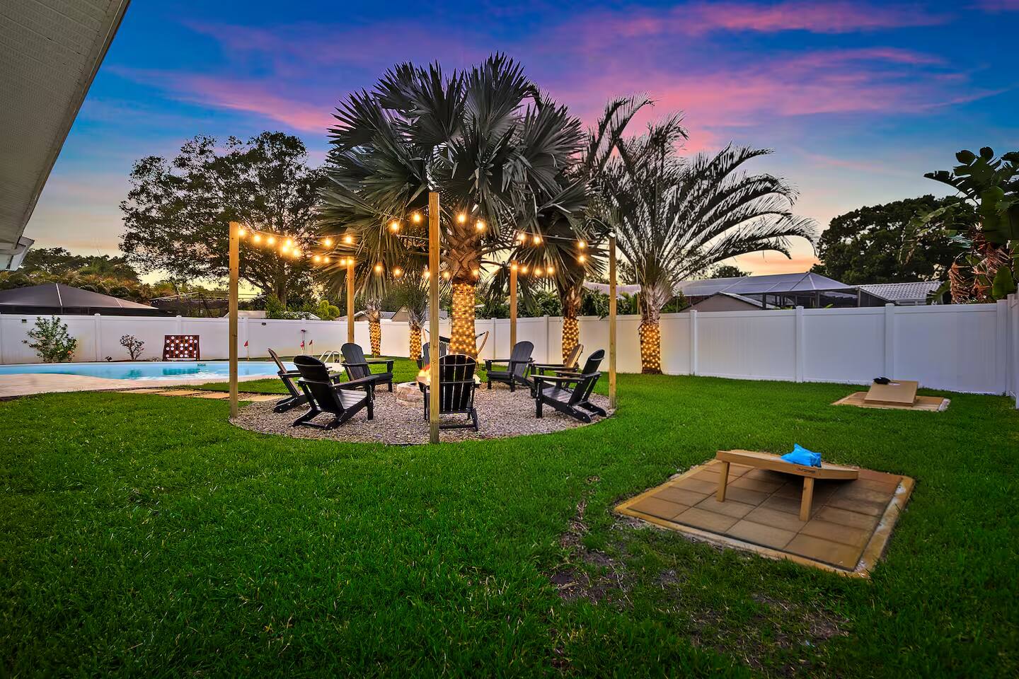 KEY FEATURES: ☀ 4 beautiful bedrooms; 1 king, 2 queens, 1 full, & 2 twin beds ☀ 2 full bathrooms ☀ Modern kitchen with new, stainless steel appliances ☀ Open living room with lots of comfy seating & smart TV ☀ Dining room with seating to comfortably accommodate 10 (+ 3 countertop seats) ☀ Fun game room with pool table, ping pong, & more ☀ Private oasis in the backyard, with heated pool, mini golf, fire pit, and much more! Here Are A Few Kind Words From Our Past Guests: “This was a great place to stay! The morning light through the windows was so beautiful. Overall, just a relaxing experience. The hosts were super responsive whenever I had a question. I would stay again!” - Emily “Sabrina was very accommodating and communicative. the house is beautiful and very comfortable, close to nature hikes.” - Jennifer “This place was lovely! Exactly as pictured! Very clean and excellent host experience!!! I plan to come back again!” - Regina ☆☆ BEDROOMS ☆☆ You'll find 4 stylish, comfy bedrooms in this home. The master bedroom is equipped with a king bed, smart TV, direct access to the backyard, and a private ensuite bathroom. Down the hall, the next two bedrooms have one queen bed in each, while the fourth bedroom has a twin-over-full bunk bed w/ a twin trundle bed underneath. ☆☆ BATHROOMS ☆☆ There are two full bathrooms in this home. The private master ensuite has a sink, toilet, and walk-in shower. The hallway bathroom has a sink, toilet, and shower/tub combo. ☆☆ KITCHEN & DINING ☆☆ The modern kitchen is located right off of the main living areas, and is loaded with all new stainless steel appliances & a coffee station (including a Keurig & coffee pods). The dining room is right next to the kitchen, with enough seating to comfortably fit 10 people, along with 3 more countertop seats in the kitchen. On top of that, the dining table unfolds to reveal a poker table! ☆☆ LIVING ROOM ☆☆ In the living room, you’ll be greeted with lots of comfy seating, a big smart TV, private workspace, and beautiful design throughout. This is the perfect spot to host your movie nights & games with your friends and family! ☆☆ GAME ROOM ☆☆ Keep your family and friends entertained throughout your stay in our amenity-filled game room! Pool table, ping pong, arcade games, smart TV, & lots of seating. Whether your reason for staying is to explore the town or stay at home and relax, this place will be the perfect spot to unwind! ☆☆ OUTDOOR SPACE ☆☆ This backyard is everything you could ask for, and more! ☀ Heated pool ☀ Mini golf ☀ Fire pit ☀ Corn hole ☀ Giant Connect 4 ☀ Giant Jenga ☀ BBQ grill ☀ Sun lounging chairs ☀ Covered outdoor lounge seating ☀ Covered outdoor dining There is so much to do here, that all of your friends & family will be thoroughly entertained throughout your entire stay. No matter the season, this backyard has it all. Book your stay with us today and you will NOT be disappointed. Get ready for a vacation you will never forget! ★☆ Book Now & Let Us Take Care Of You In Clearwater! ☆★